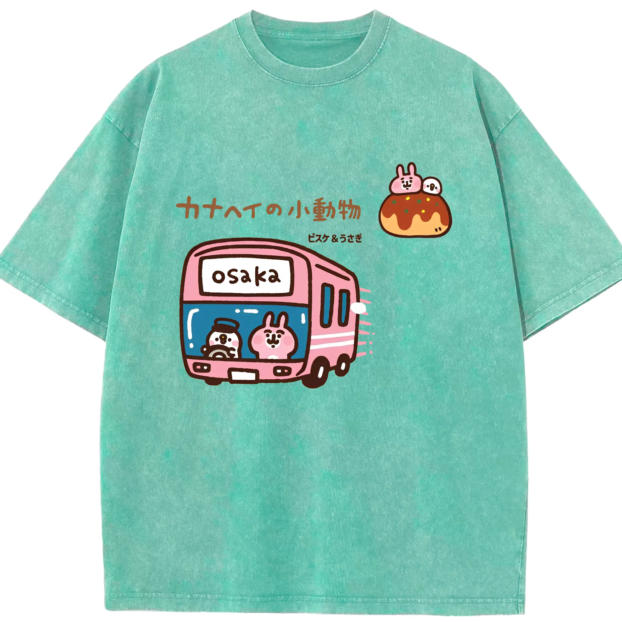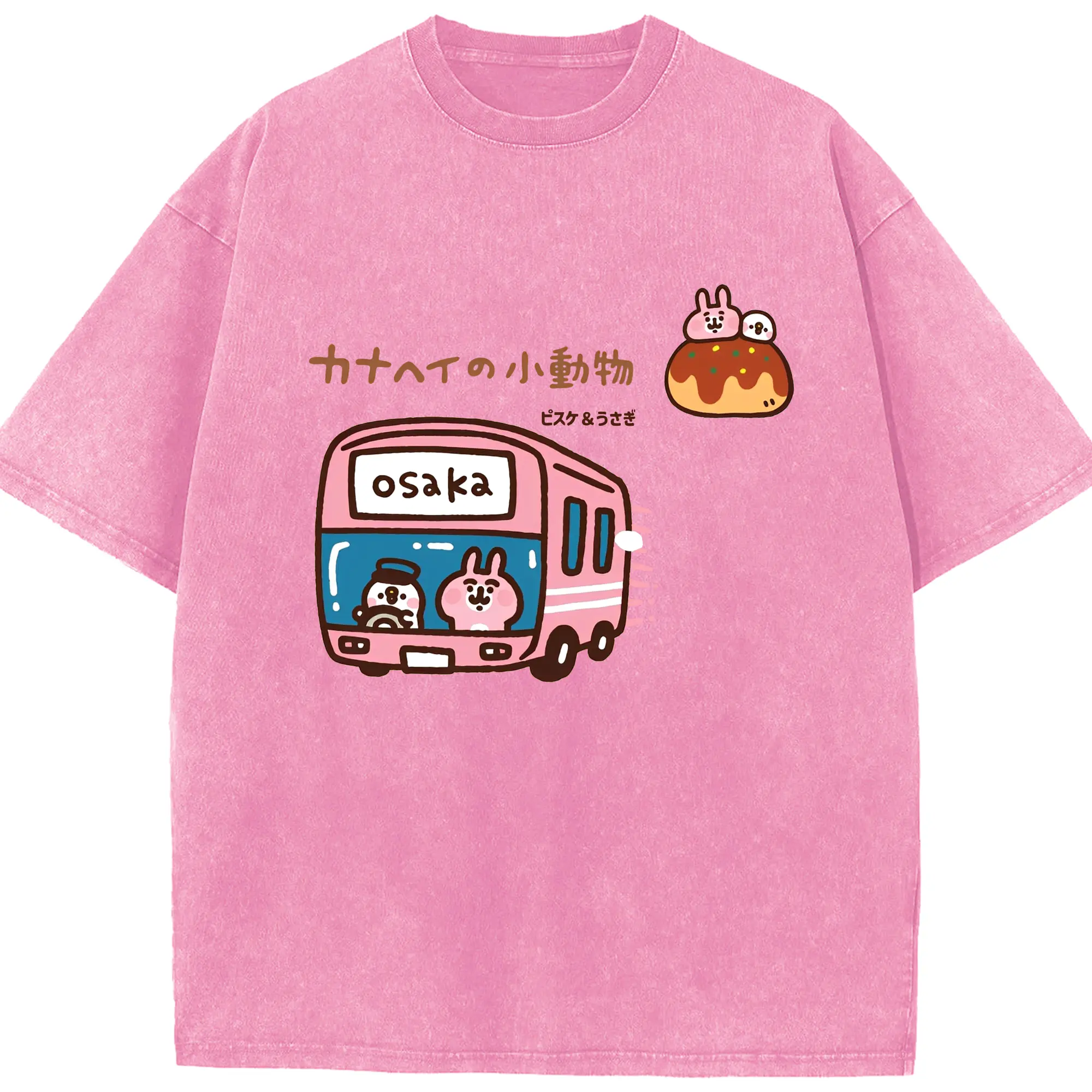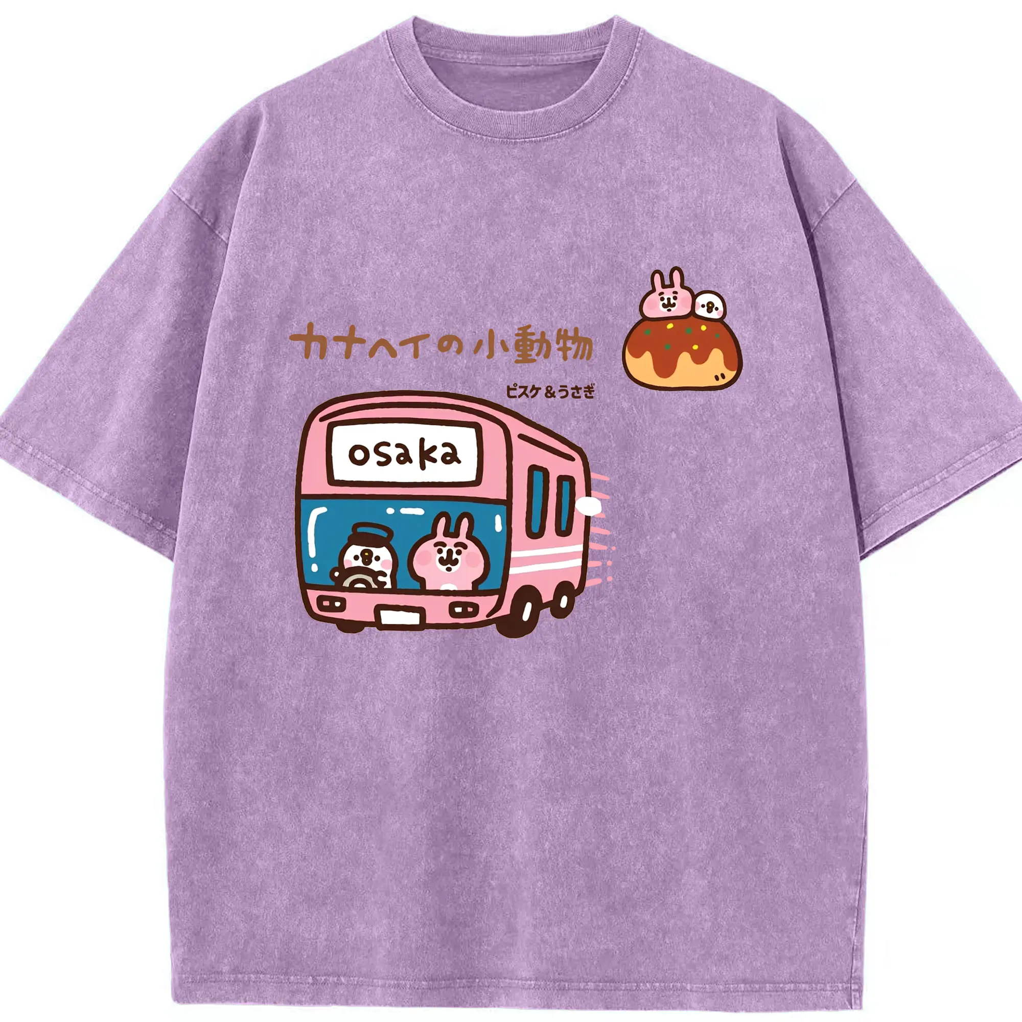 カナヘイの小動物ピスケ&うさぎのゆるっと道草旅 - 綿100% 半袖Tシャツ ・ フロントプリント ・ 快適 通気性 ・ 日常使い 散歩 スポーツ用