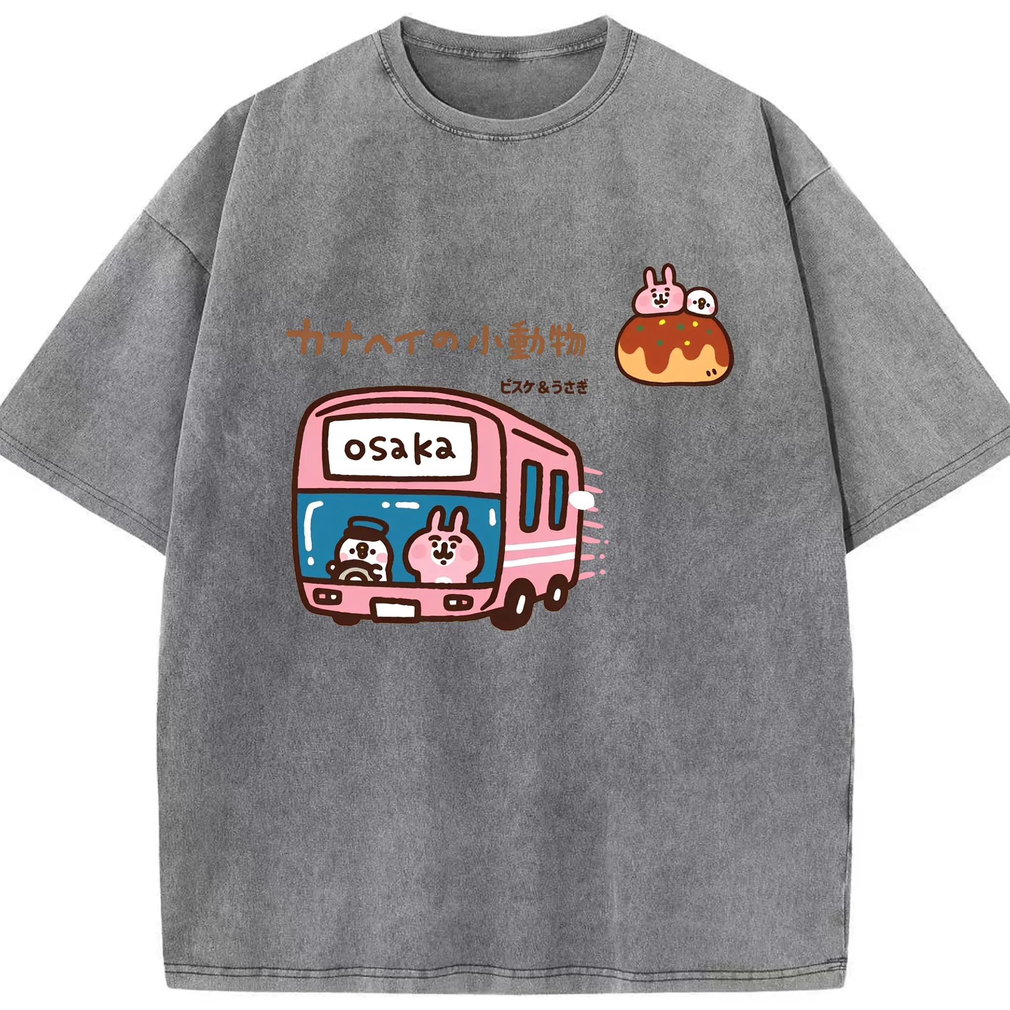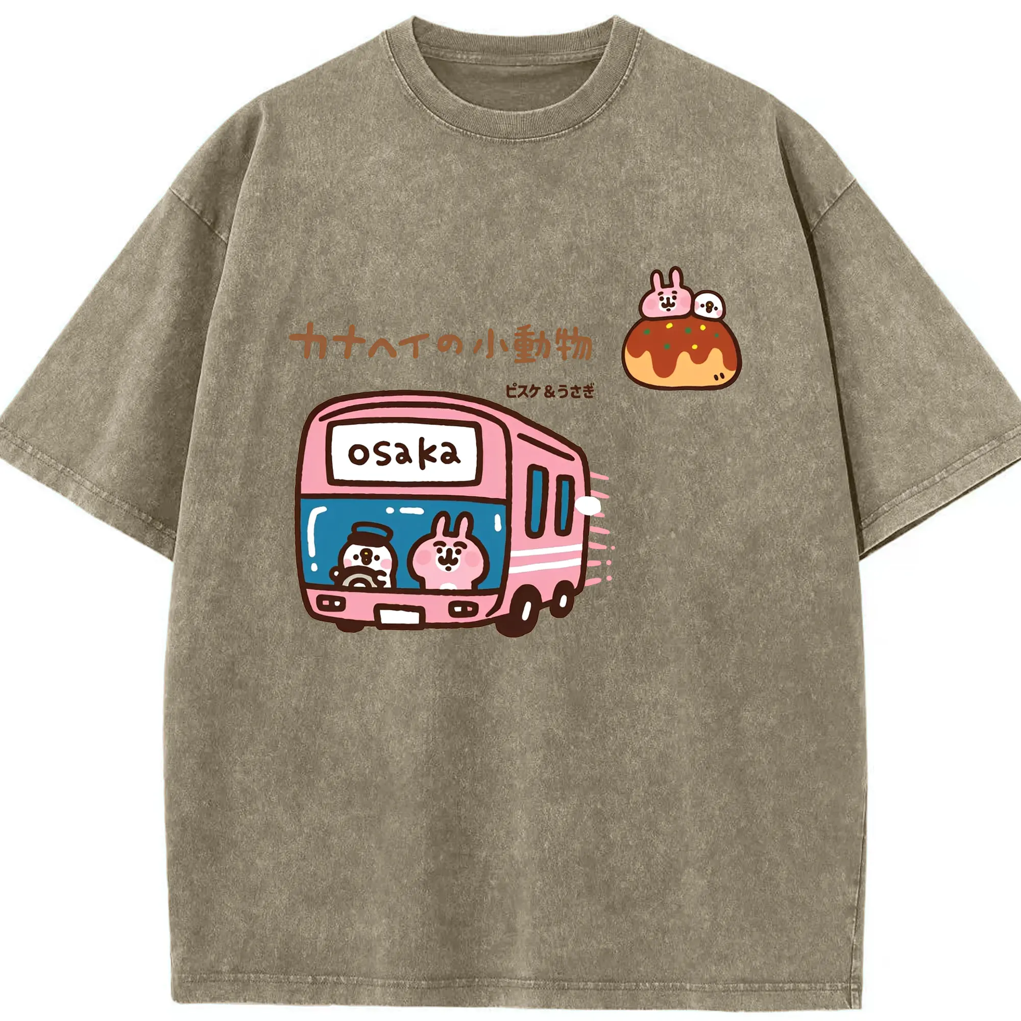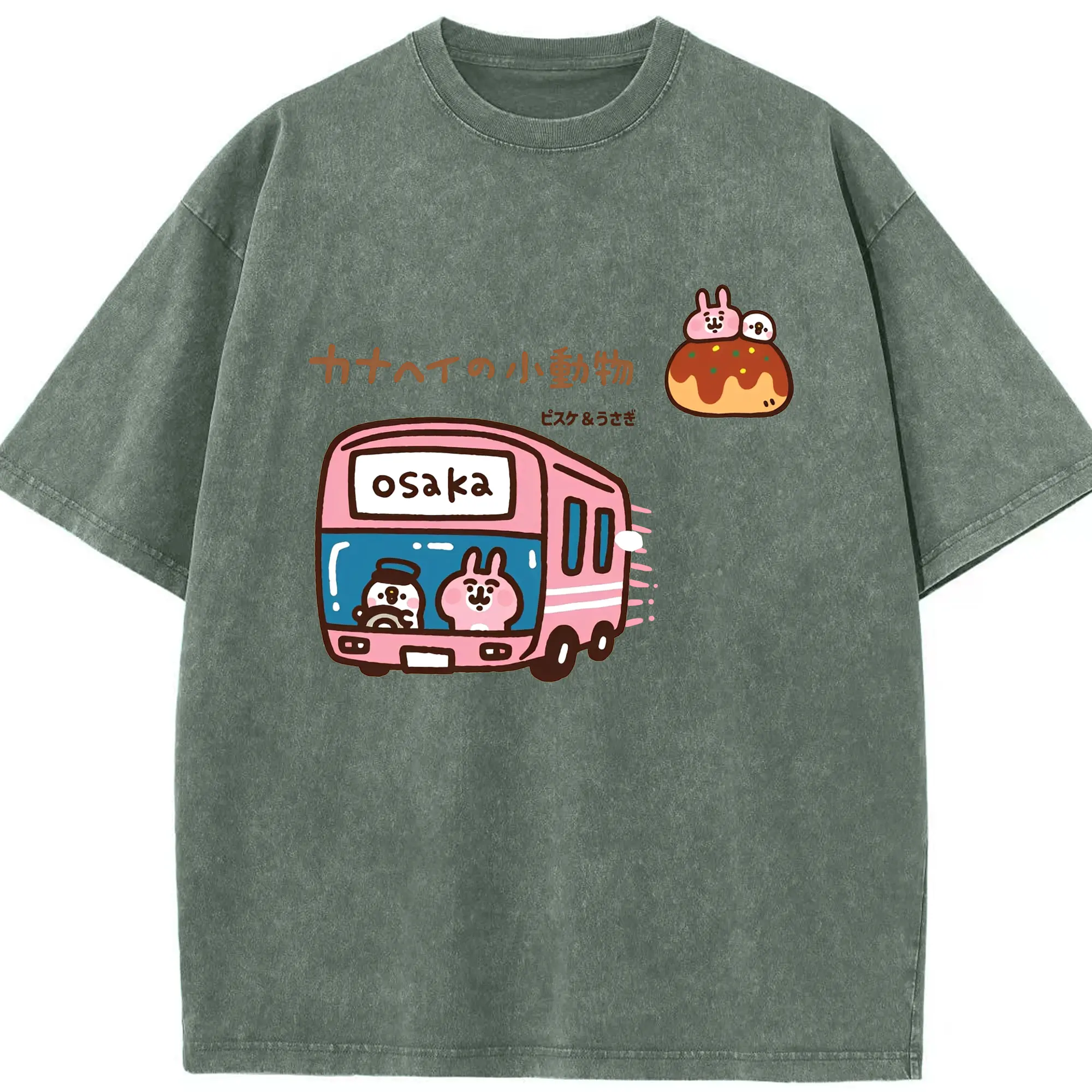 カナヘイの小動物ピスケ&うさぎのゆるっと道草旅 - 綿100% 半袖Tシャツ ・ フロントプリント ・ 快適 通気性 ・ 日常使い 散歩 スポーツ用