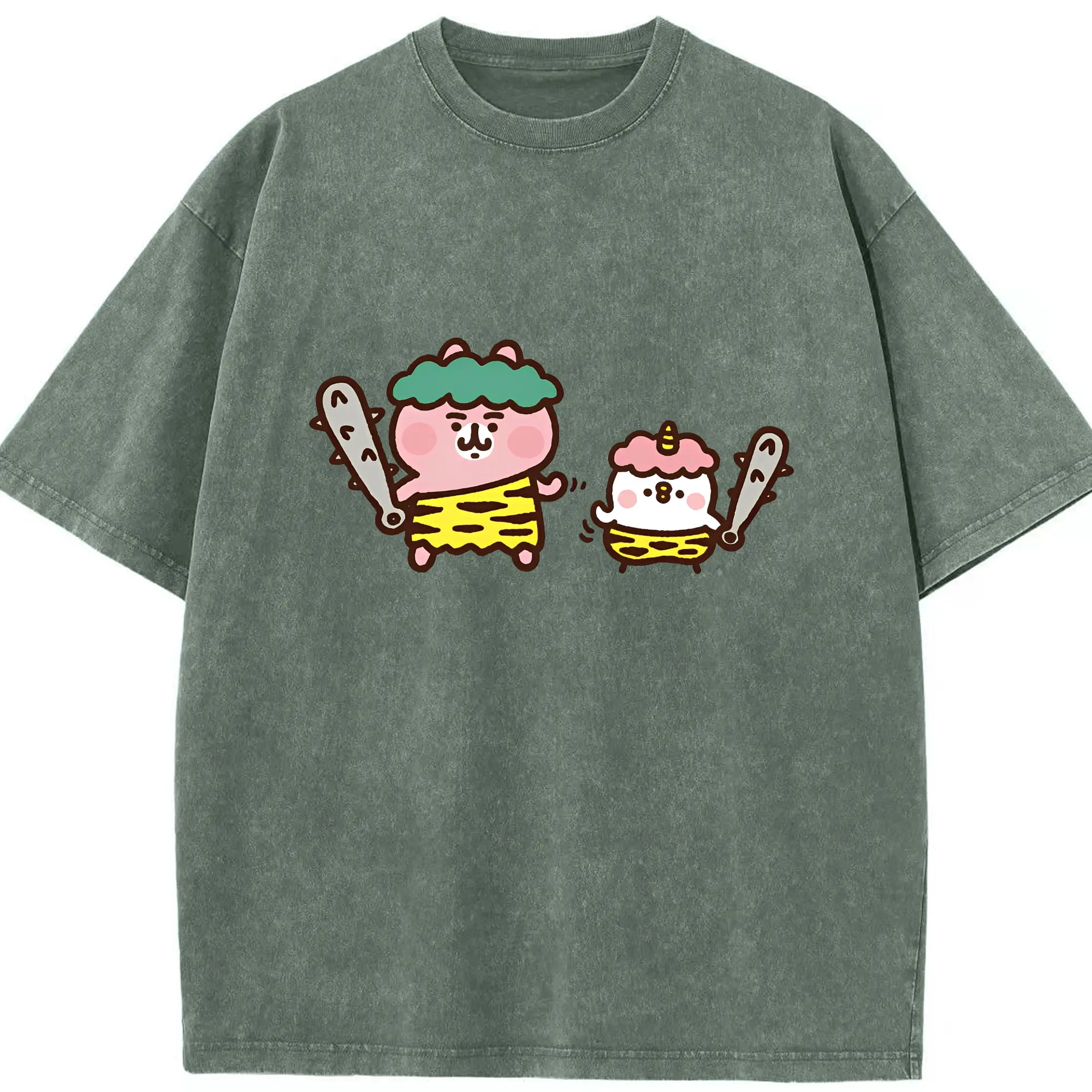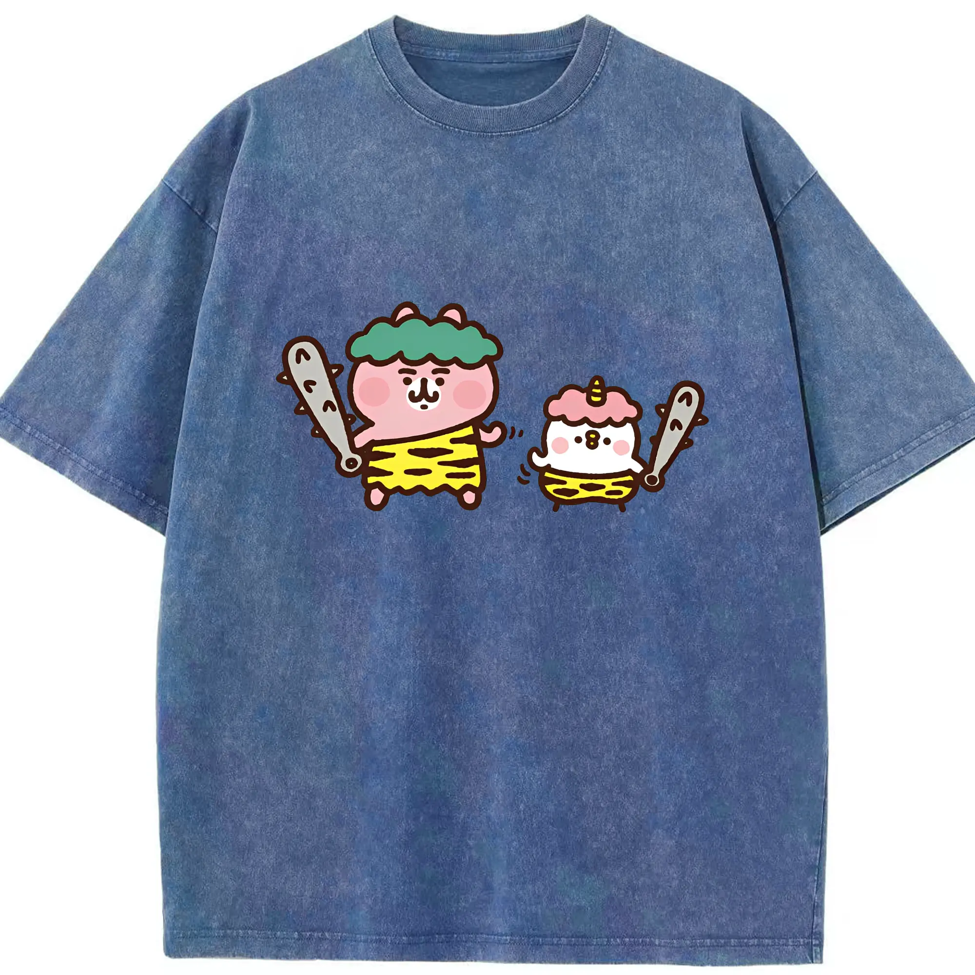 ちいかわお祭り応援 - 綿100% ヴィンテージ風 半袖Tシャツ ・ フロントプリント ・ 柔らか肌触り ・ 通気性 快適 ・ スポーツ カジュアル 外出用