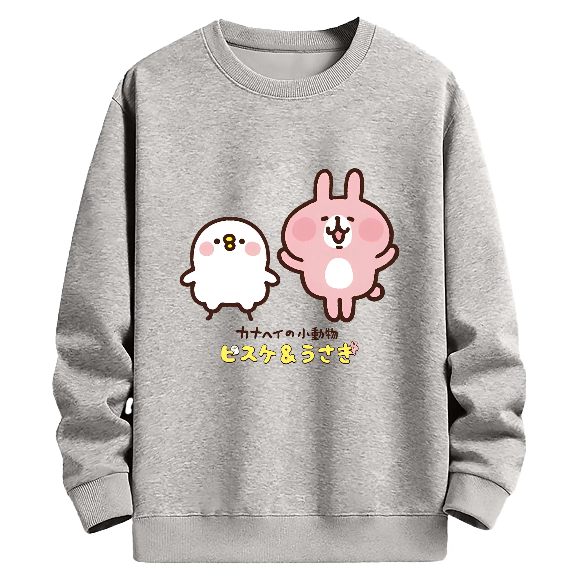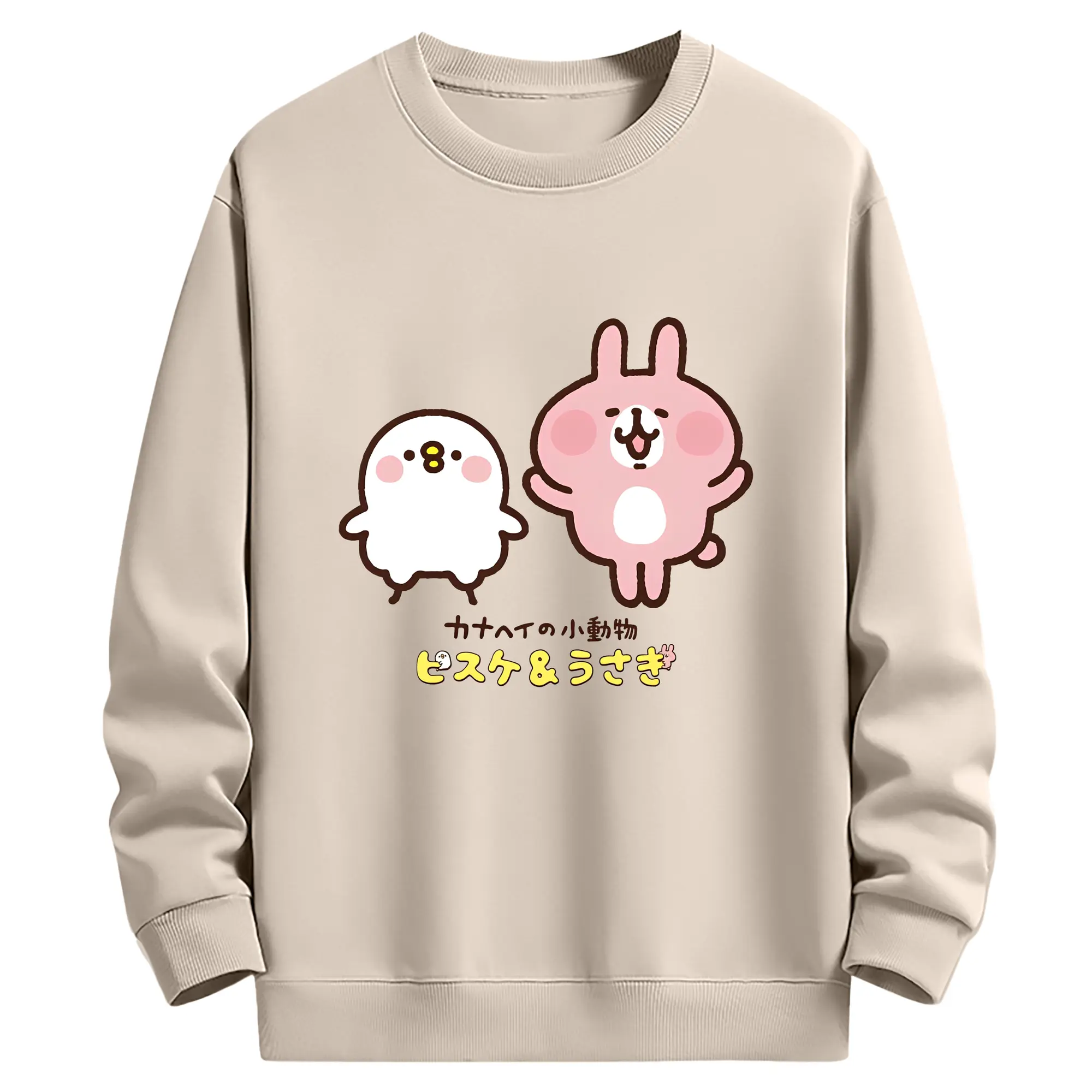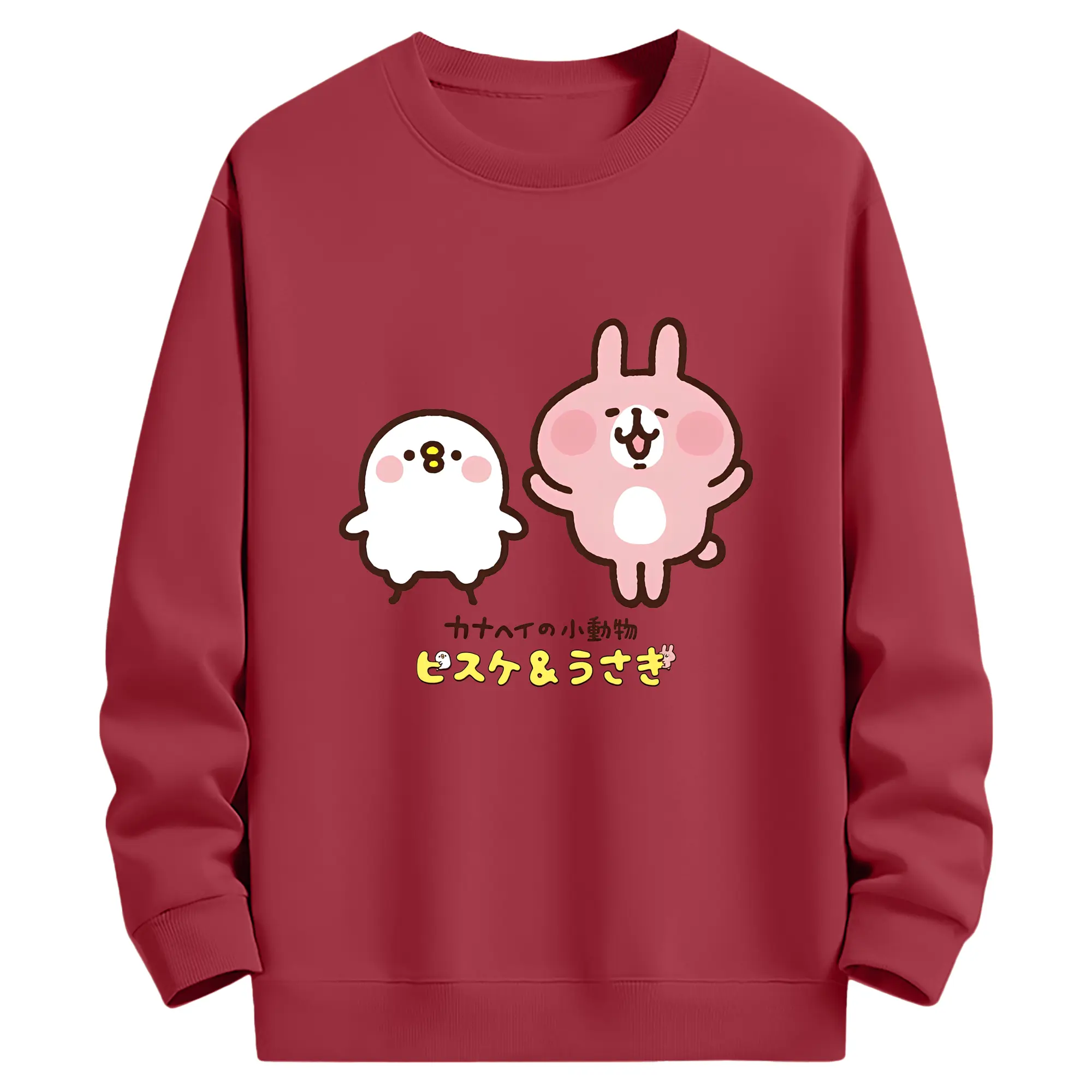 夢のコラボ!ペコちゃんとハローキティ - 高品質 クルーネック スウェット ・ コットン59% ポリエステル41% ・ ユニセックス 長袖 トレーナー ・ カジュアル デイリー スポーツ 散歩用