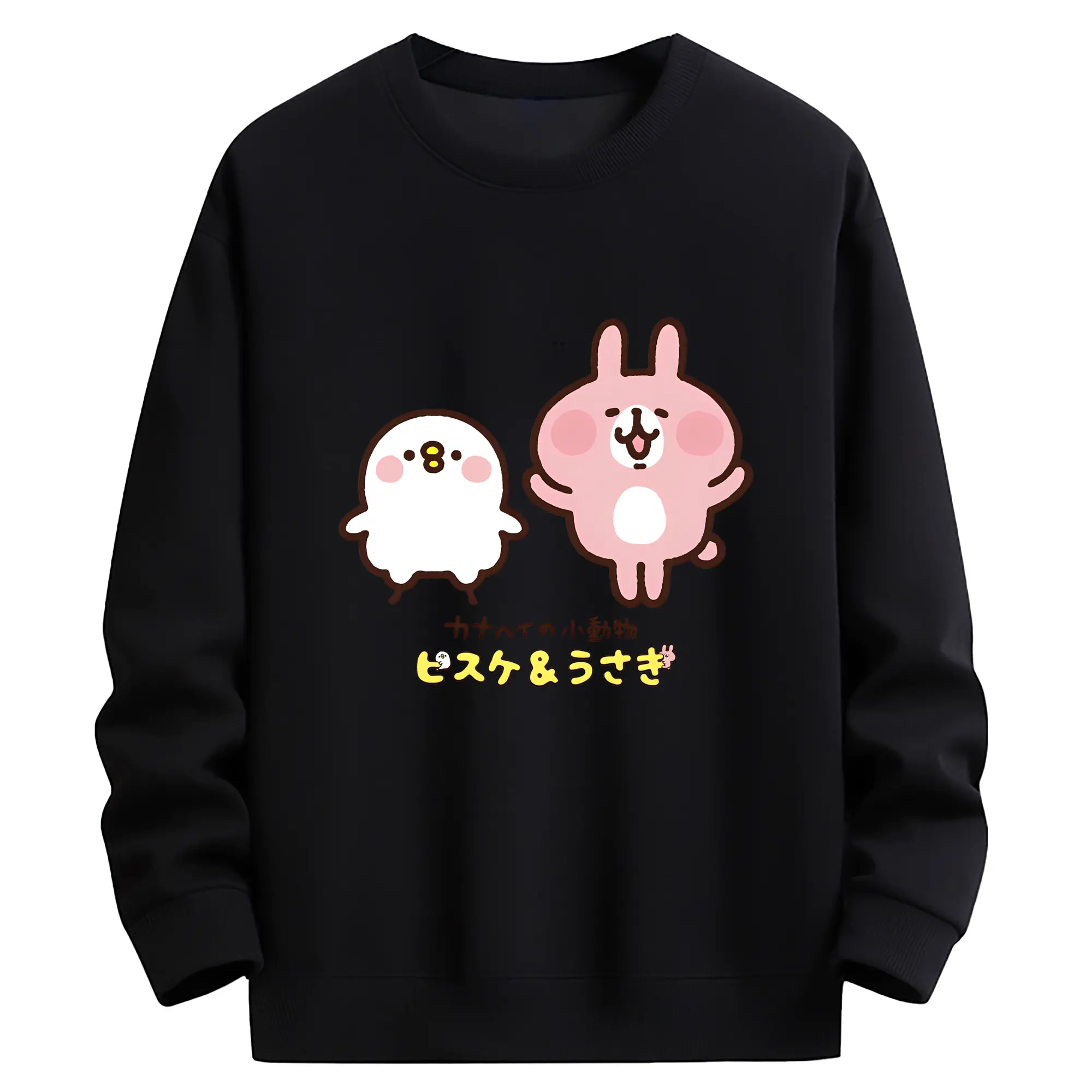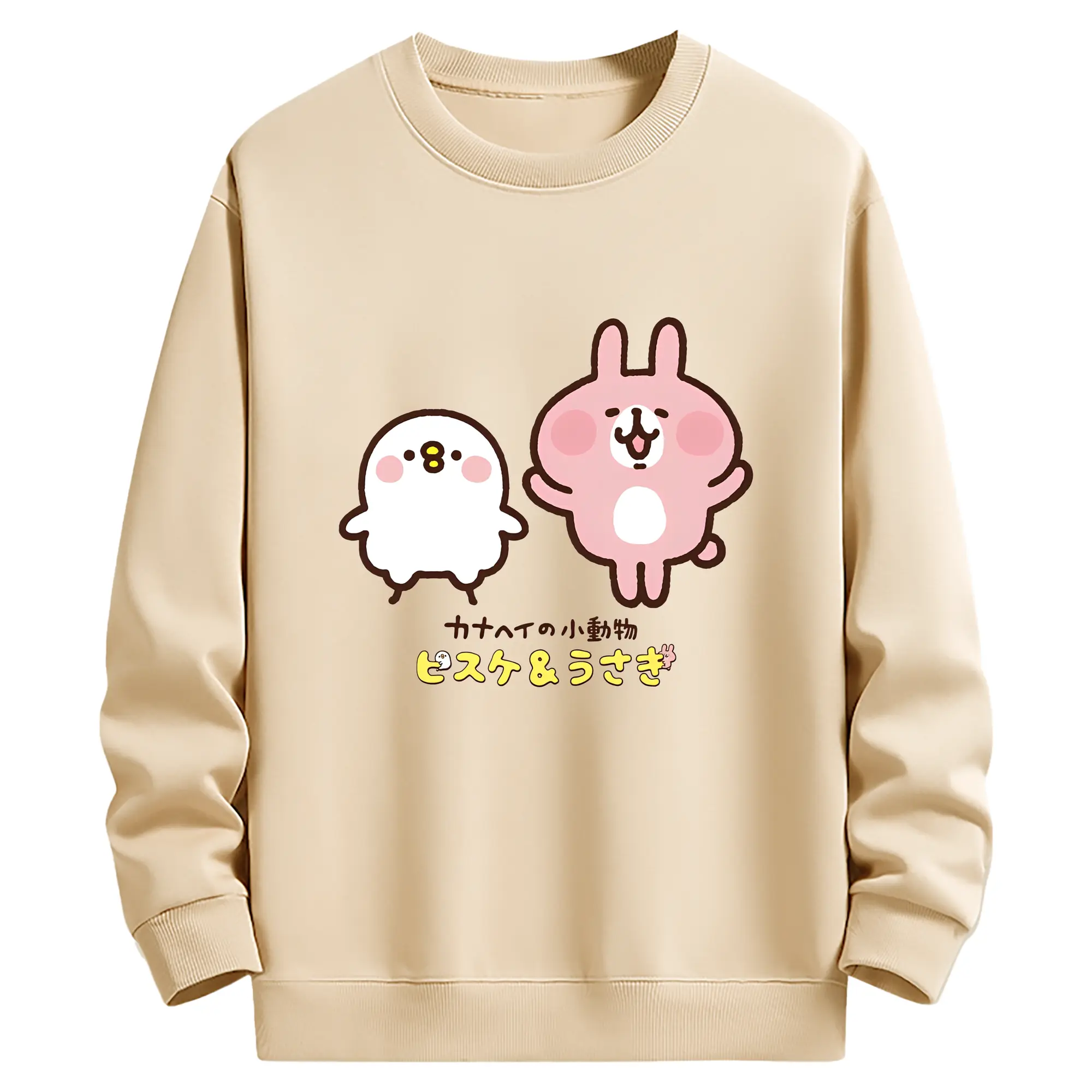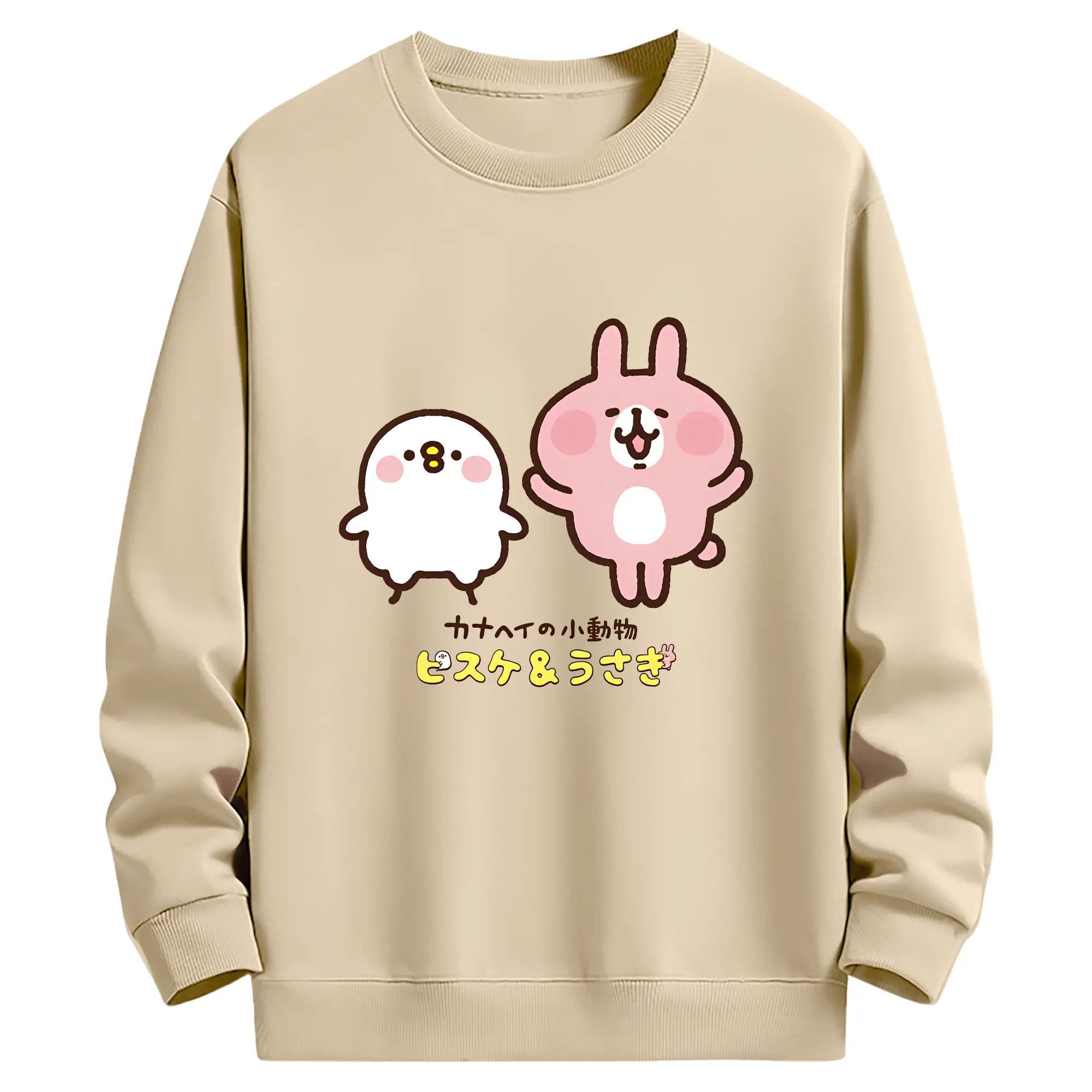 夢のコラボ!ペコちゃんとハローキティ - 高品質 クルーネック スウェット ・ コットン59% ポリエステル41% ・ ユニセックス 長袖 トレーナー ・ カジュアル デイリー スポーツ 散歩用
