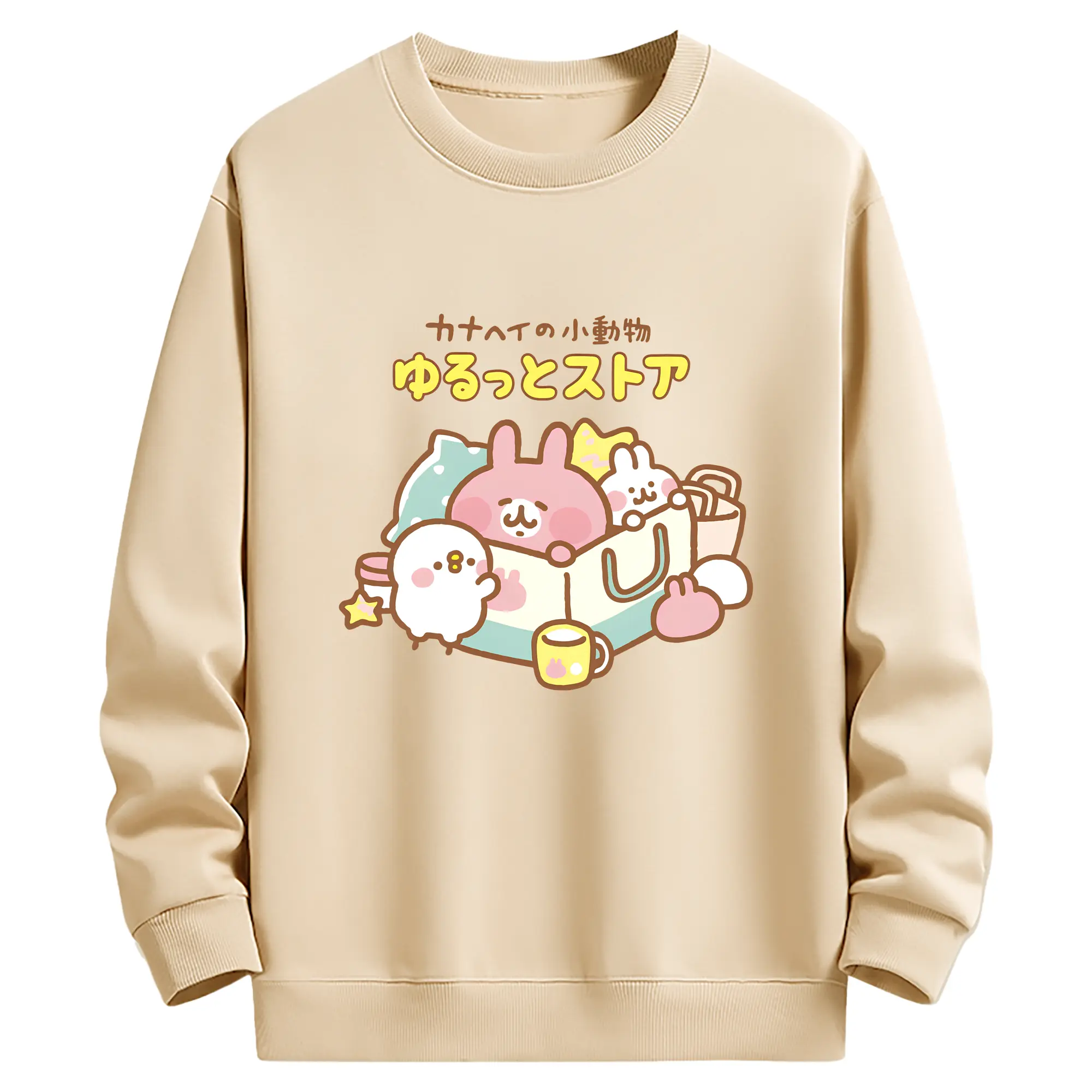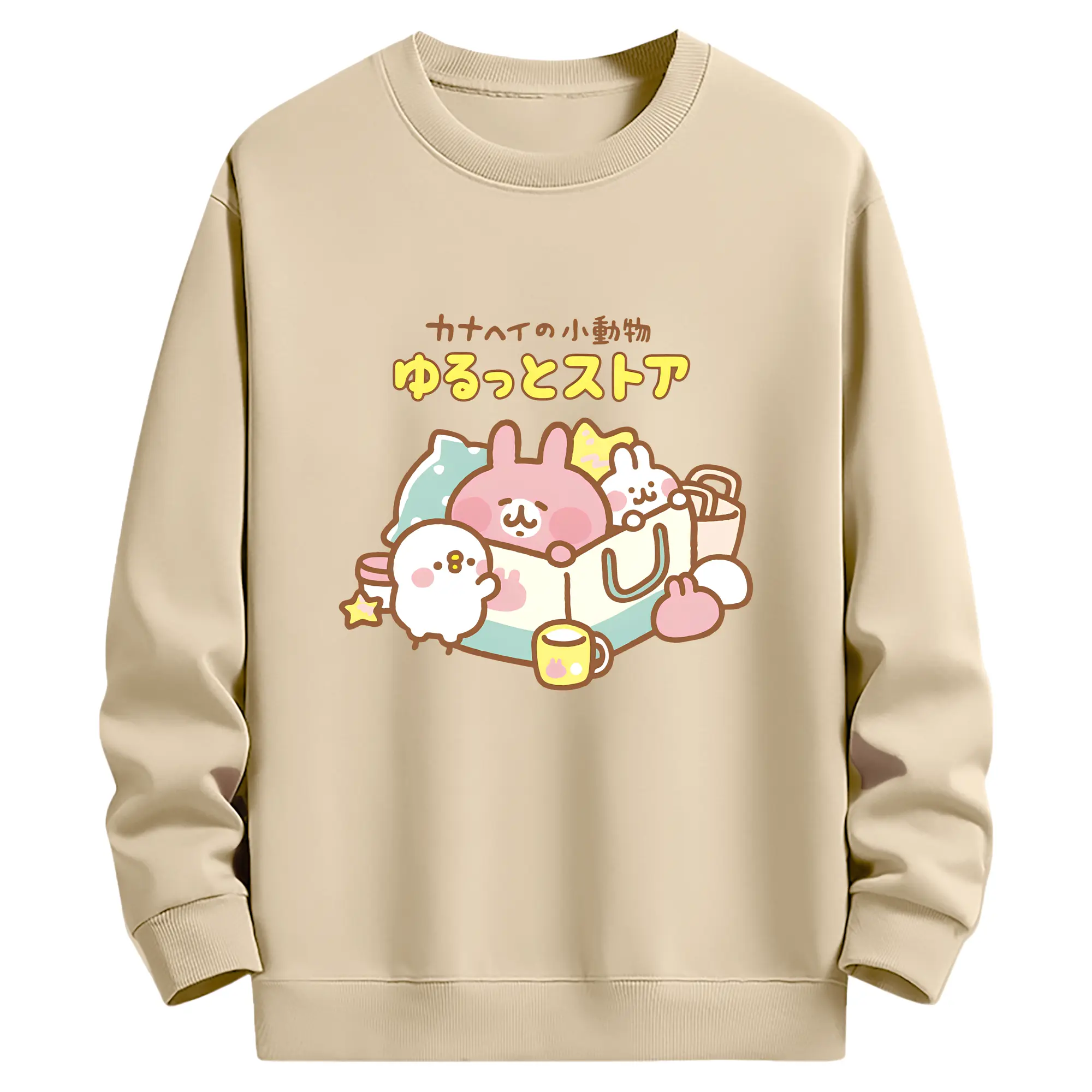 2025人気のmofusand&サンリオ - 高品質 クルーネック スウェット ・ コットン59% ポリエステル41% ・ ユニセックス 長袖 トレーナー ・ カジュアル デイリー スポーツ 散歩用