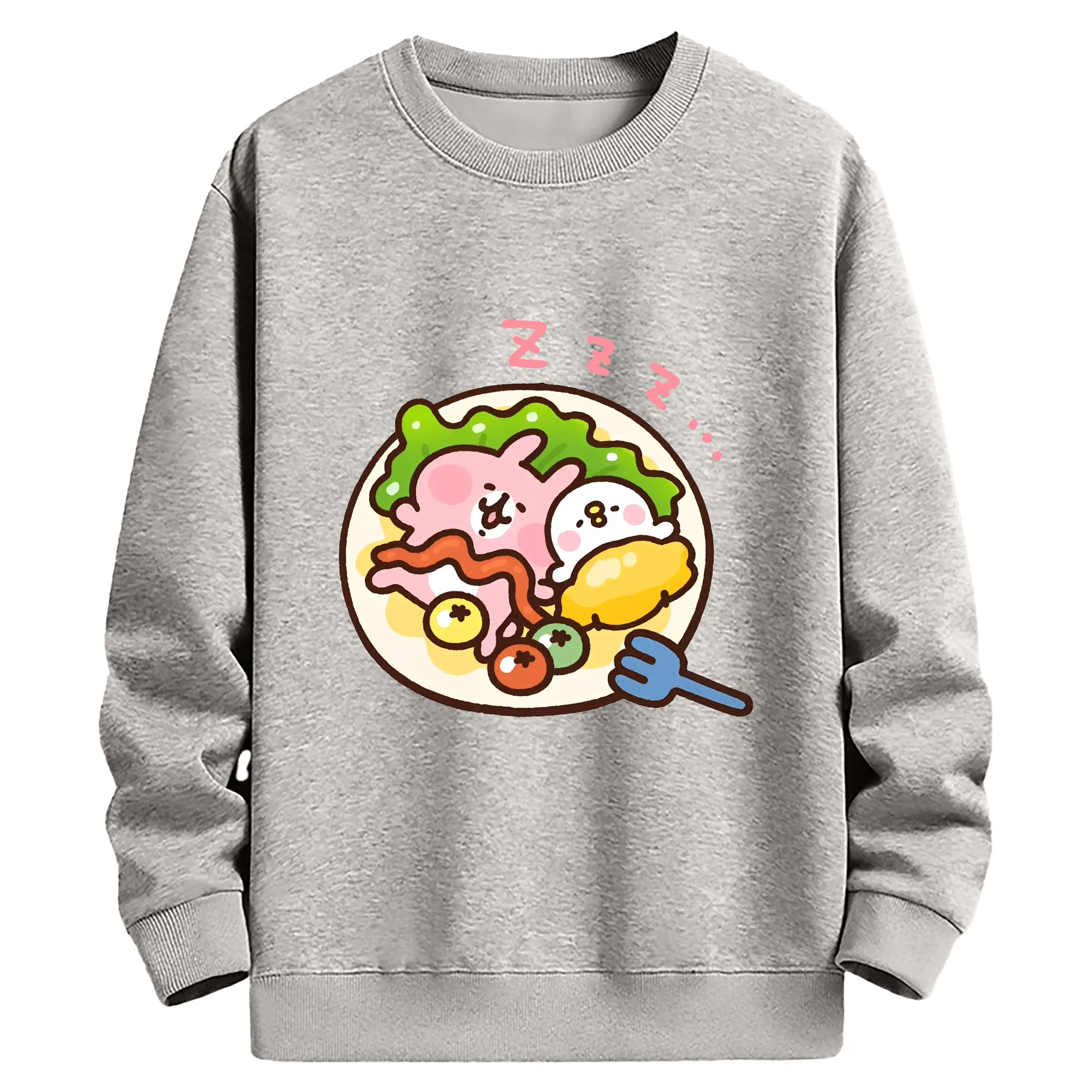 カナヘイの小動物ピスケ&うさぎ美味しいフードデザイン - 綿100% 半袖Tシャツ ・ フロントプリント ・ 快適 通気性 ・ 日常使い 散歩 スポーツ用