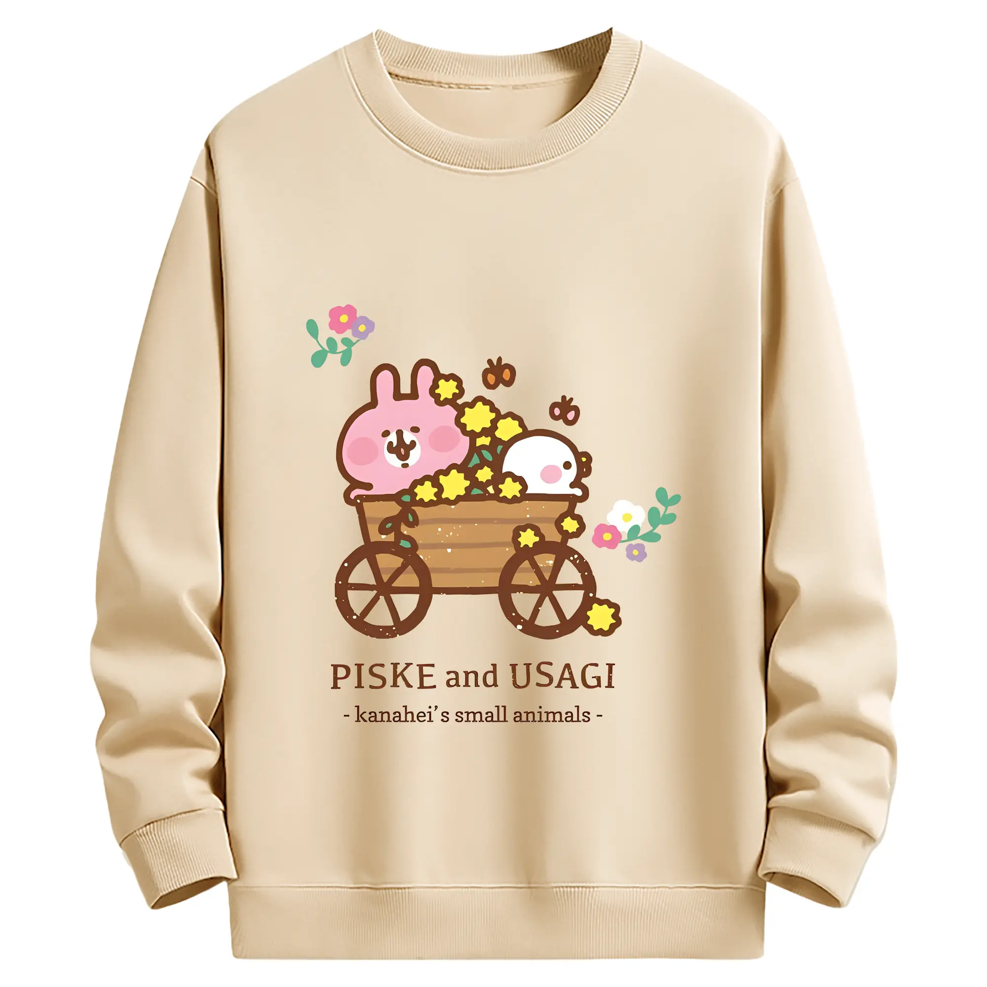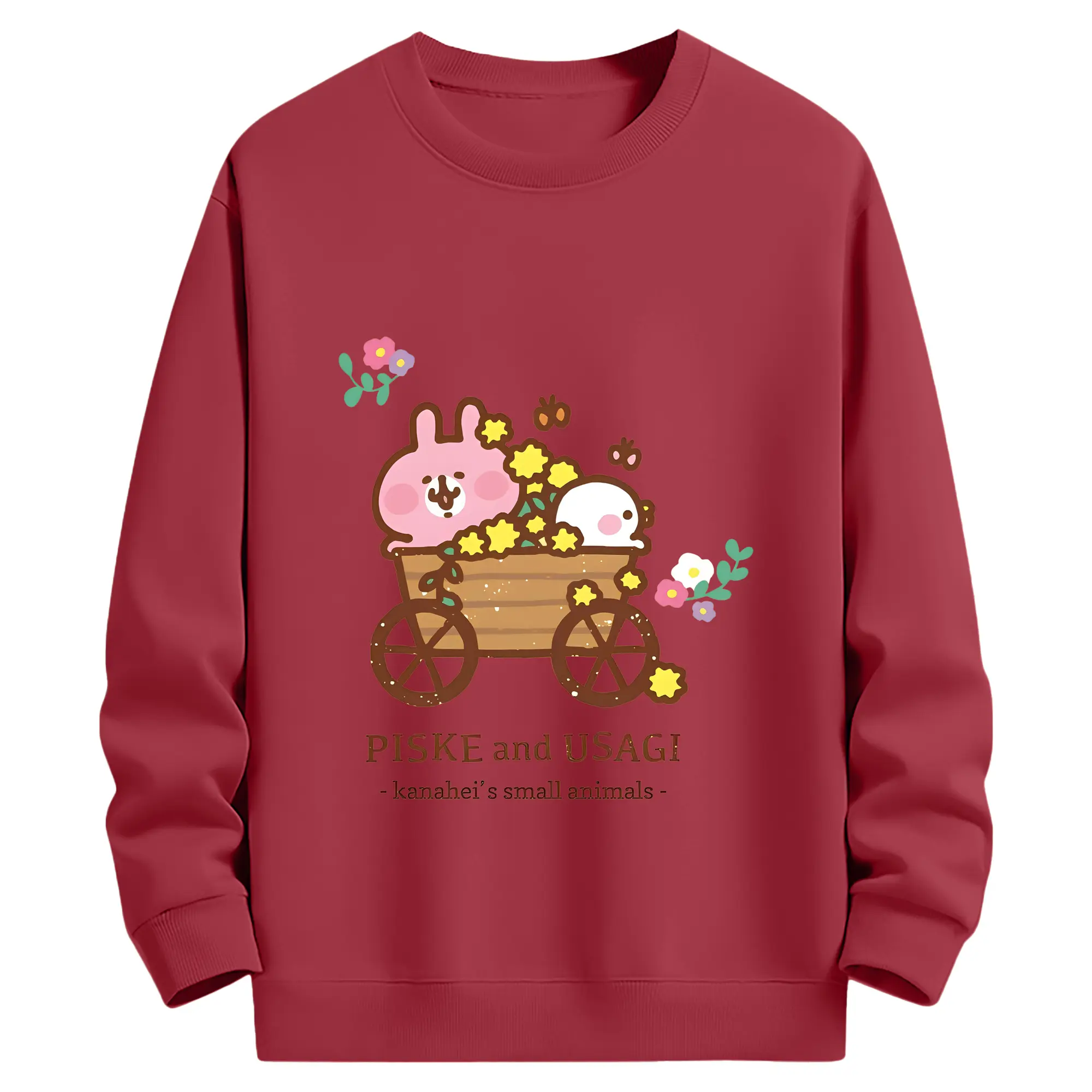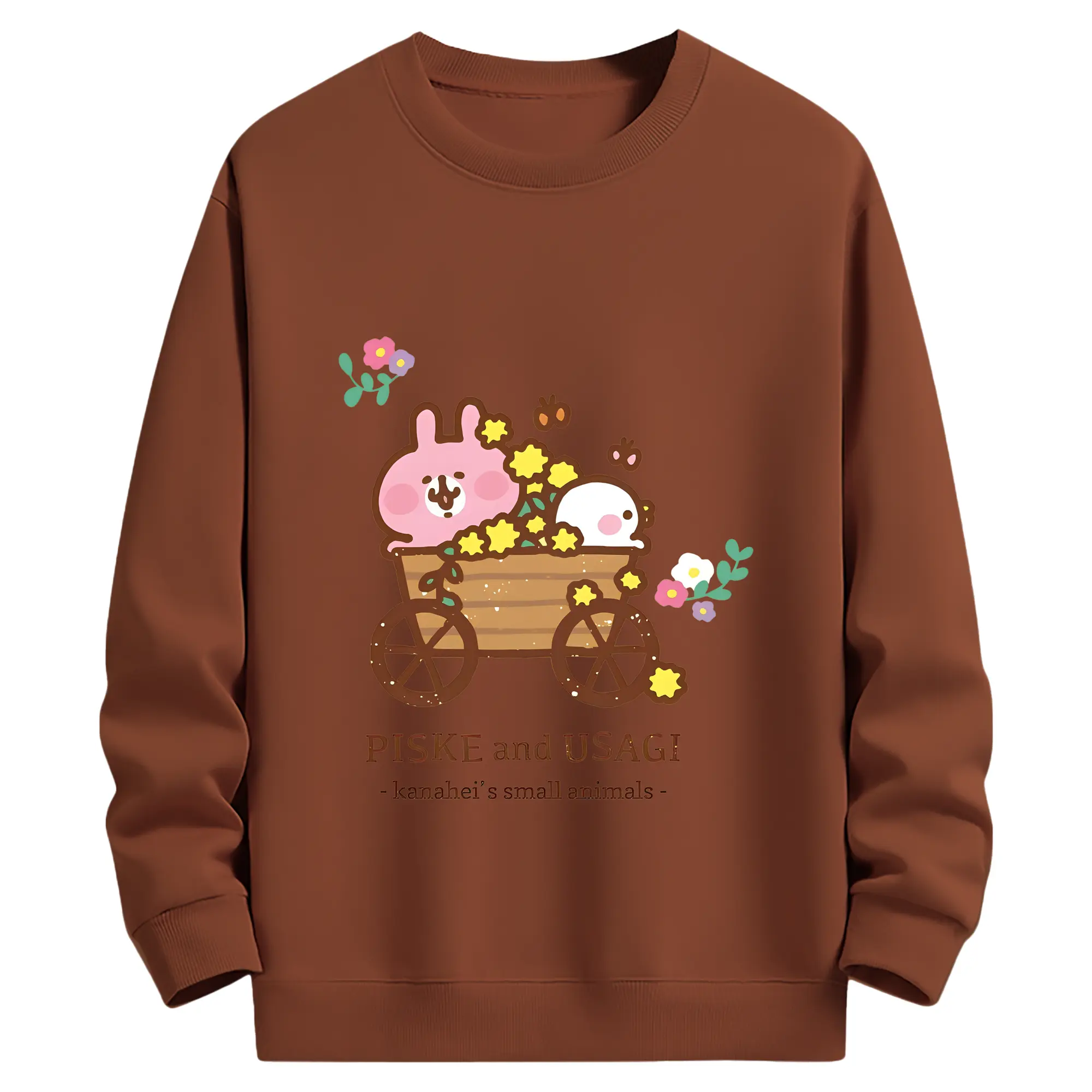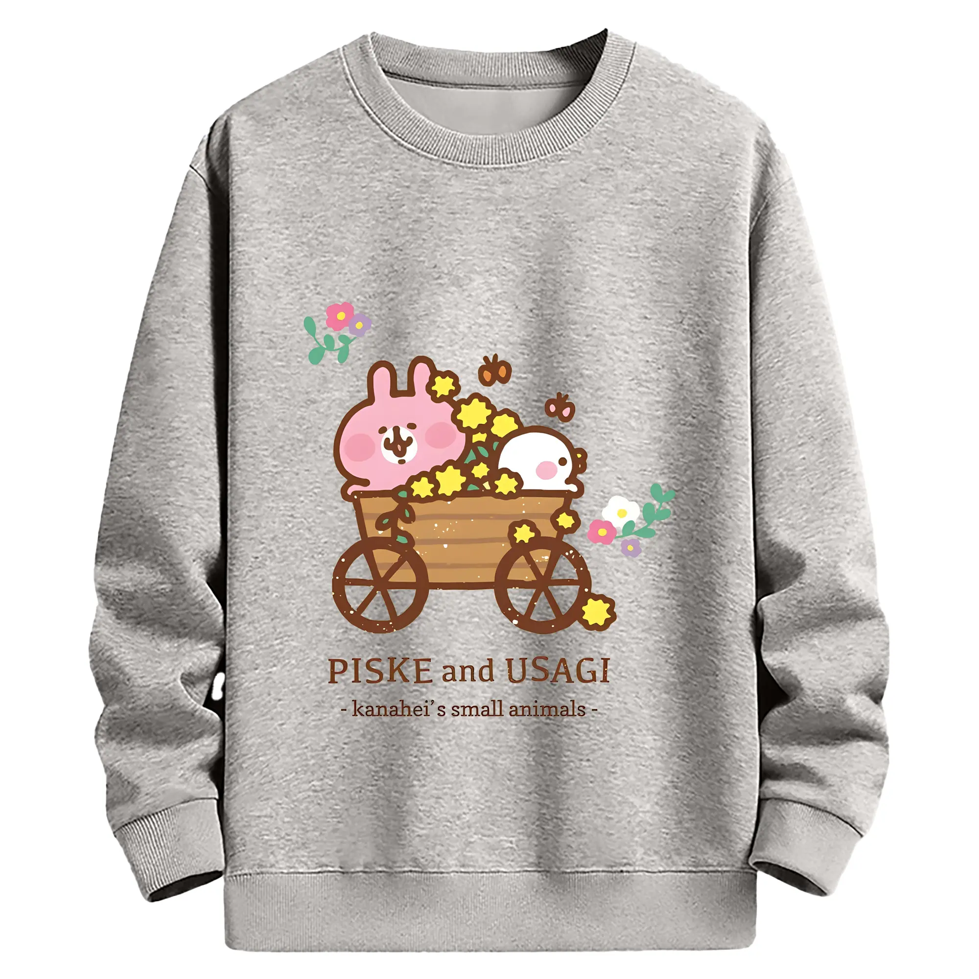 カナヘイの小動物キュートな花車スタイル - 綿100% 半袖Tシャツ ・ フロントプリント ・ 快適 通気性 ・ 日常使い 散歩 スポーツ用