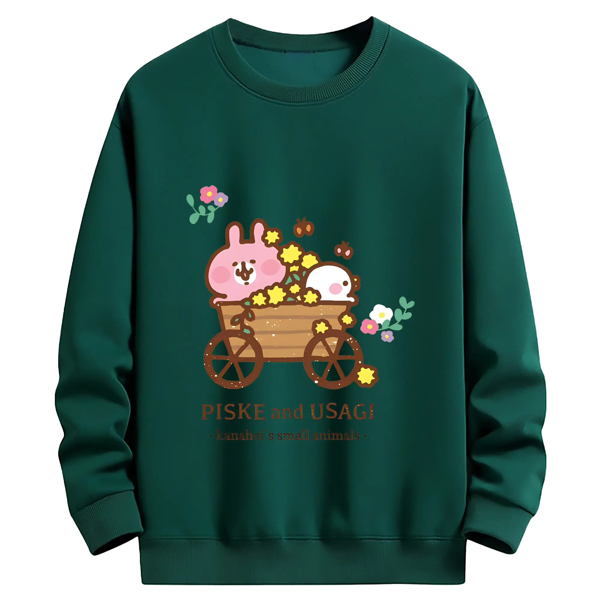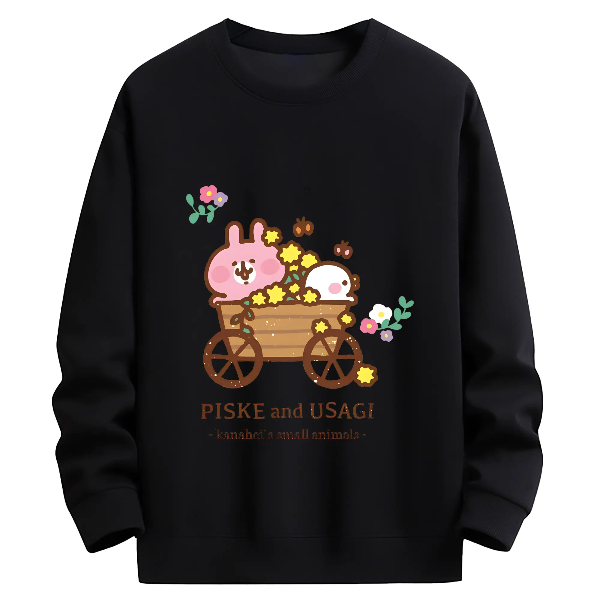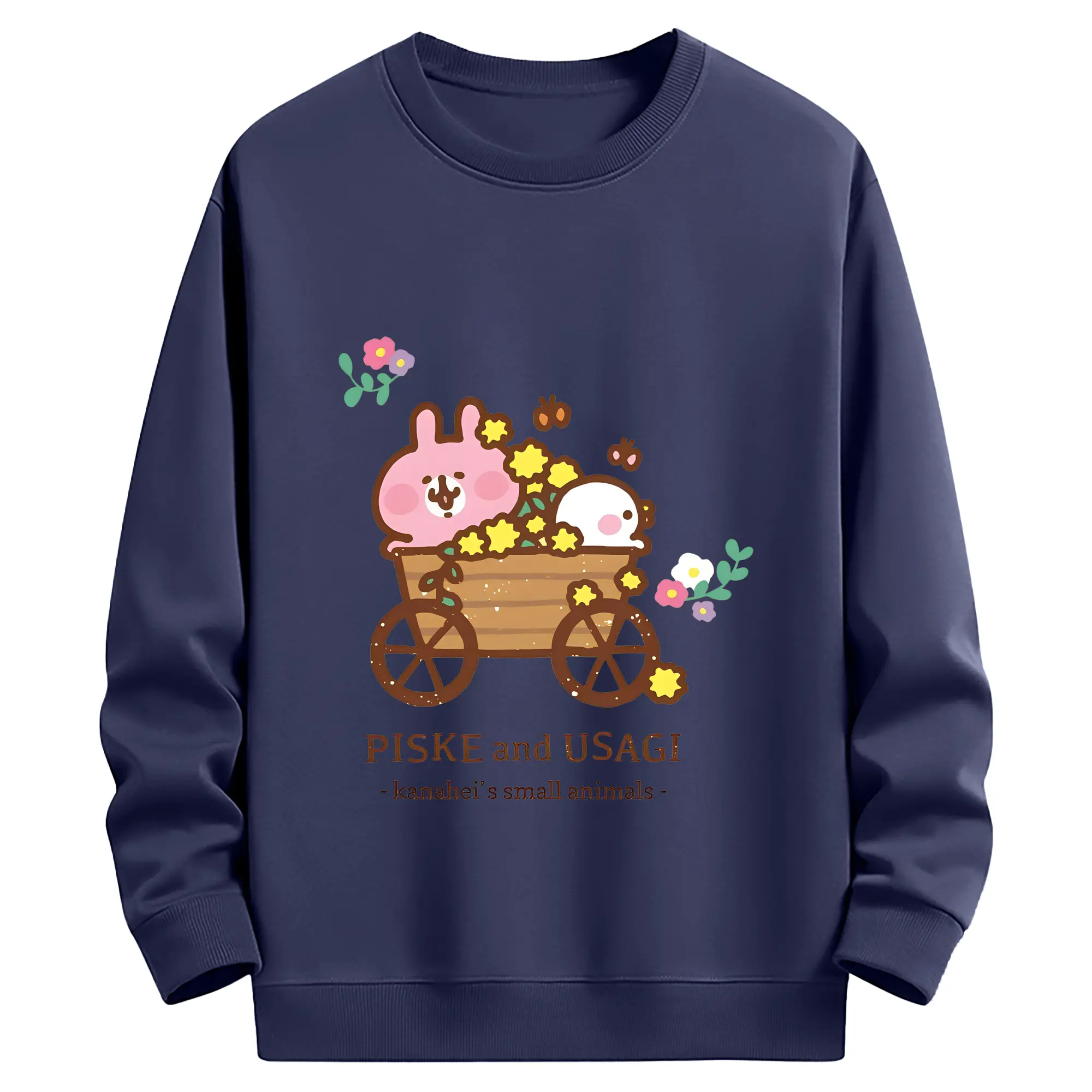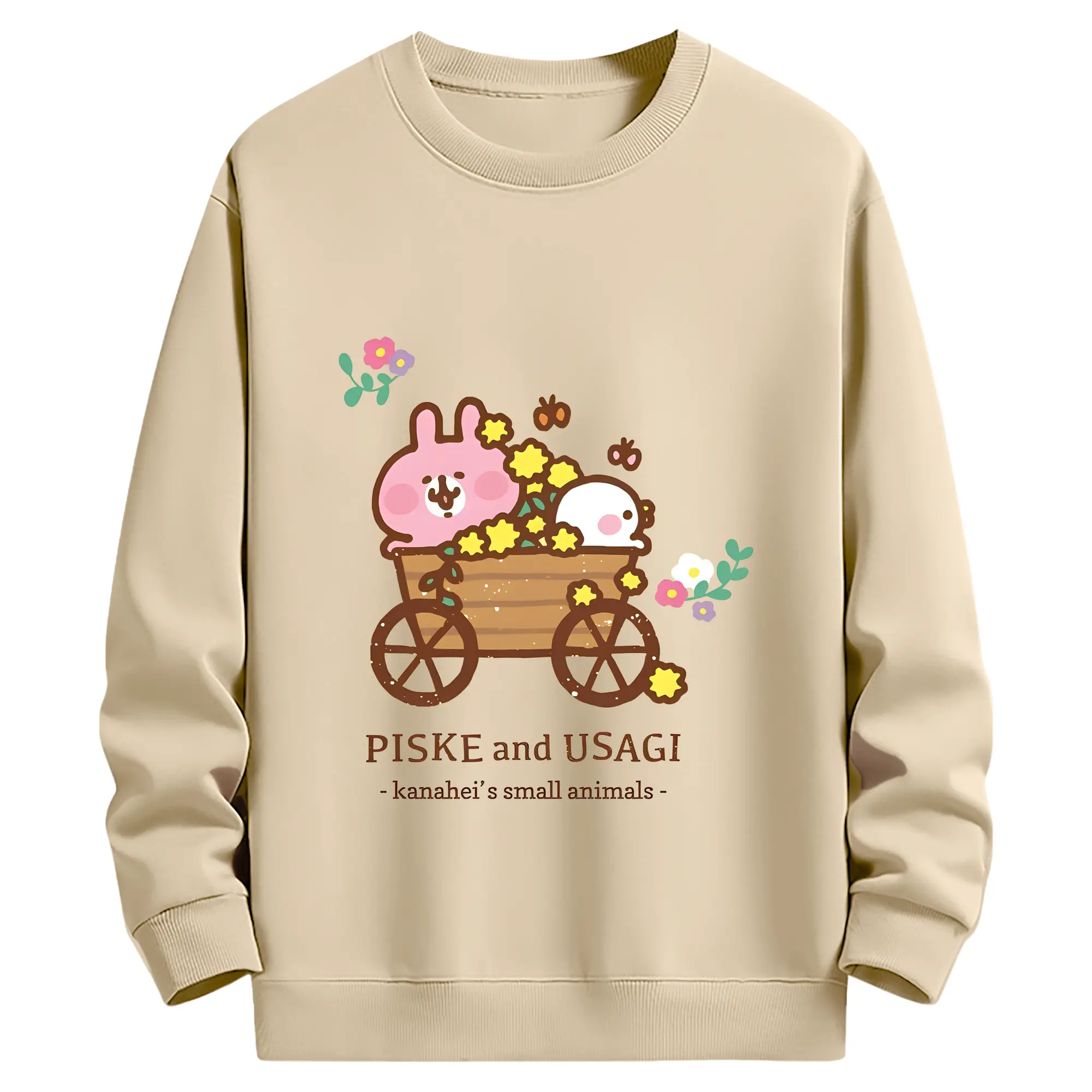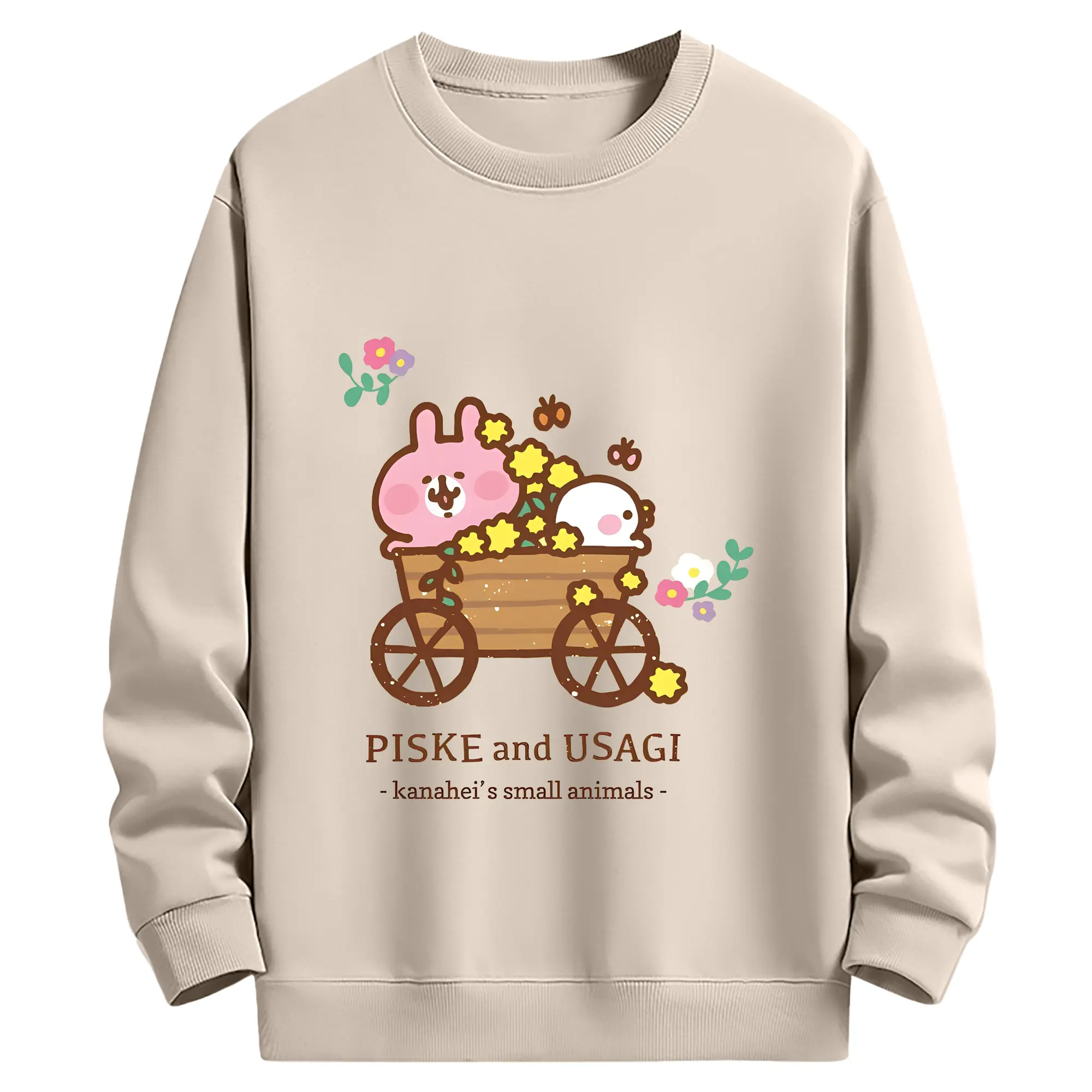 カナヘイの小動物キュートな花車スタイル - 綿100% 半袖Tシャツ ・ フロントプリント ・ 快適 通気性 ・ 日常使い 散歩 スポーツ用