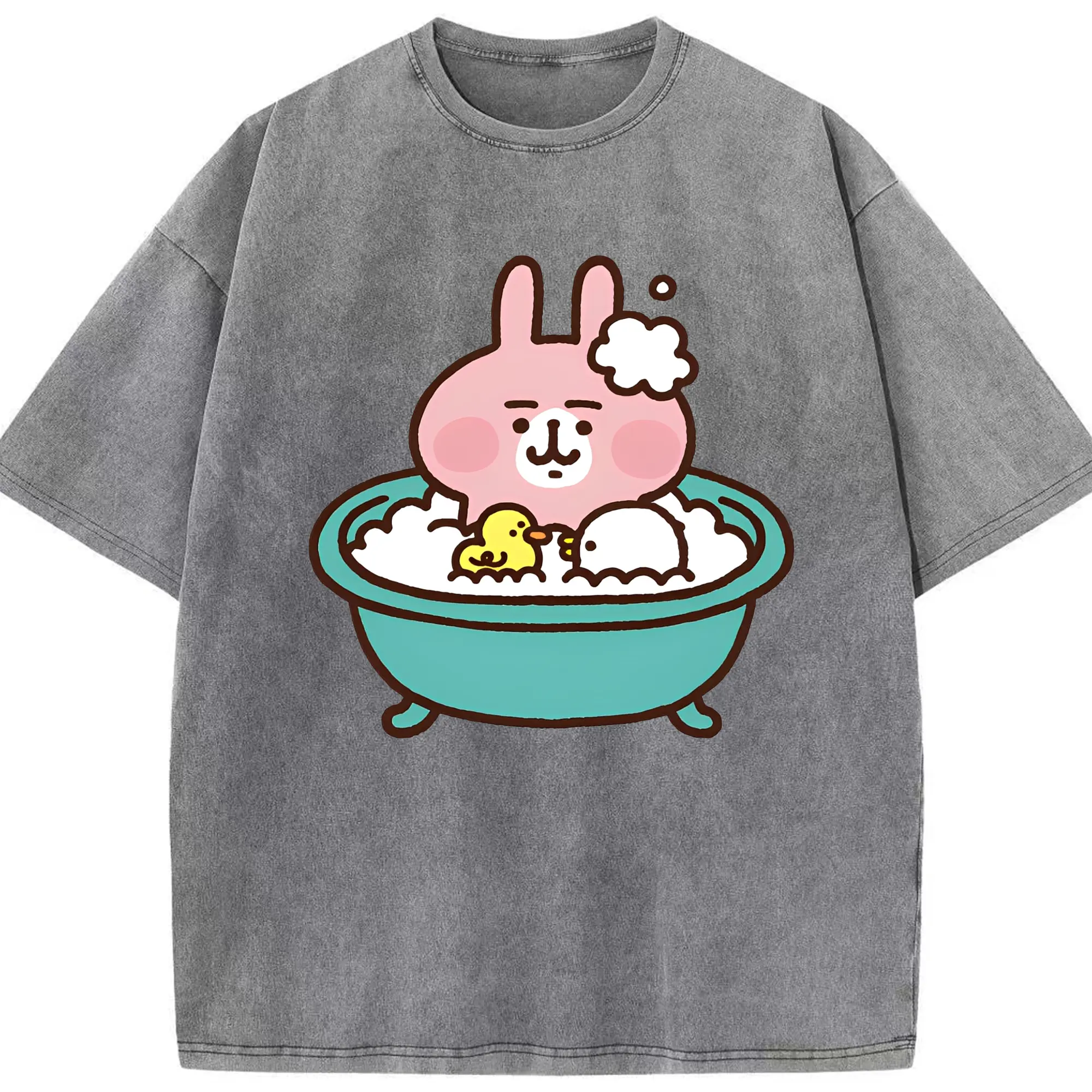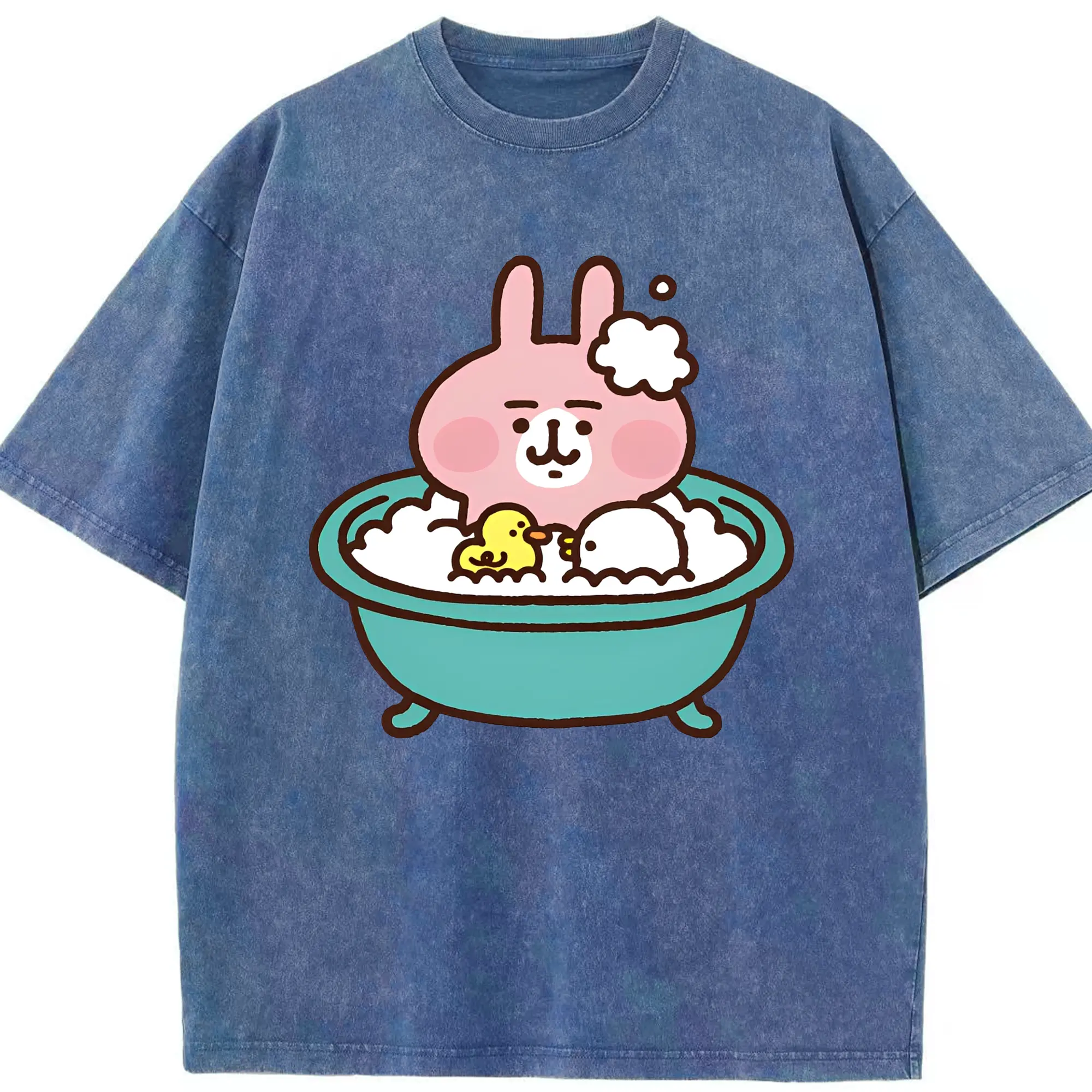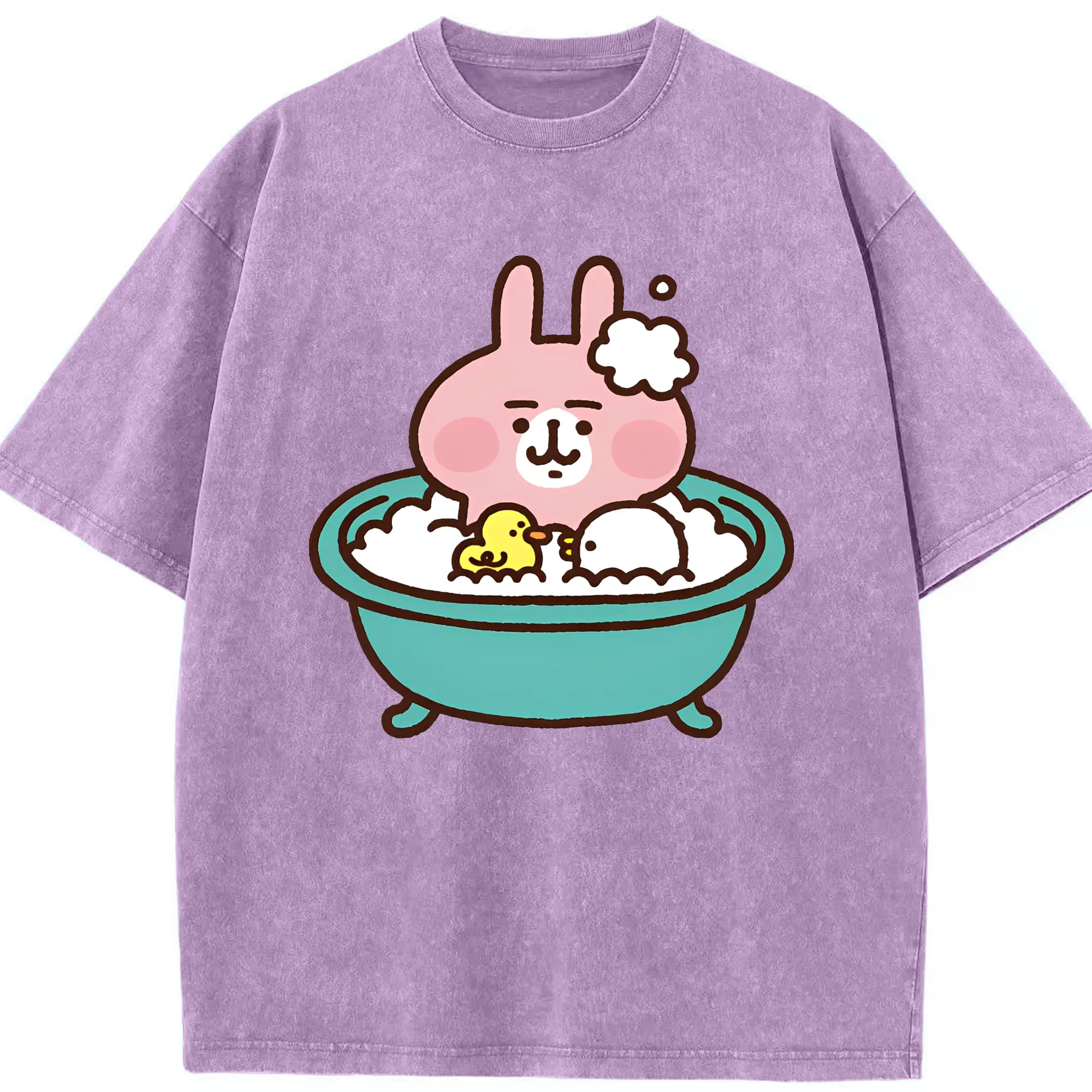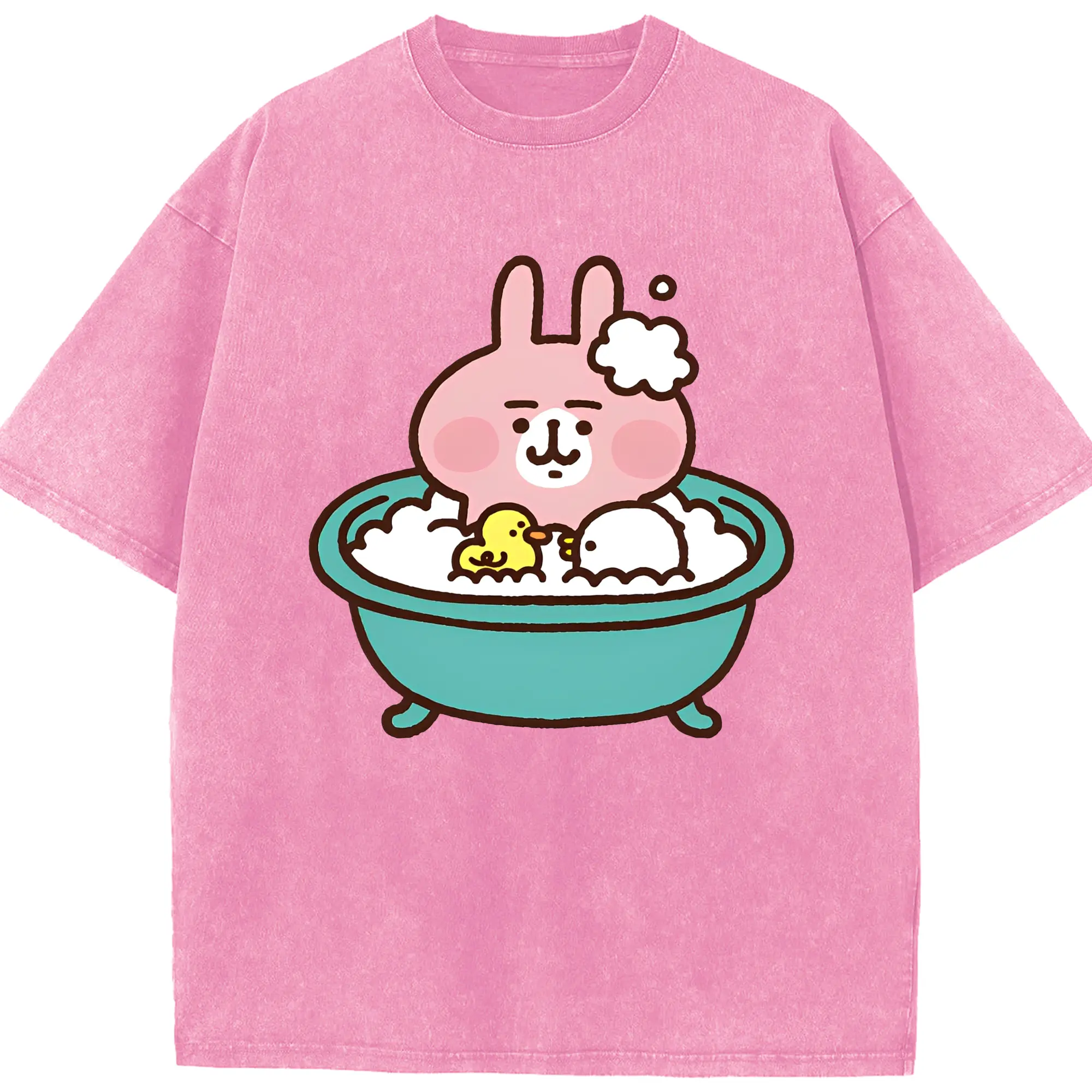 カナヘイ_ピンクのうさぎ - 綿100% 半袖Tシャツ ・ フロントプリント ・ 快適 通気性 ・ 日常使い 散歩 スポーツ用