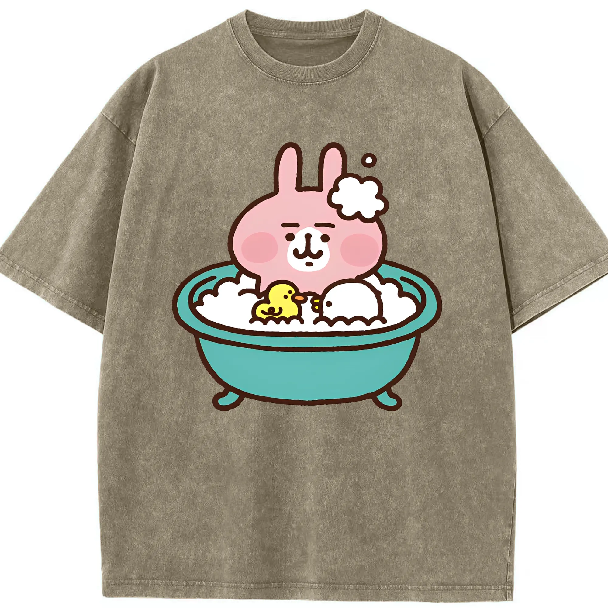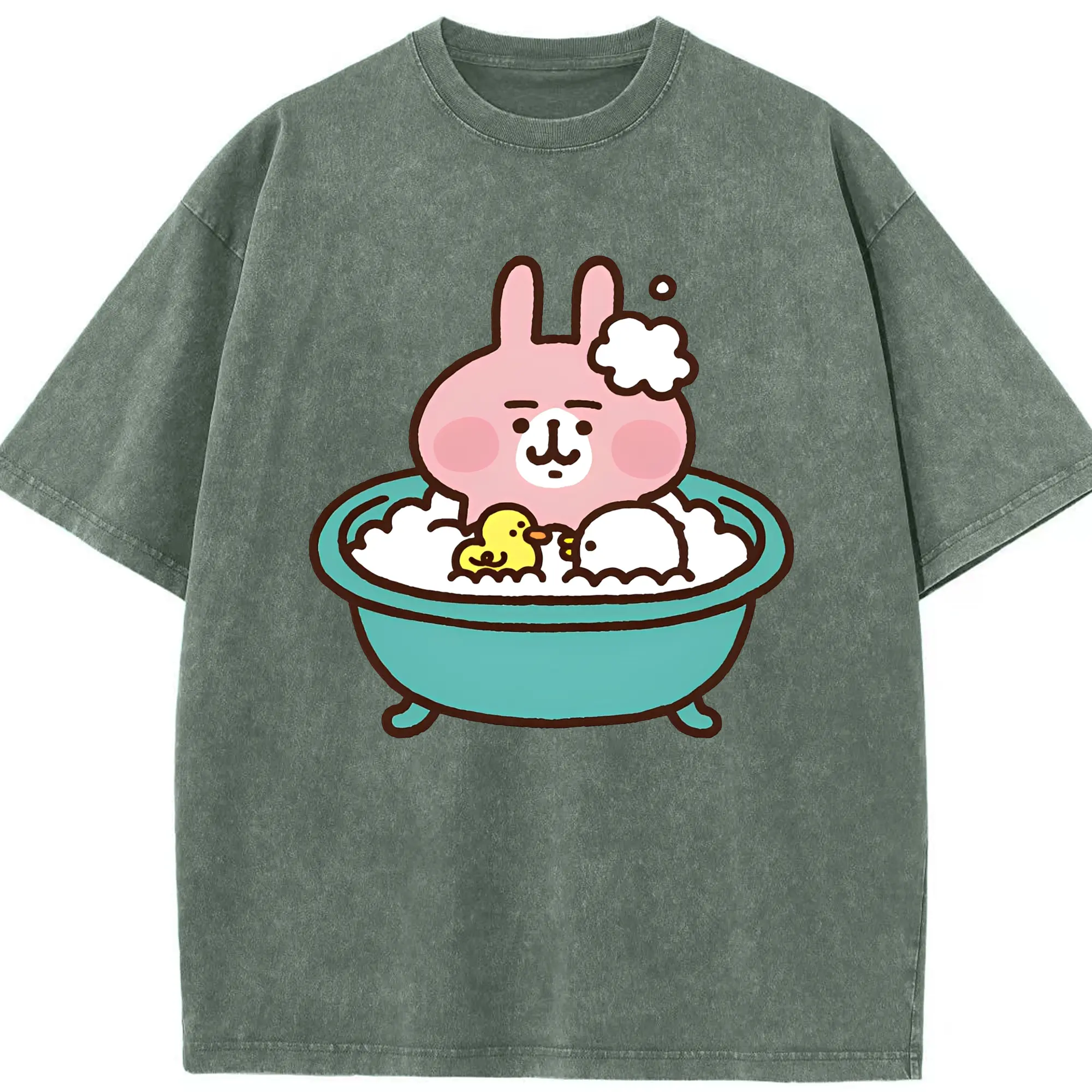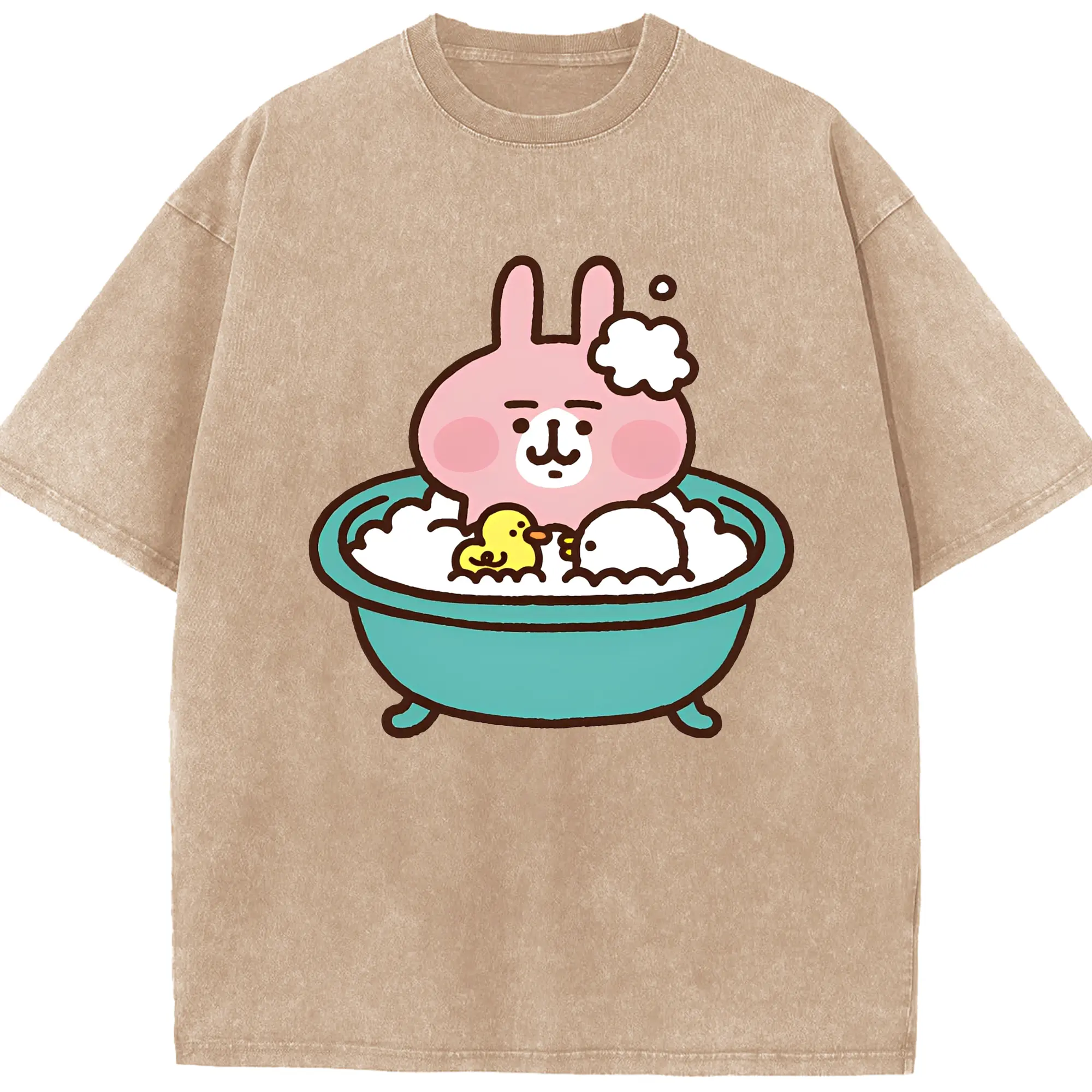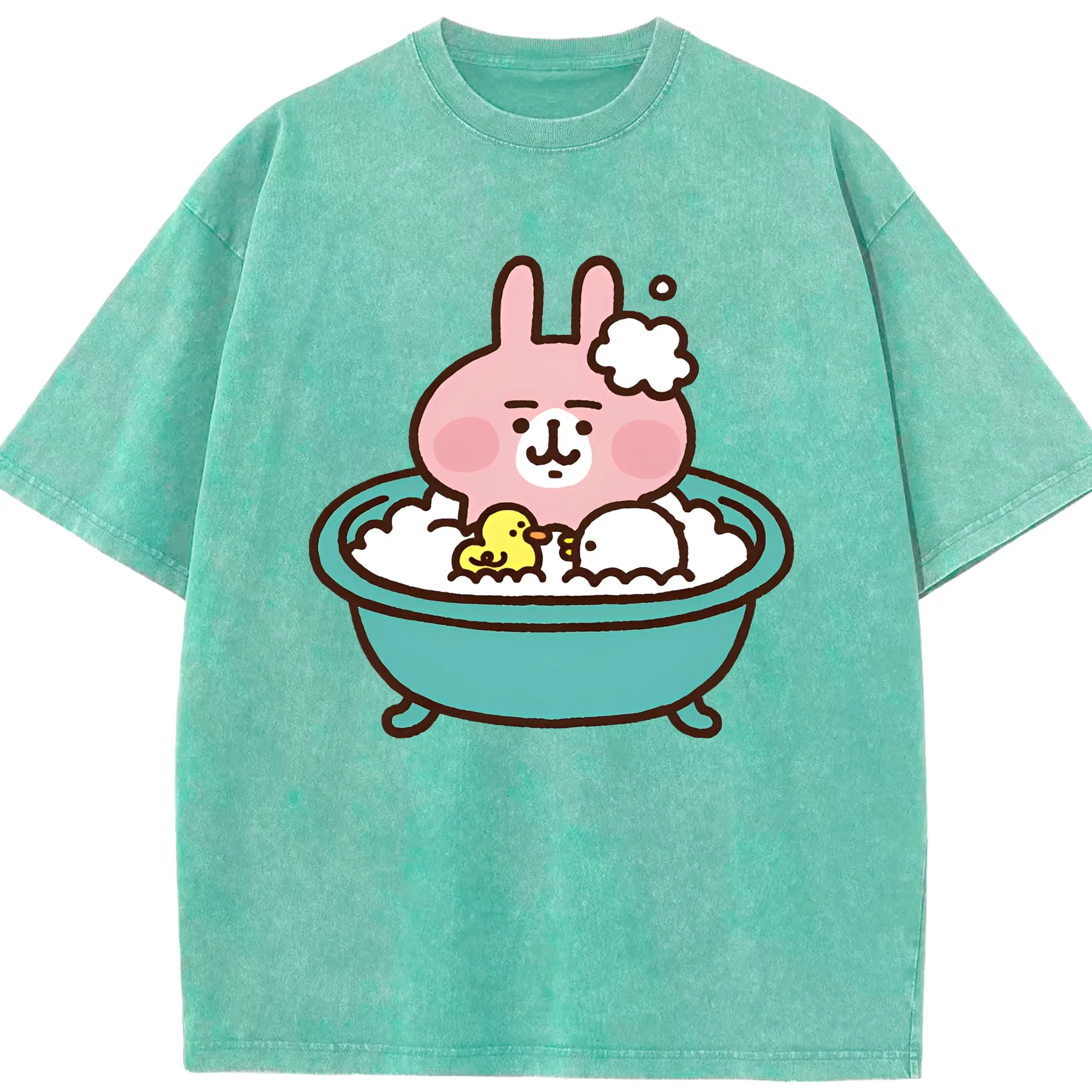 カナヘイ_ピンクのうさぎ - 綿100% 半袖Tシャツ ・ フロントプリント ・ 快適 通気性 ・ 日常使い 散歩 スポーツ用