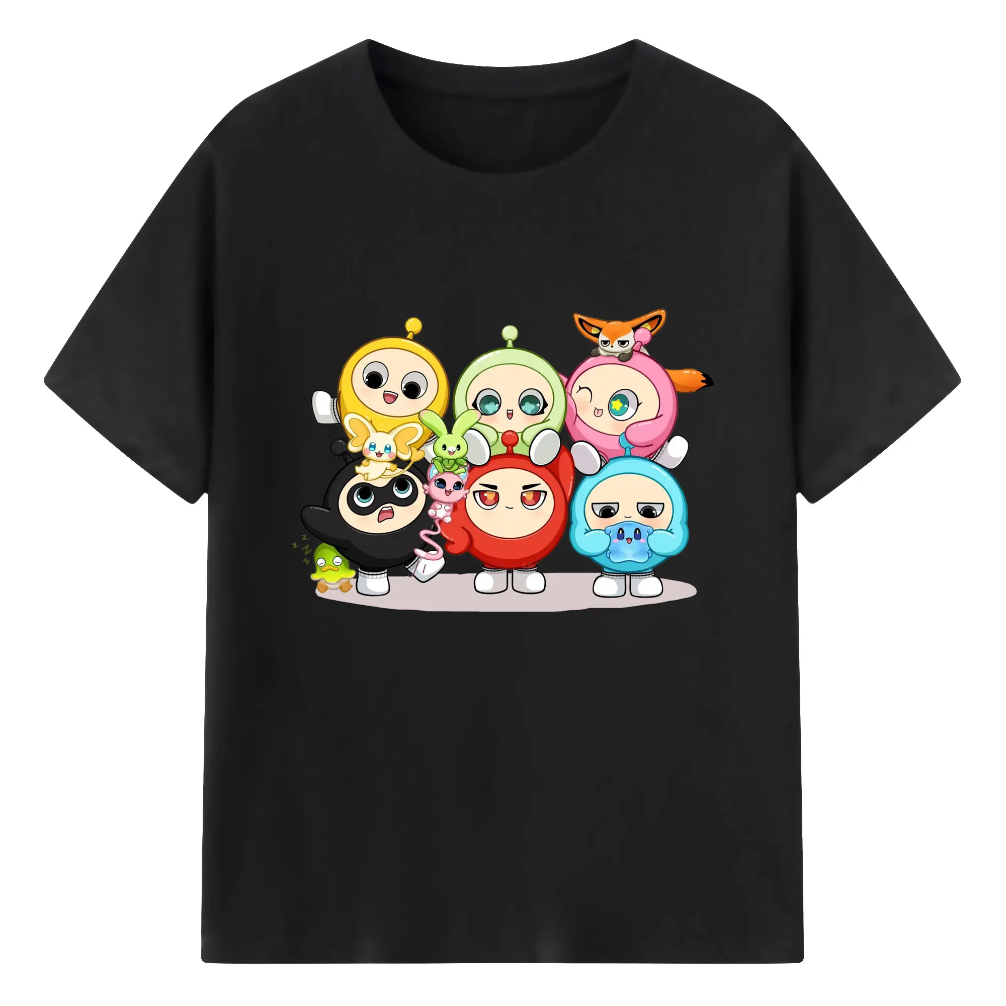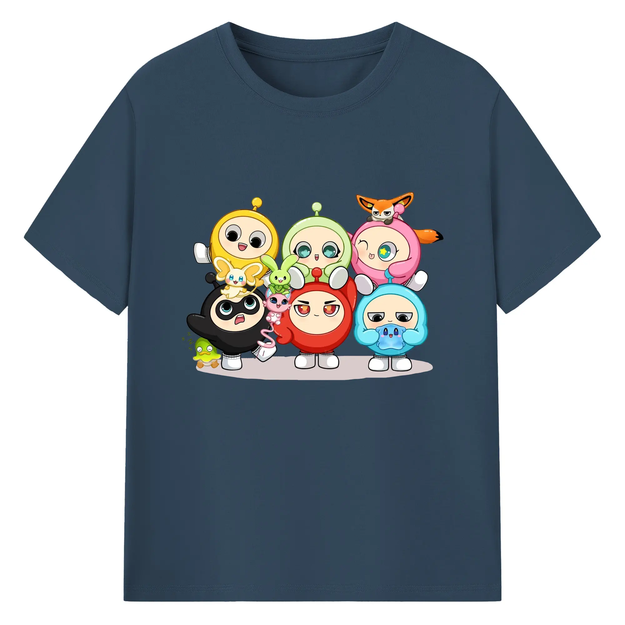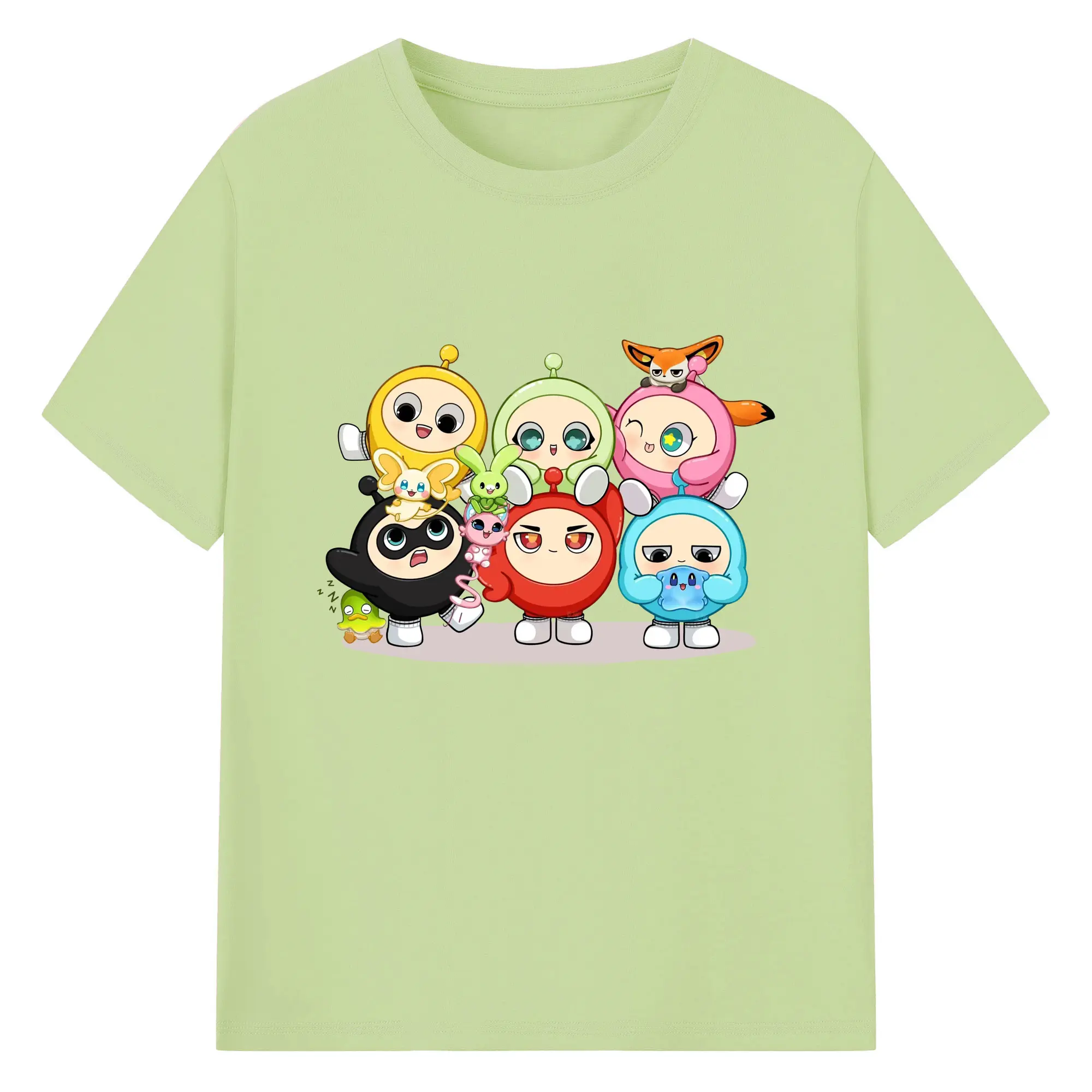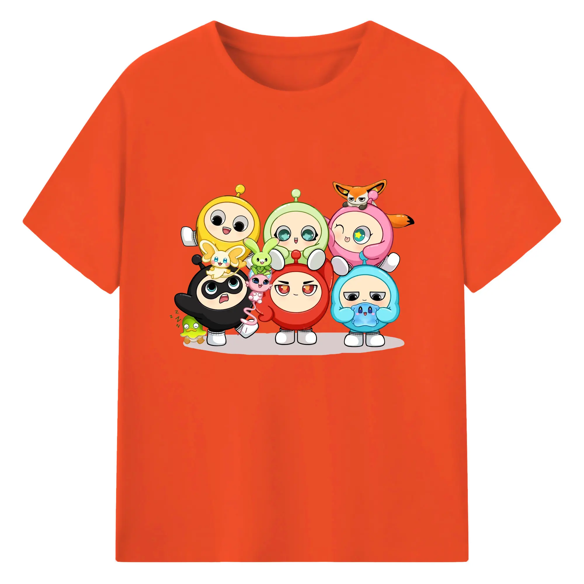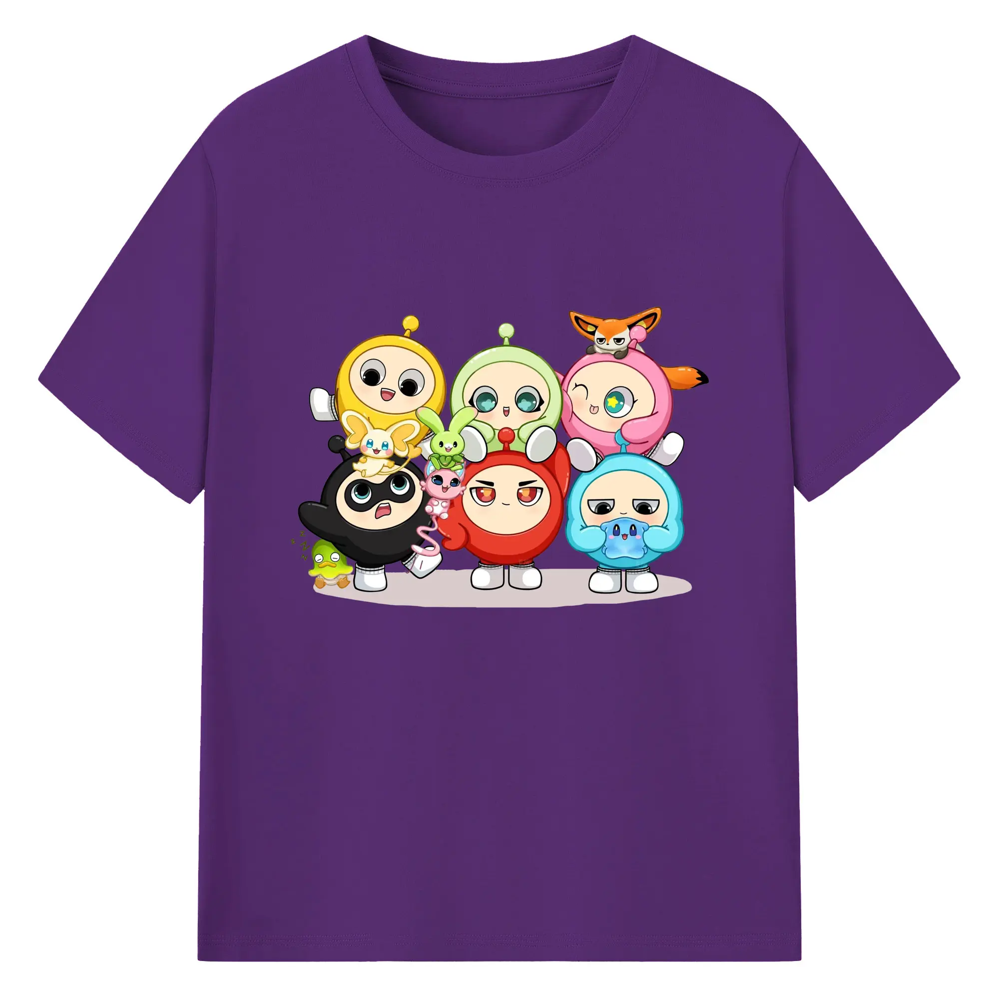 ギーパーティー 蛋仔ファミリー 可愛いキャラクター - 綿100% ヴィンテージ風 半袖Tシャツ ・ フロントプリント ・ 柔らか肌触り ・ 通気性 快適 ・ スポーツ カジュアル 外出用