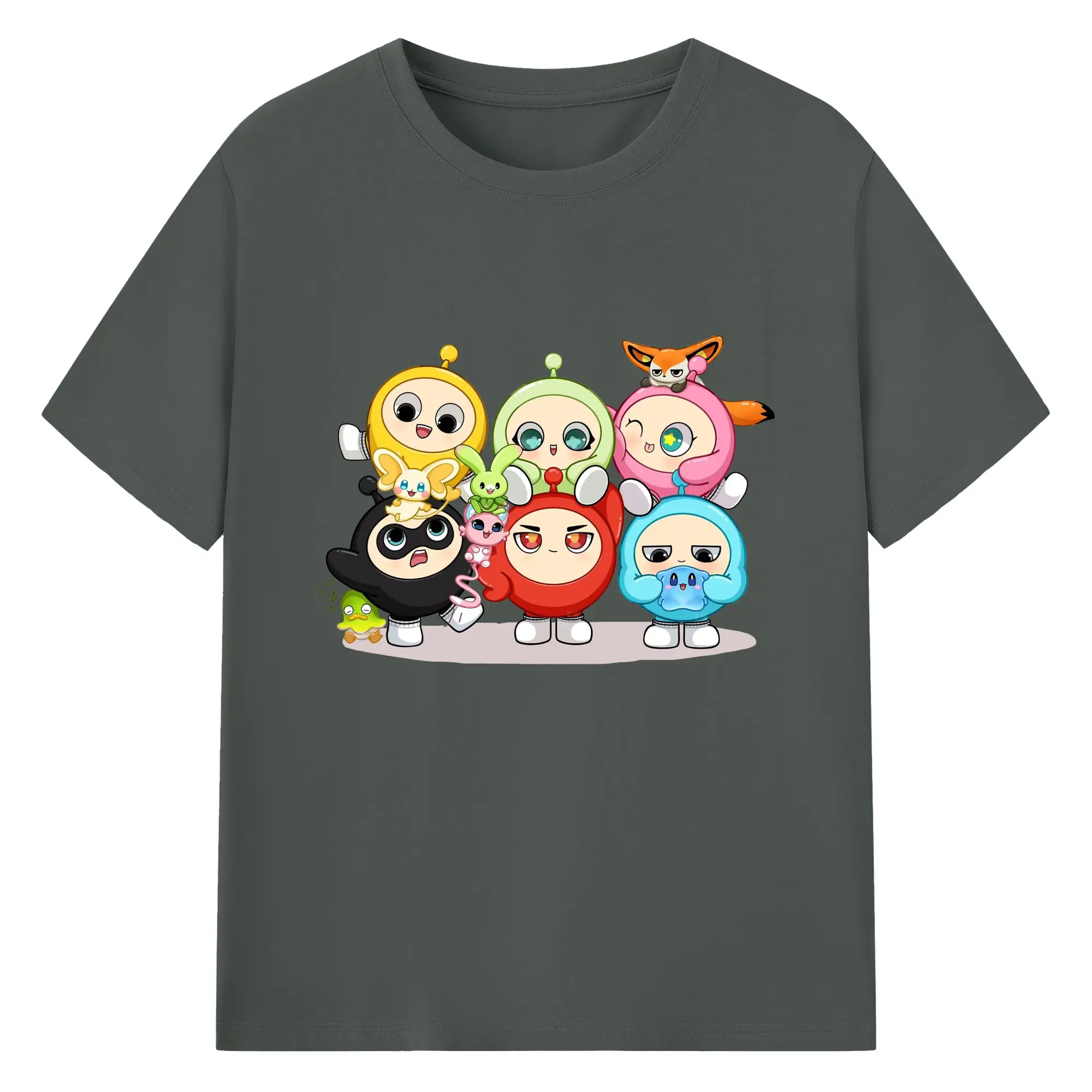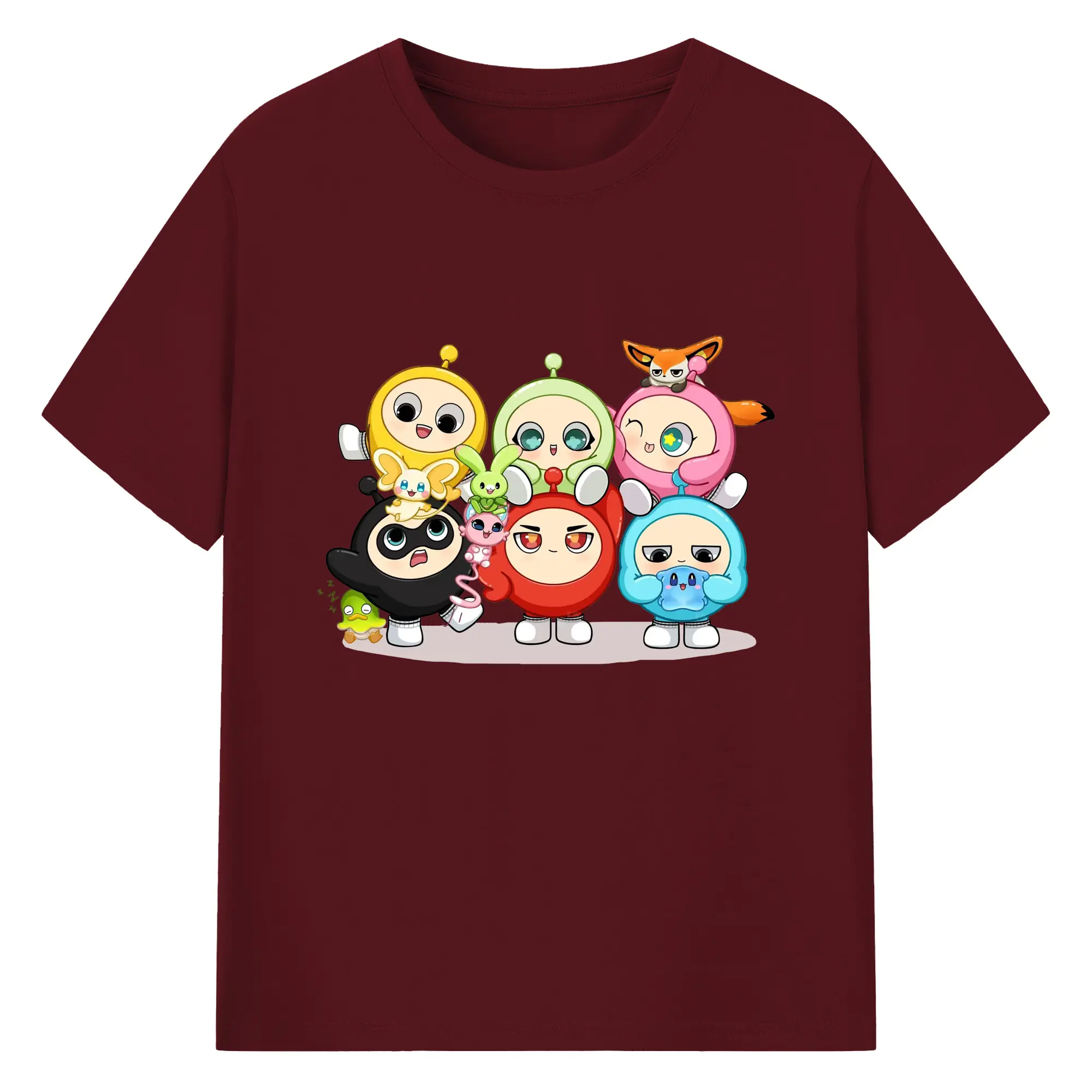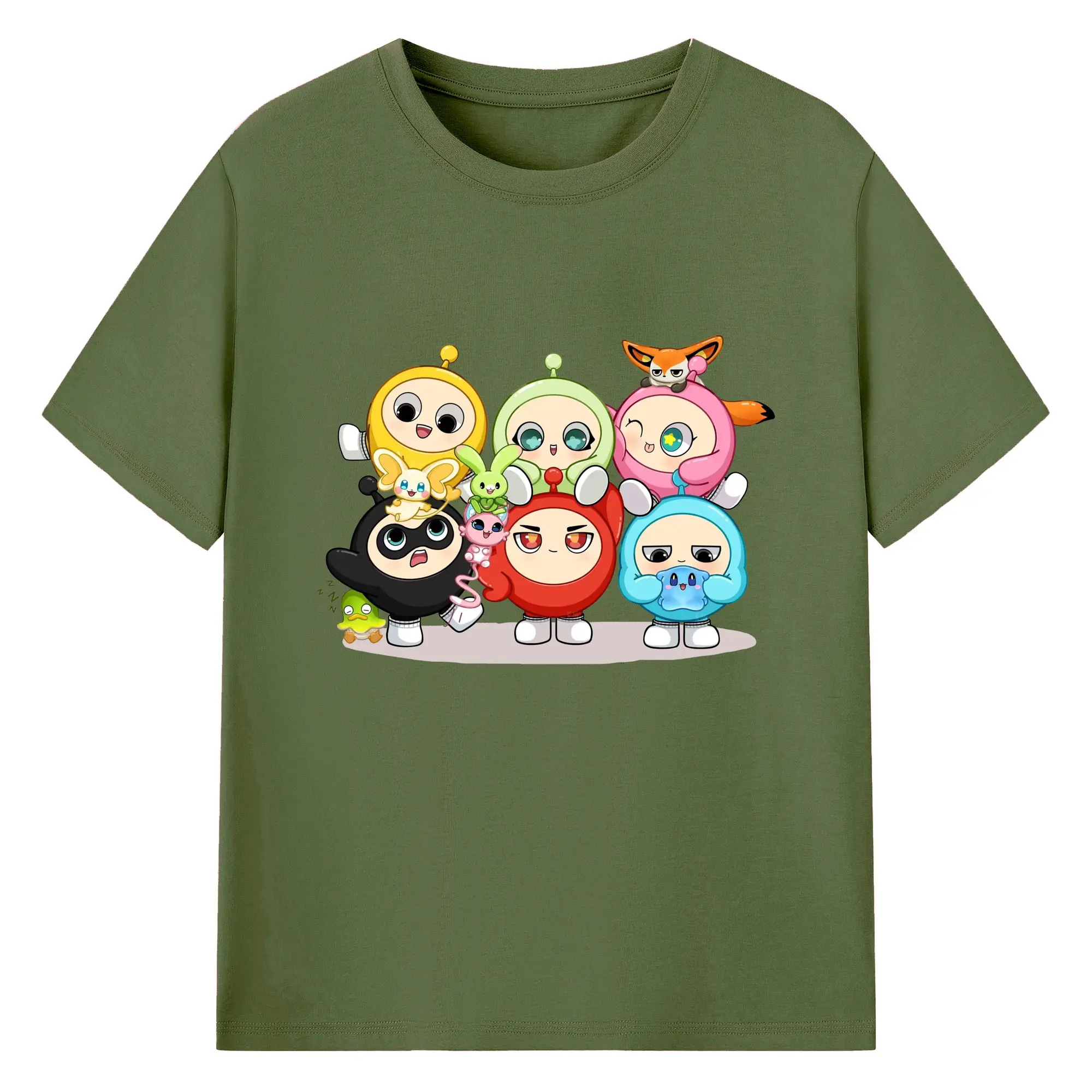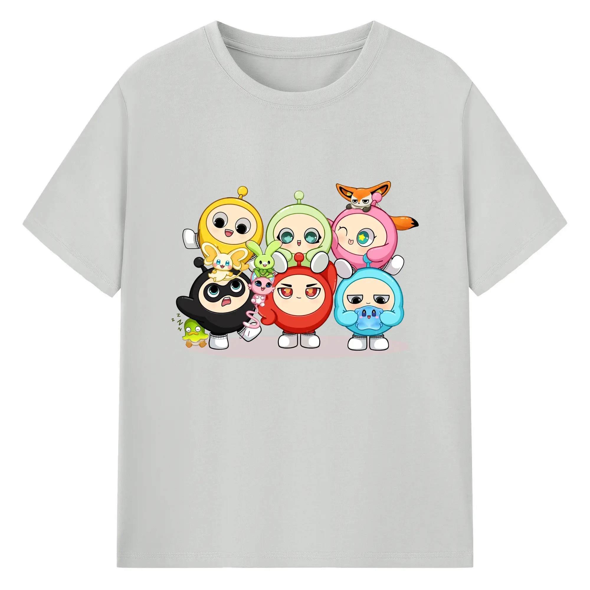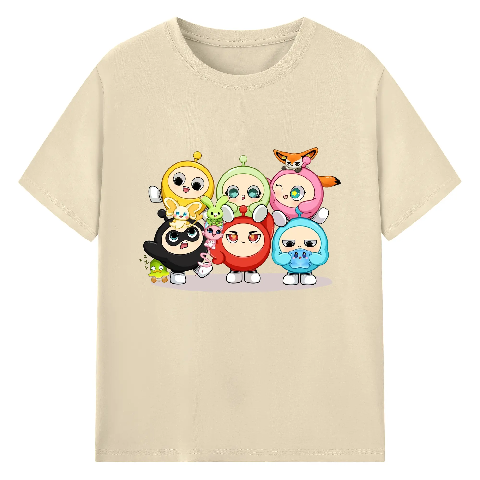 ギーパーティー 蛋仔ファミリー 可愛いキャラクター - 綿100% ヴィンテージ風 半袖Tシャツ ・ フロントプリント ・ 柔らか肌触り ・ 通気性 快適 ・ スポーツ カジュアル 外出用
