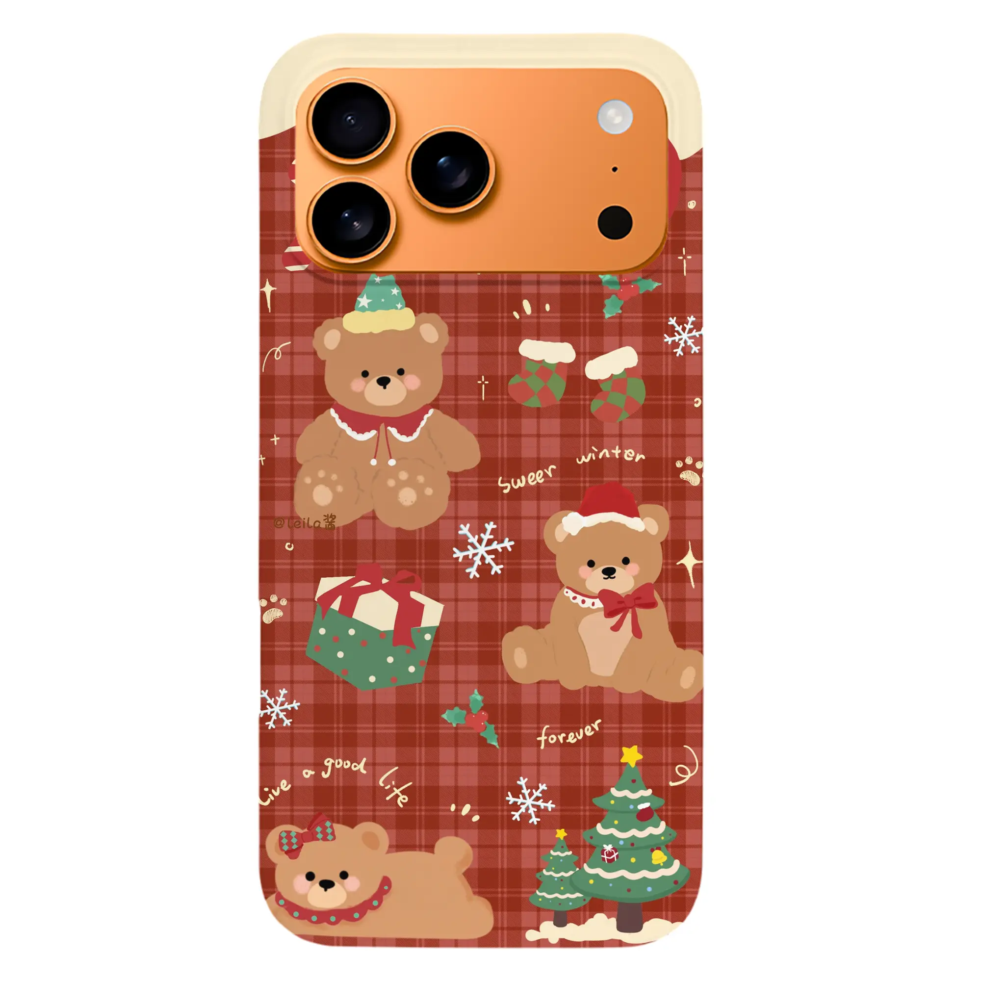 クリスマスくまスマホ|冬限定 - iPhone 17 シリーズ シリコンケース 薄型 耐衝撃 指紋防止 ソフトタッチカバー 精密フィット 傷防止 保護ケース iPhone 17/17 Air/17 Pro/17 Pro Max 対応