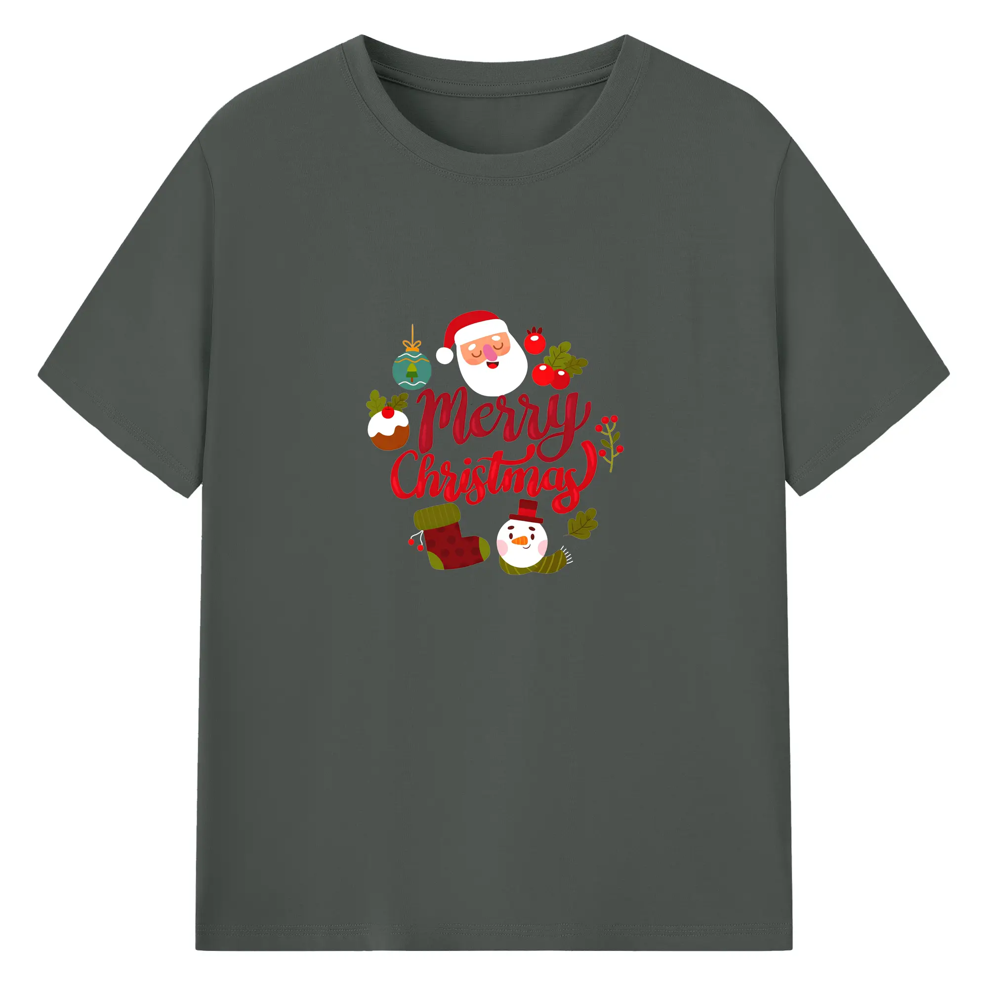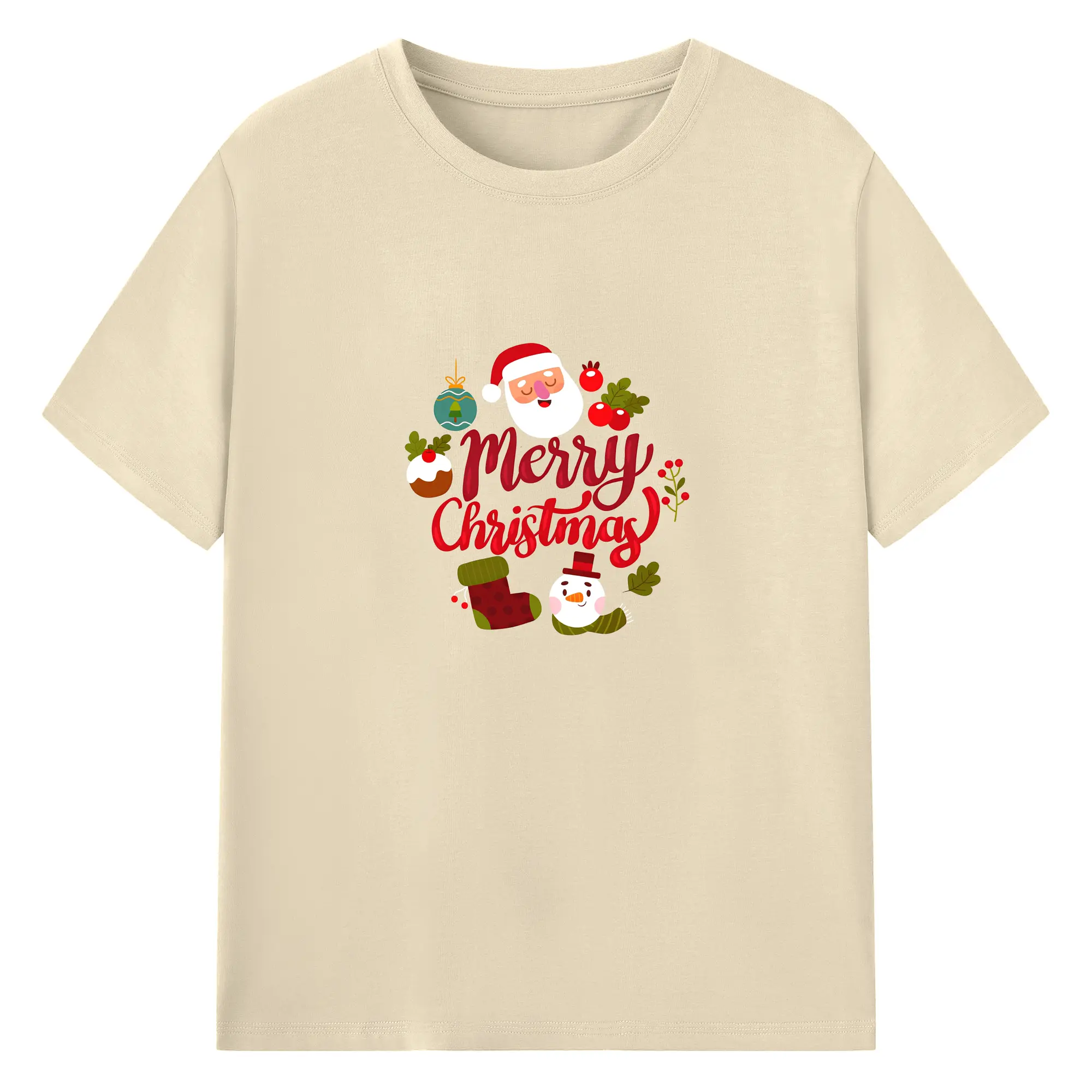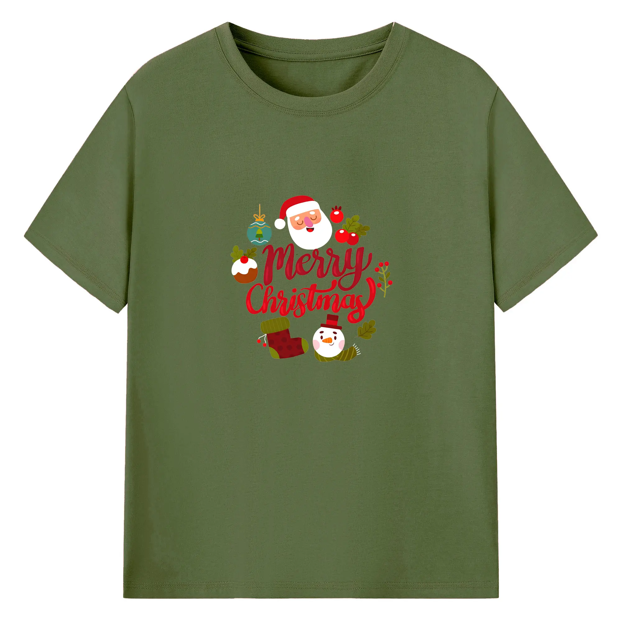 トナカイとジンジャーブレッドマン🦌🎄 可愛いクリスマスモチーフ - 綿100% 半袖Tシャツ ・ フロントプリント ・ 快適 通気性 ・ 日常使い 散歩 スポーツ用