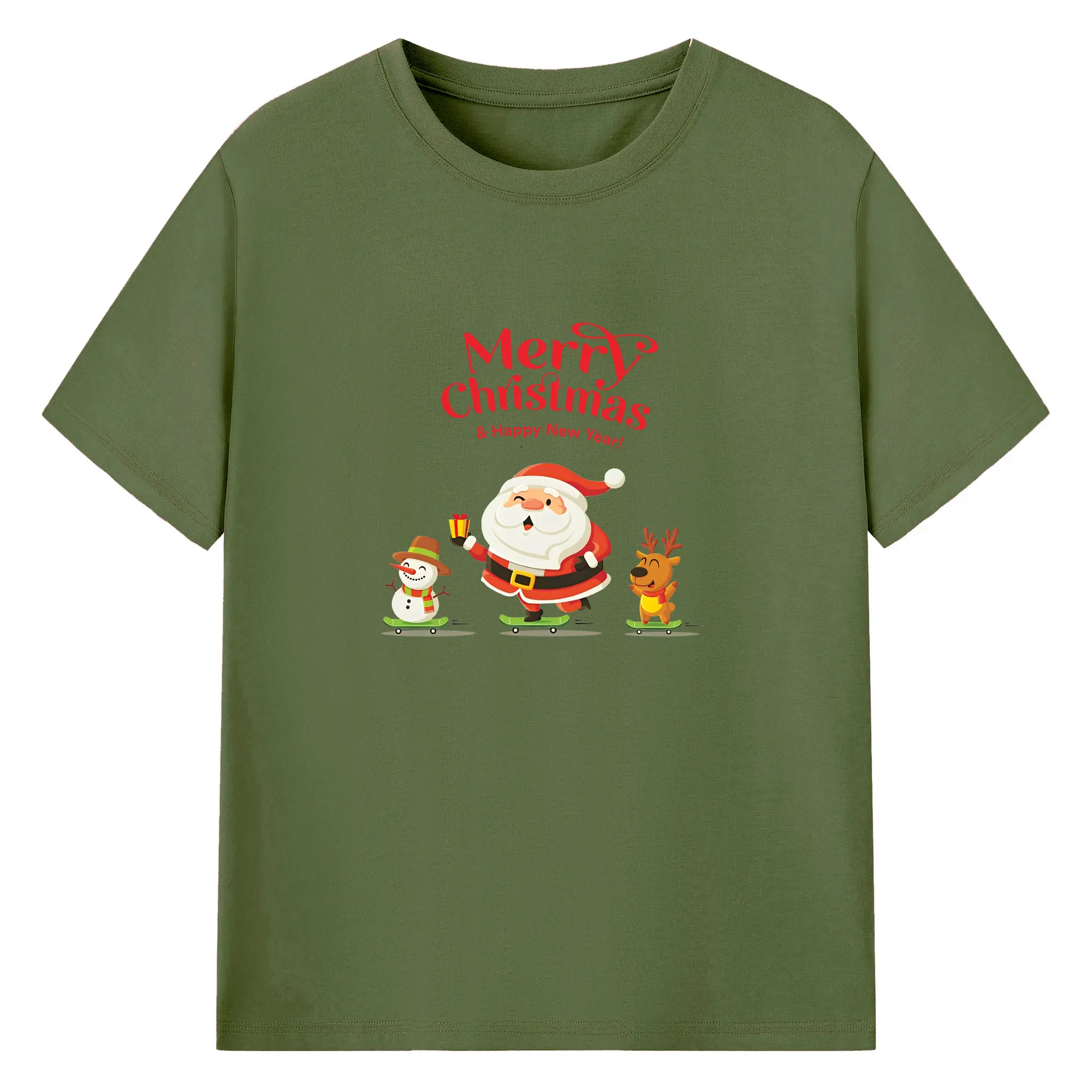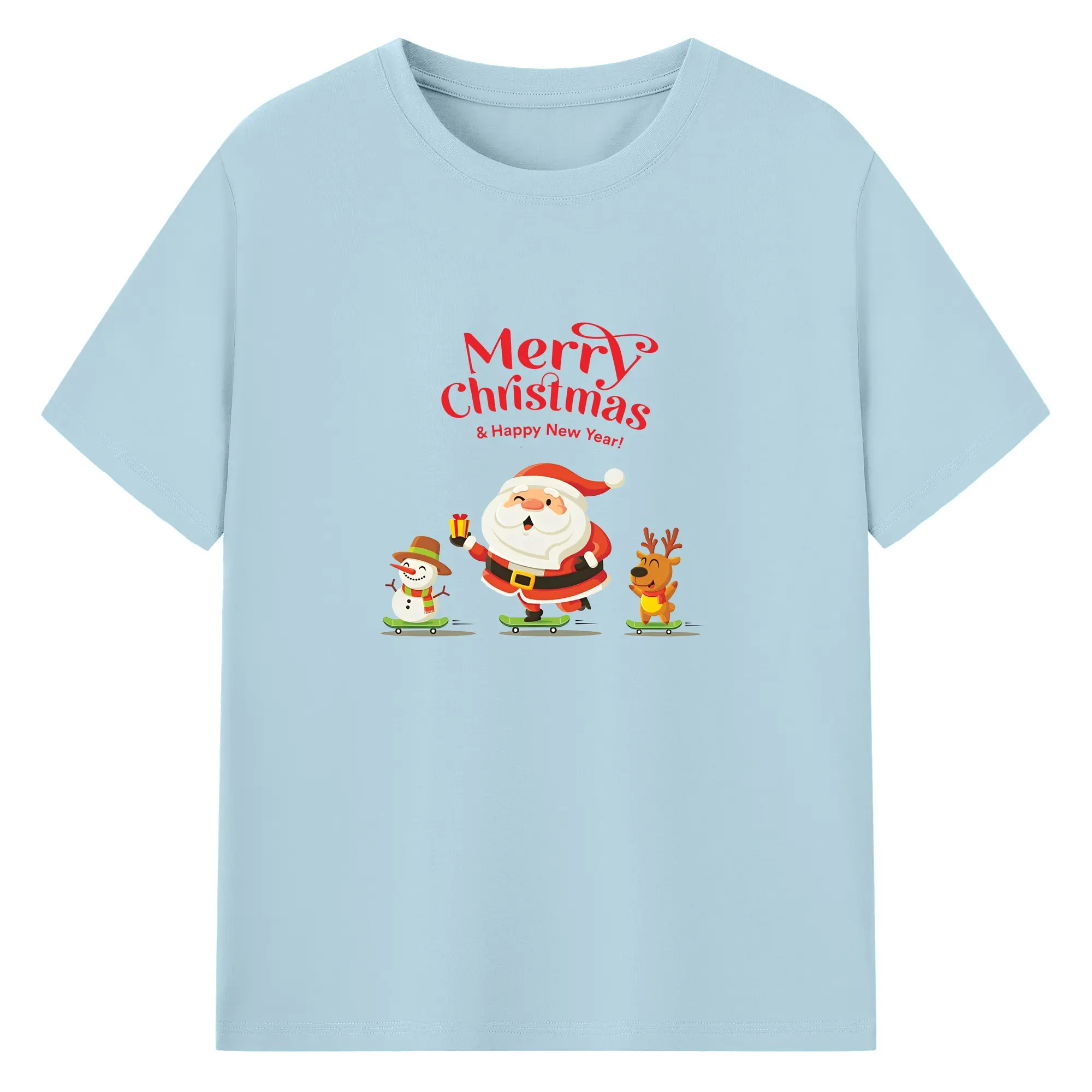 ドラえもん クリスマス限定🎄 サンタ帽&プレゼント可愛い冬デザイン - 綿100% 半袖Tシャツ ・ フロントプリント ・ 快適 通気性 ・ 日常使い 散歩 スポーツ用