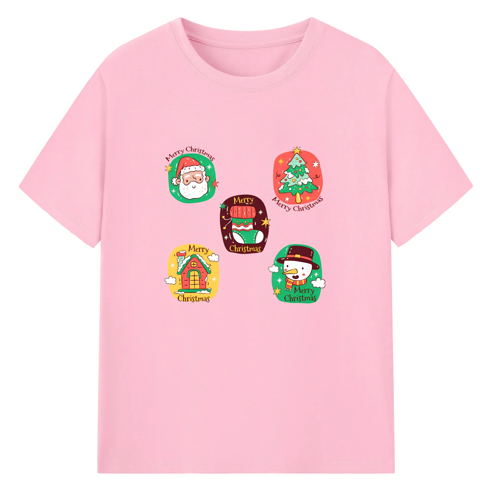 蛋仔派对粉色小熊可爱 - 綿100% 半袖Tシャツ ・ フロントプリント ・ 快適 通気性 ・ 日常使い 散歩 スポーツ用