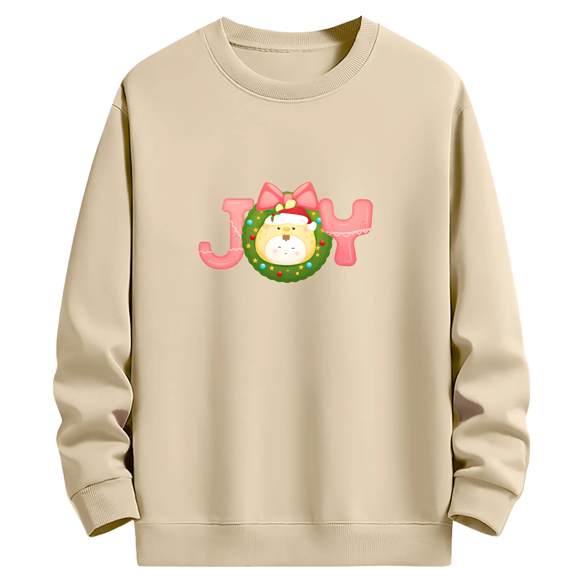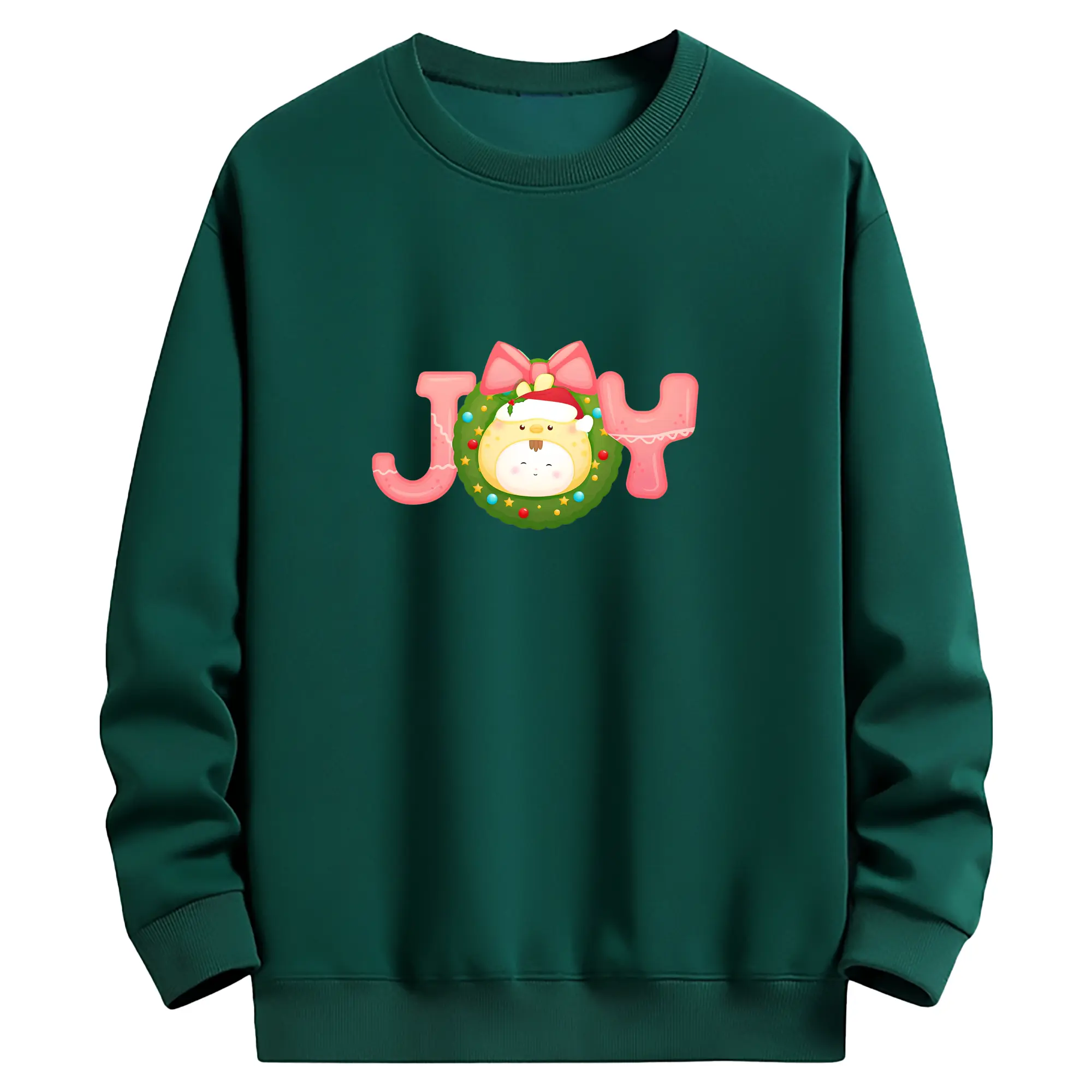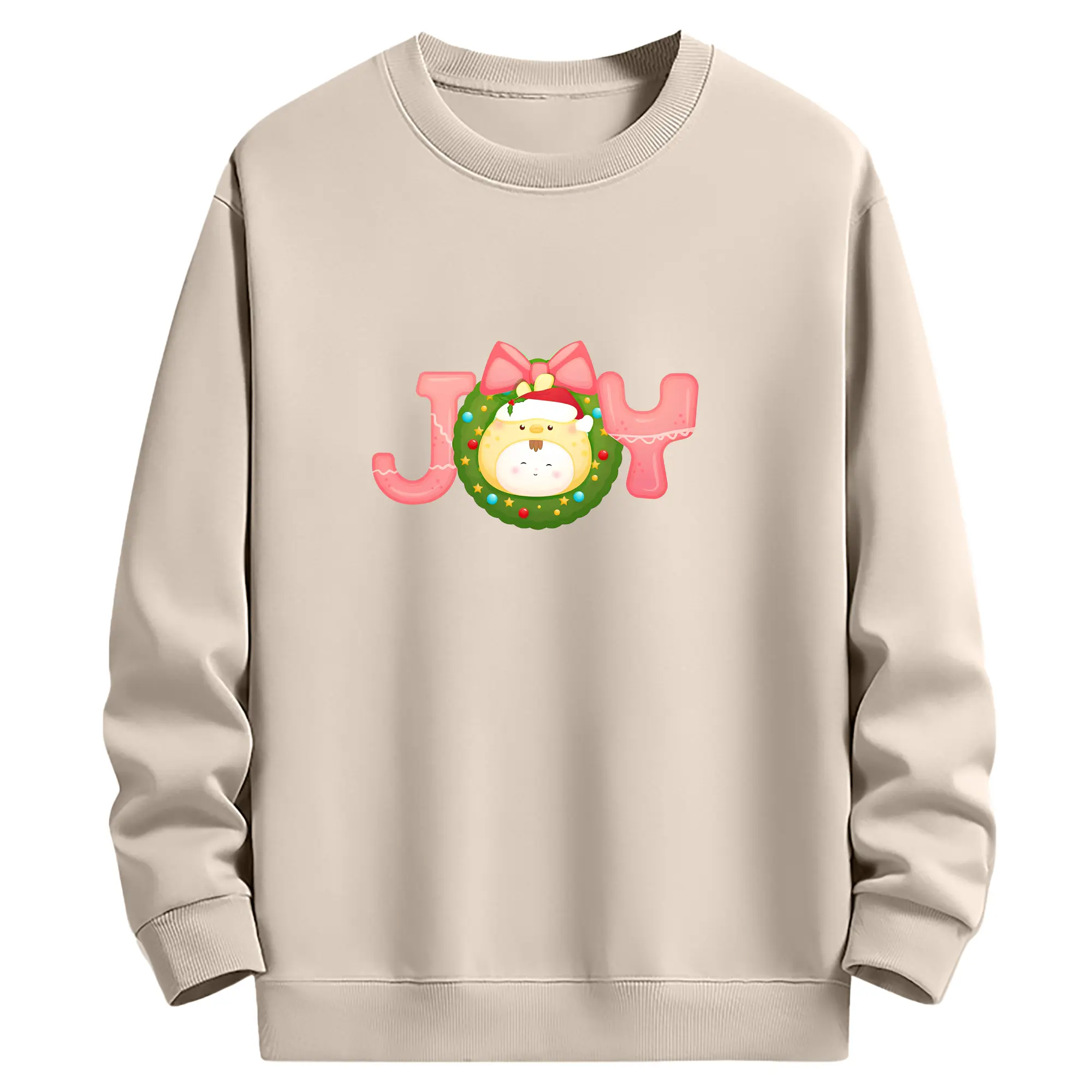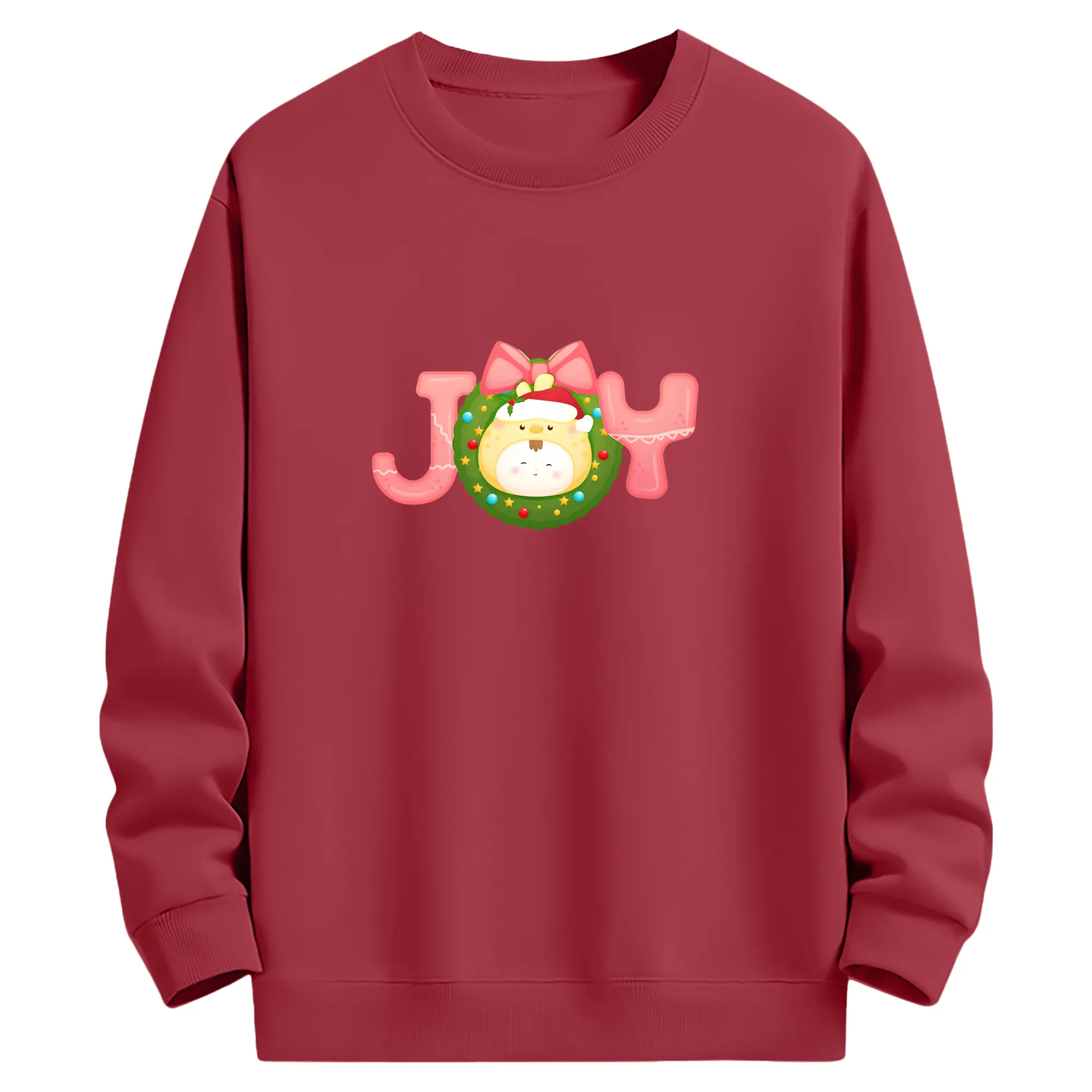 クリスマスJoy✨ 花輪入り冬限定デザイン - 綿100% 半袖Tシャツ ・ フロントプリント ・ 快適 通気性 ・ 日常使い 散歩 スポーツ用