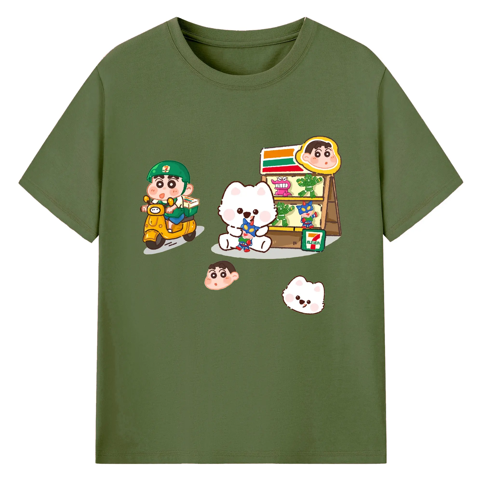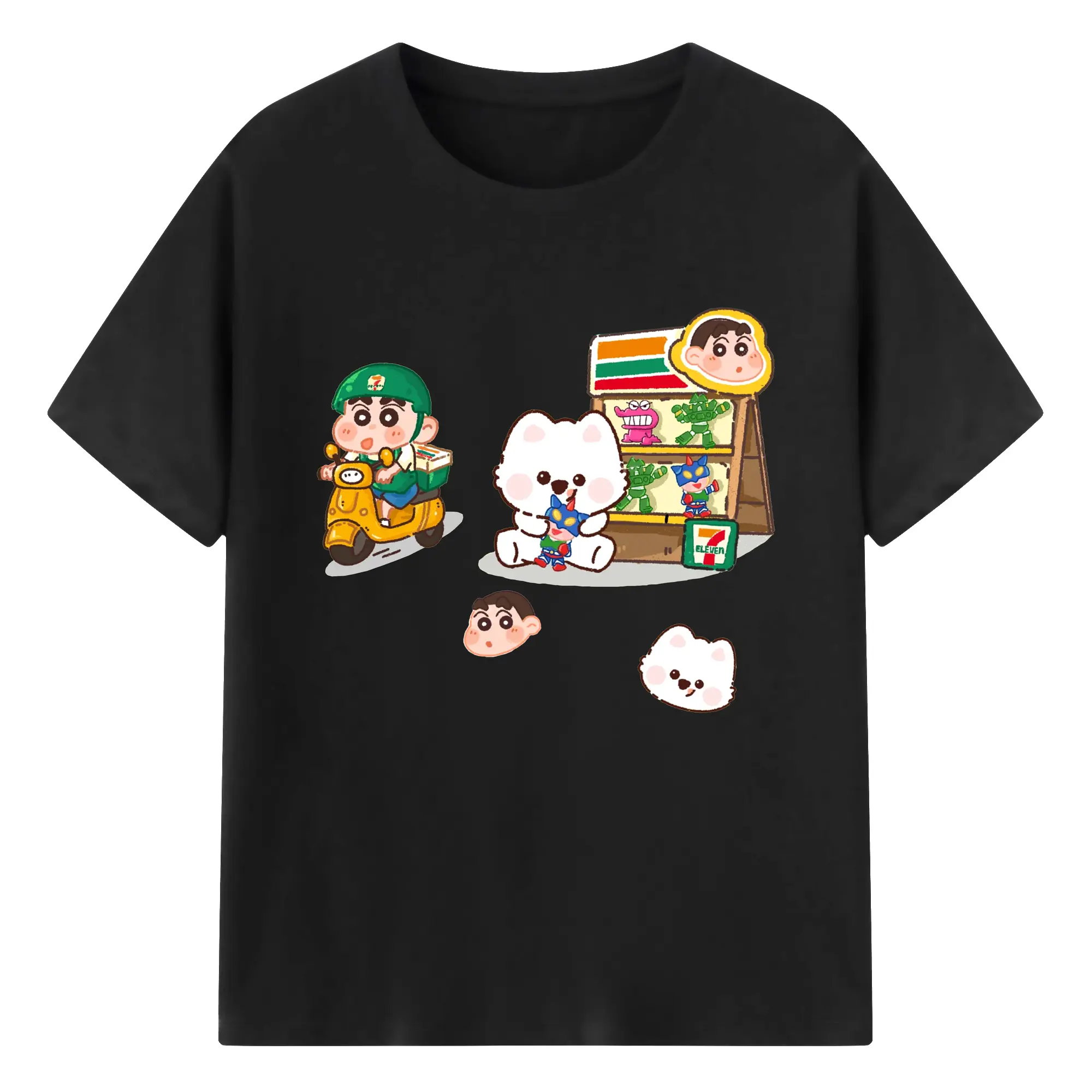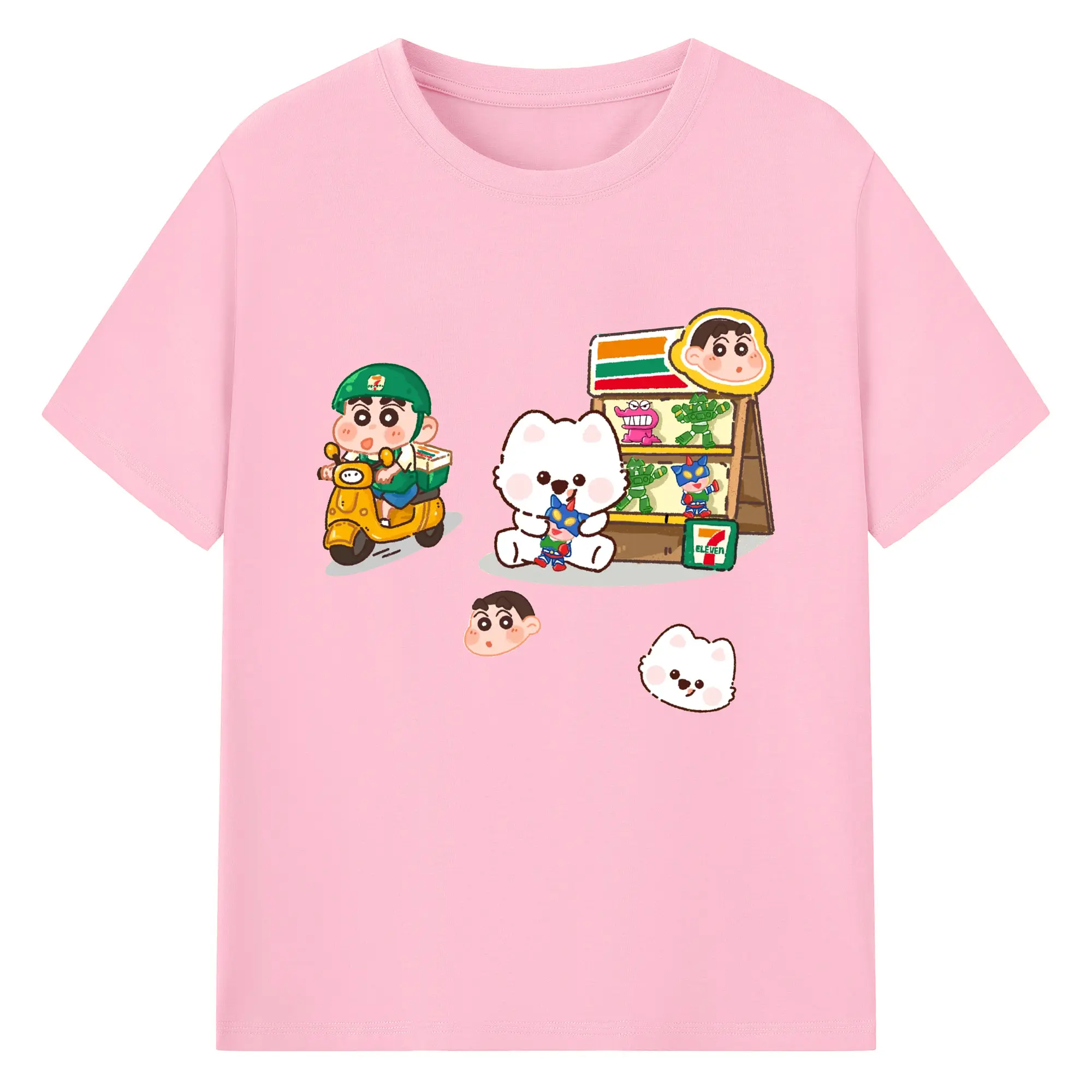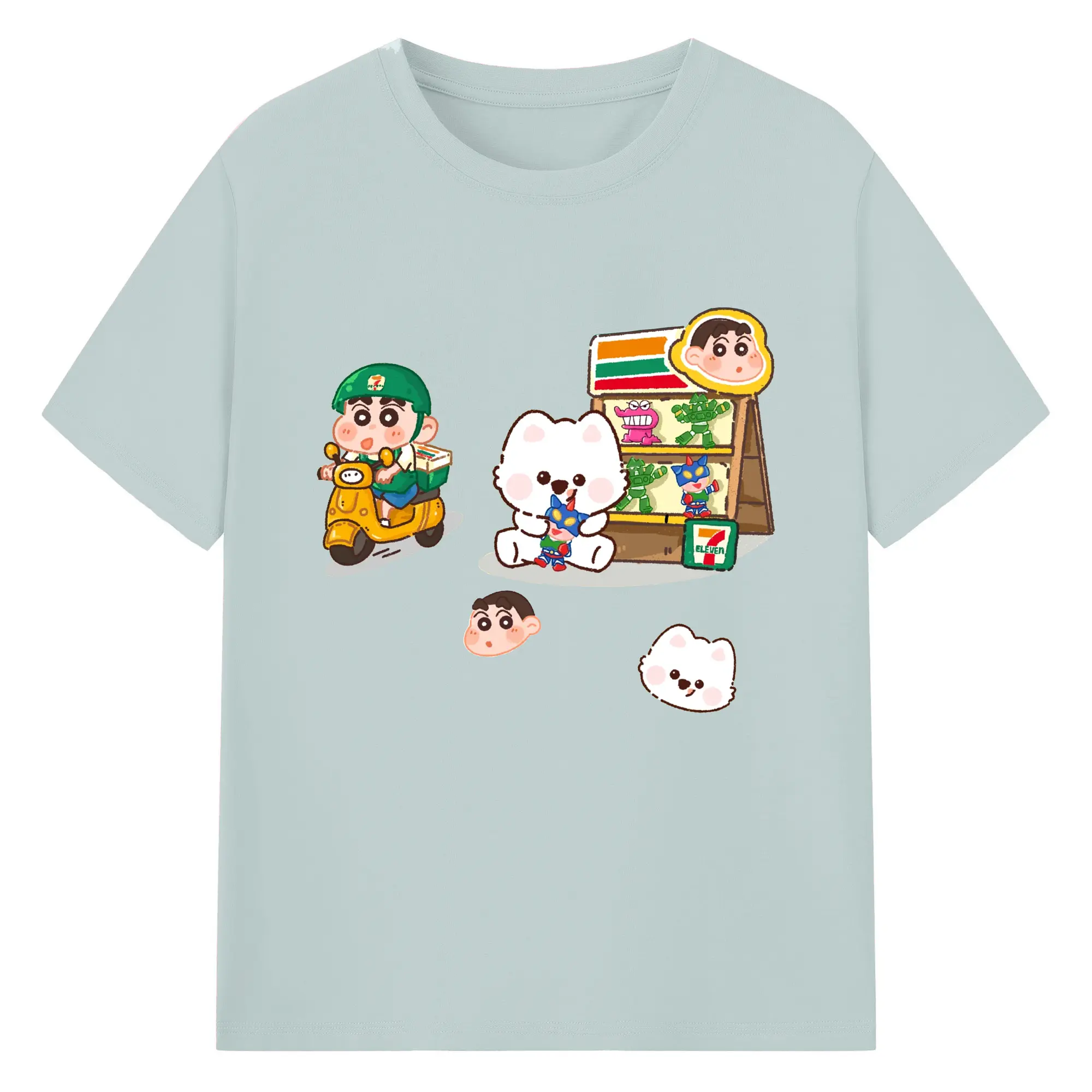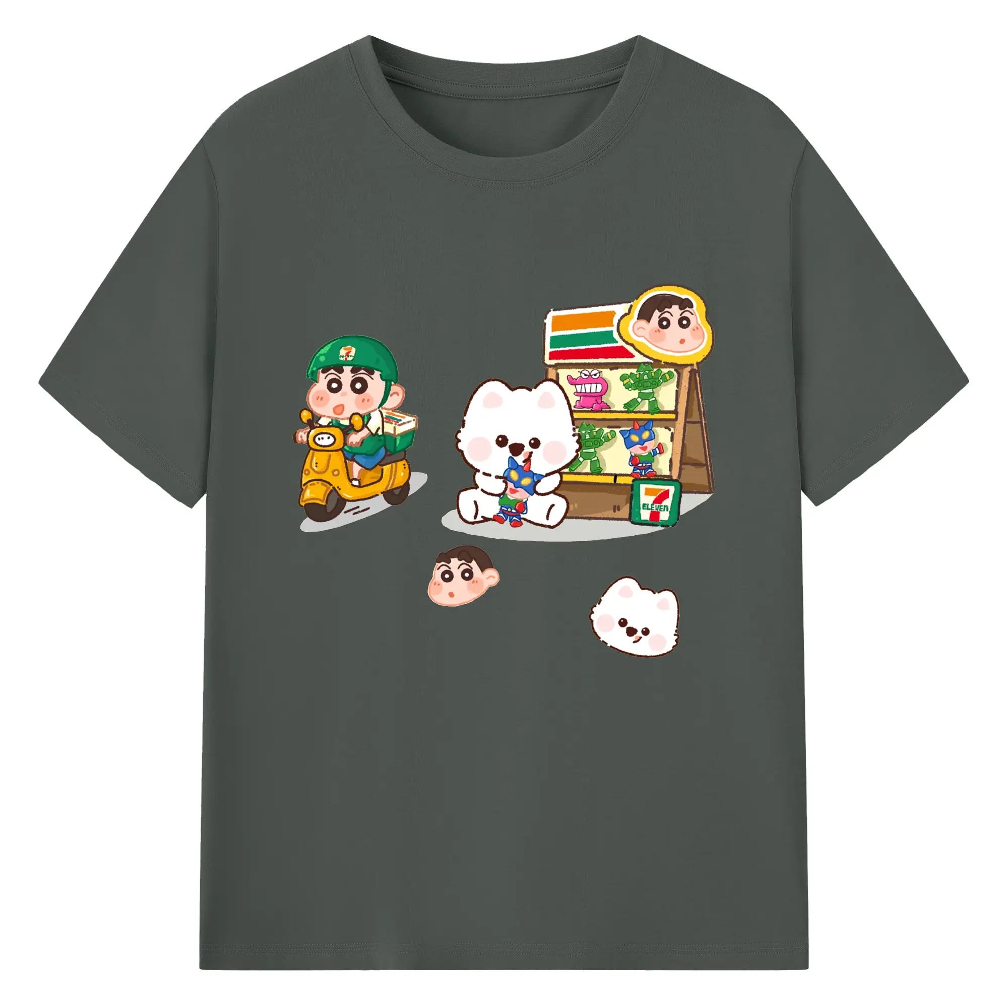 クレヨンしんちゃん × 7-Eleven 限定コラボ - 綿100% ヴィンテージ風 半袖Tシャツ ・ フロントプリント ・ 柔らか肌触り ・ 通気性 快適 ・ スポーツ カジュアル 外出用