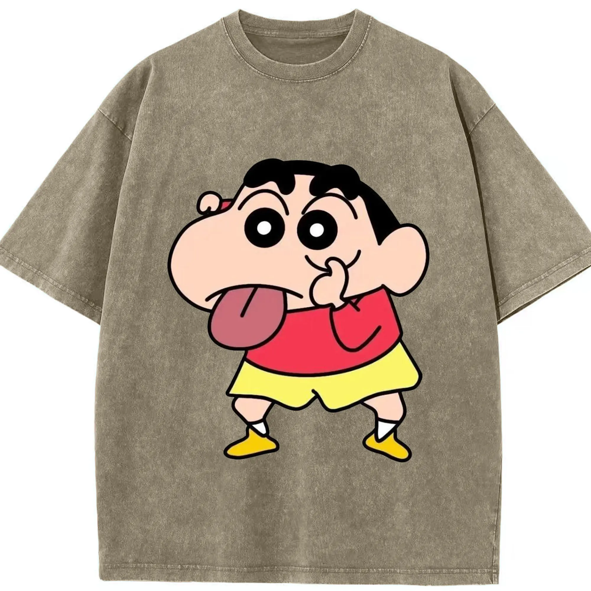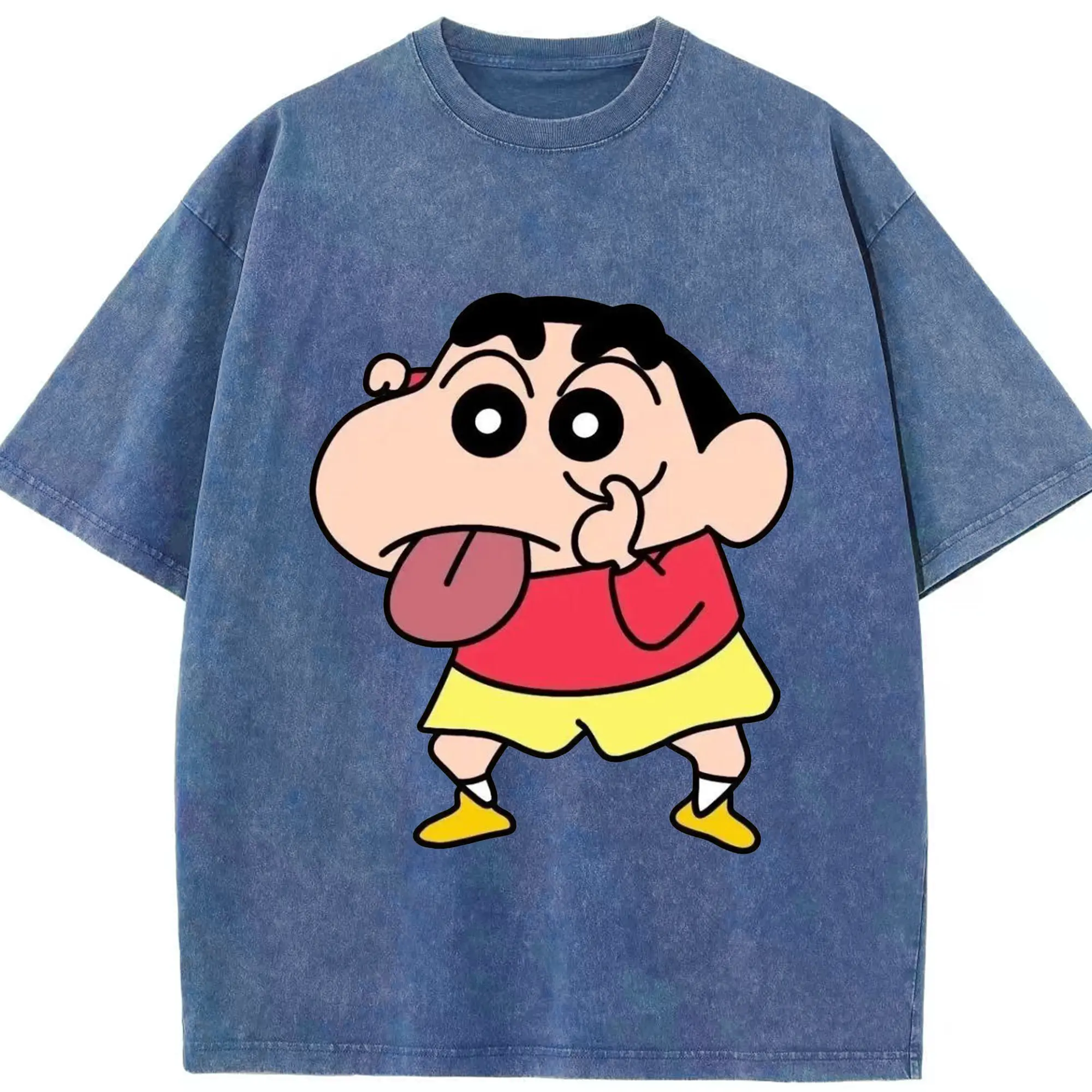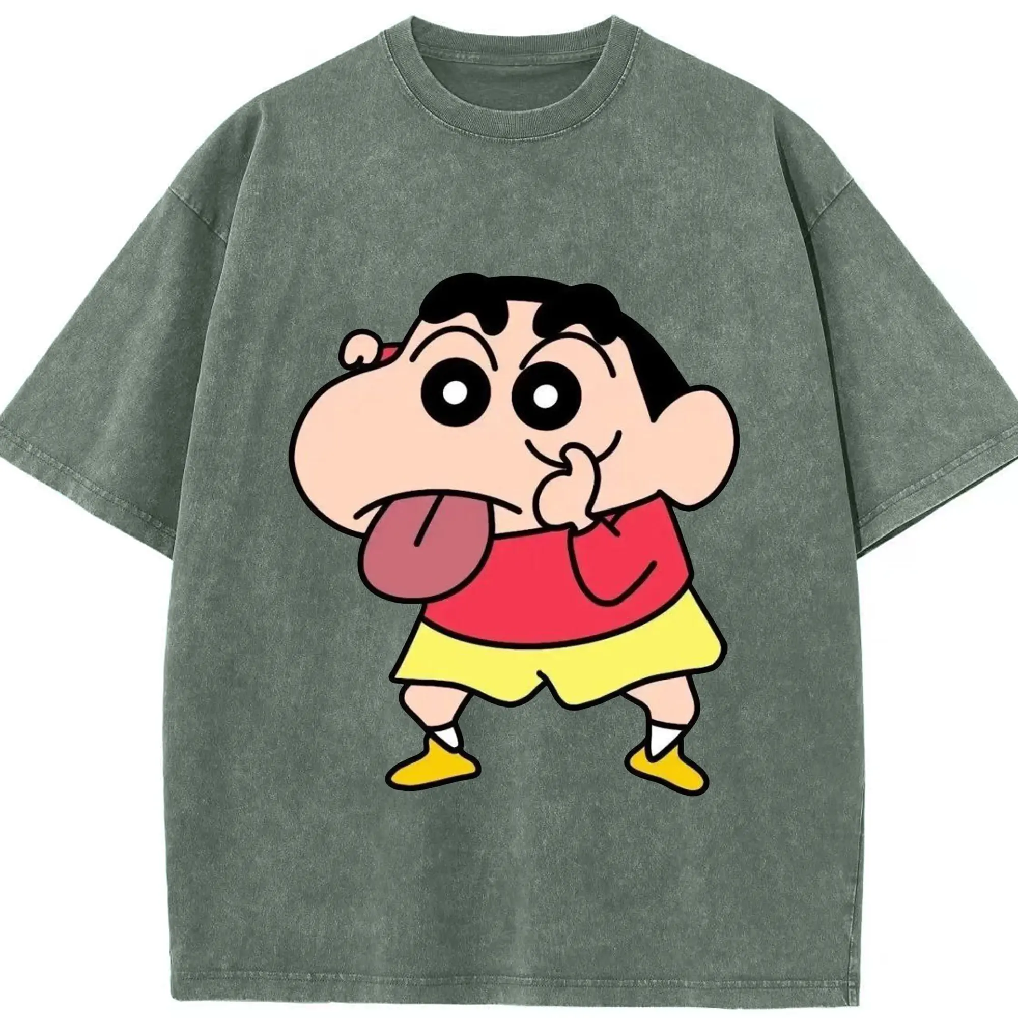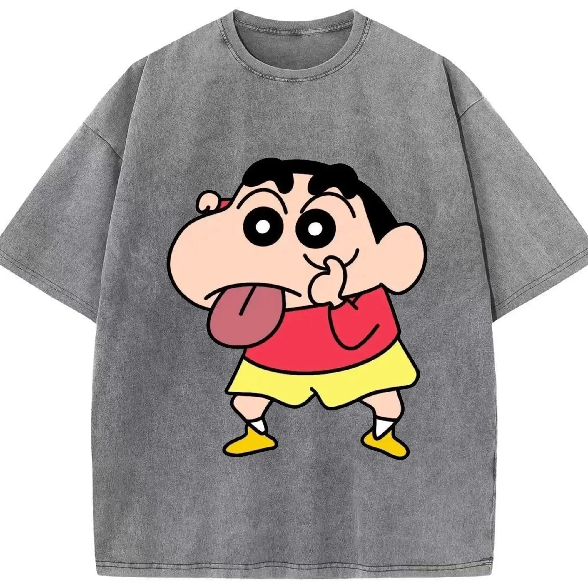 クレヨンしんちゃん おもしろ顔 カジュアルウェア - 綿100% 半袖Tシャツ ・ フロントプリント ・ 快適 通気性 ・ 日常使い 散歩 スポーツ用
