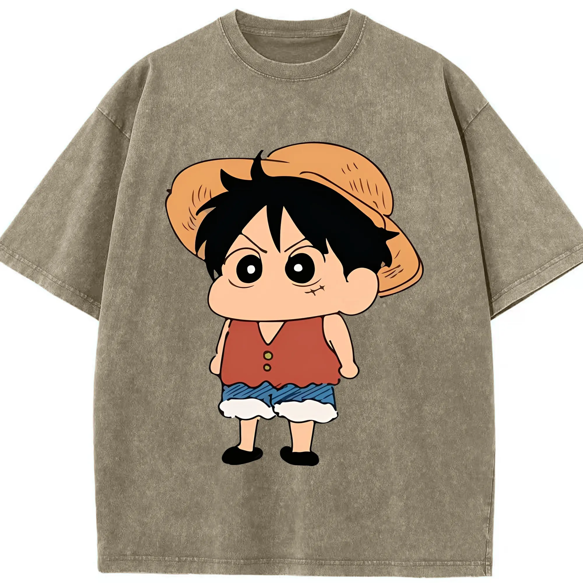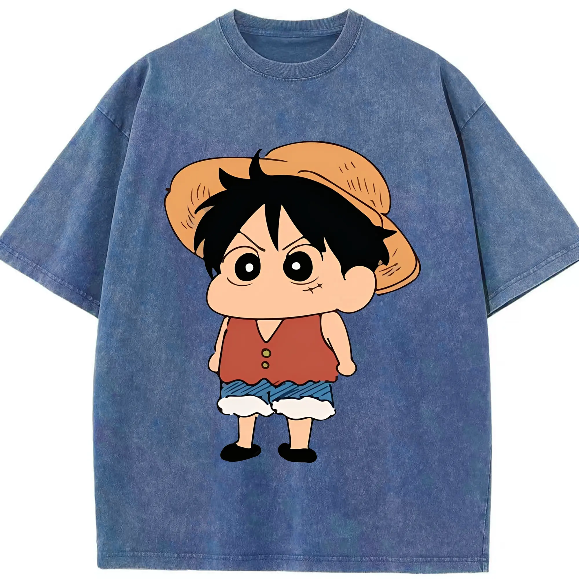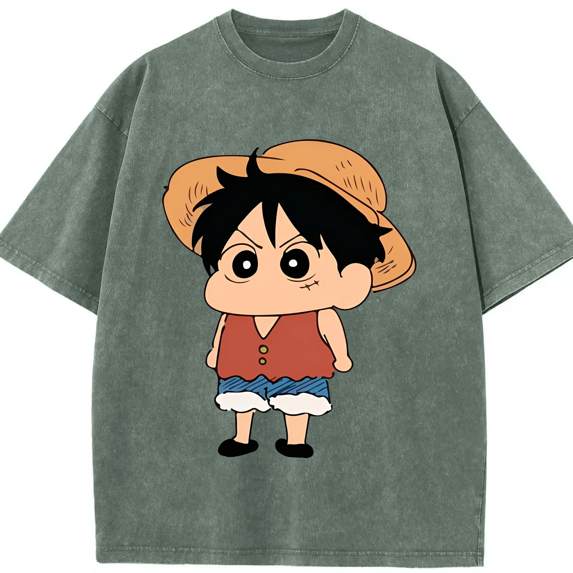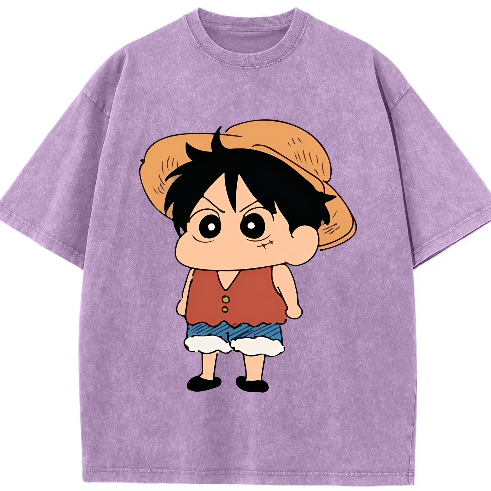 クレヨンしんちゃん × ルフィ 限定コラボ - 綿100% 半袖Tシャツ ・ フロントプリント ・ 快適 通気性 ・ 日常使い 散歩 スポーツ用