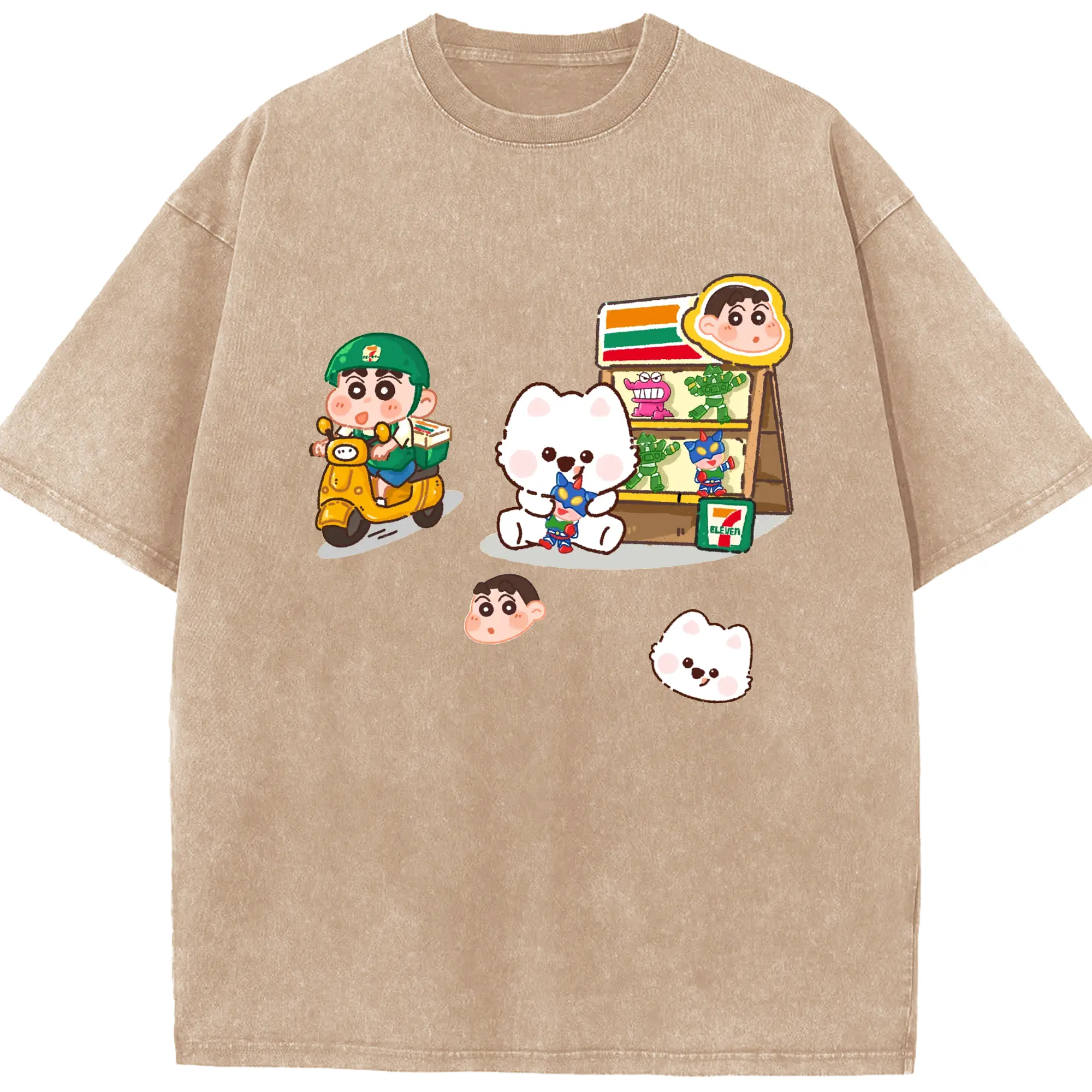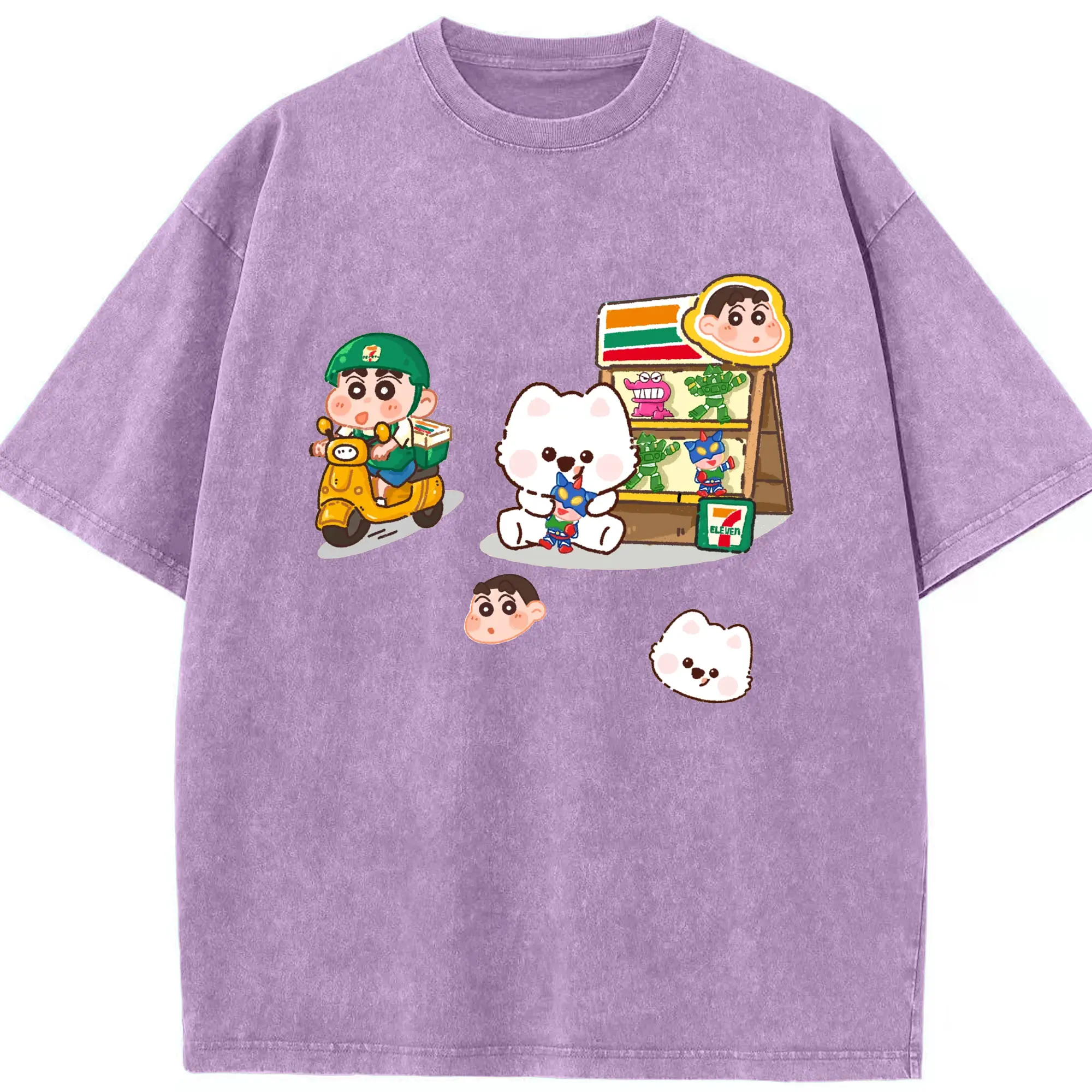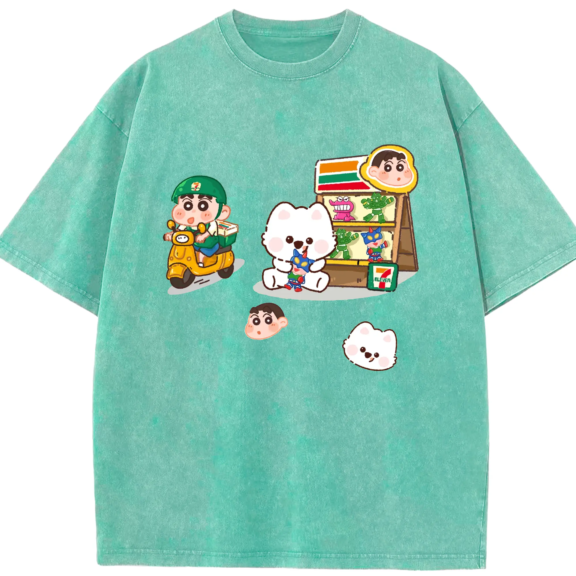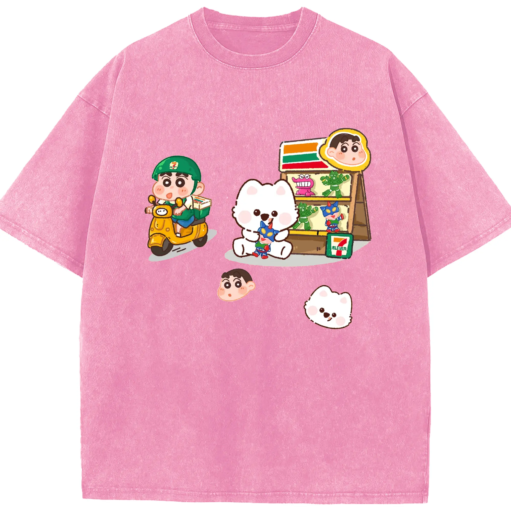 クレヨンしんちゃん × 7-Eleven 限定コラボ - 綿100% 半袖Tシャツ ・ フロントプリント ・ 快適 通気性 ・ 日常使い 散歩 スポーツ用