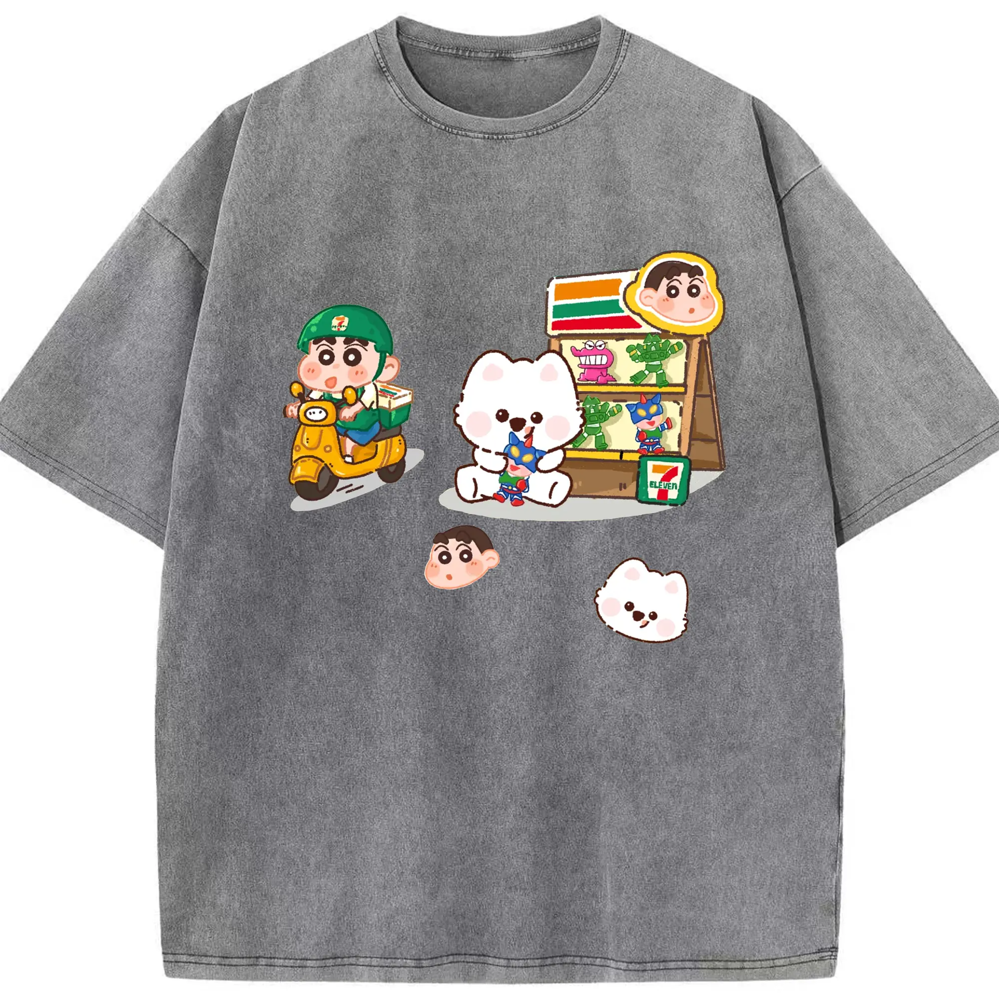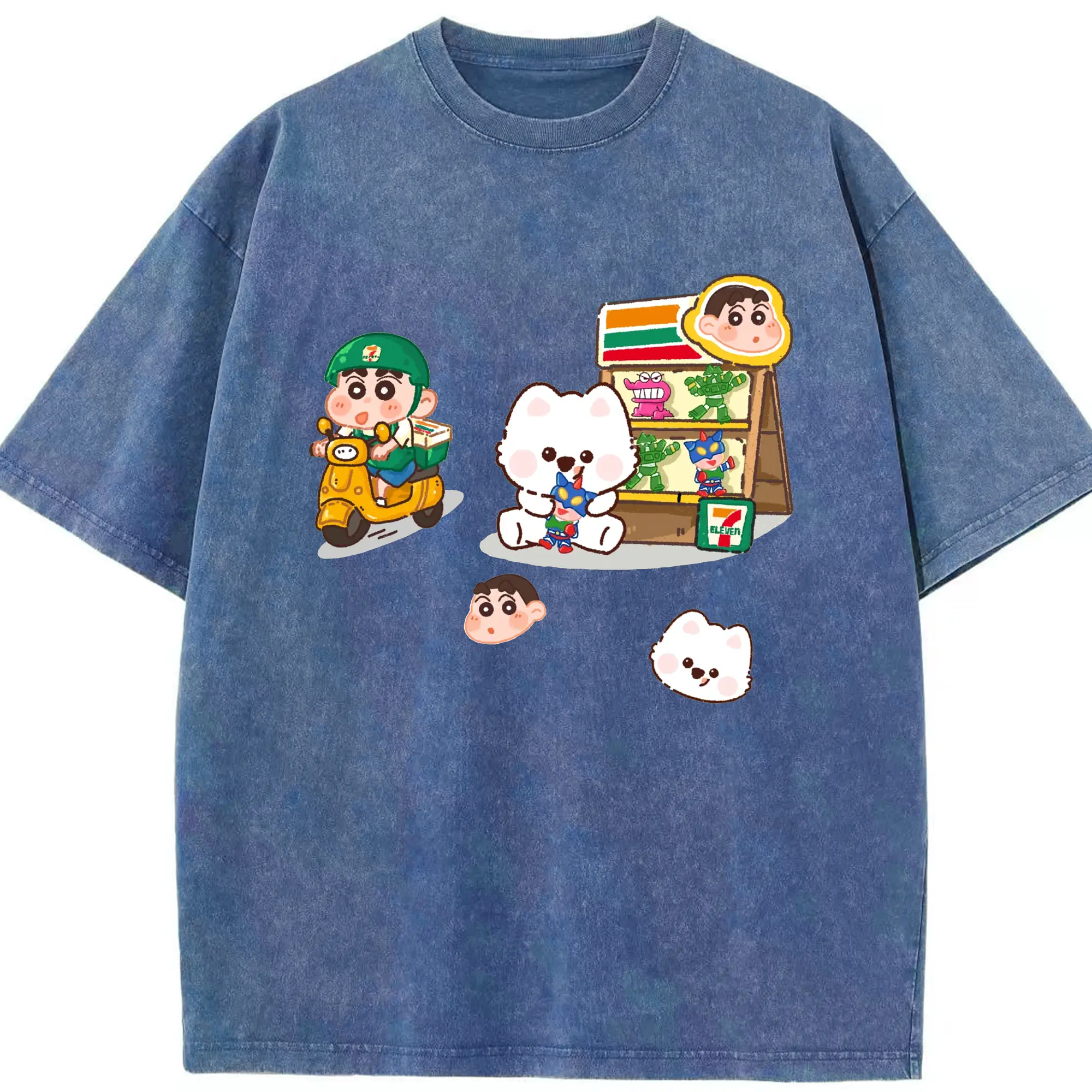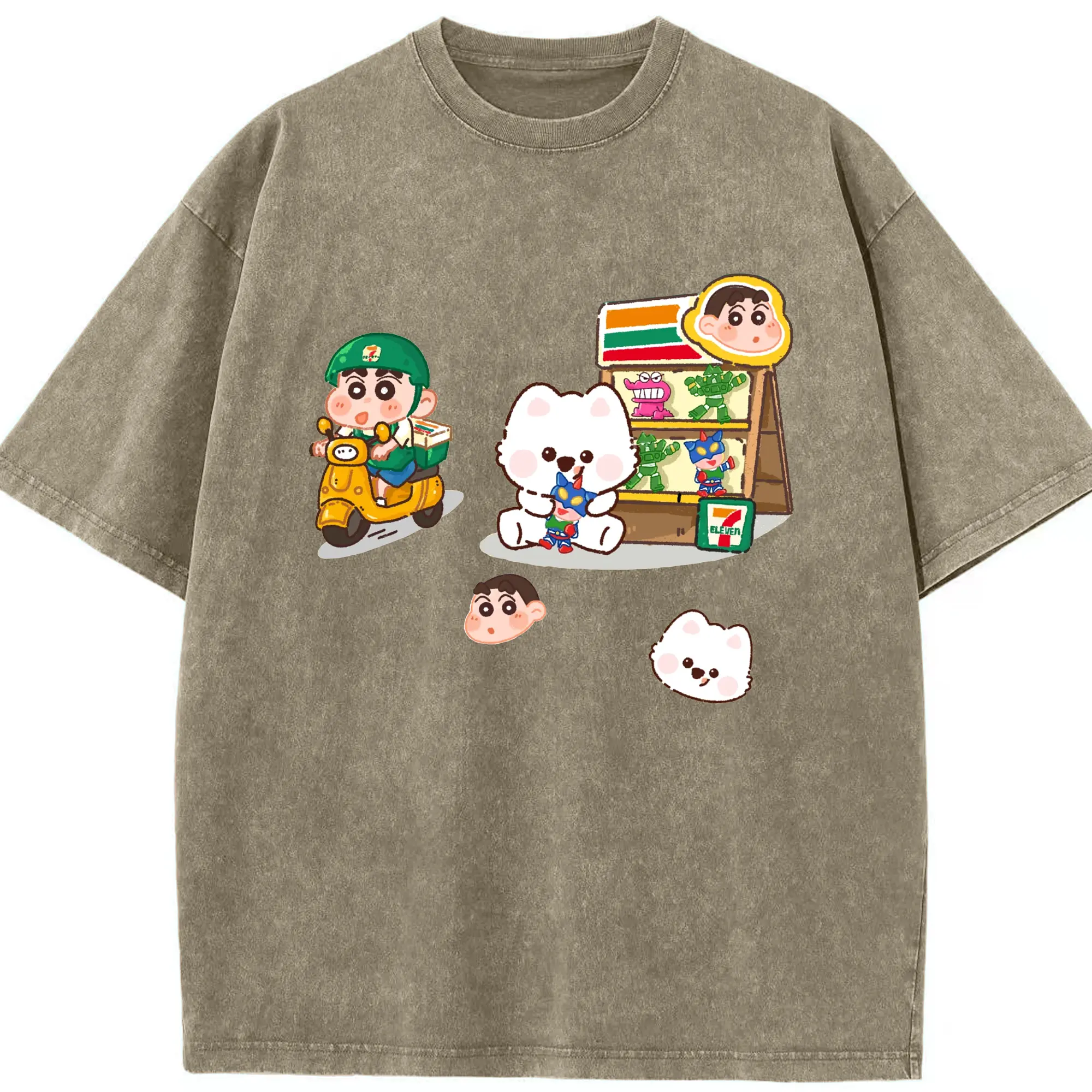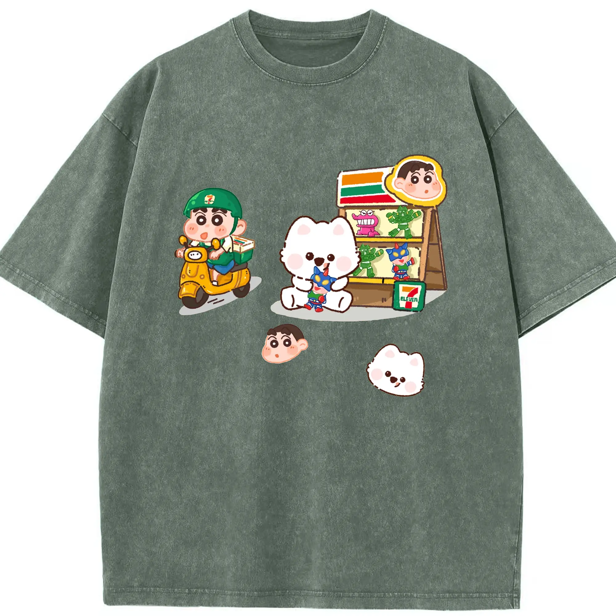 クレヨンしんちゃん × 7-Eleven 限定コラボ - 綿100% 半袖Tシャツ ・ フロントプリント ・ 快適 通気性 ・ 日常使い 散歩 スポーツ用