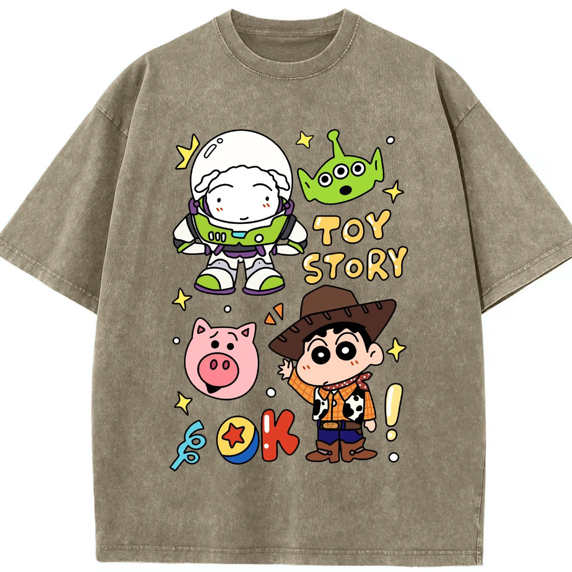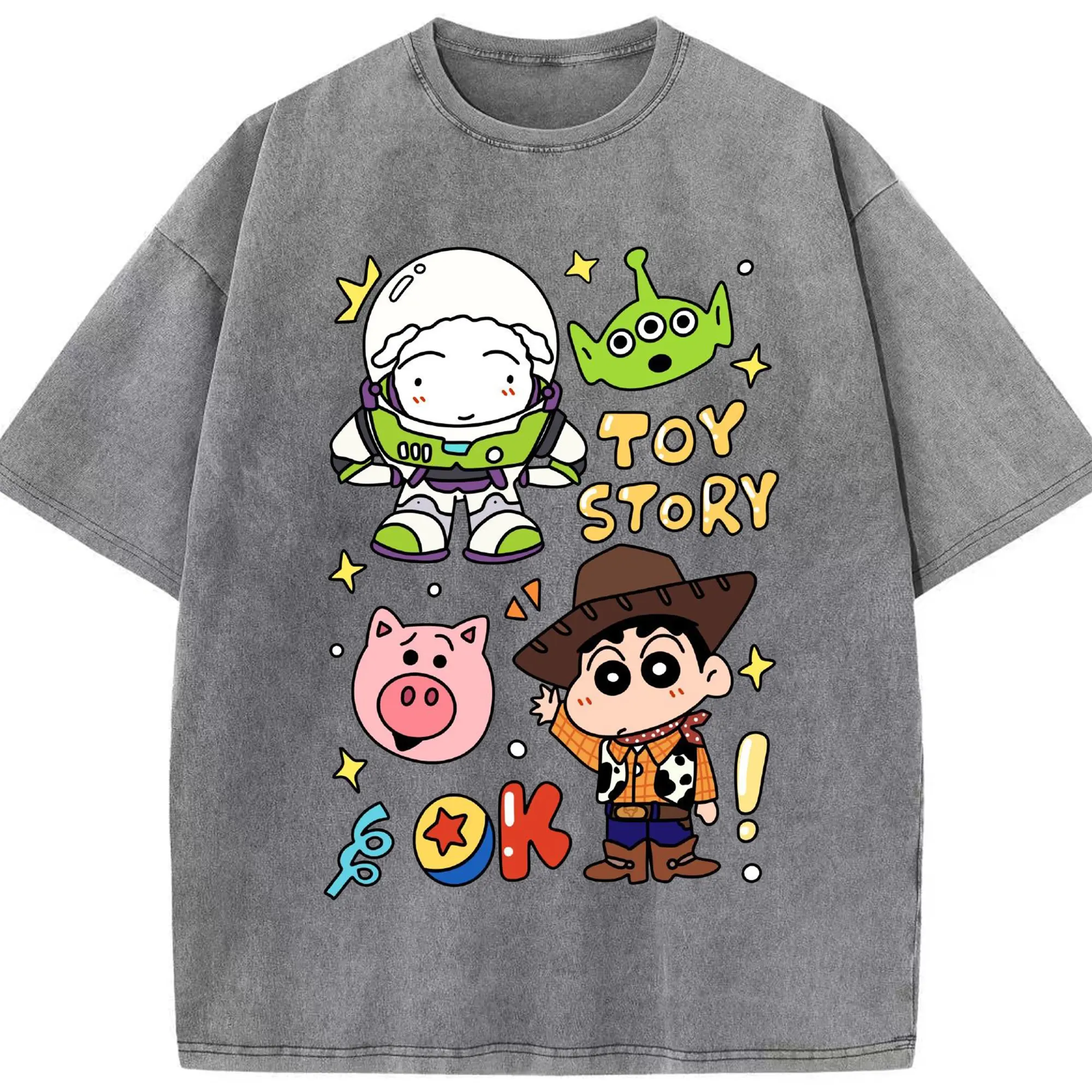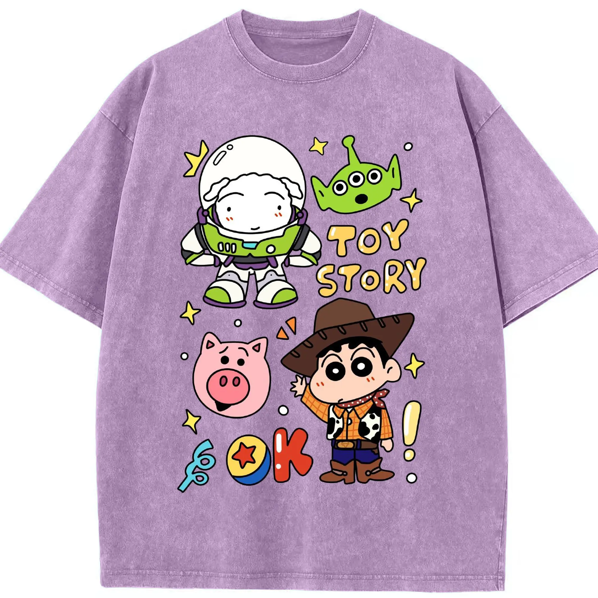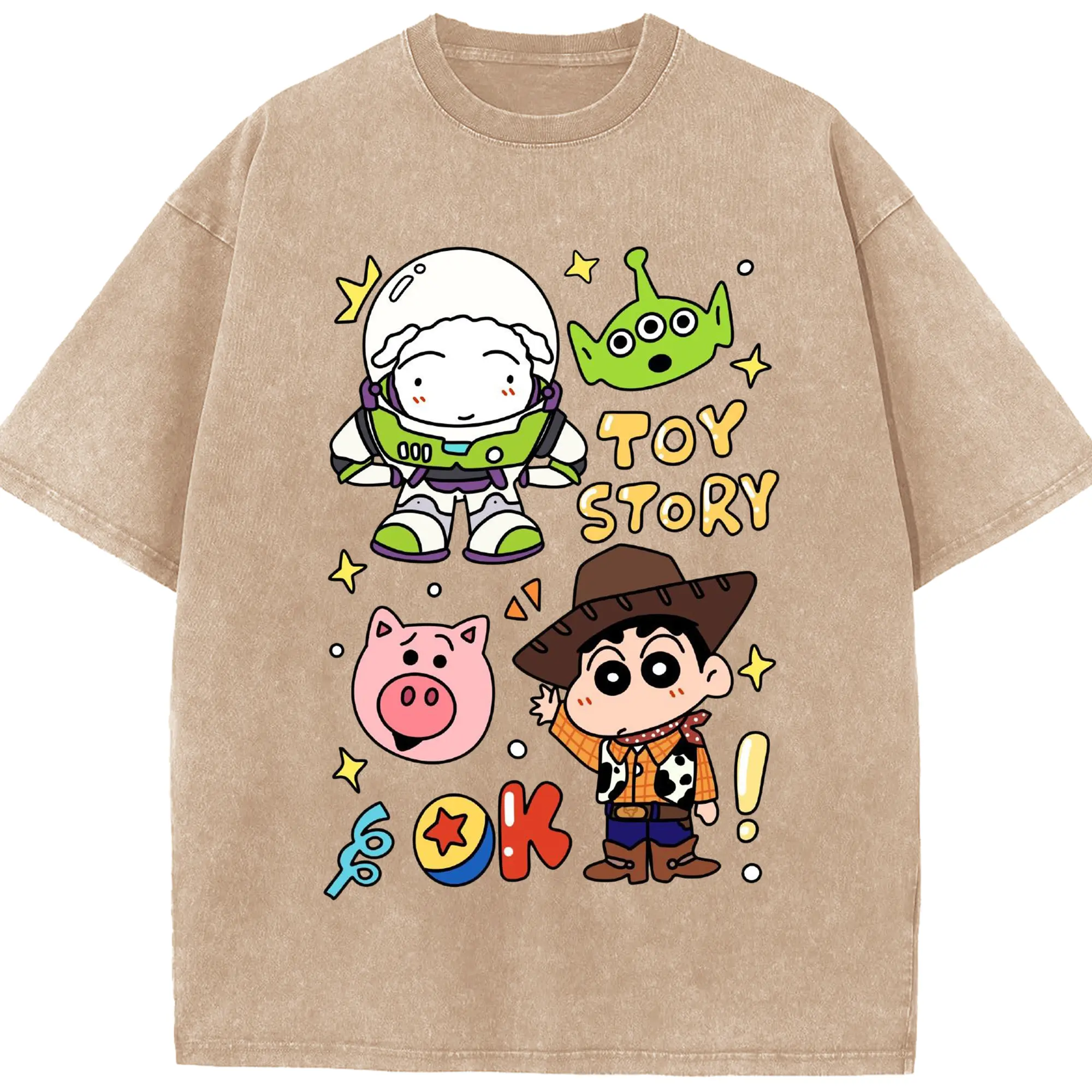 クレヨンしんちゃん × トイ・ストーリー 限定コラボ - 綿100% 半袖Tシャツ ・ フロントプリント ・ 快適 通気性 ・ 日常使い 散歩 スポーツ用