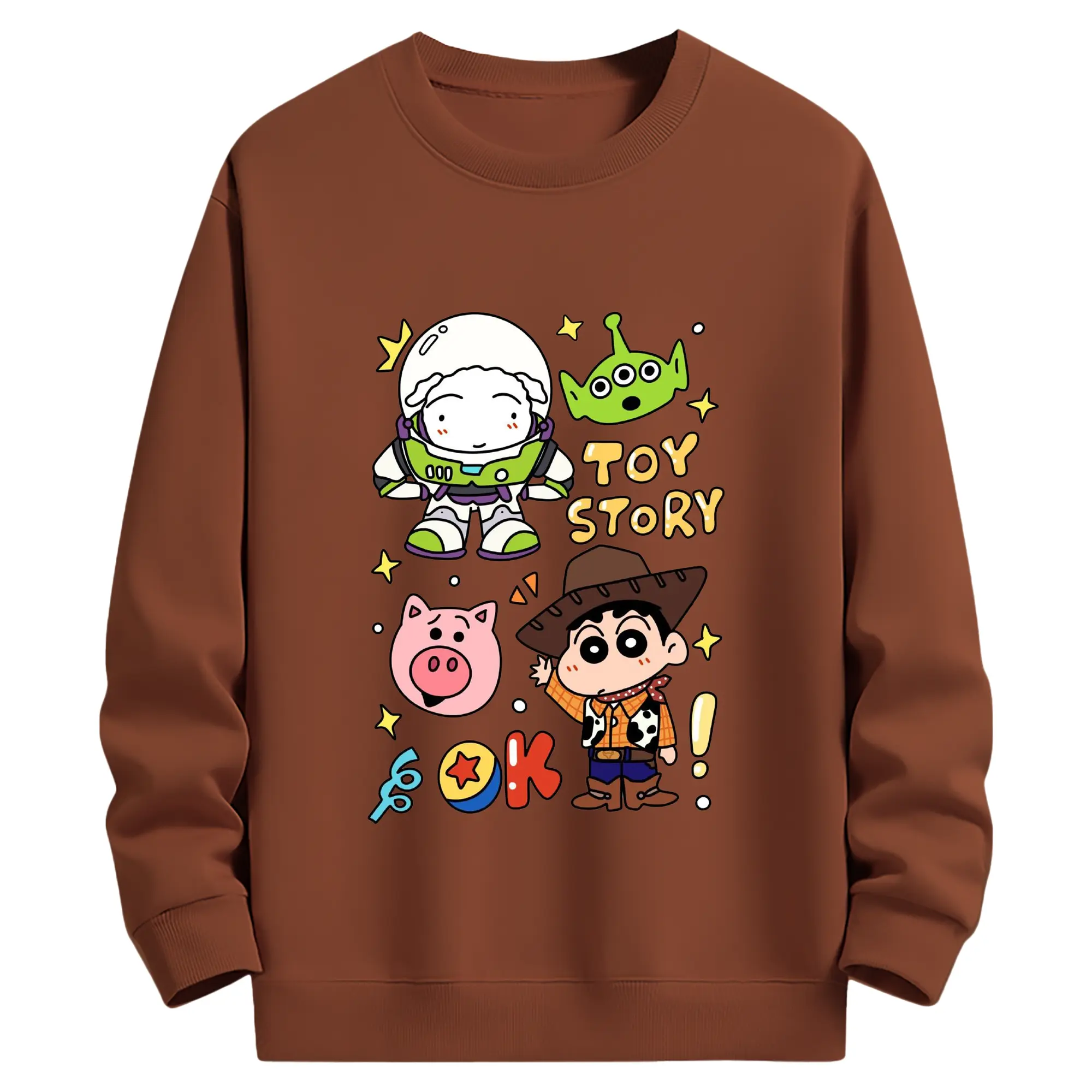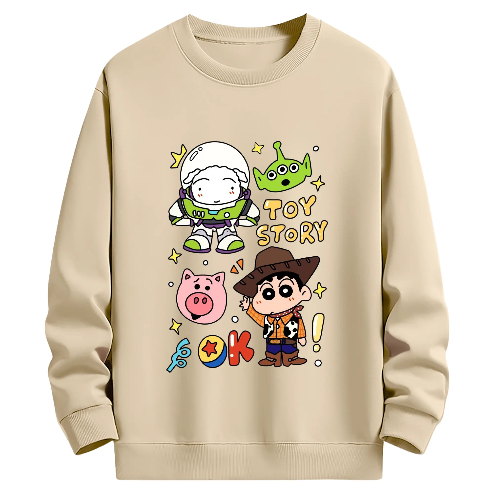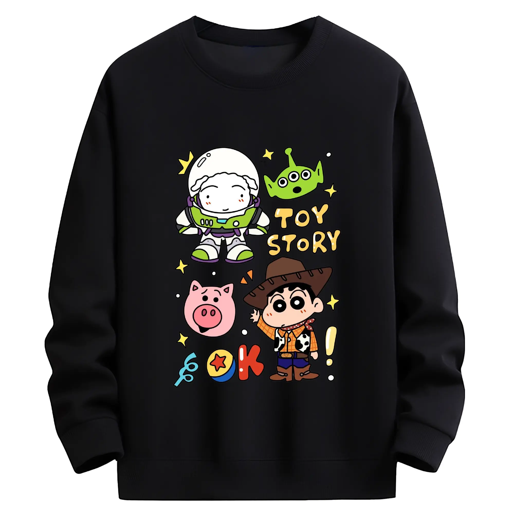 クレヨンしんちゃん × トイ・ストーリー 限定コラボ - 綿100% ヴィンテージ風 半袖Tシャツ ・ フロントプリント ・ 柔らか肌触り ・ 通気性 快適 ・ スポーツ カジュアル 外出用