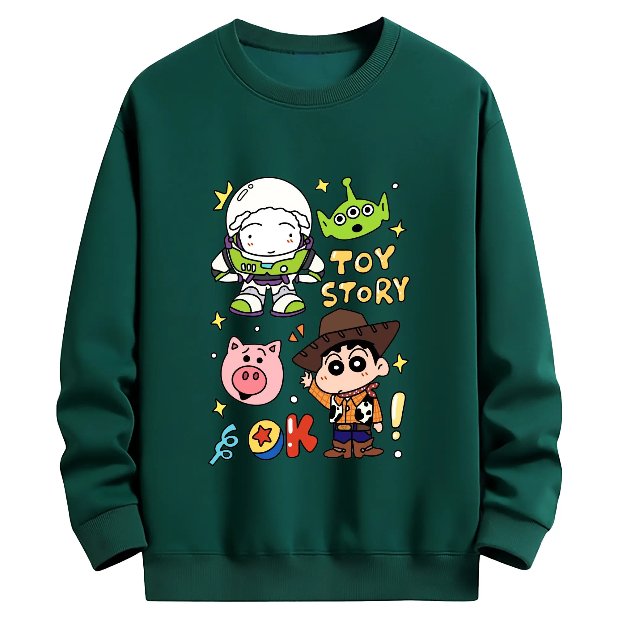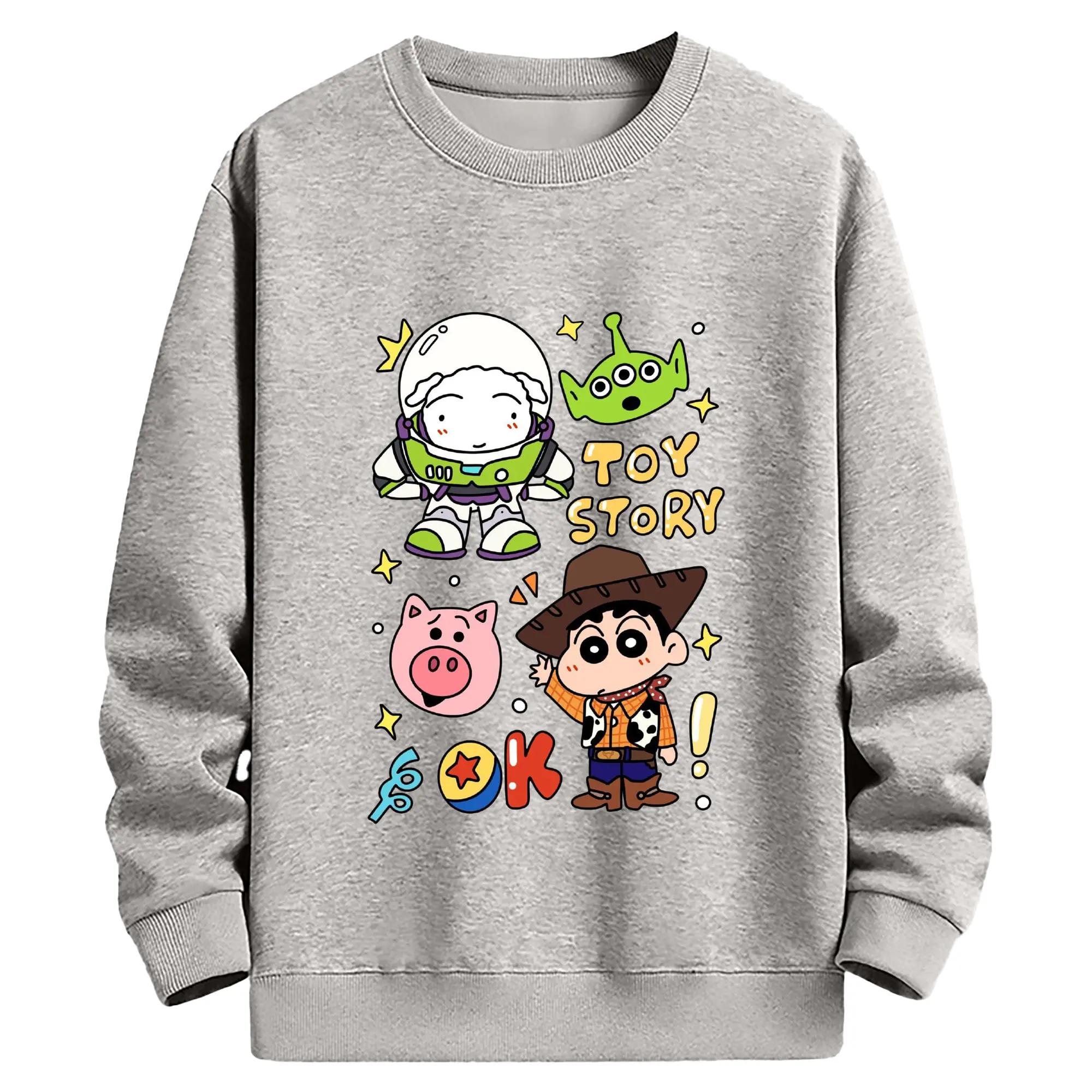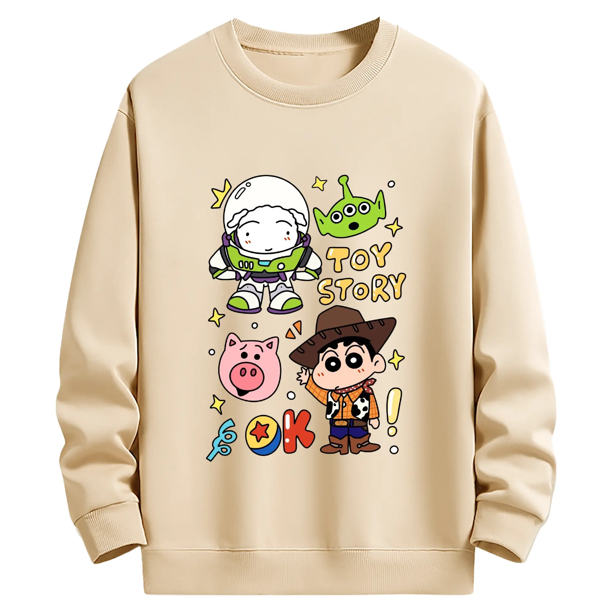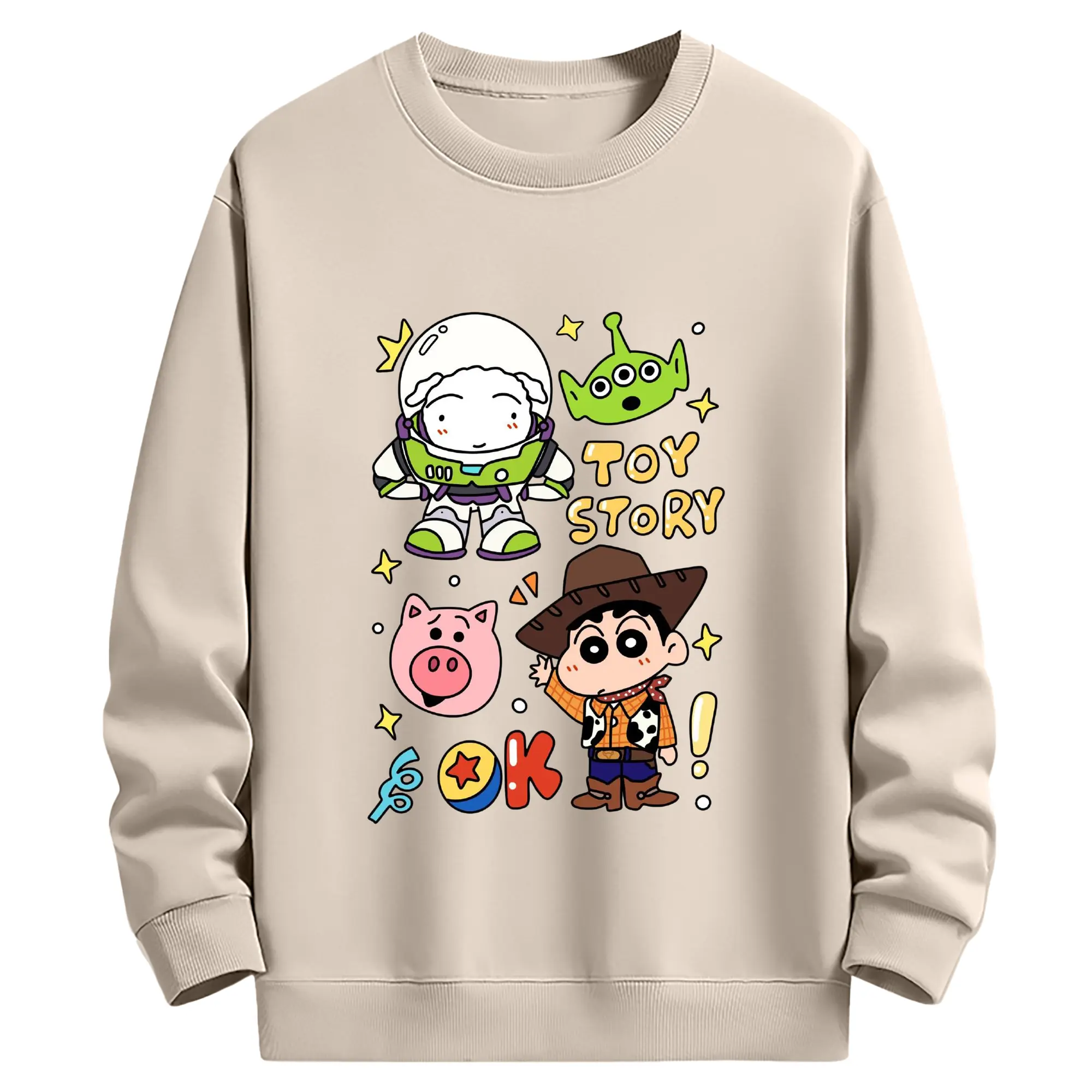 クレヨンしんちゃん × トイ・ストーリー 限定コラボ - 綿100% ヴィンテージ風 半袖Tシャツ ・ フロントプリント ・ 柔らか肌触り ・ 通気性 快適 ・ スポーツ カジュアル 外出用
