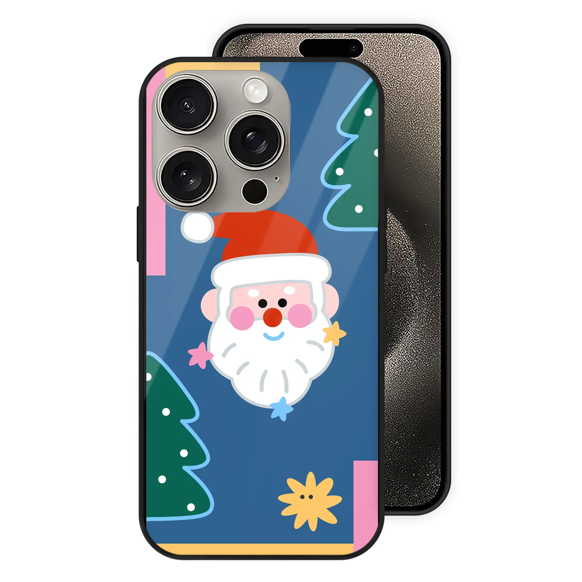 サンタクロース×クリスマスツリー|冬限定デザインスマホ - IPhone15Pro対応 ・ スマホケース ・ 背面ガラス ・ TPU+強化ガラス ・ 耐衝撃 ・ 黄変防止 ・ ワイヤレス充電対応 ・ 3D立体ボタン