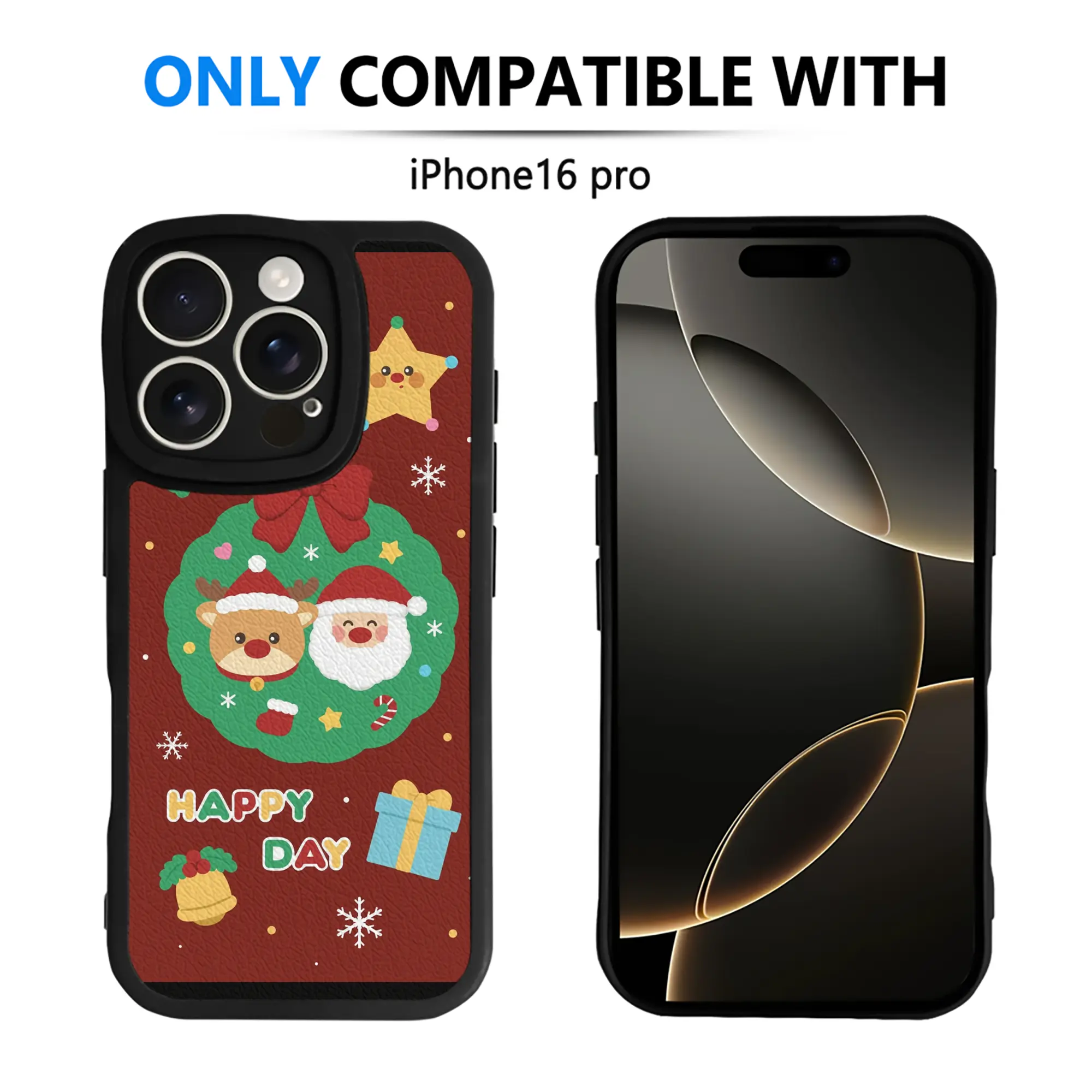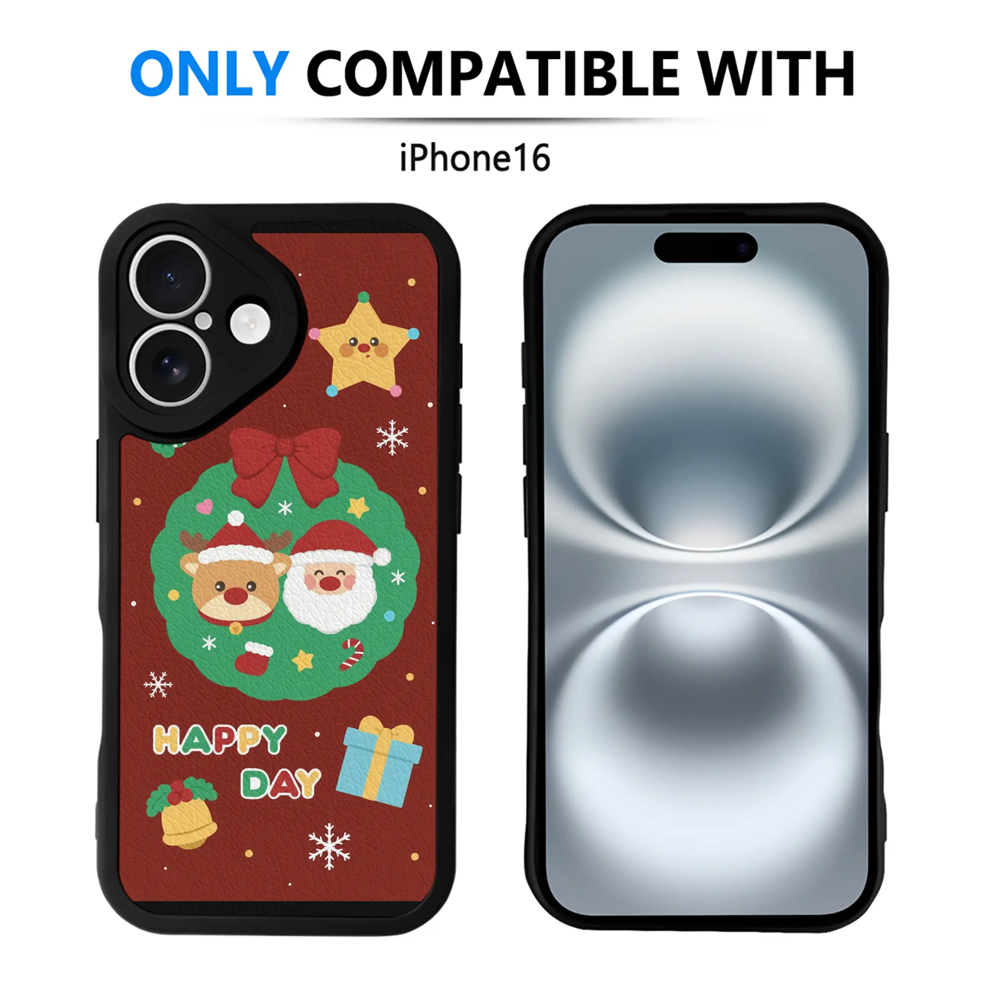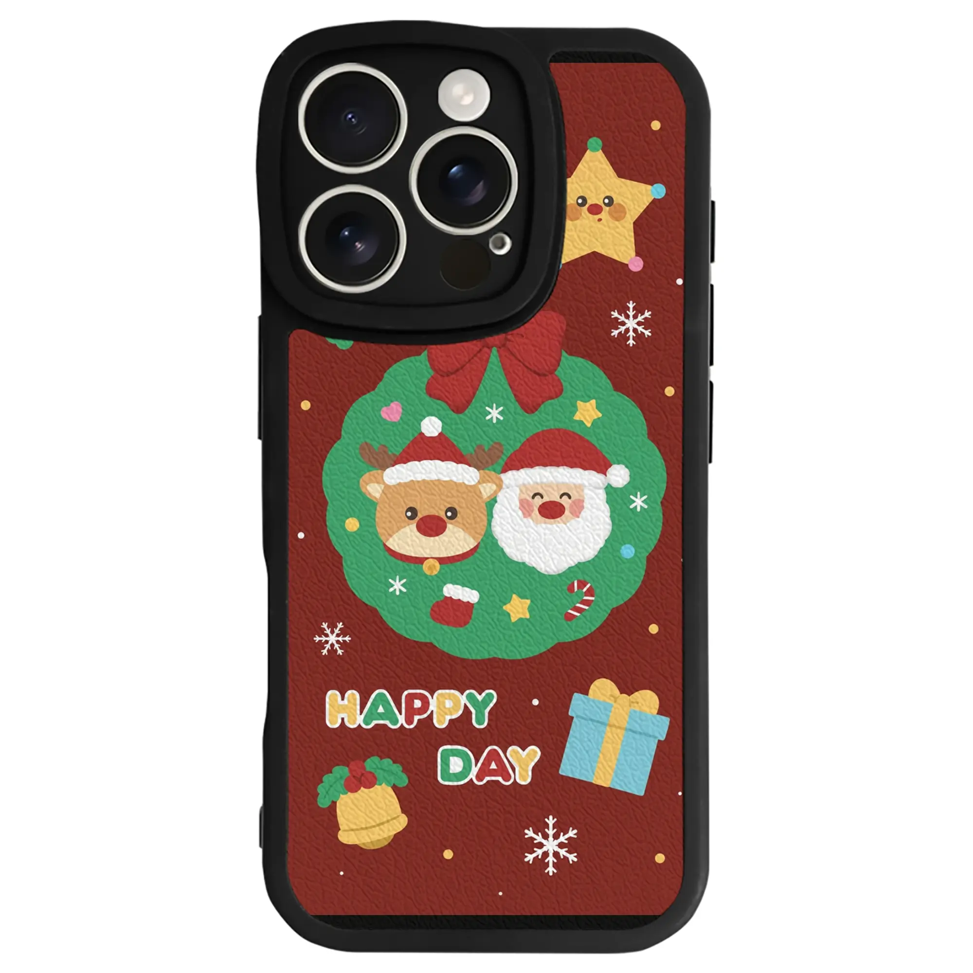 サンタ&トナカイ柄|可愛い冬限定デザイン - IPhone 16シリーズ対応 ・ シリコンスマホケース ・ レザー調 ・ 高精度フィット ・ 耐衝撃 ・ ワイヤレス充電対応 ・ 精密カット