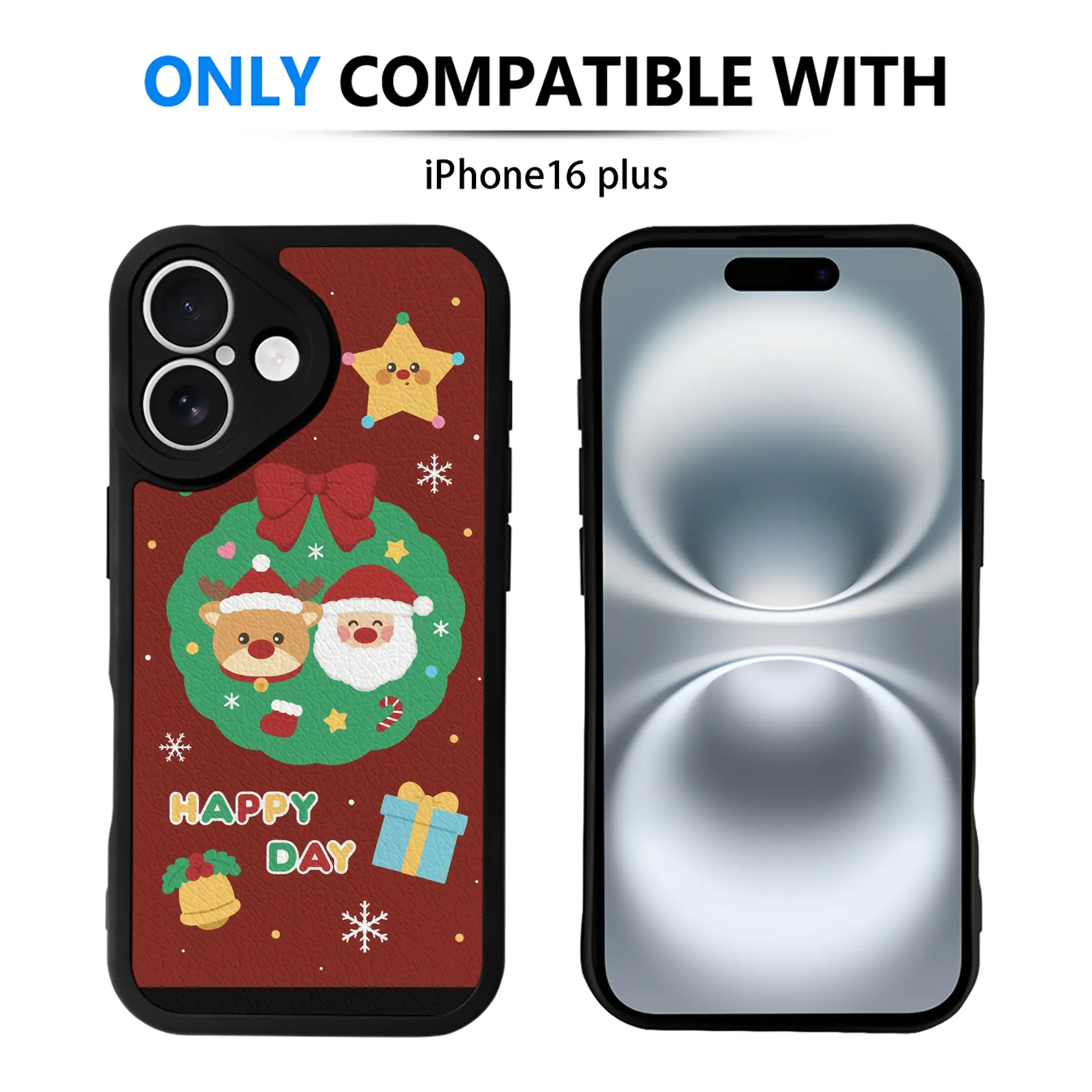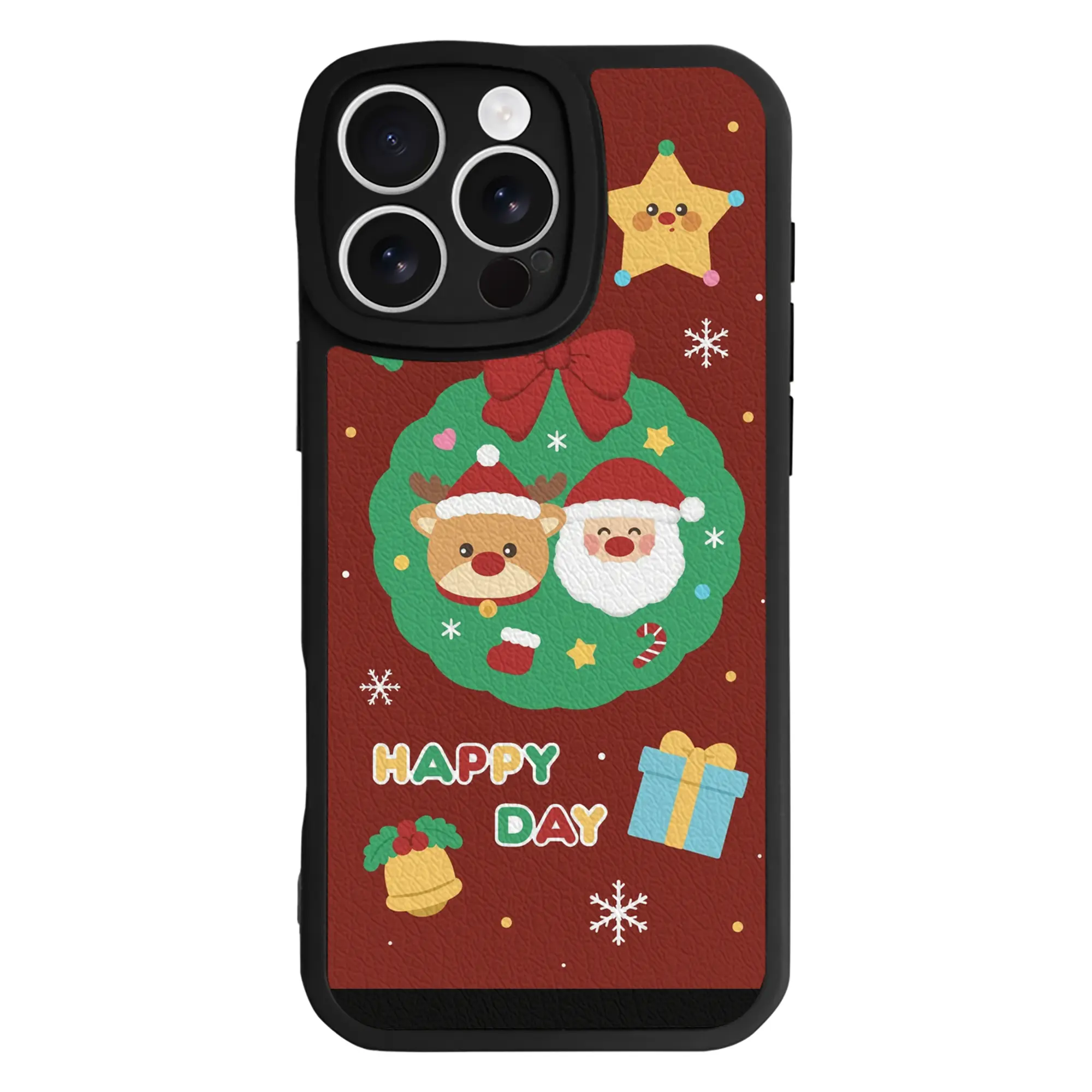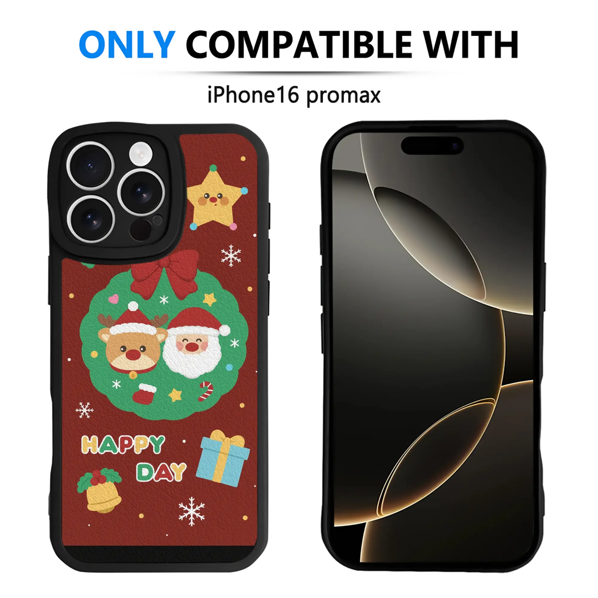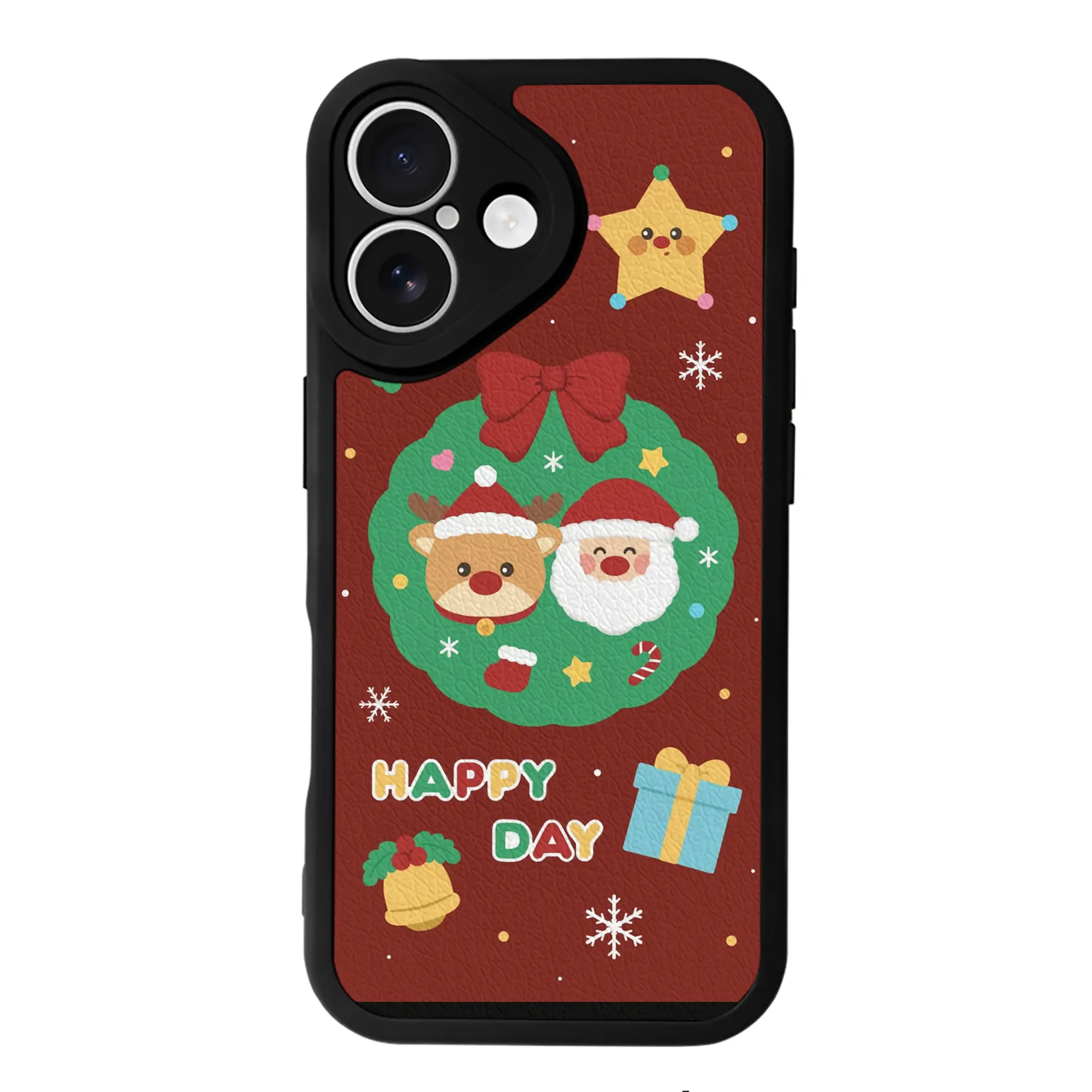 サンタ&トナカイ柄|可愛い冬限定デザイン - IPhone 16シリーズ対応 ・ シリコンスマホケース ・ レザー調 ・ 高精度フィット ・ 耐衝撃 ・ ワイヤレス充電対応 ・ 精密カット