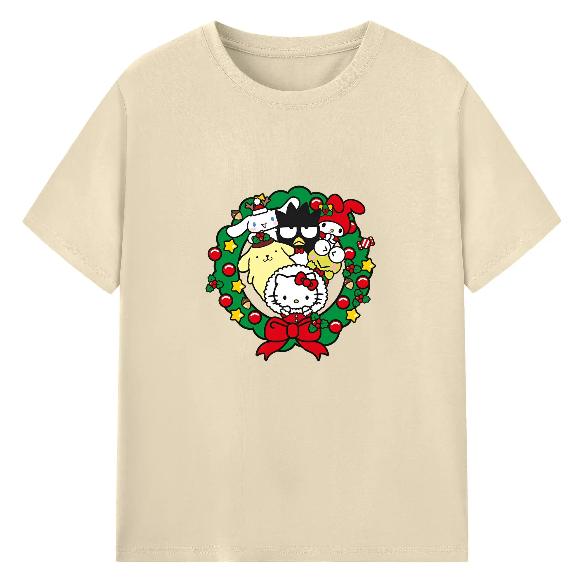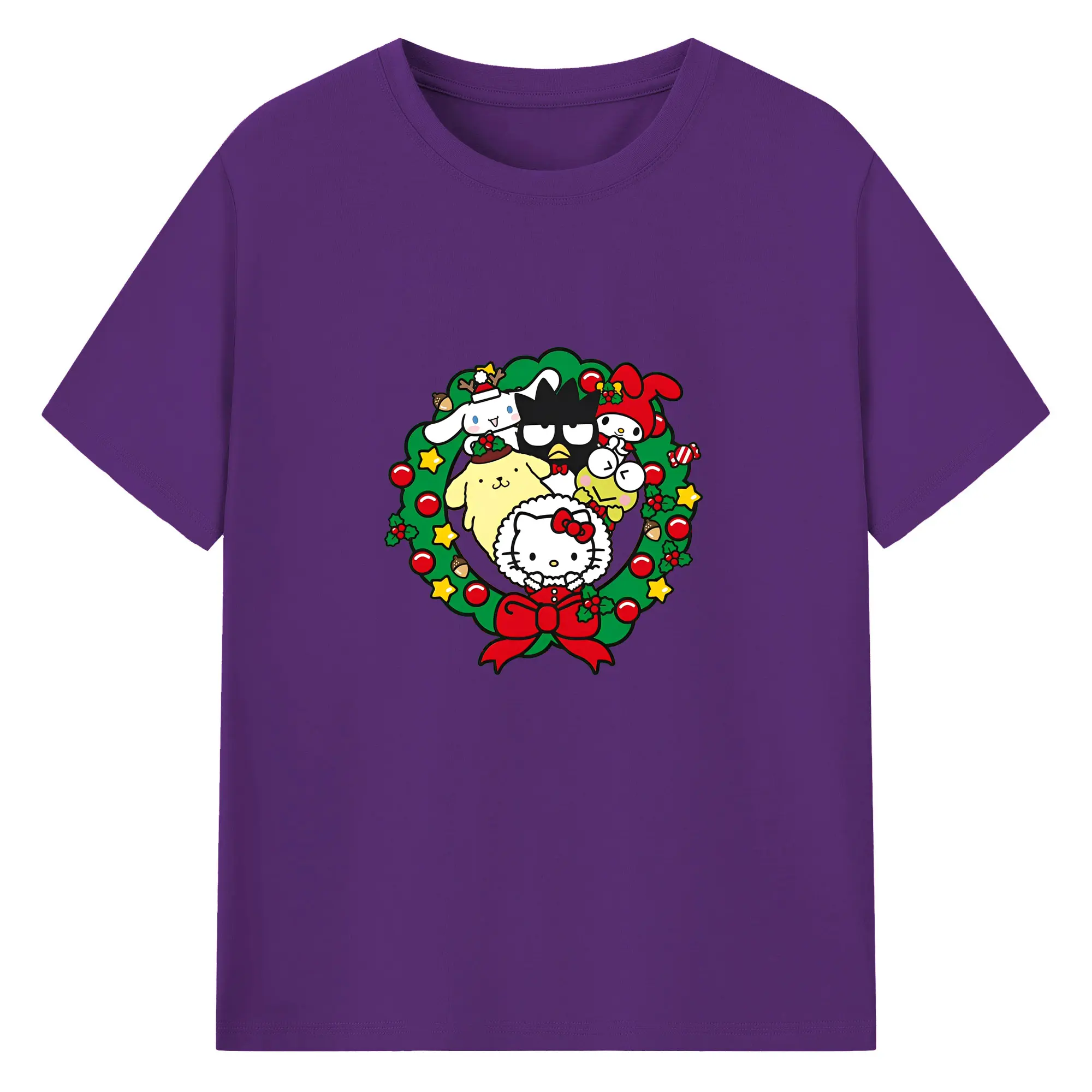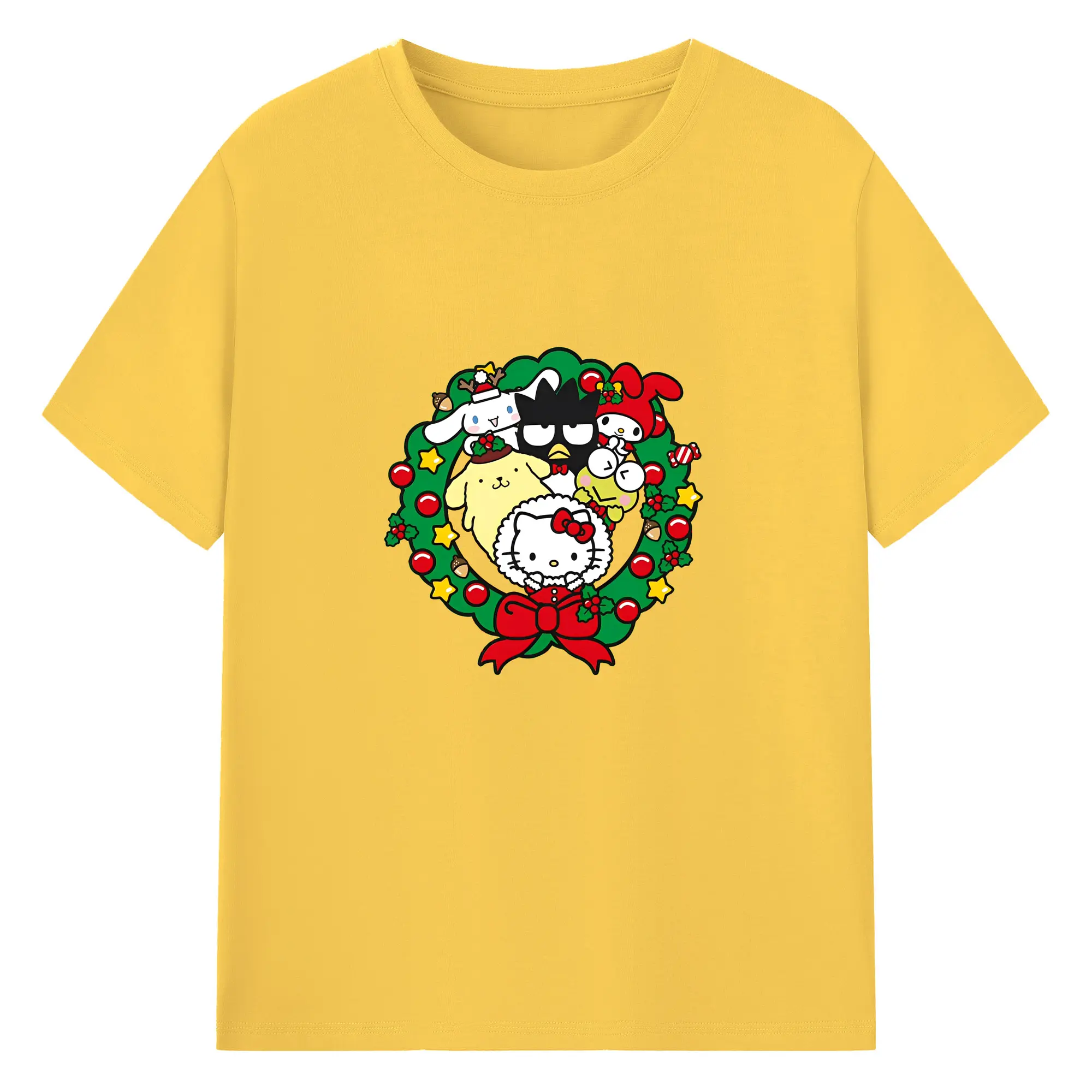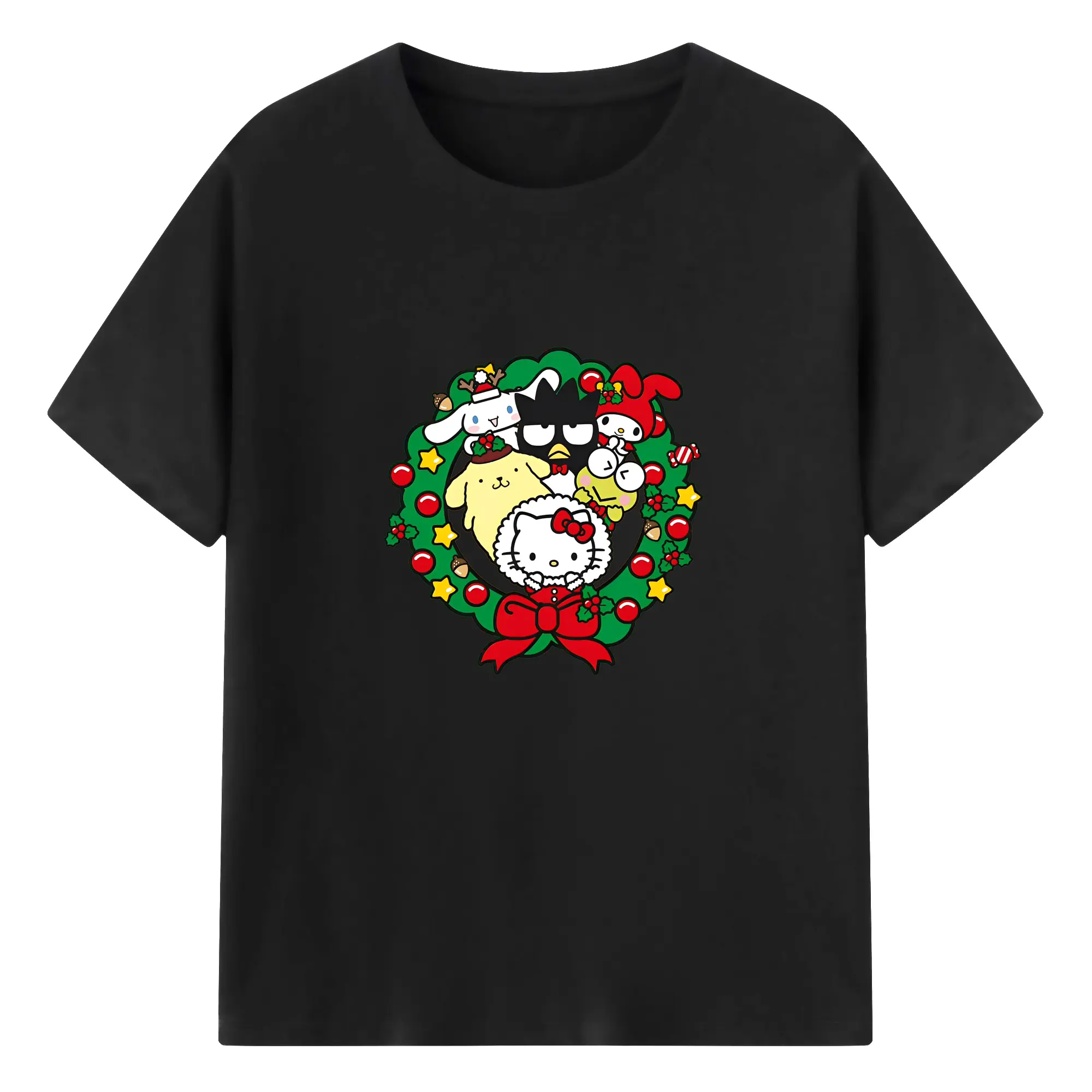 クレヨンしんちゃん × ハローキティ 限定コラボ - 綿100% 半袖Tシャツ ・ フロントプリント ・ 快適 通気性 ・ 日常使い 散歩 スポーツ用
