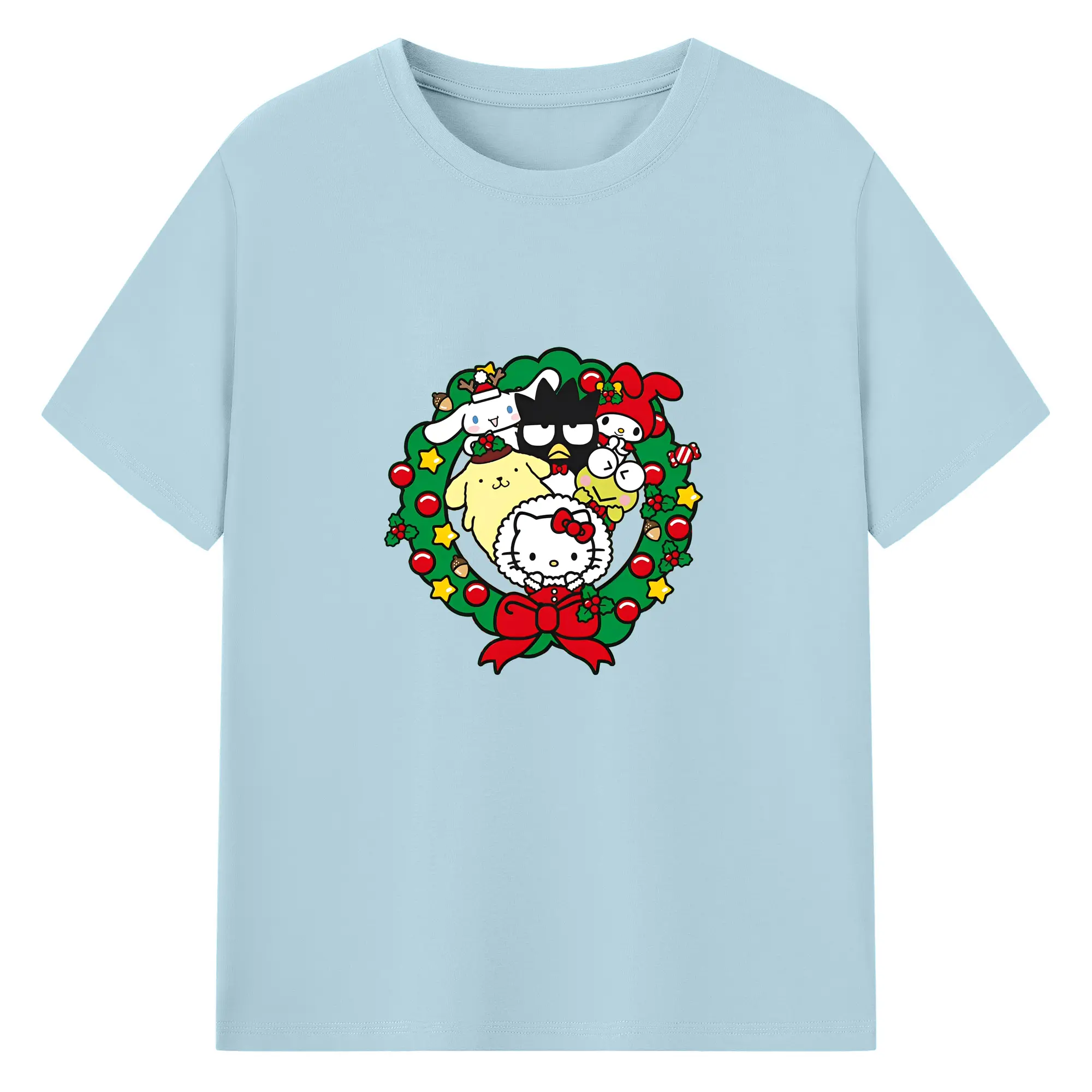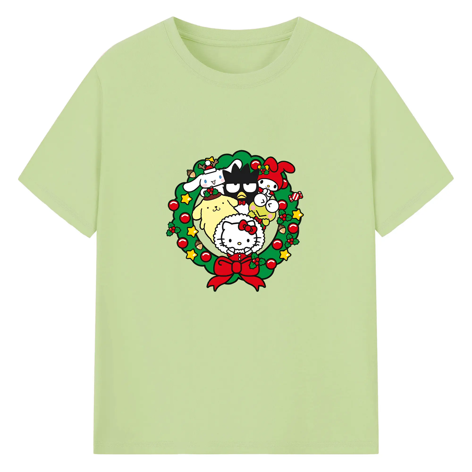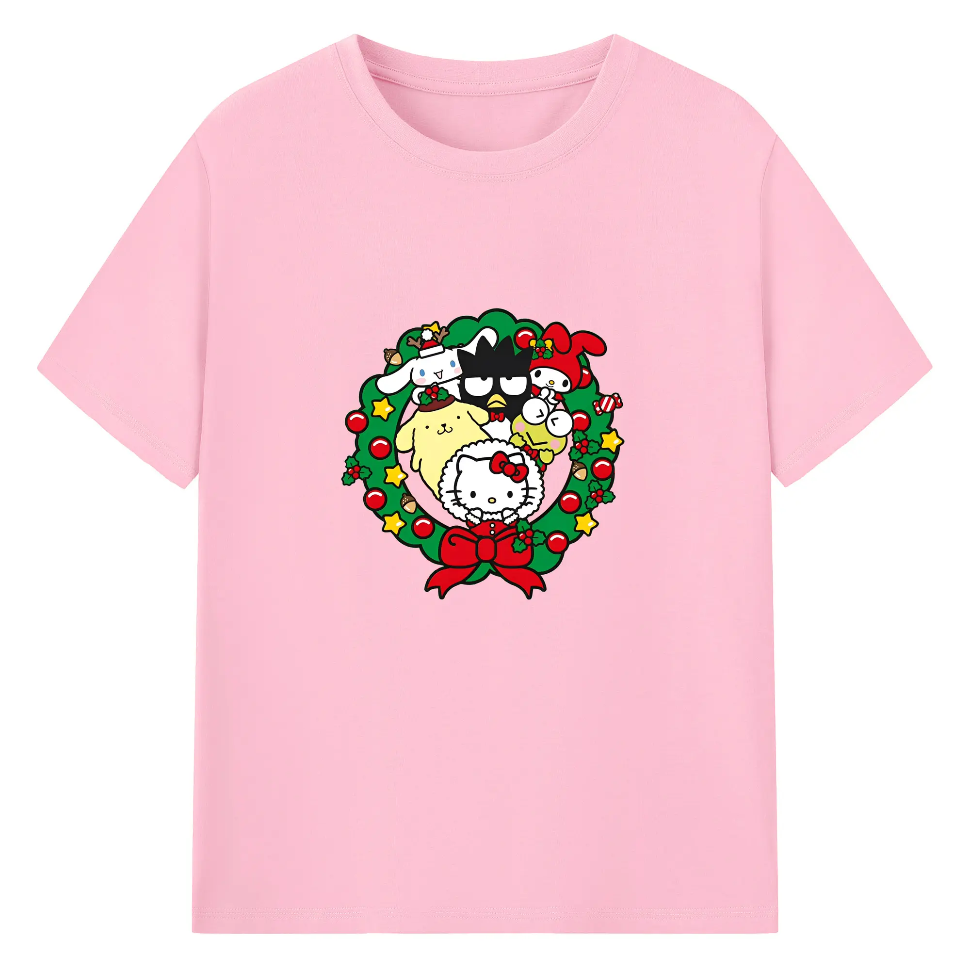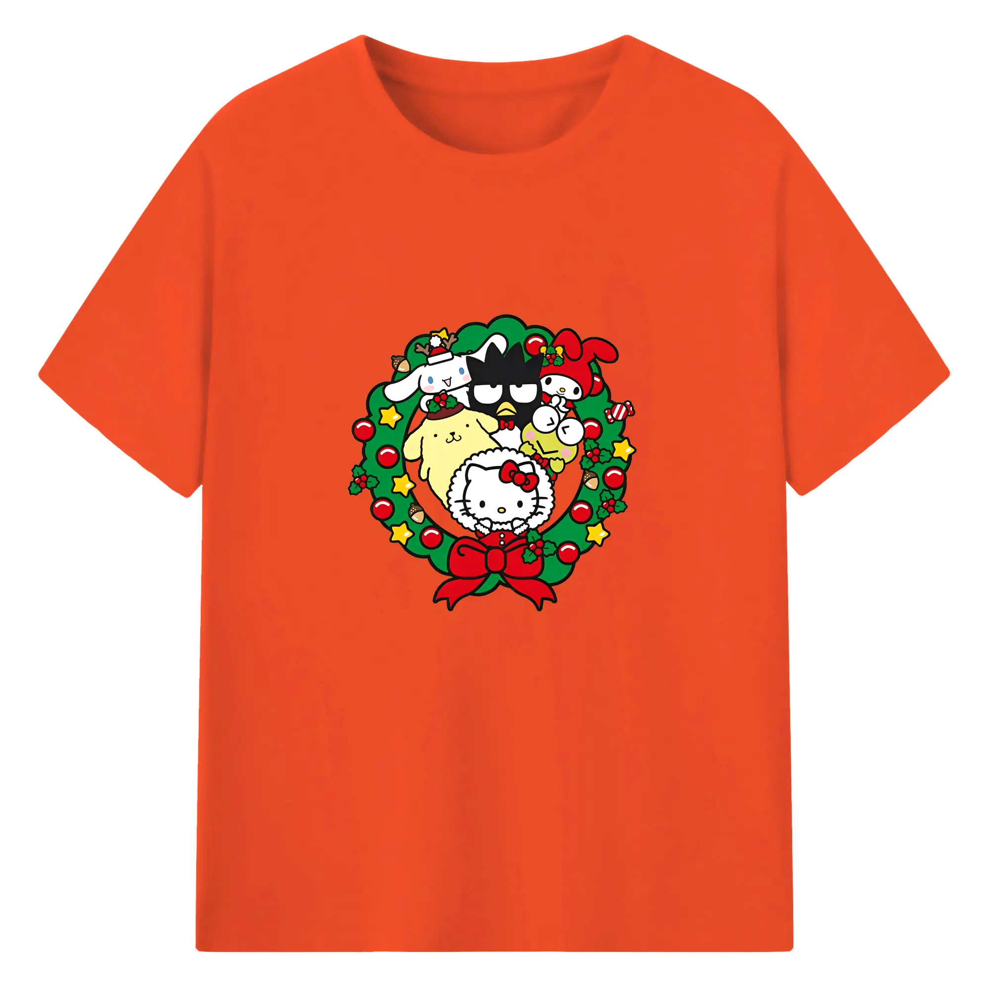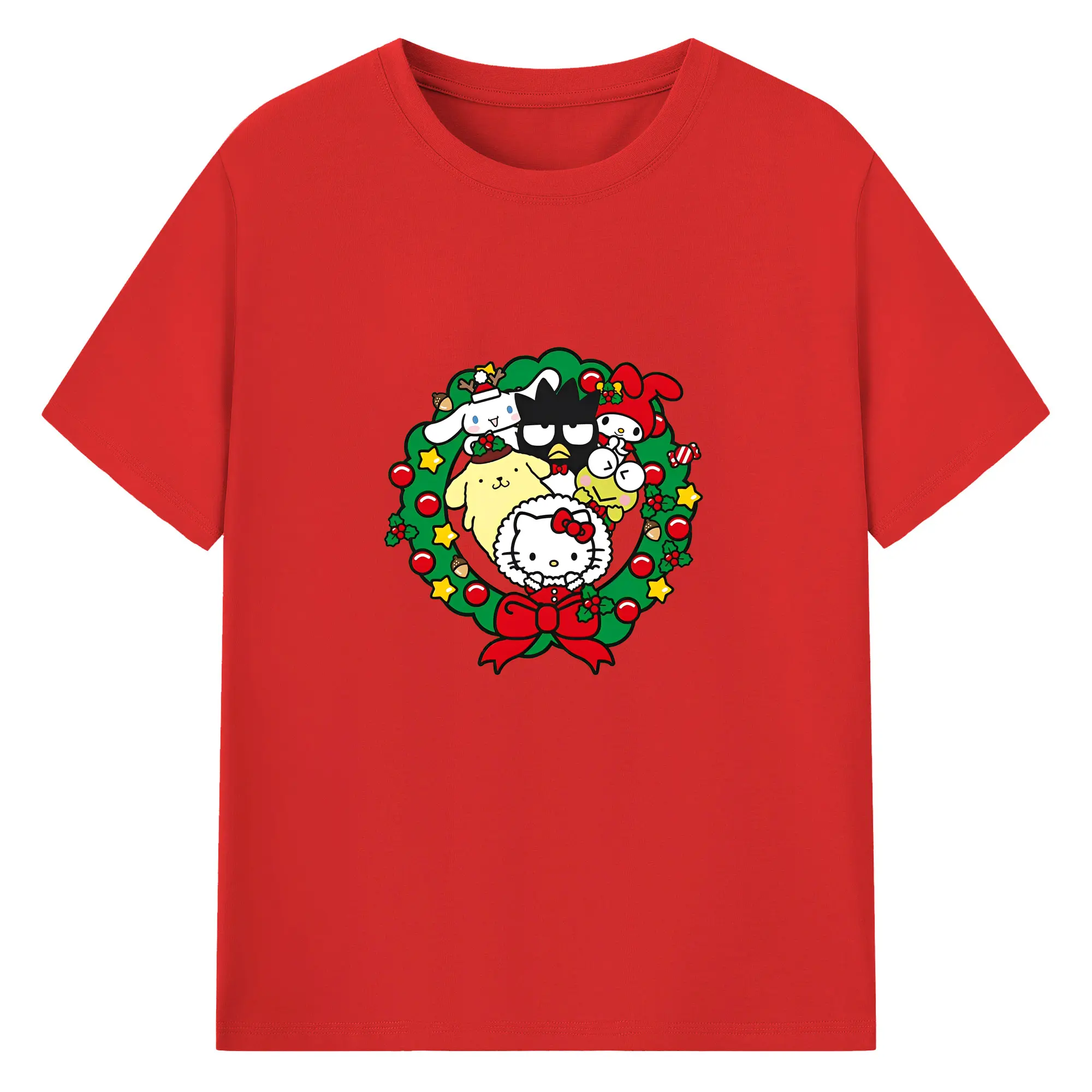 クレヨンしんちゃん × ハローキティ 限定コラボ - 綿100% 半袖Tシャツ ・ フロントプリント ・ 快適 通気性 ・ 日常使い 散歩 スポーツ用