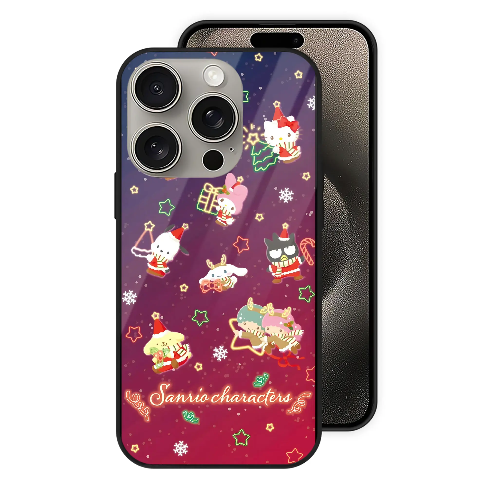 サンリオ×クリスマス限定スマホ|冬新作 - IPhone15Pro対応 ・ スマホケース ・ 背面ガラス ・ TPU+強化ガラス ・ 耐衝撃 ・ 黄変防止 ・ ワイヤレス充電対応 ・ 3D立体ボタン