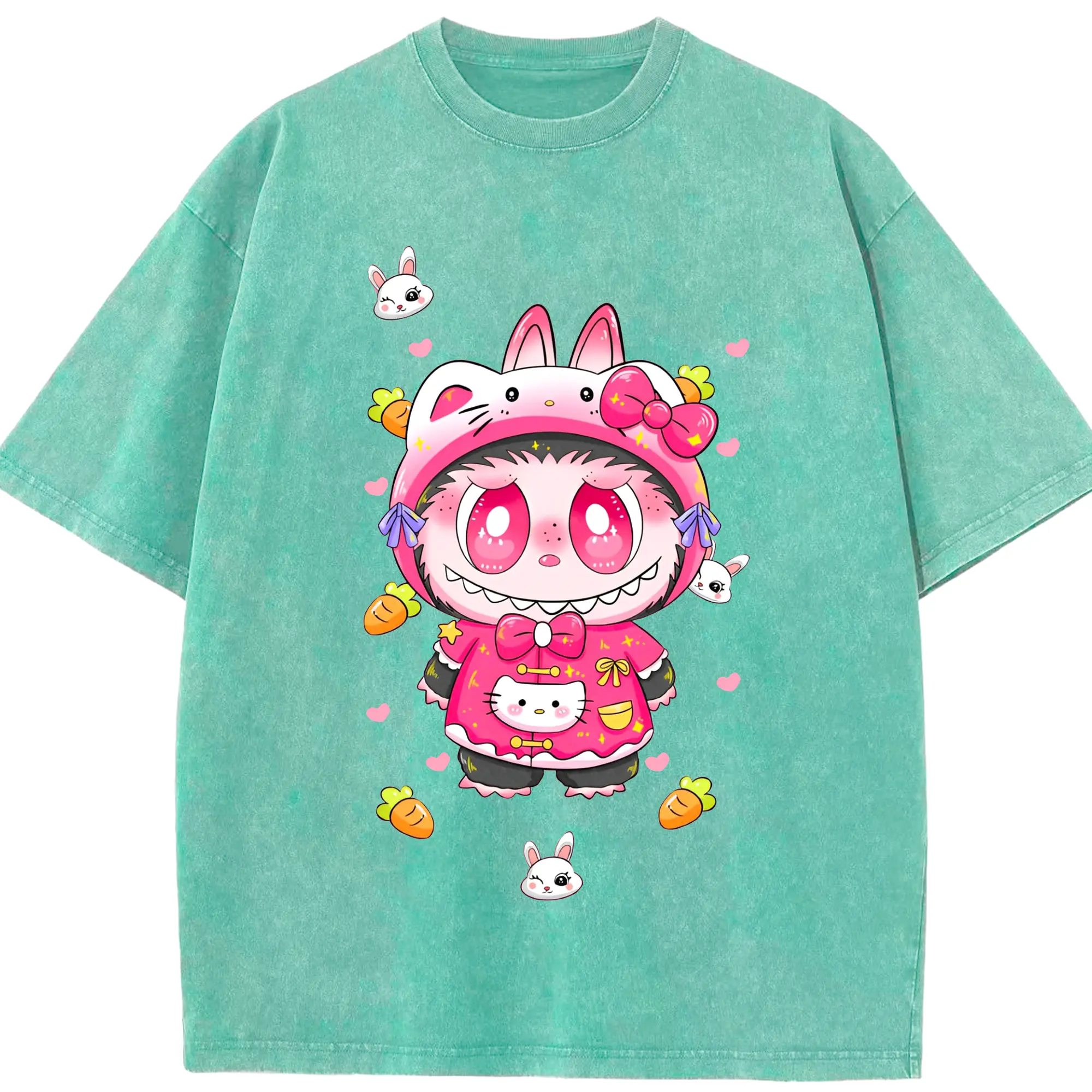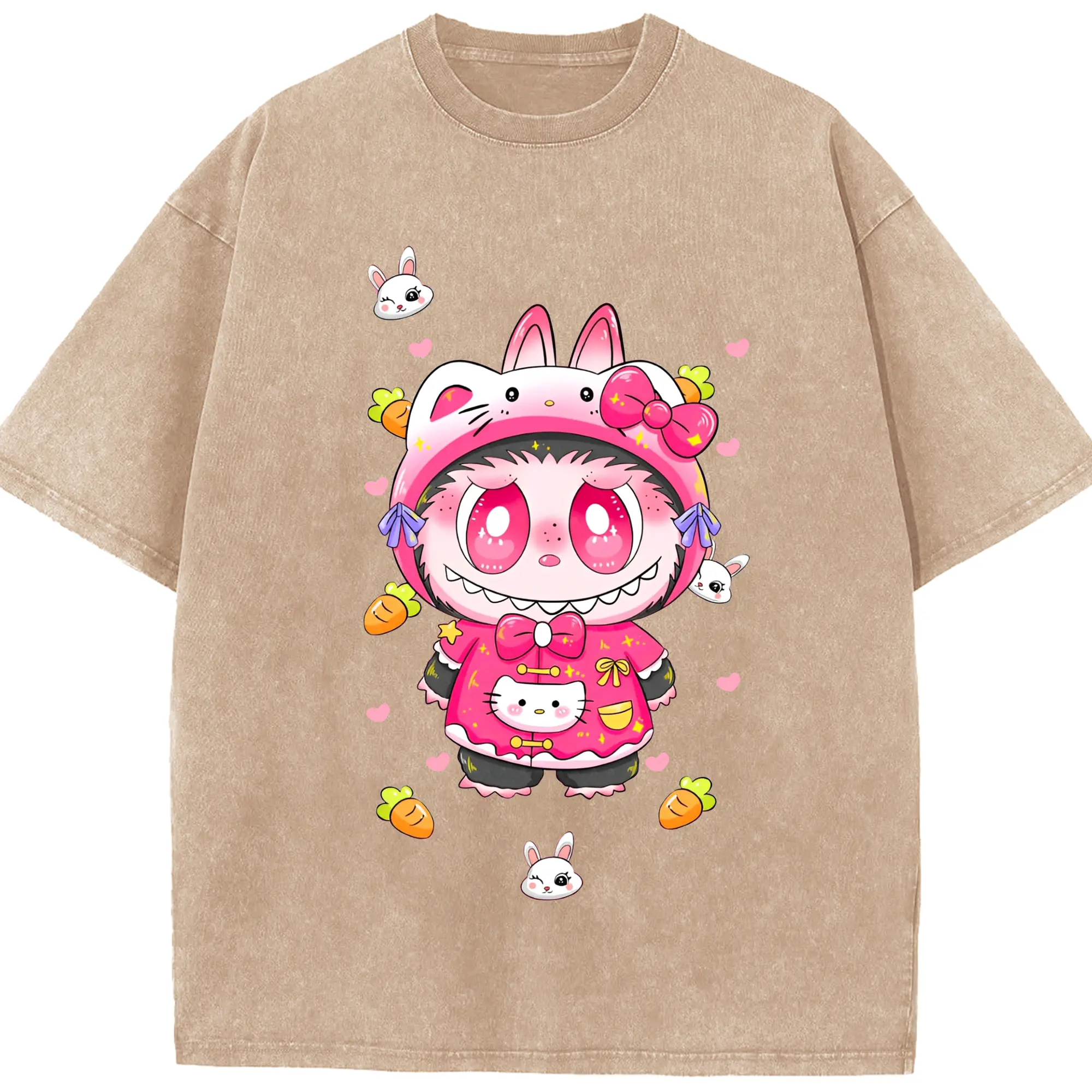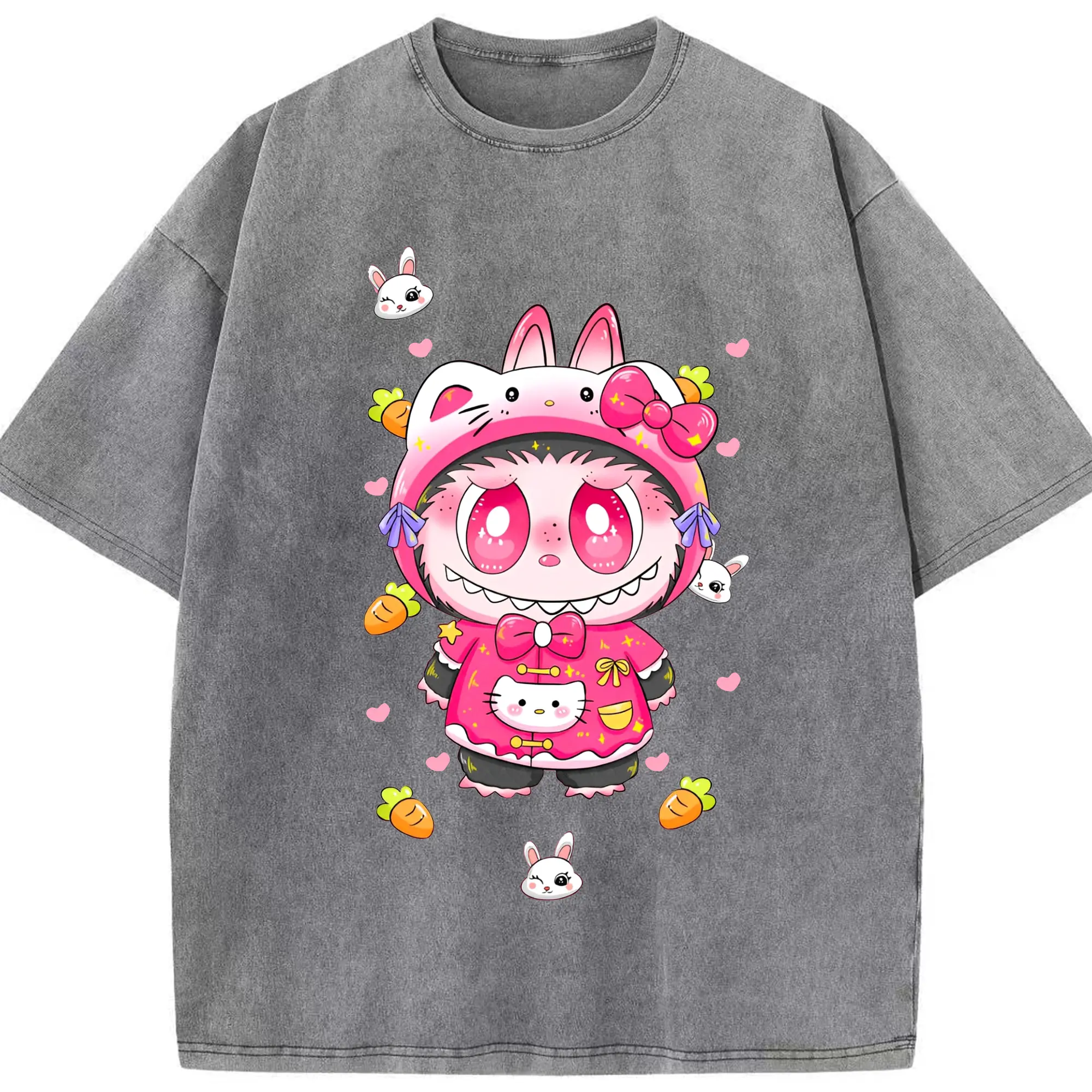 サンリオハローキティ& ラブブ 限定 - 綿100% 半袖Tシャツ ・ フロントプリント ・ 快適 通気性 ・ 日常使い 散歩 スポーツ用