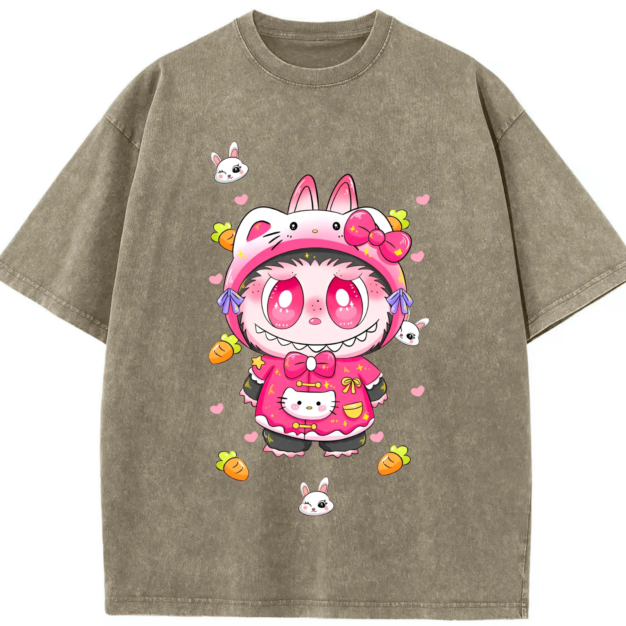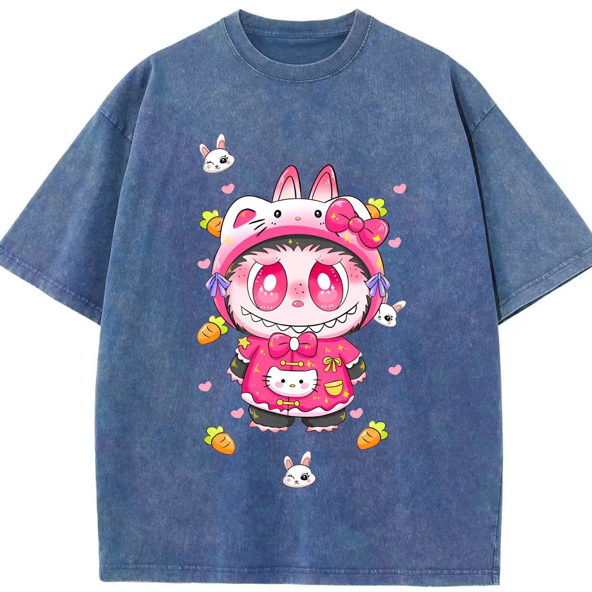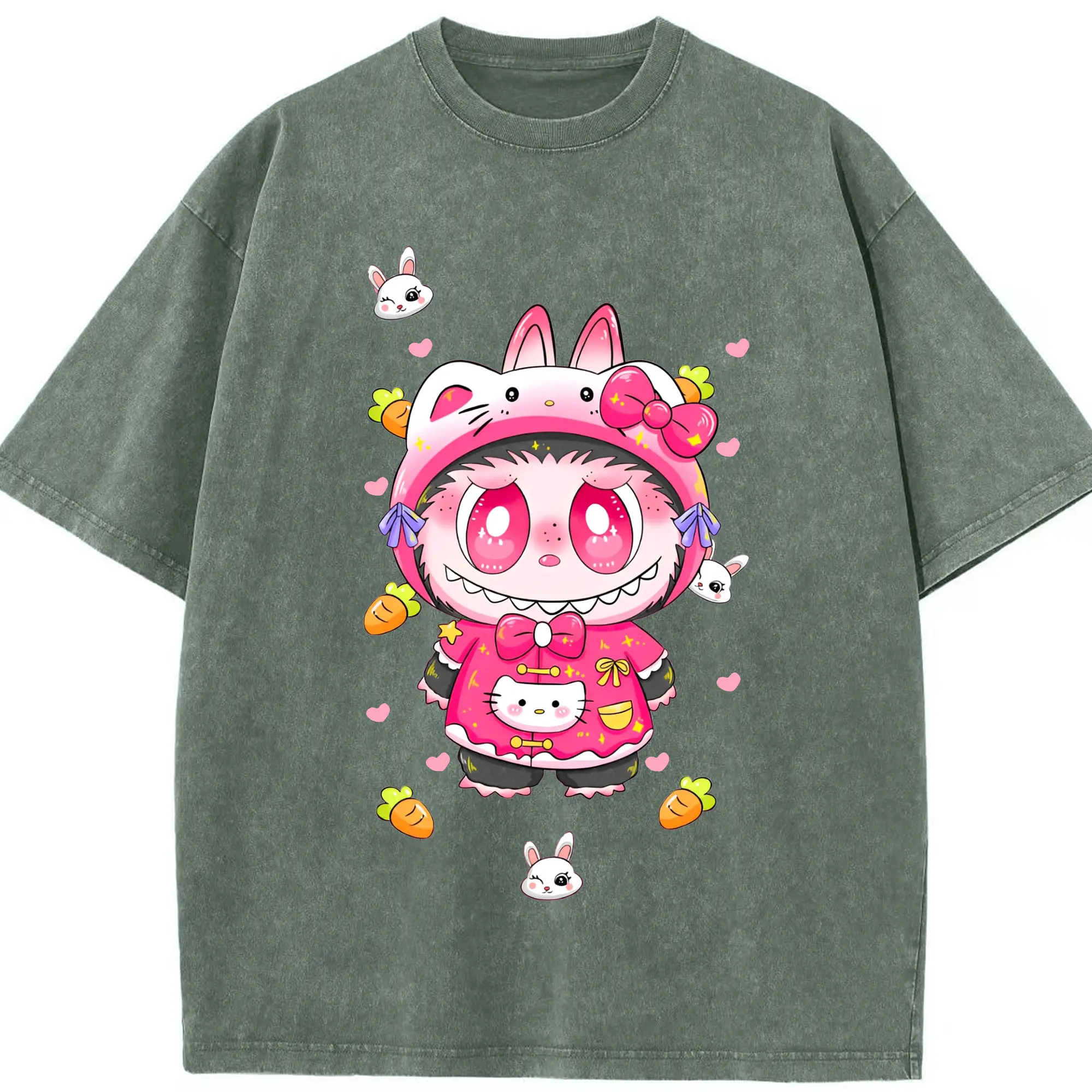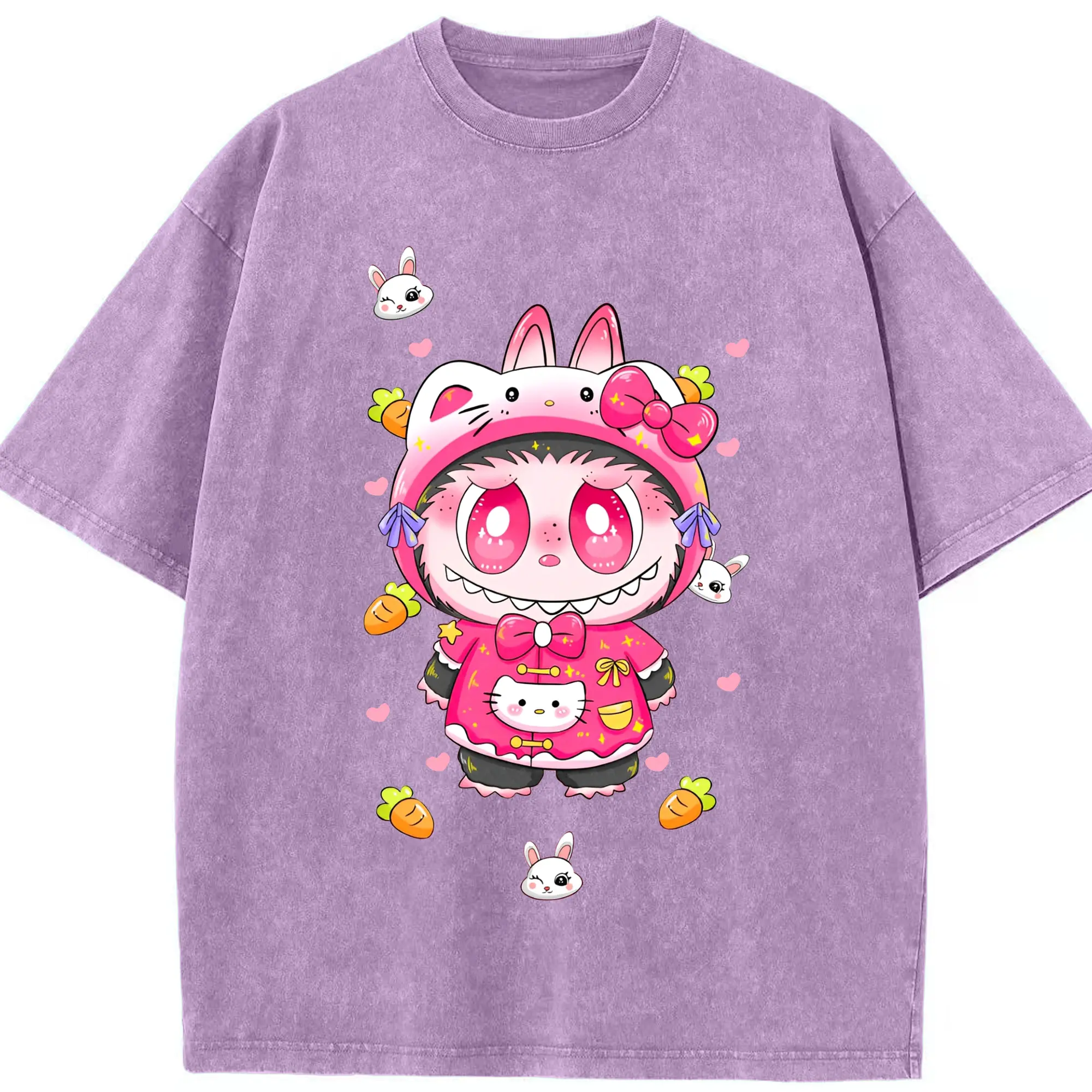 サンリオハローキティ& ラブブ 限定 - 綿100% 半袖Tシャツ ・ フロントプリント ・ 快適 通気性 ・ 日常使い 散歩 スポーツ用