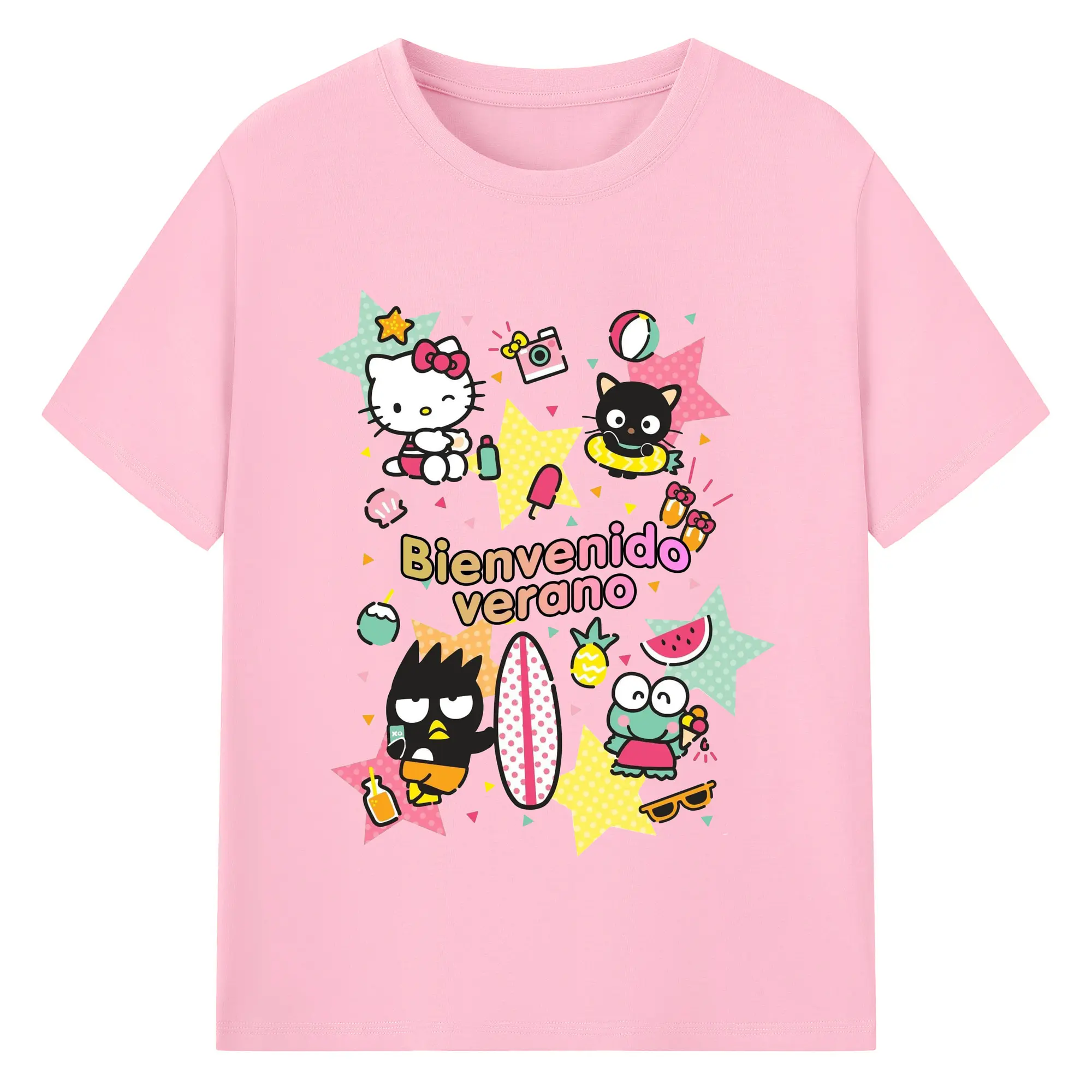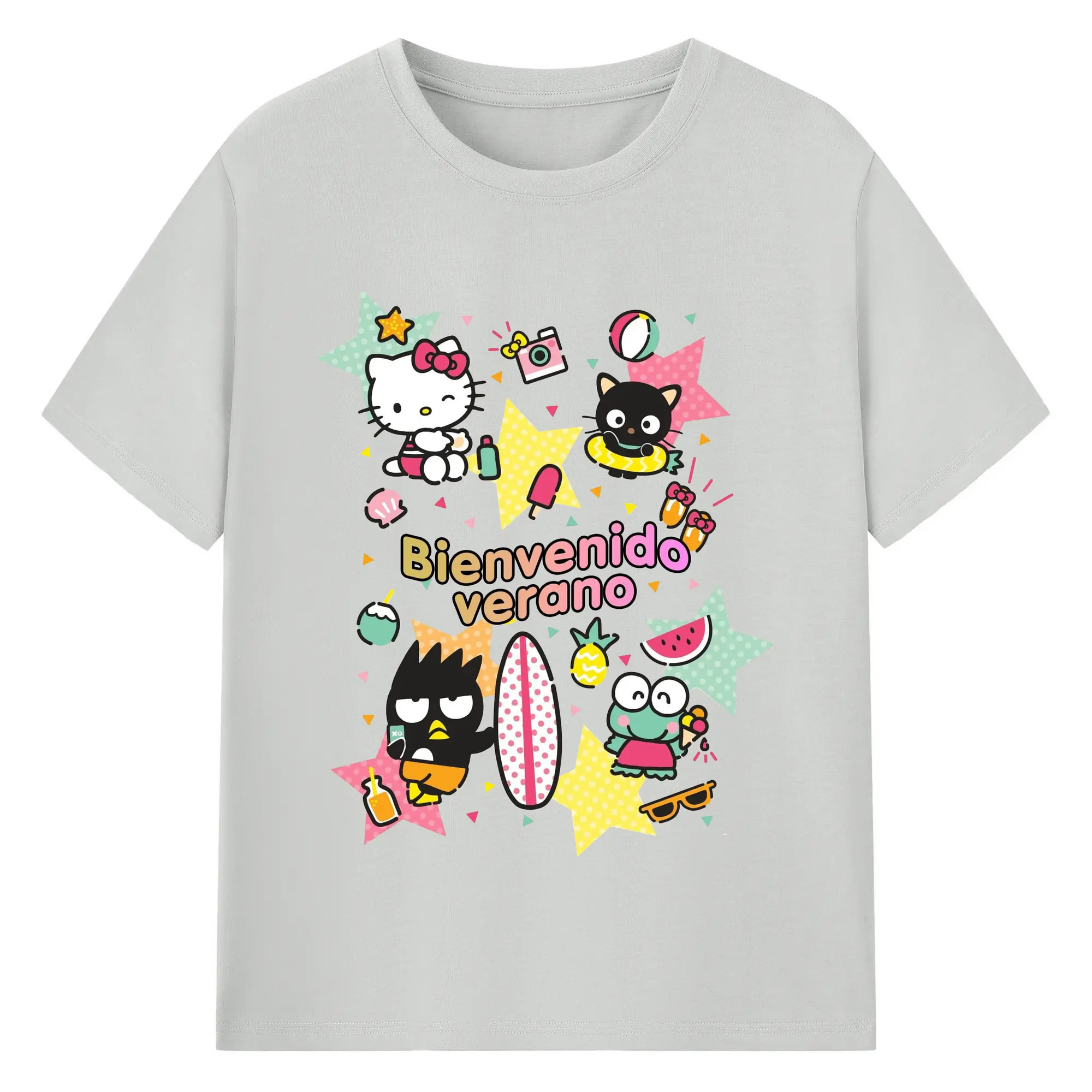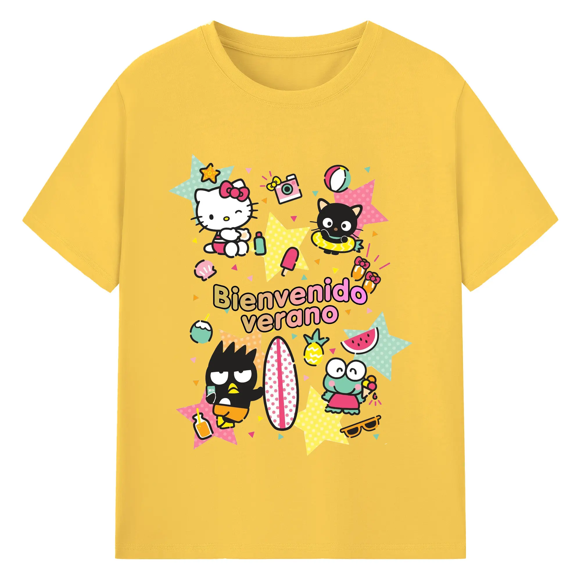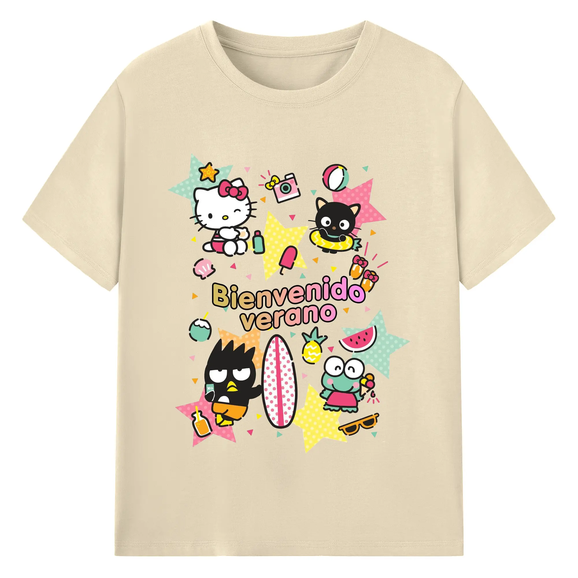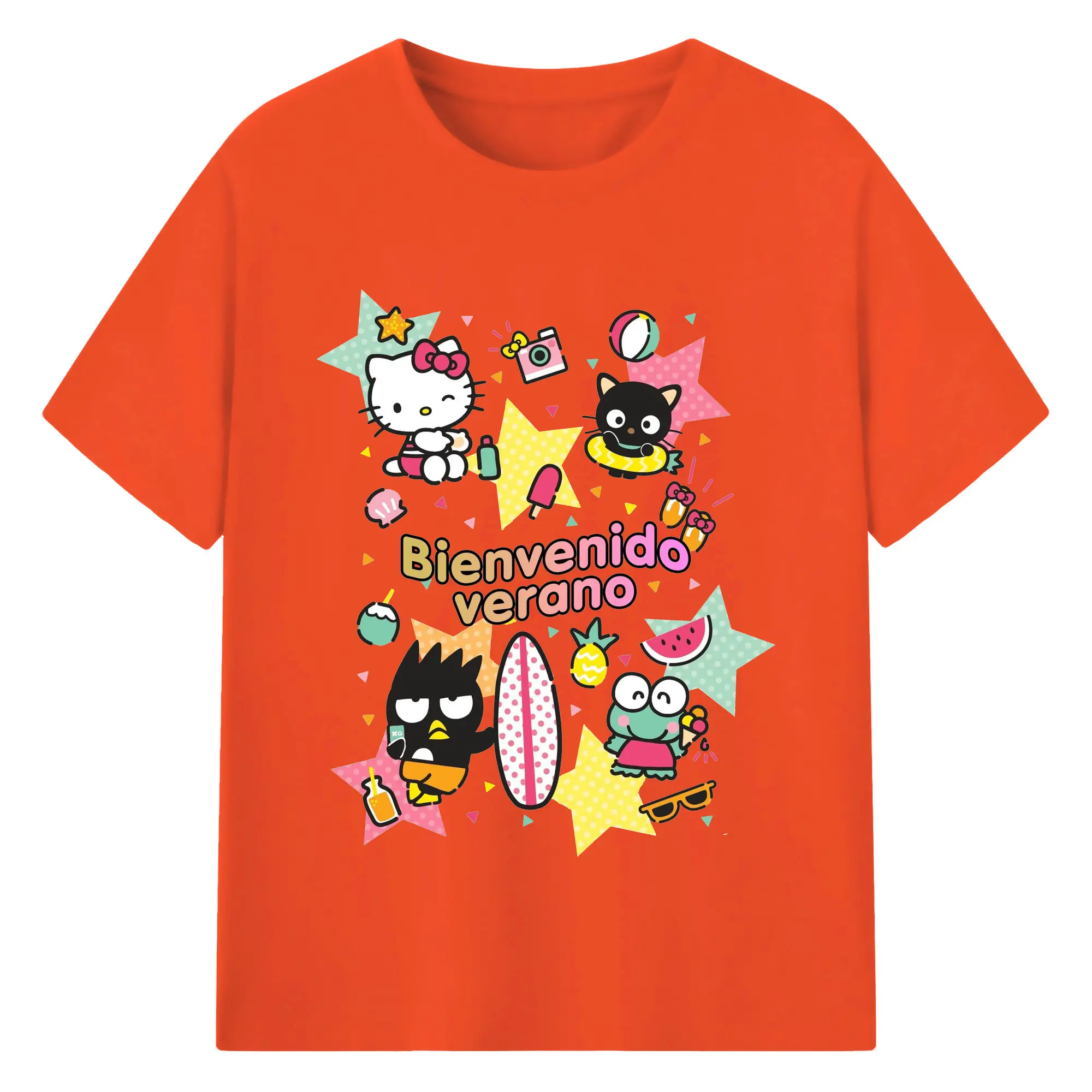 サンリオ グッズ風 カラフルプリント - 綿100% ヴィンテージ風 半袖Tシャツ ・ フロントプリント ・ 柔らか肌触り ・ 通気性 快適 ・ スポーツ カジュアル 外出用