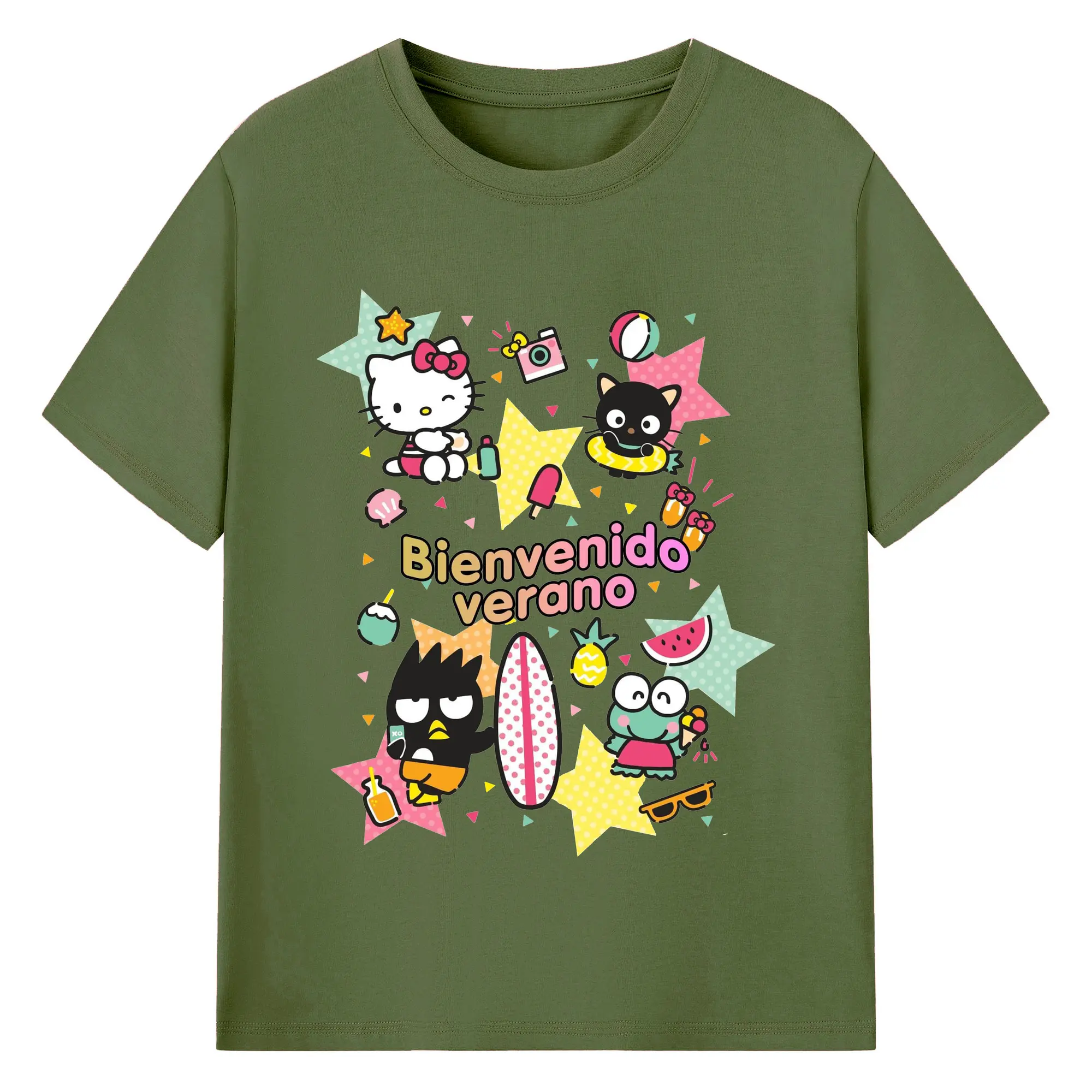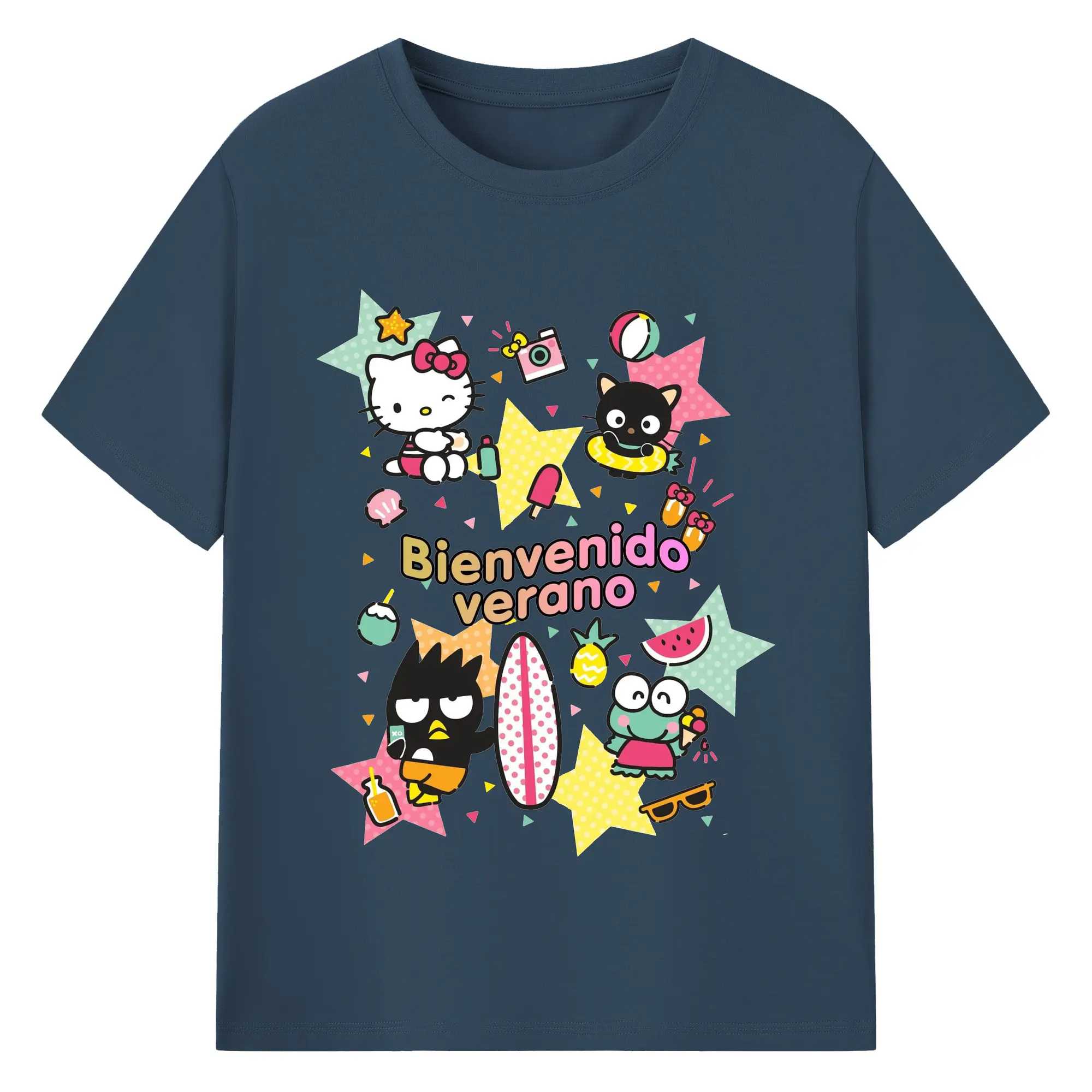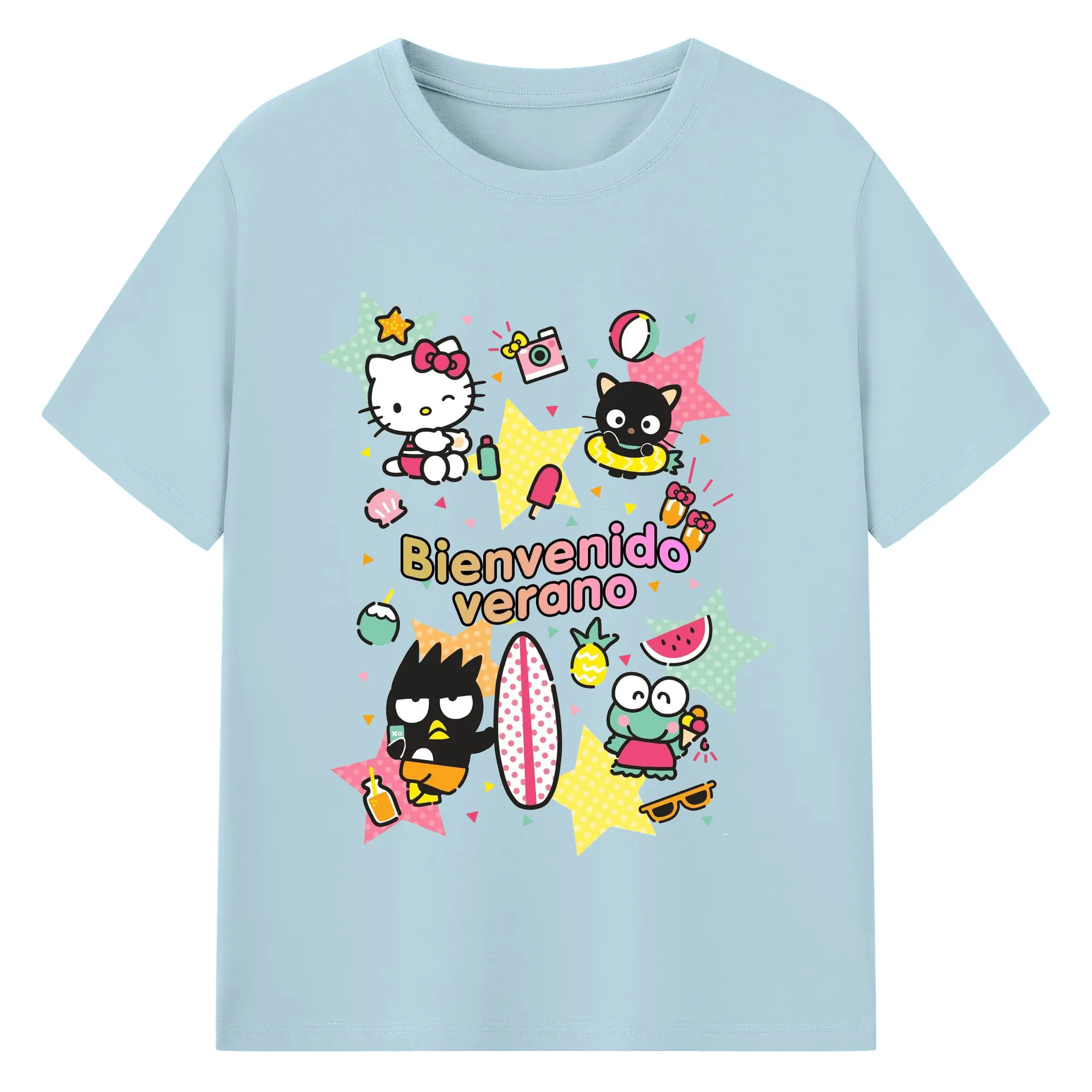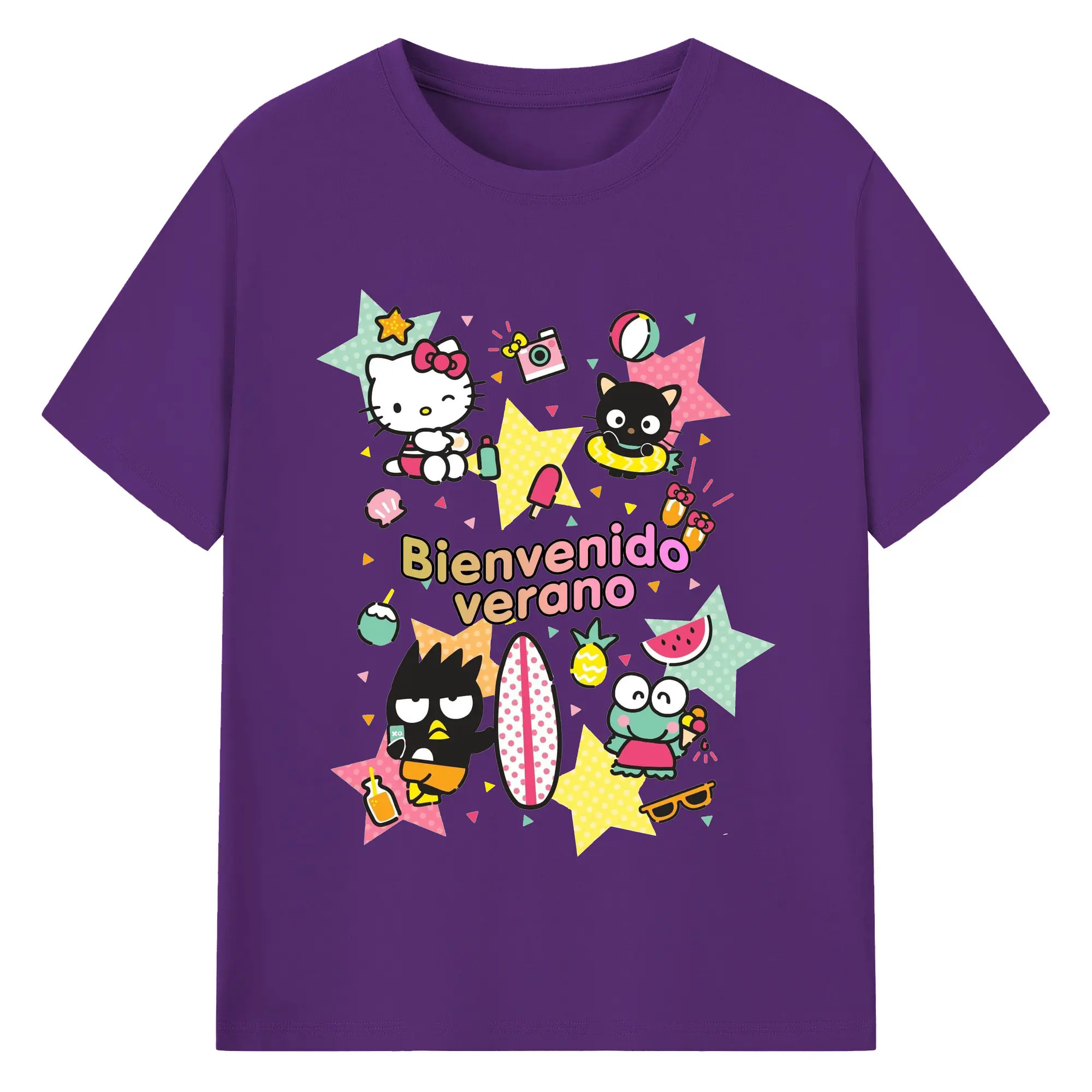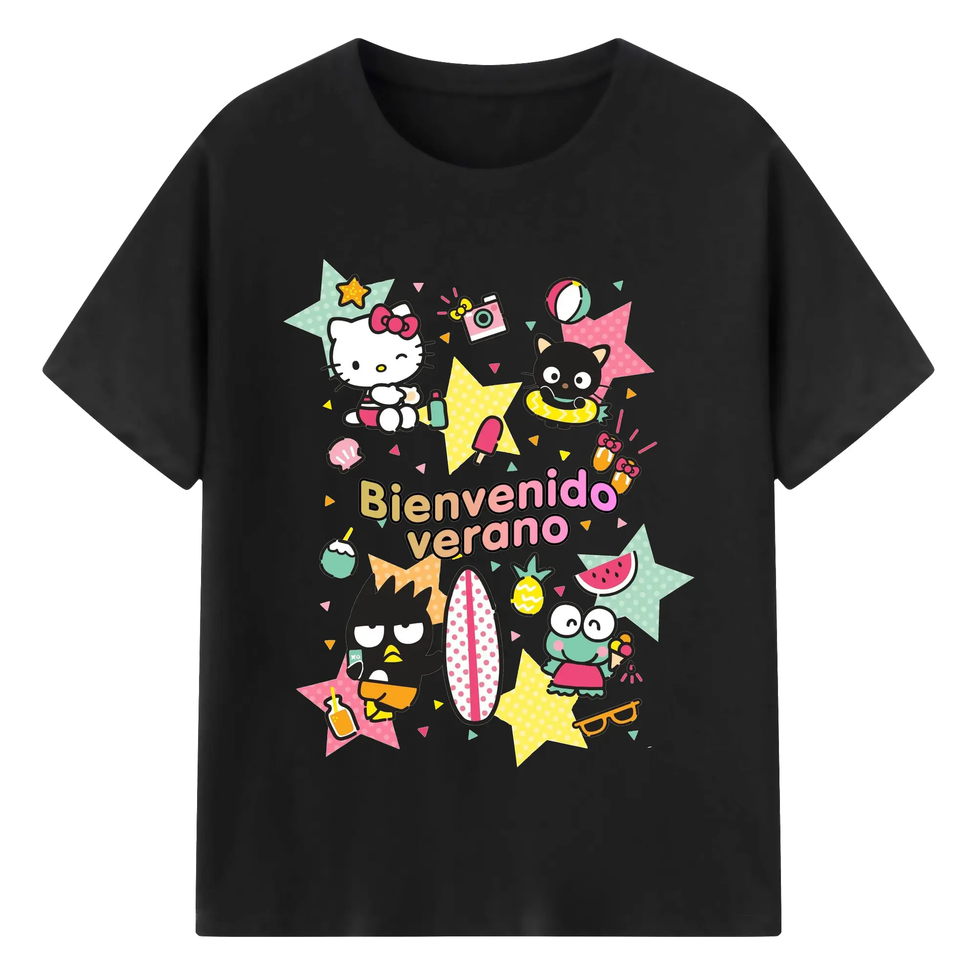 サンリオ グッズ風 カラフルプリント - 綿100% ヴィンテージ風 半袖Tシャツ ・ フロントプリント ・ 柔らか肌触り ・ 通気性 快適 ・ スポーツ カジュアル 外出用