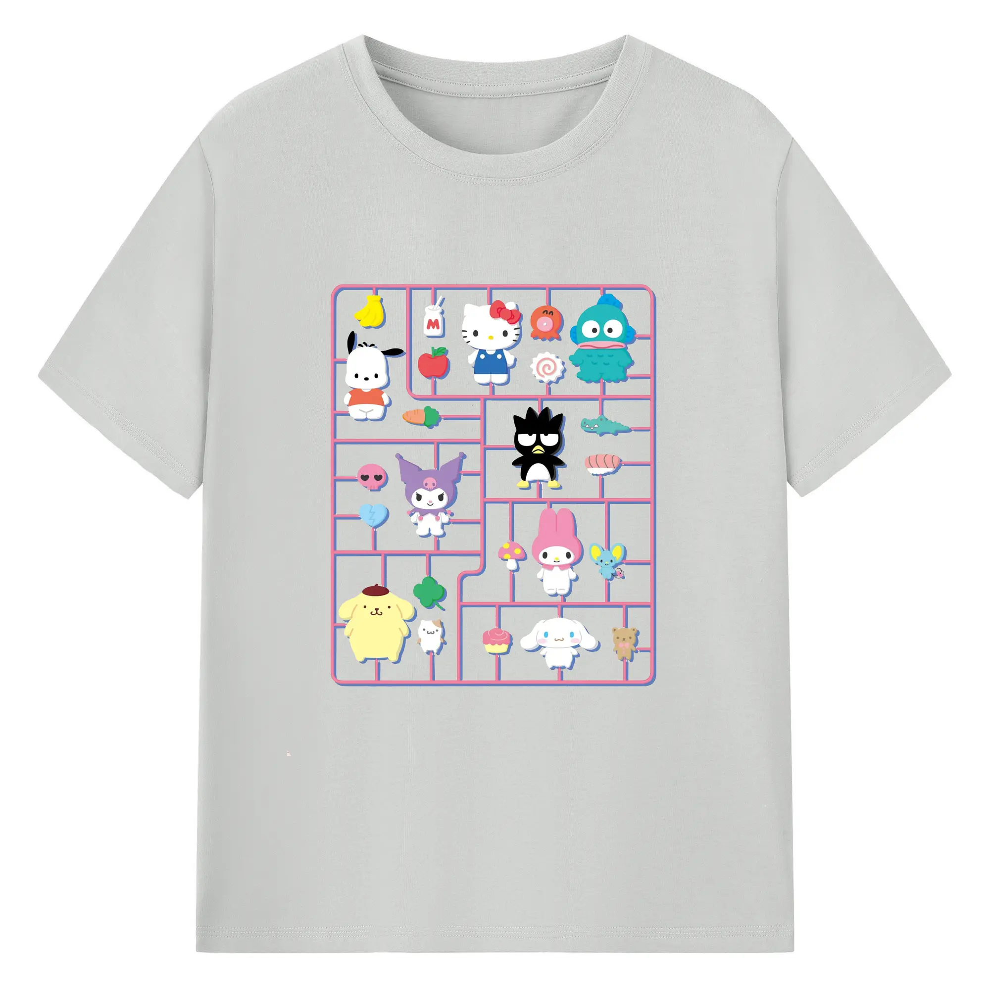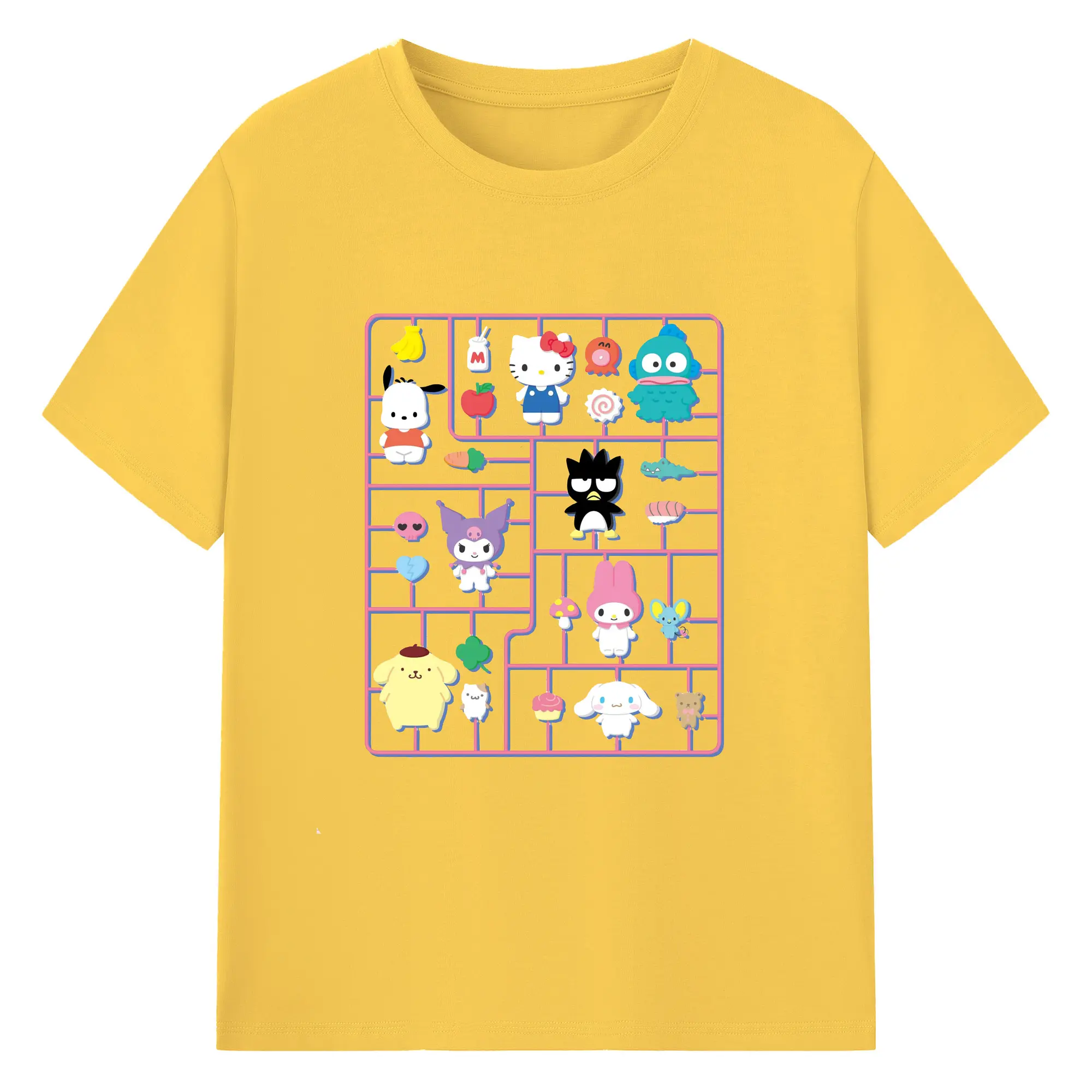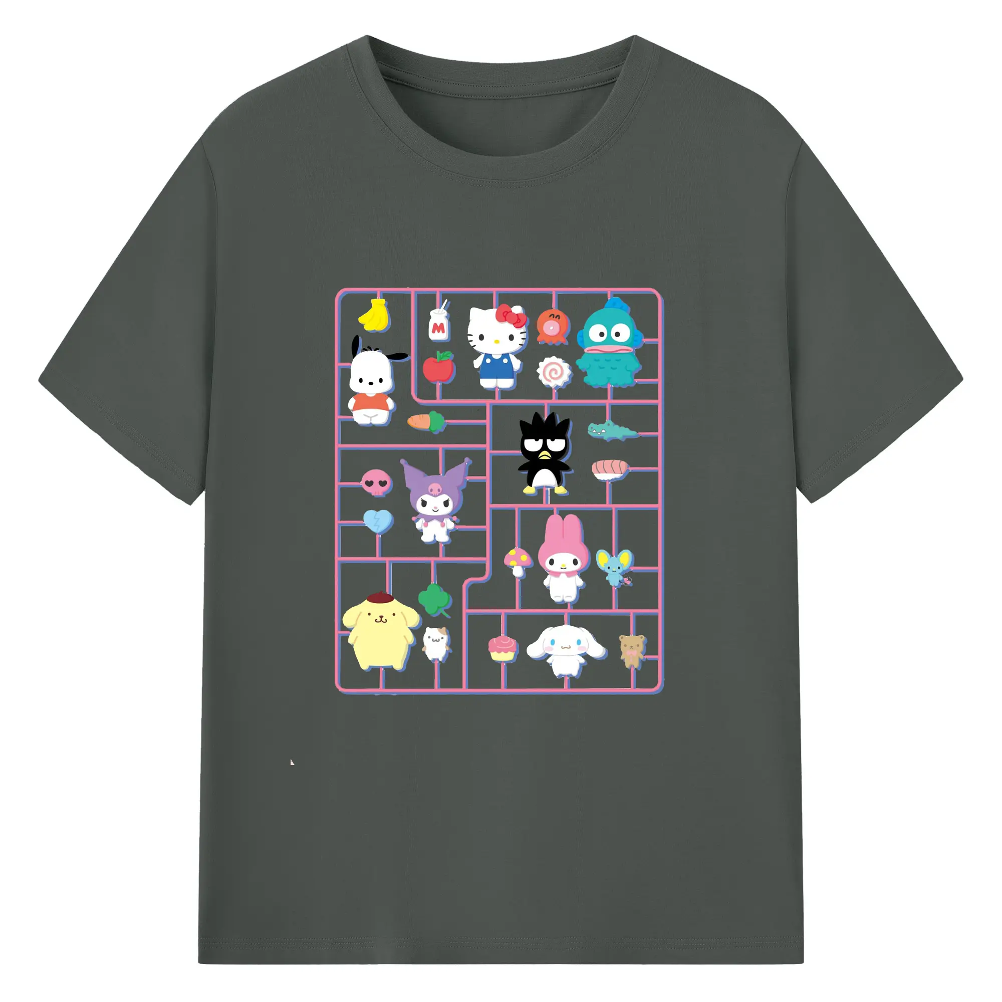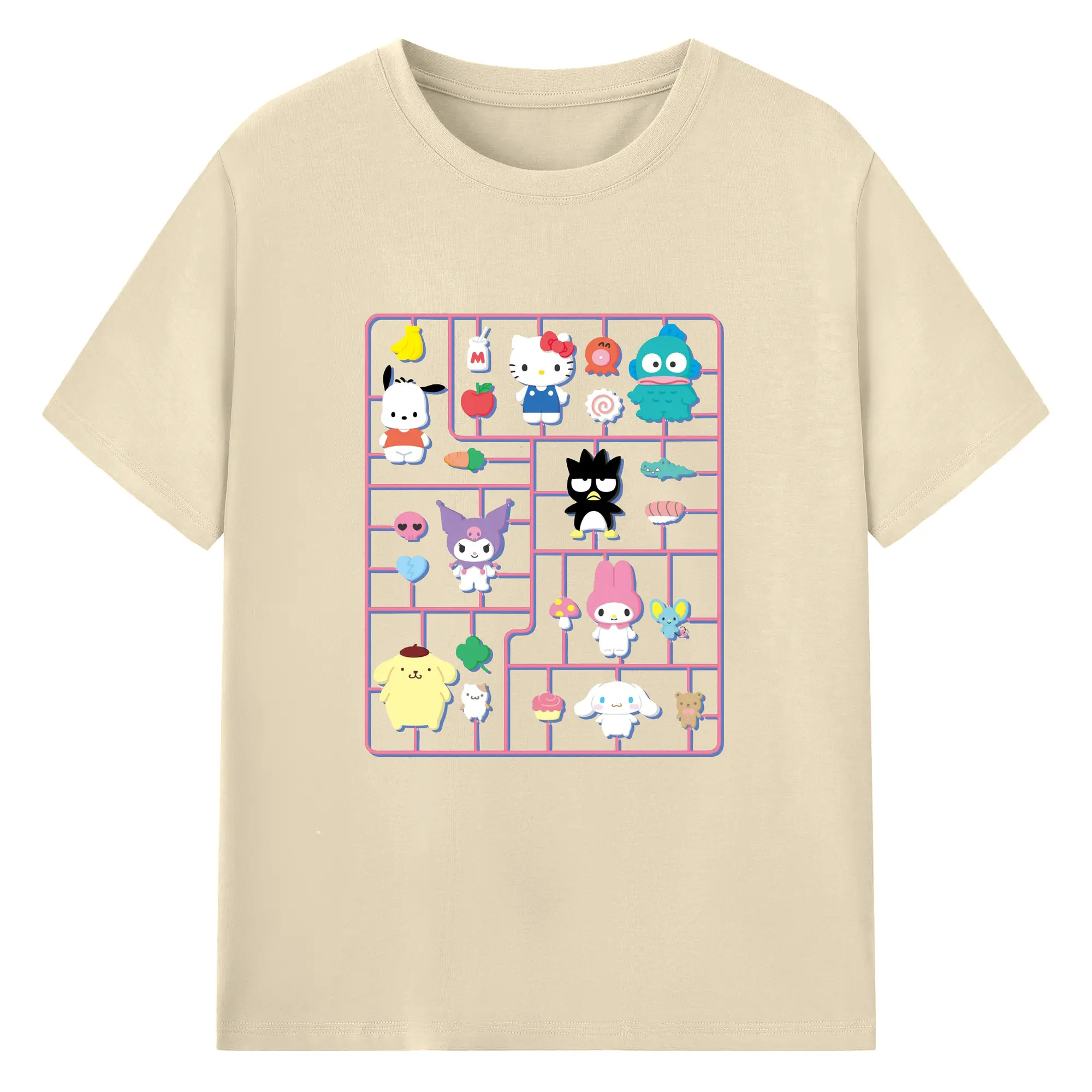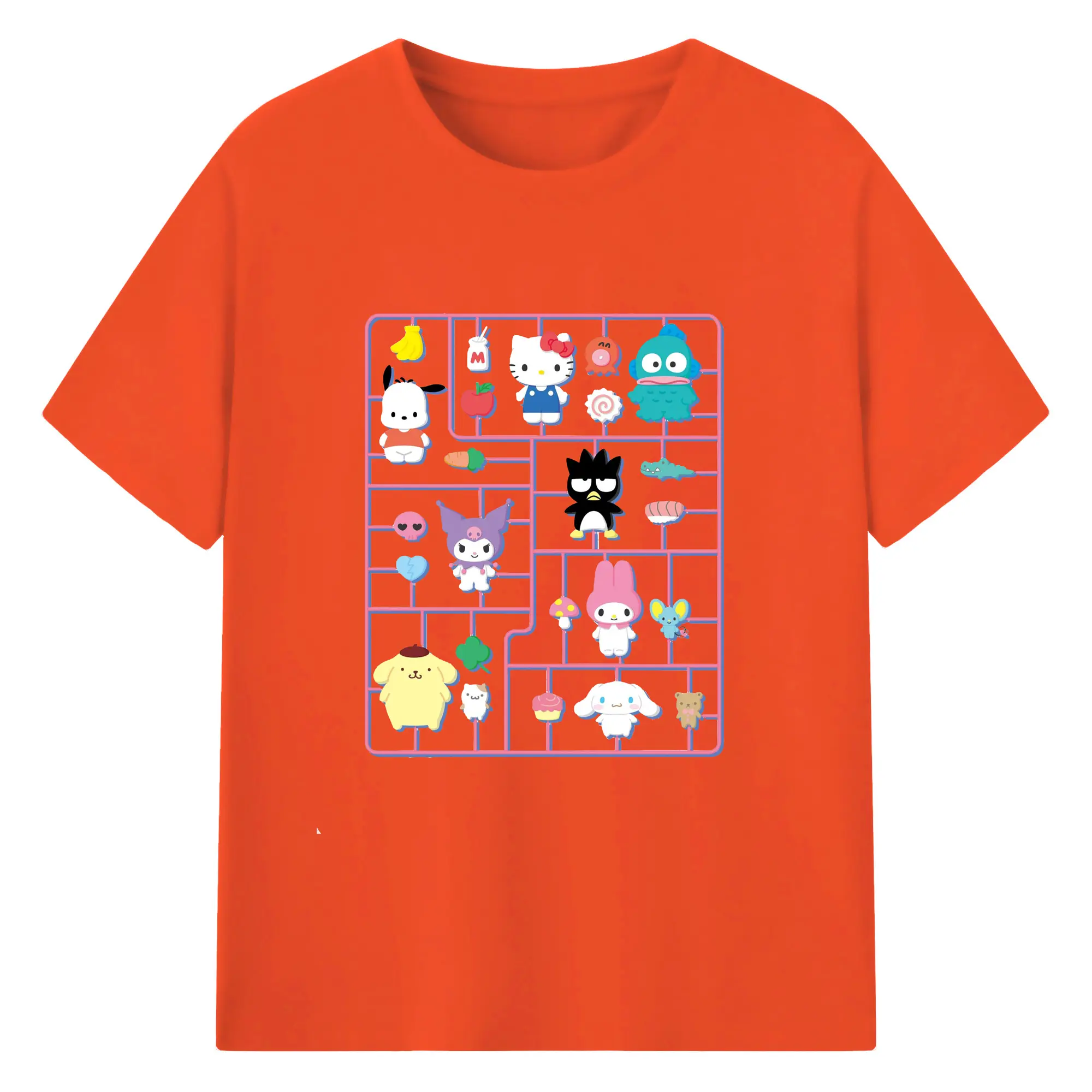 サンリオ グッズ風 カラフルプリント - 綿100% ヴィンテージ風 半袖Tシャツ ・ フロントプリント ・ 柔らか肌触り ・ 通気性 快適 ・ スポーツ カジュアル 外出用