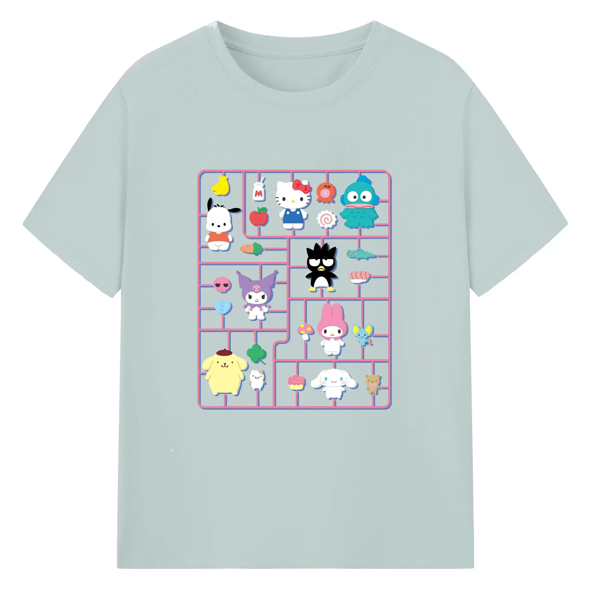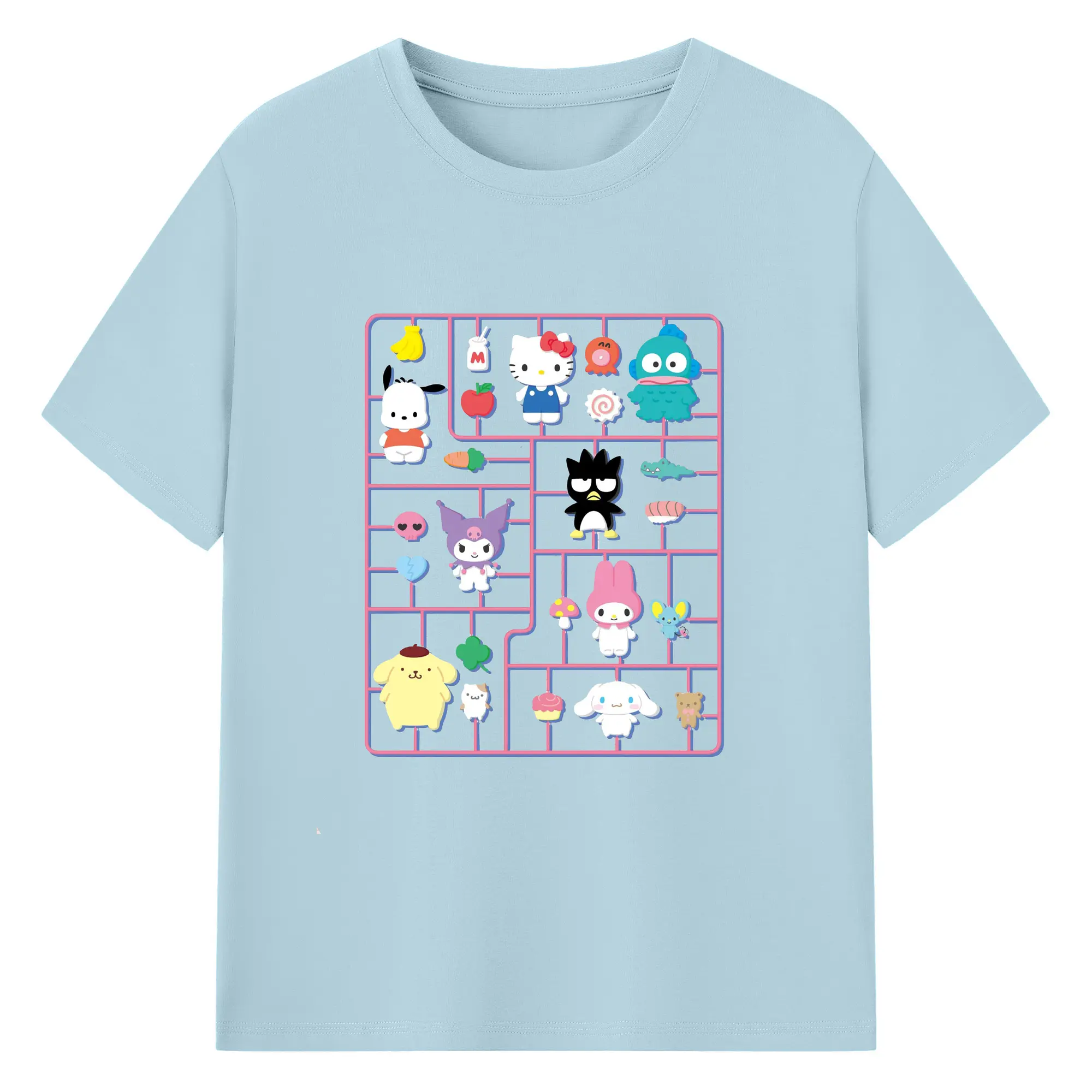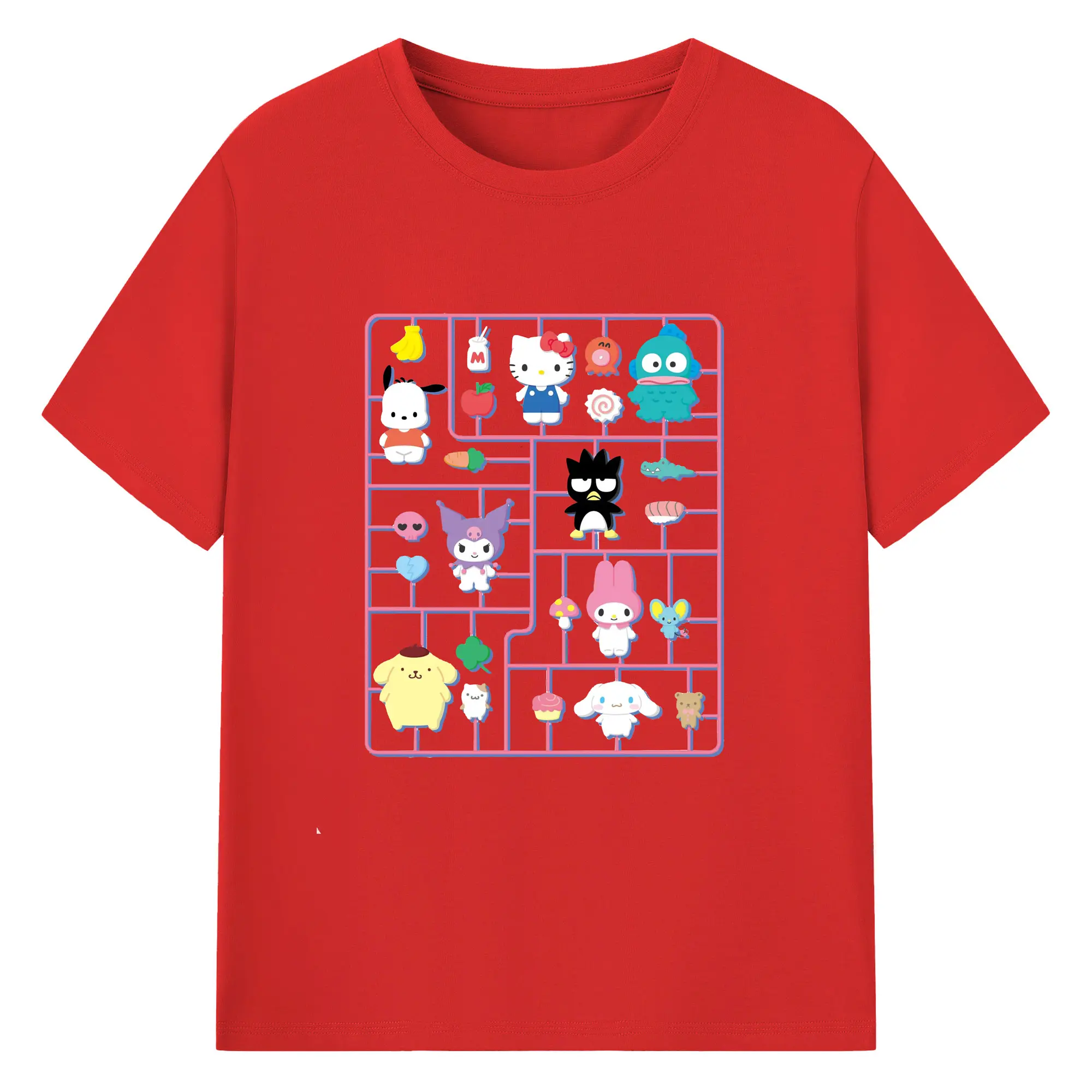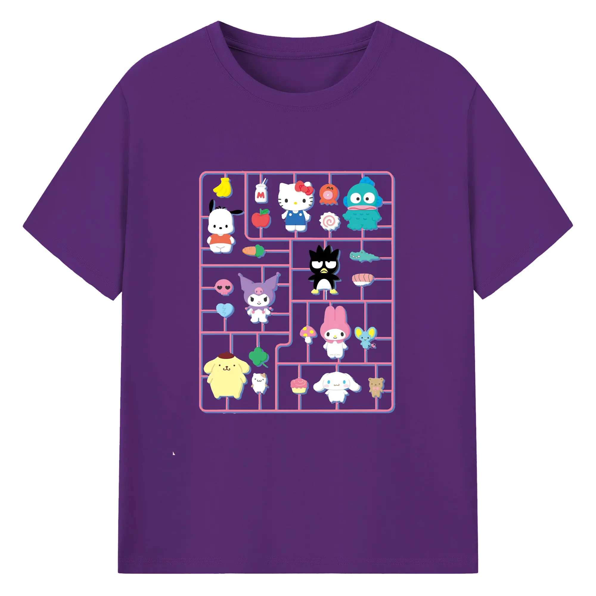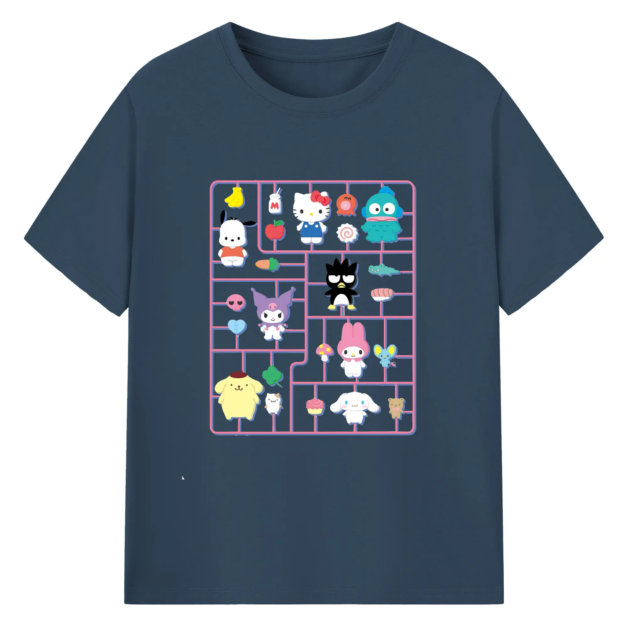 サンリオ グッズ風 カラフルプリント - 綿100% ヴィンテージ風 半袖Tシャツ ・ フロントプリント ・ 柔らか肌触り ・ 通気性 快適 ・ スポーツ カジュアル 外出用