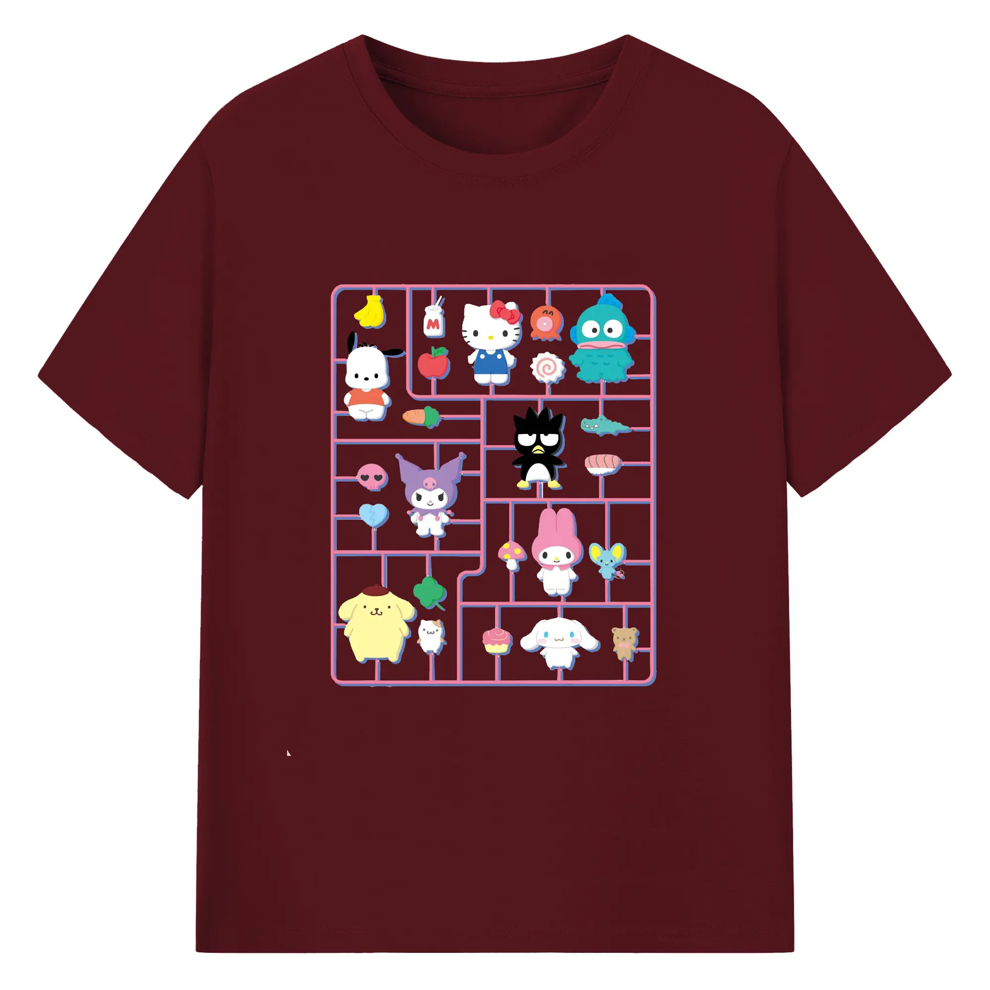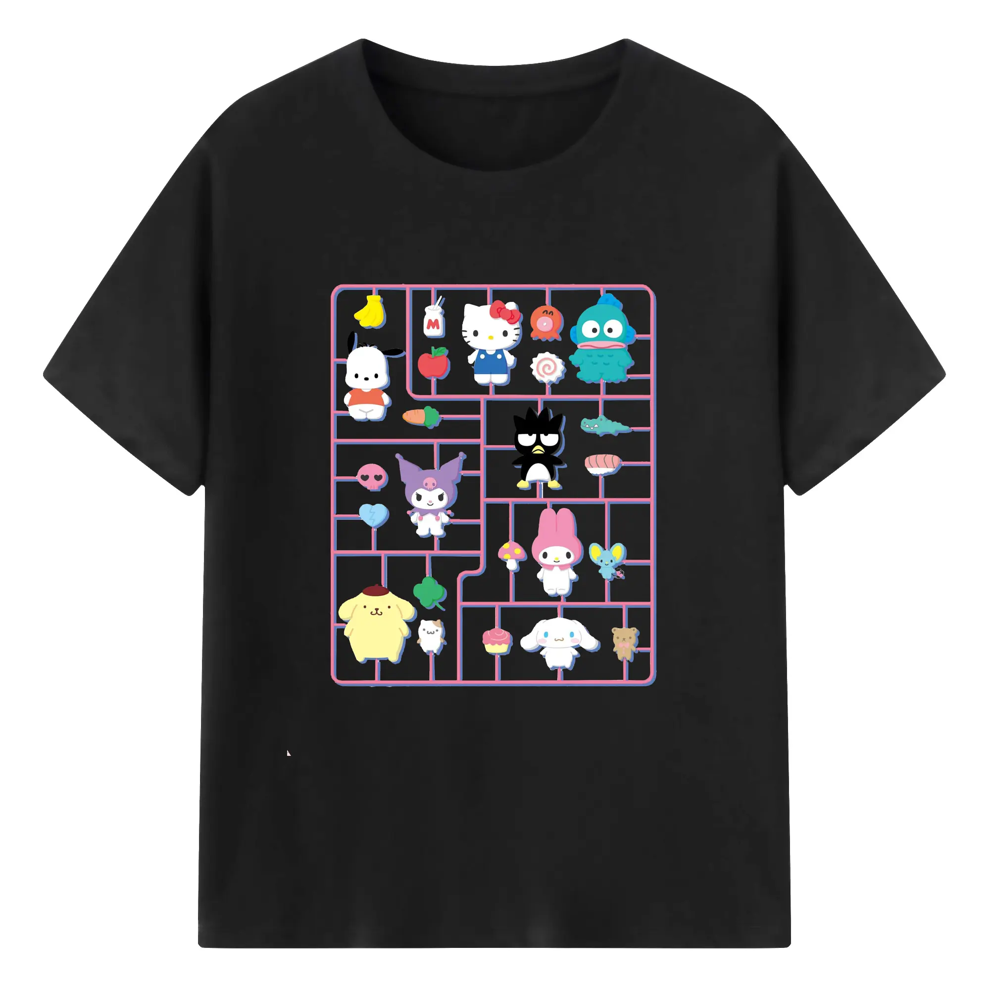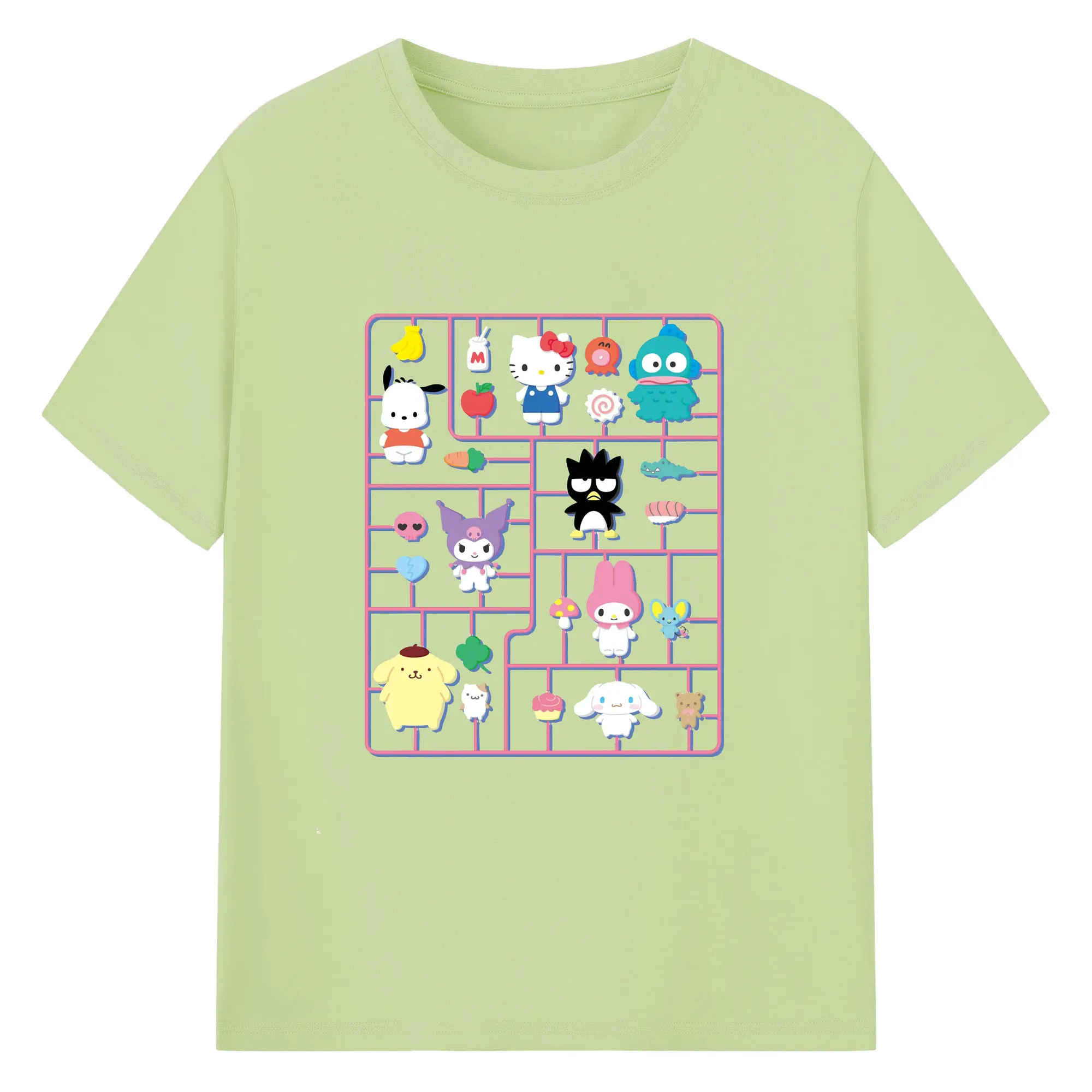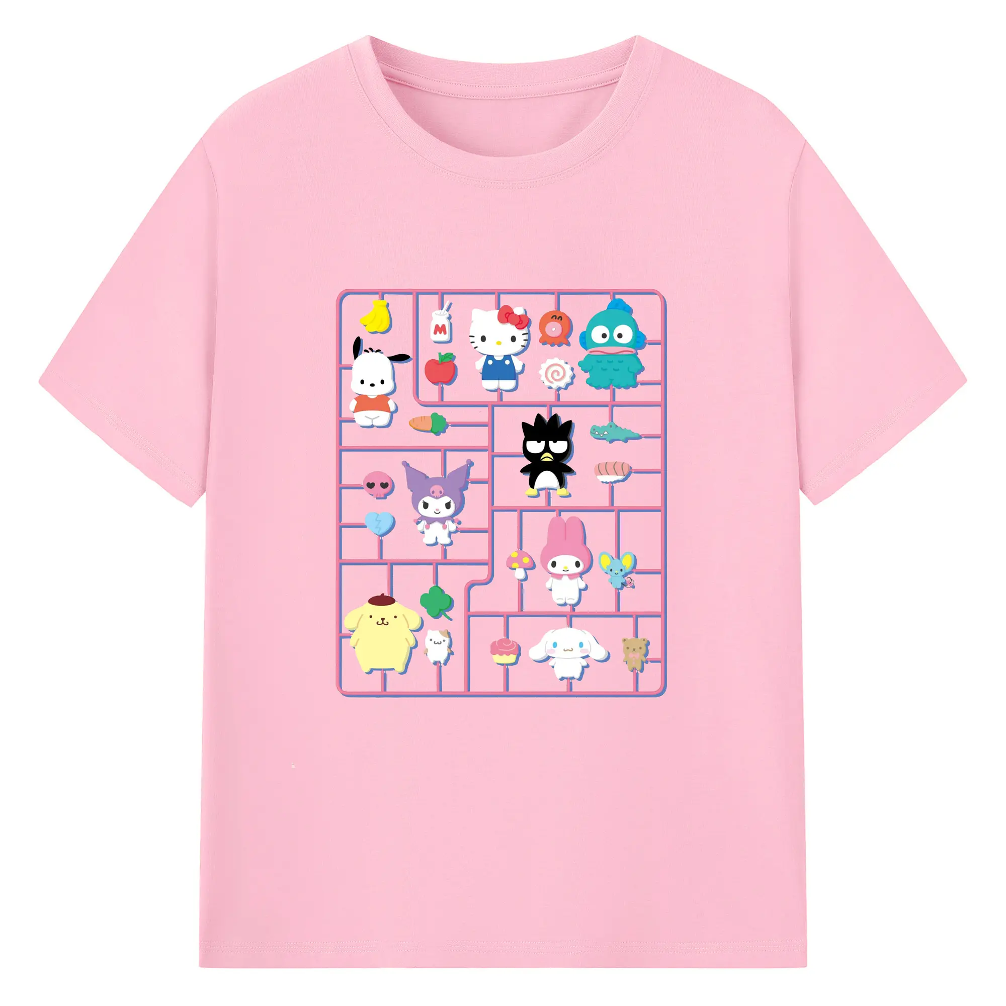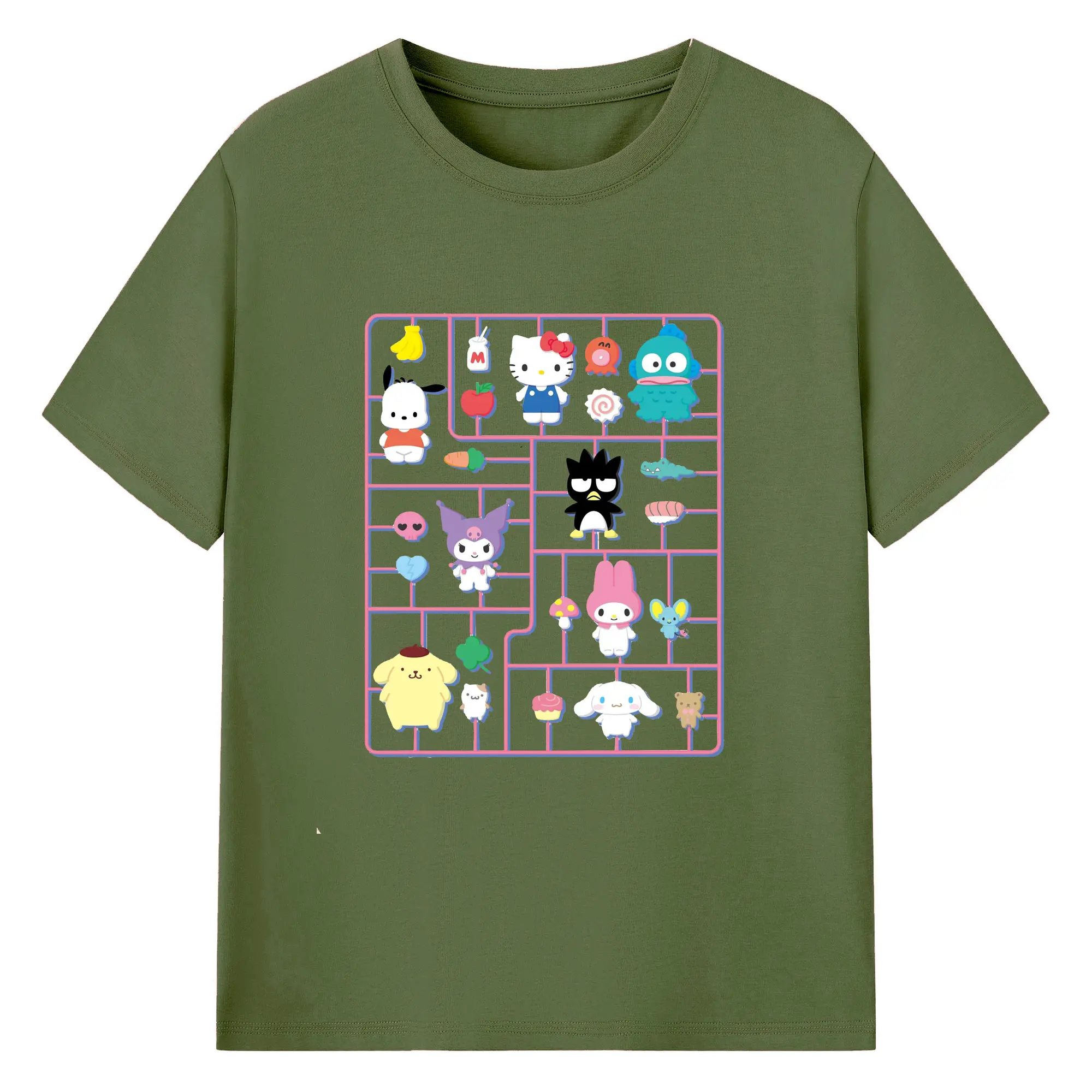 サンリオ グッズ風 カラフルプリント - 綿100% ヴィンテージ風 半袖Tシャツ ・ フロントプリント ・ 柔らか肌触り ・ 通気性 快適 ・ スポーツ カジュアル 外出用