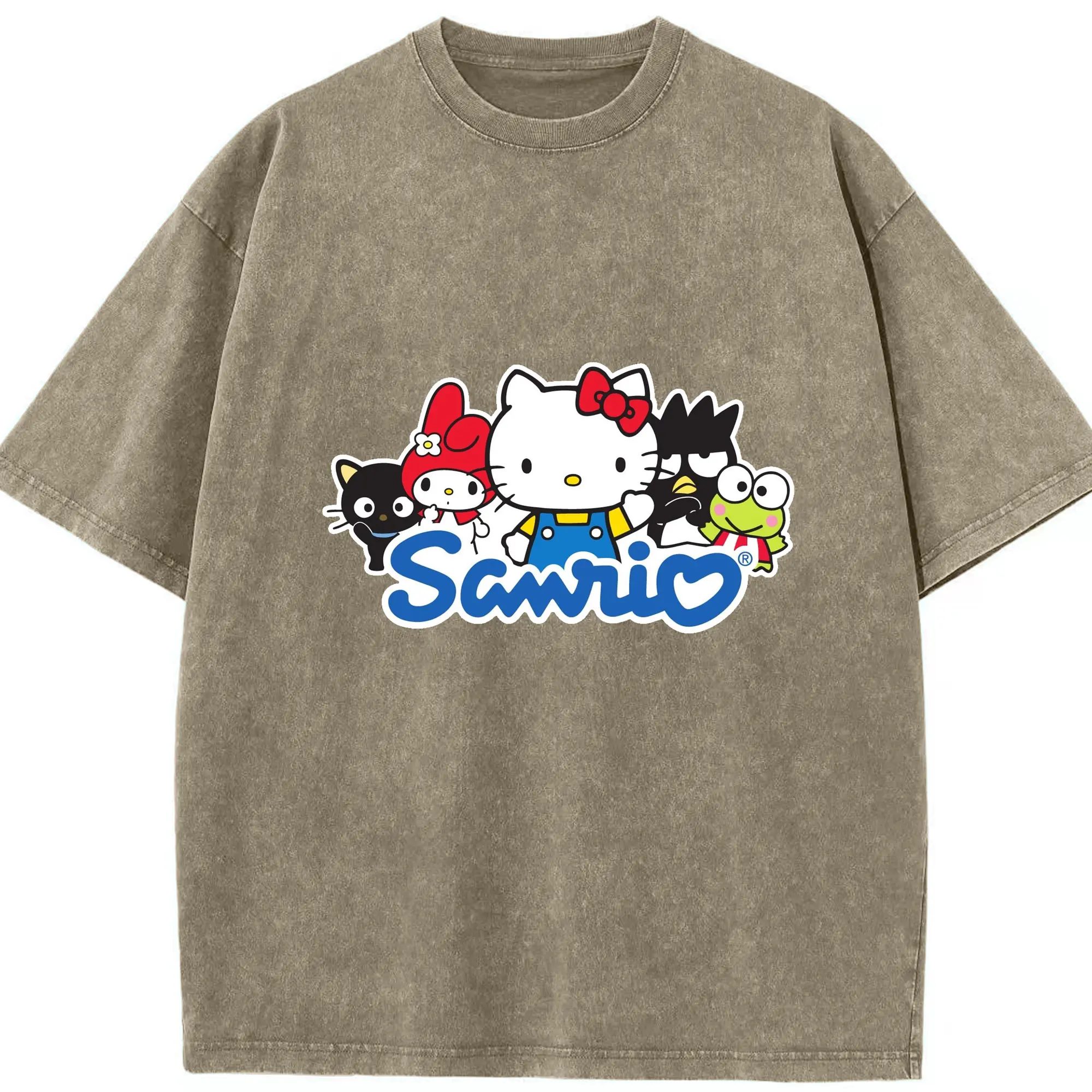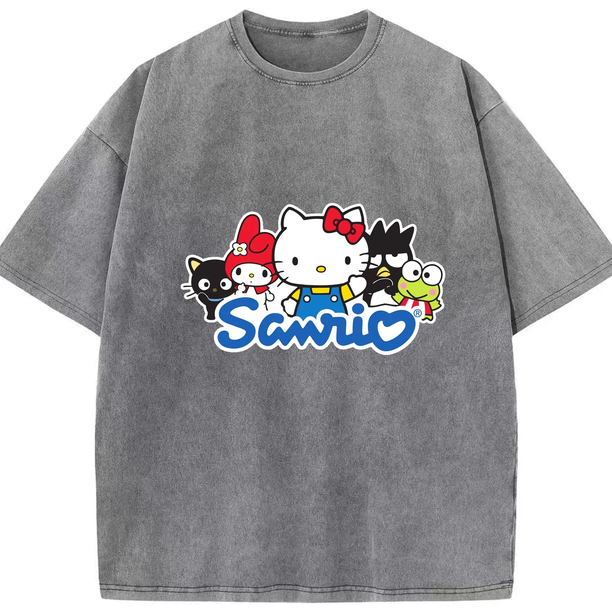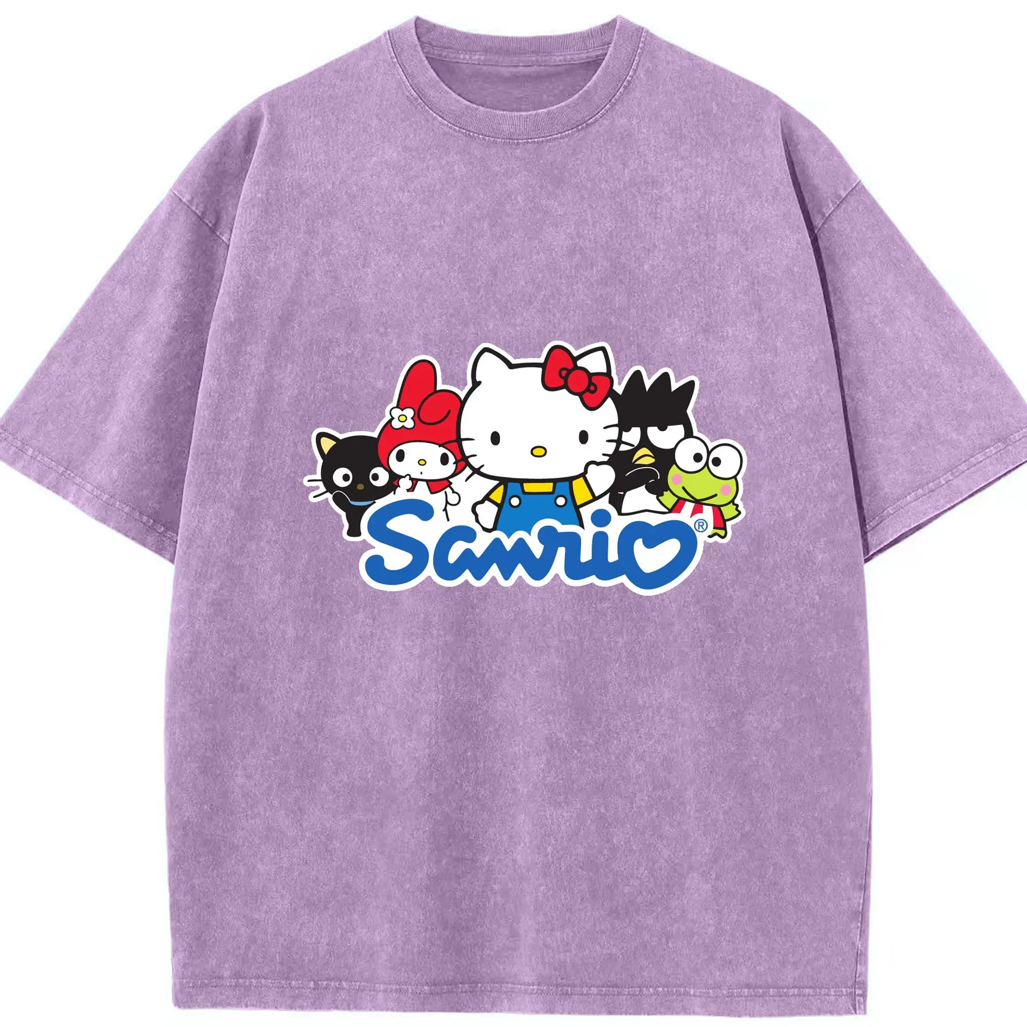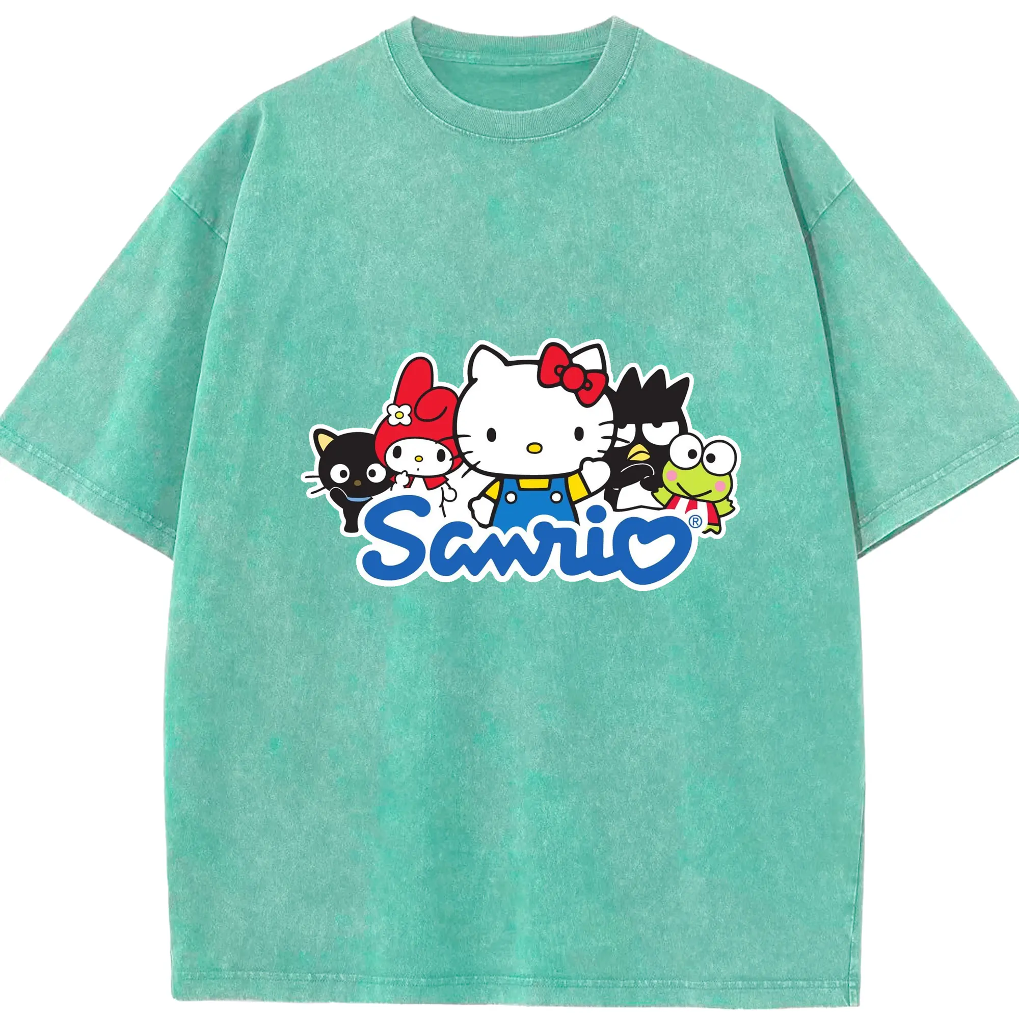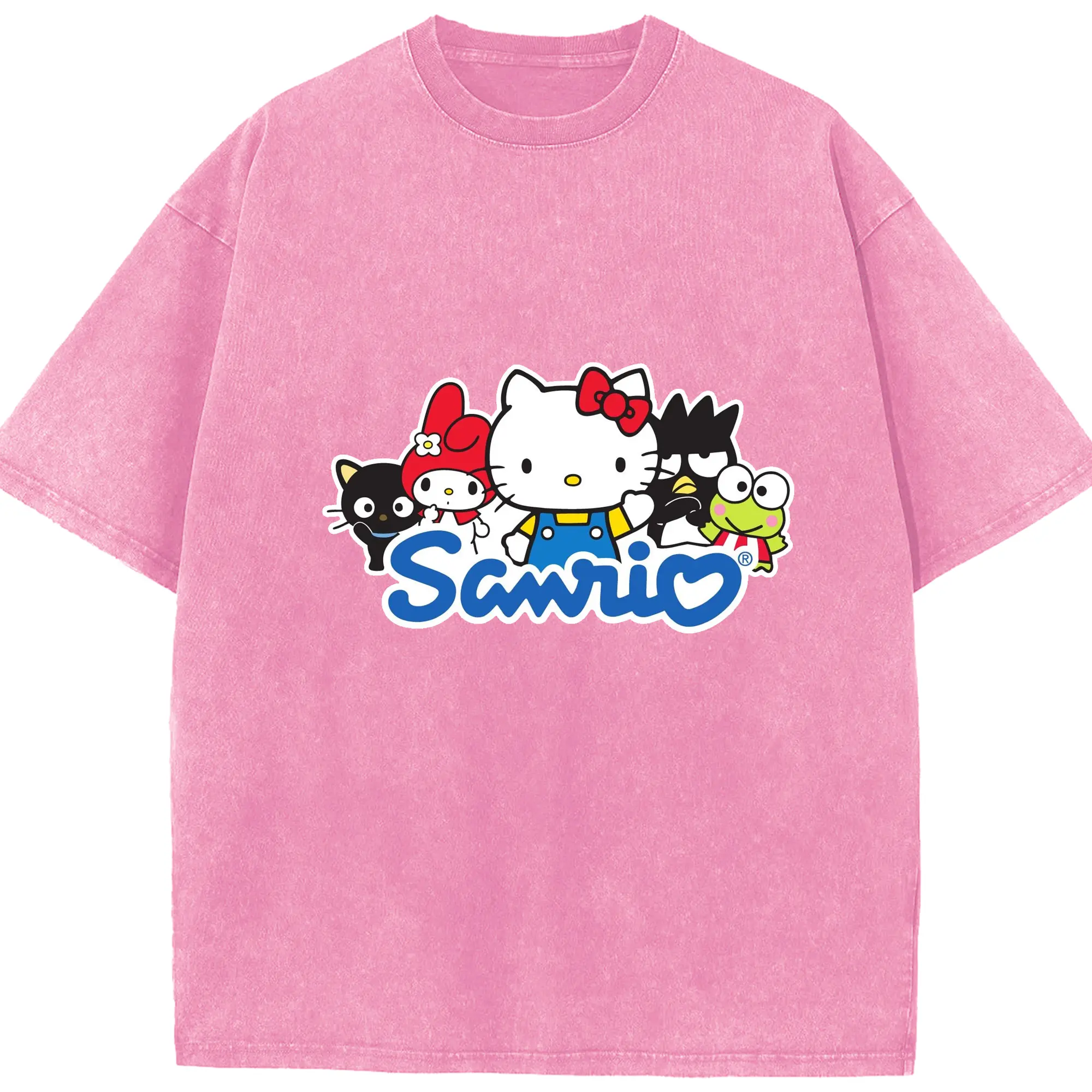 サンリオ シンプルロゴデザイン - 綿100% 半袖Tシャツ ・ フロントプリント ・ 快適 通気性 ・ 日常使い 散歩 スポーツ用