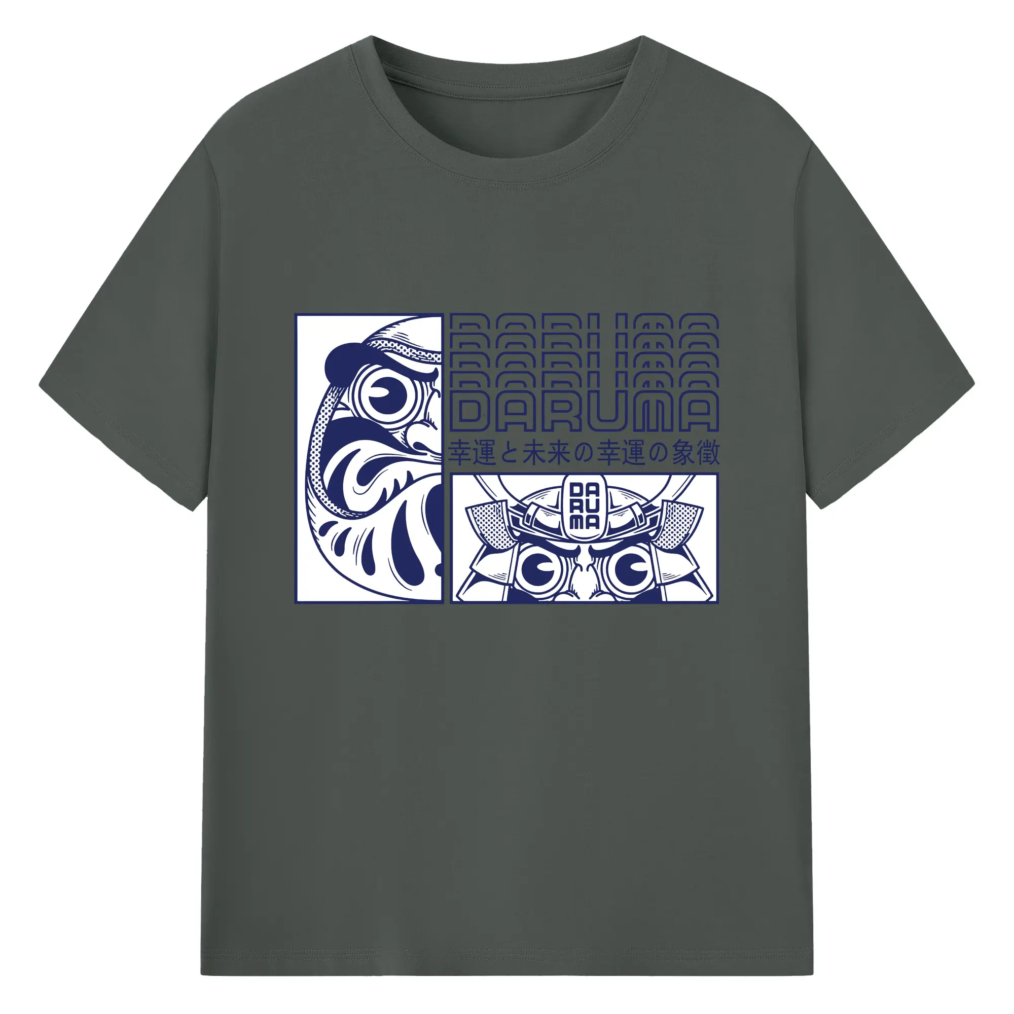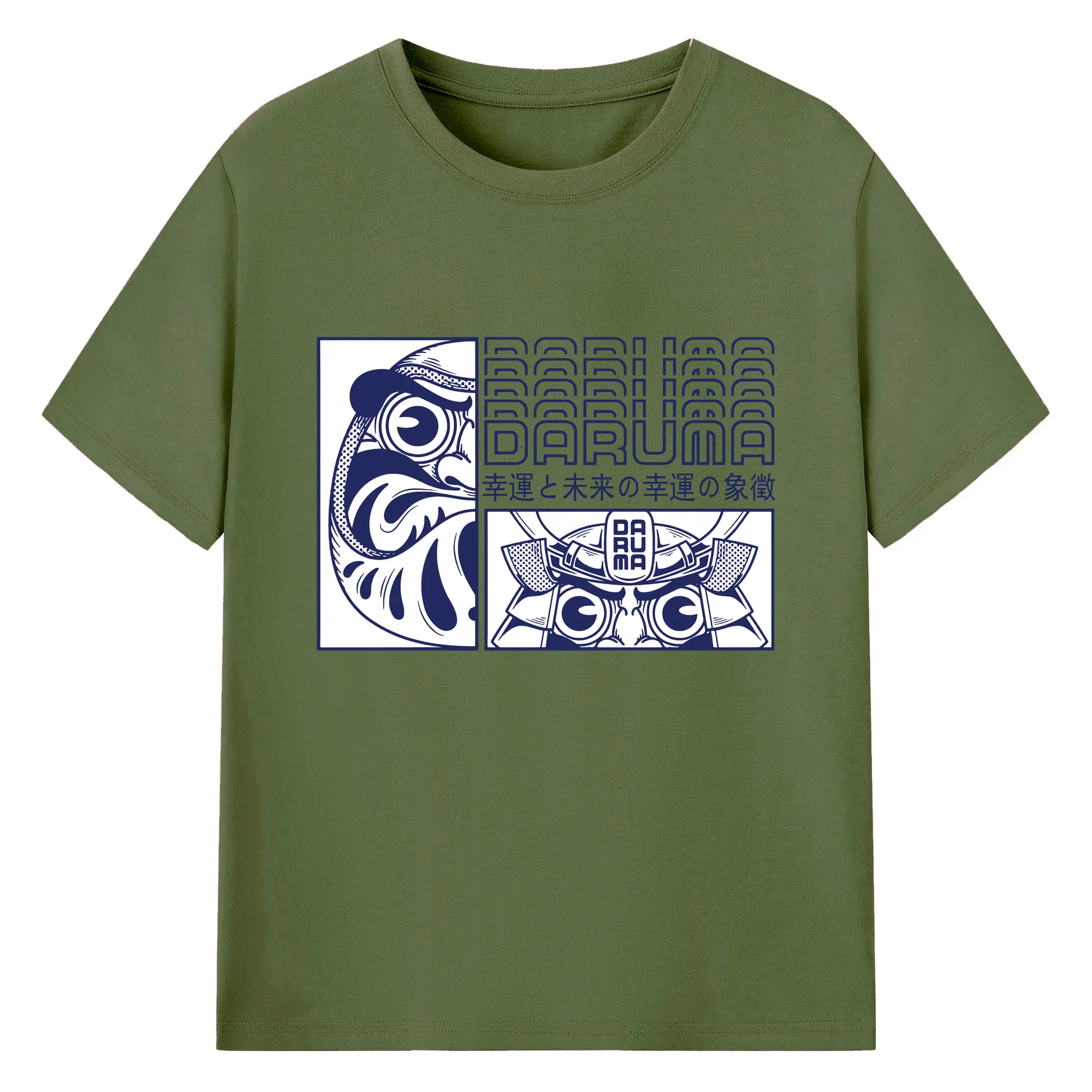 ジャパニーズスピリット 達磨 ミリタリースタイル - 綿100% ヴィンテージ風 半袖Tシャツ ・ フロントプリント ・ 柔らか肌触り ・ 通気性 快適 ・ スポーツ カジュアル 外出用