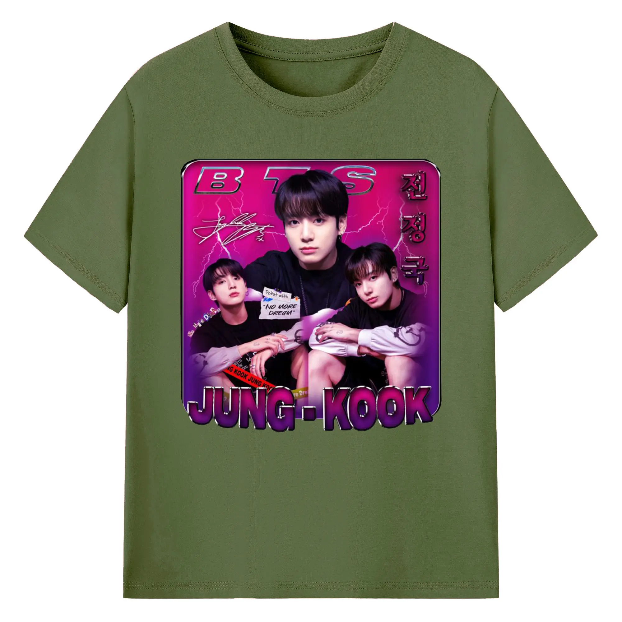 ジョングク “3D” モチーフ 韓流ファン注目トレンド - 綿100% 半袖Tシャツ ・ フロントプリント ・ 快適 通気性 ・ 日常使い 散歩 スポーツ用