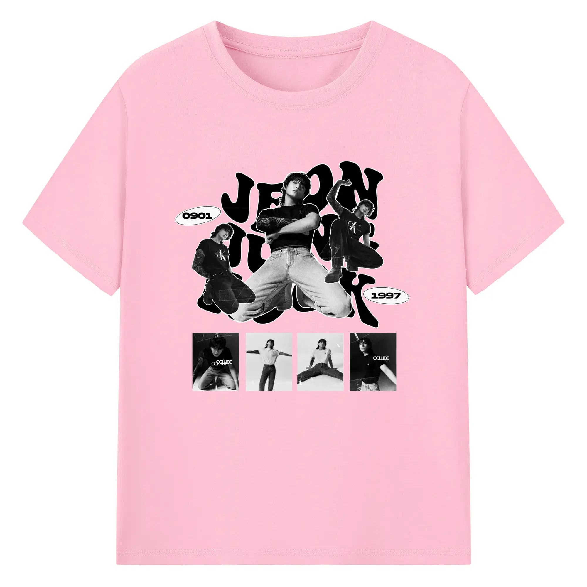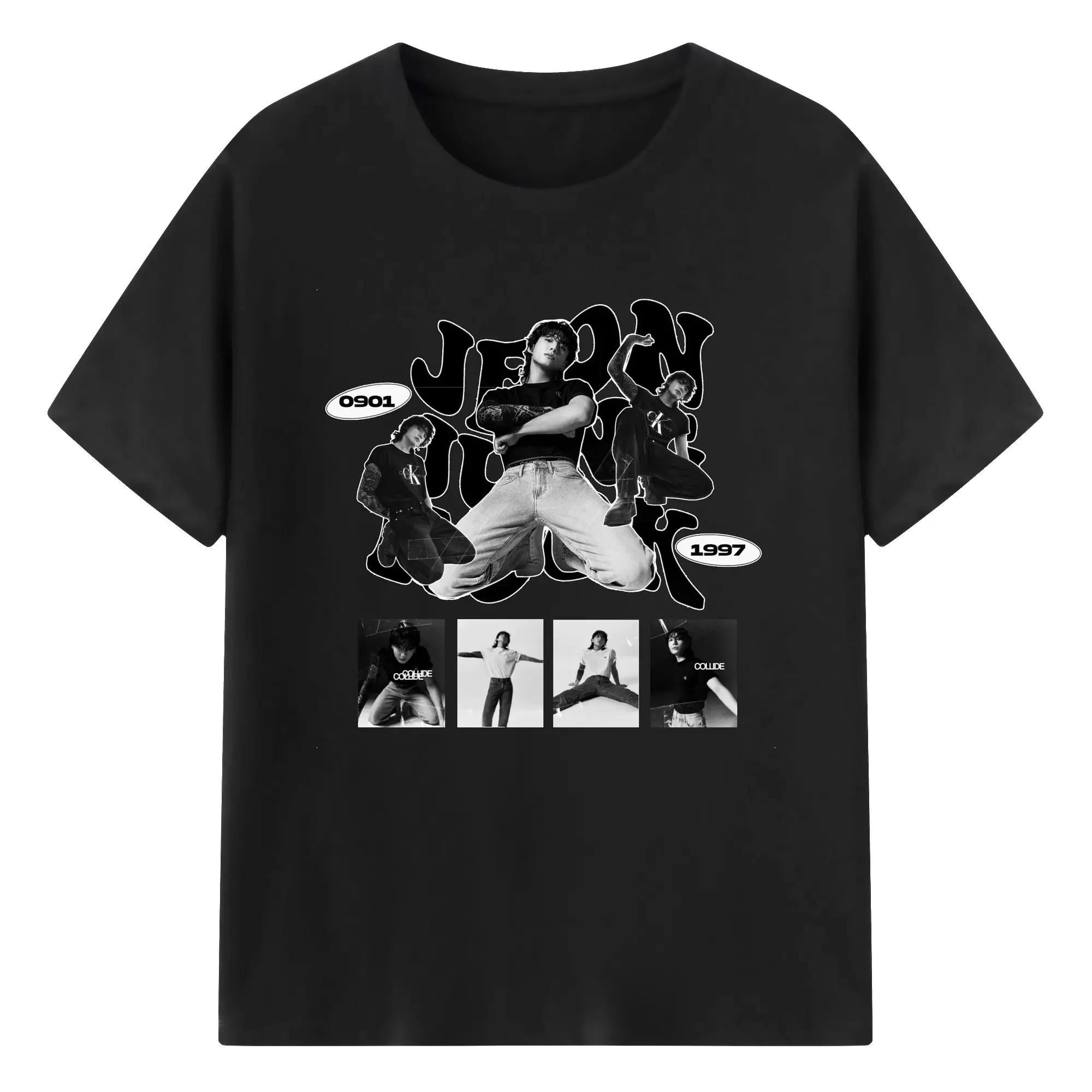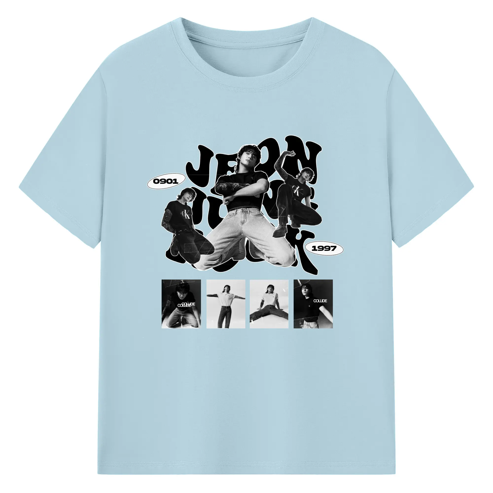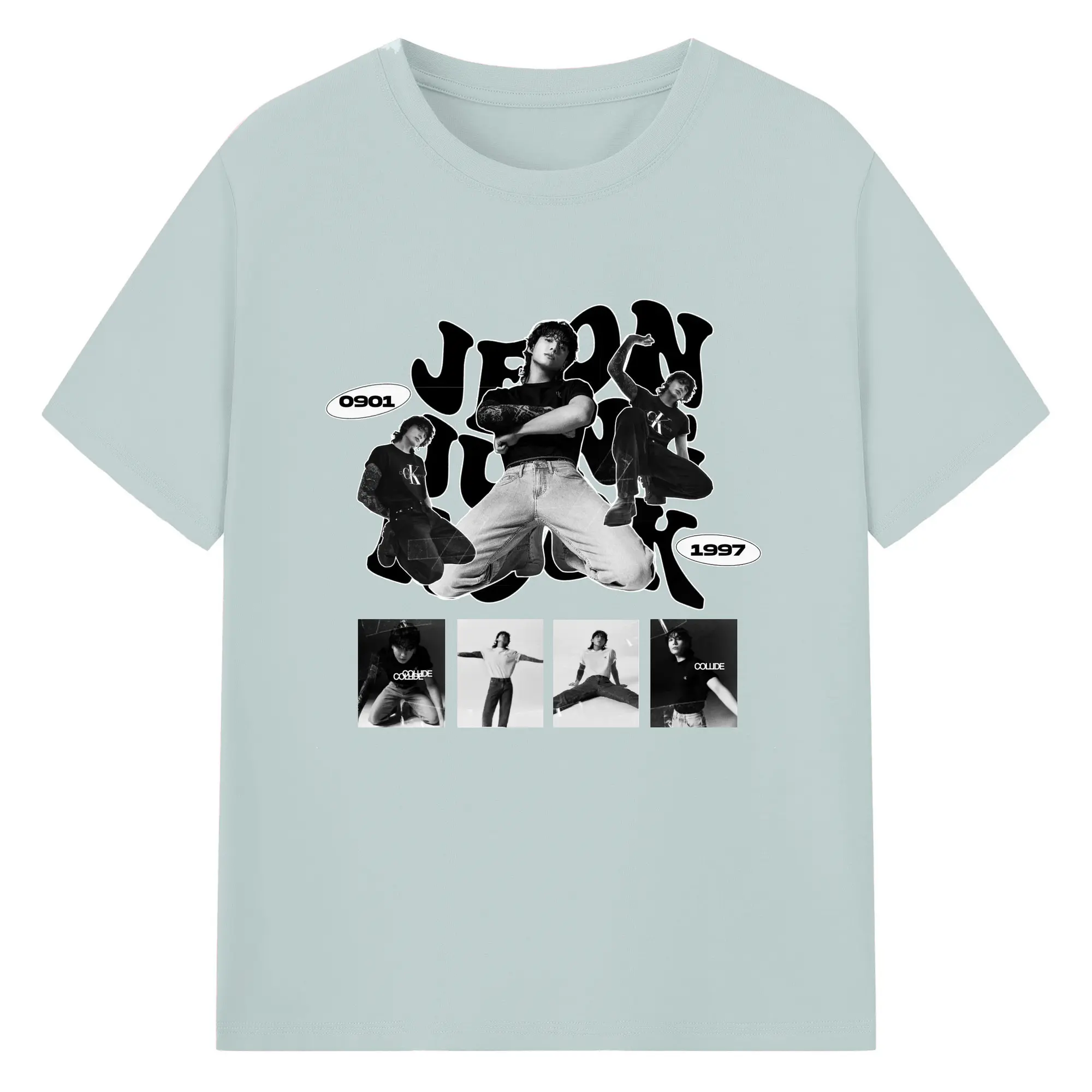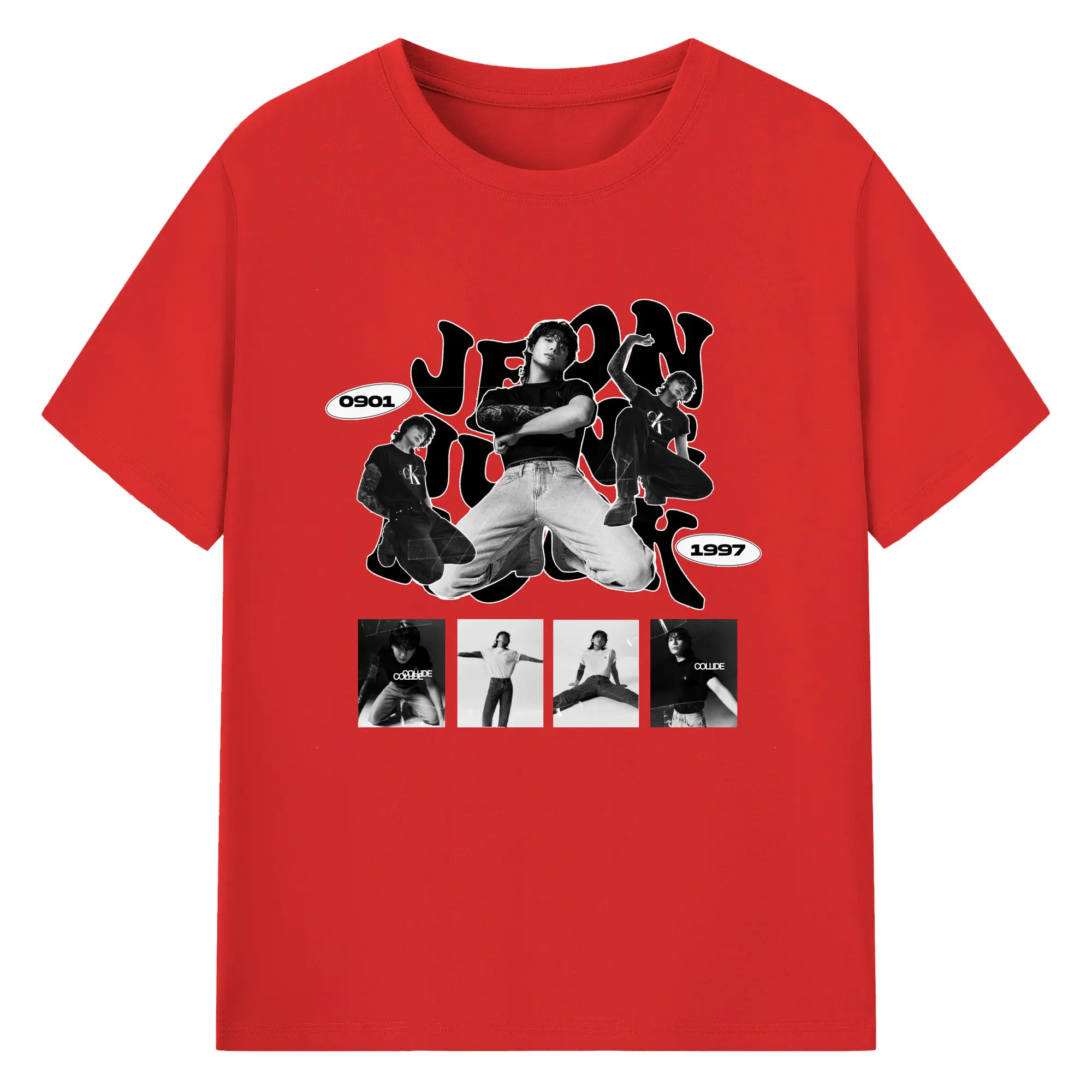 ジョングク アクションフォト 限定 韓流グッズ - 綿100% ヴィンテージ風 半袖Tシャツ ・ フロントプリント ・ 柔らか肌触り ・ 通気性 快適 ・ スポーツ カジュアル 外出用