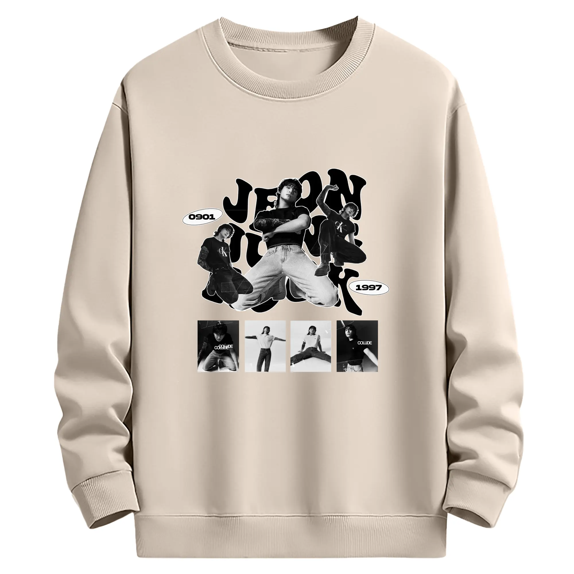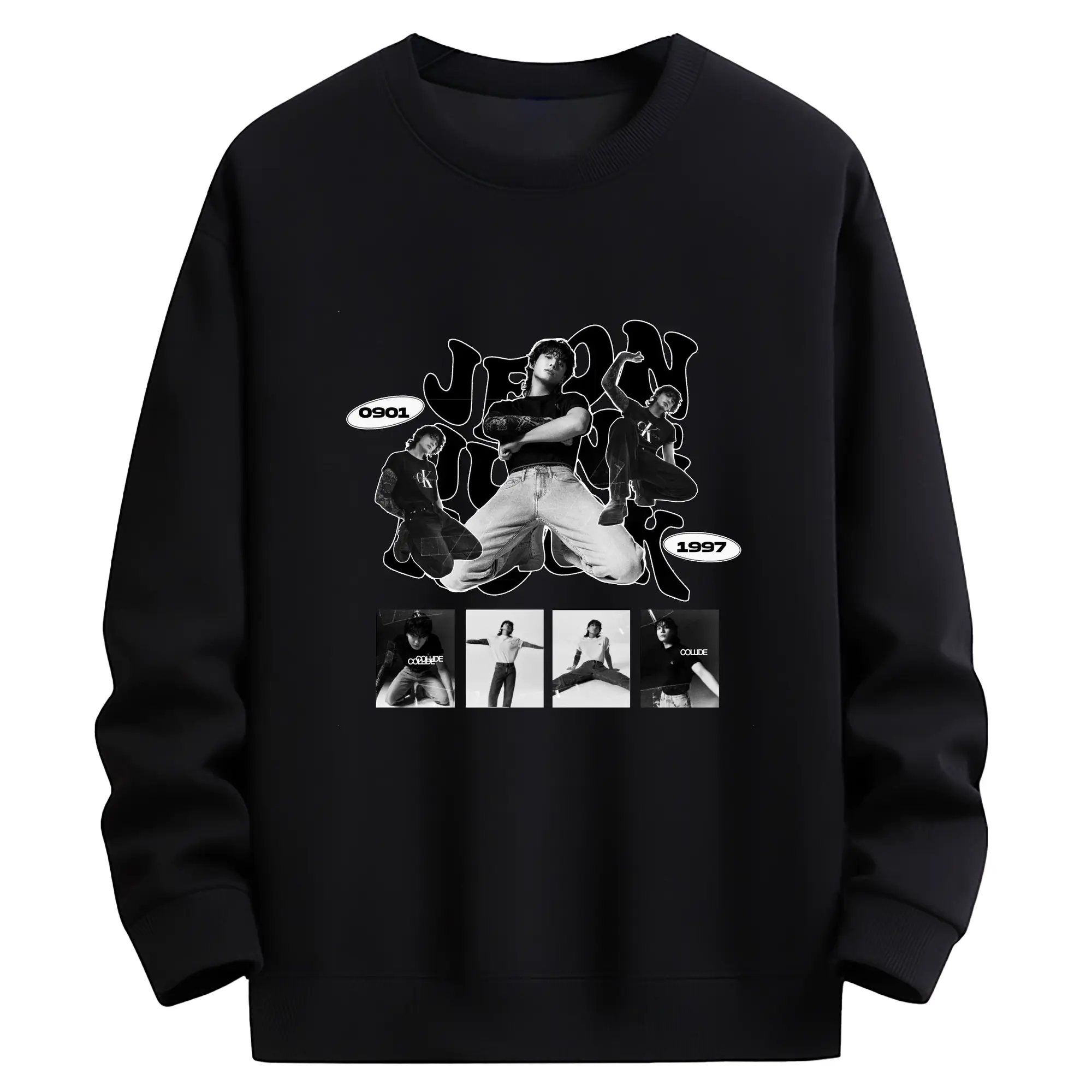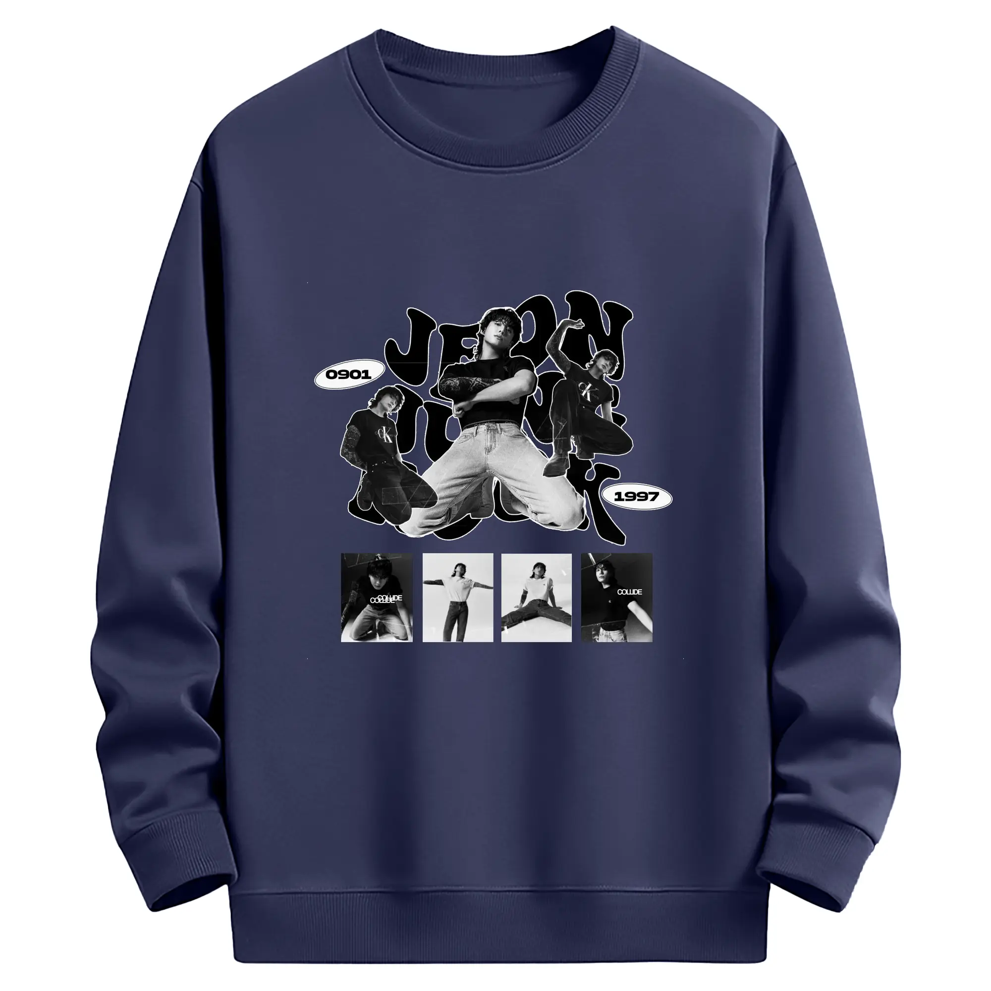 ジョングク アクションフォト 限定 韓流グッズ - 綿100% 半袖Tシャツ ・ フロントプリント ・ 快適 通気性 ・ 日常使い 散歩 スポーツ用