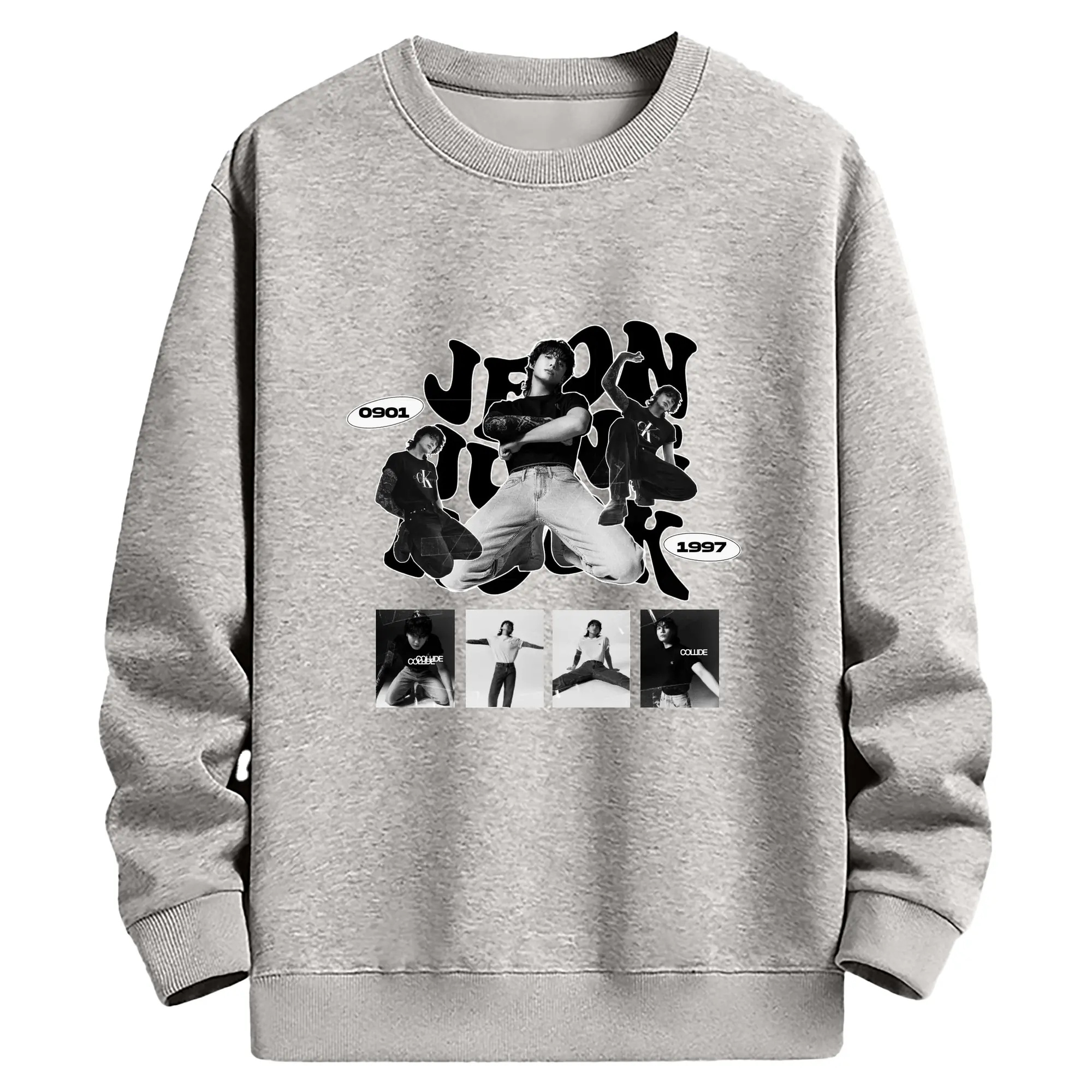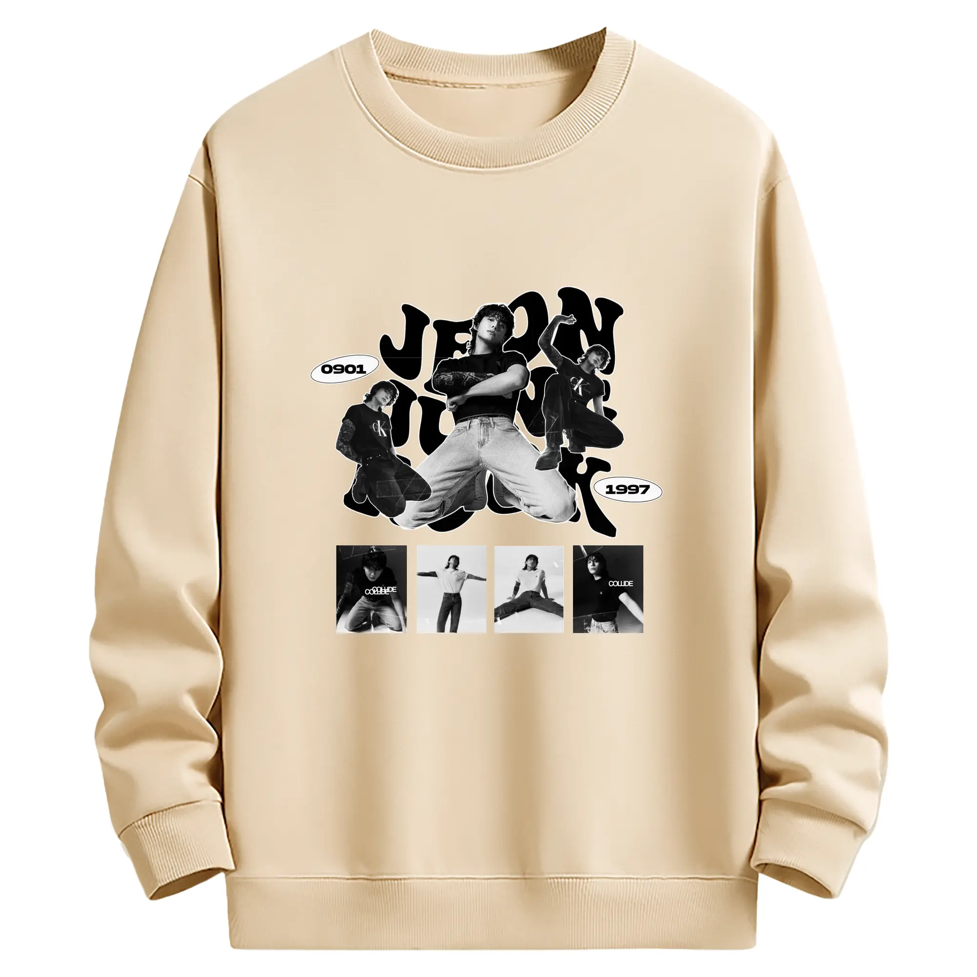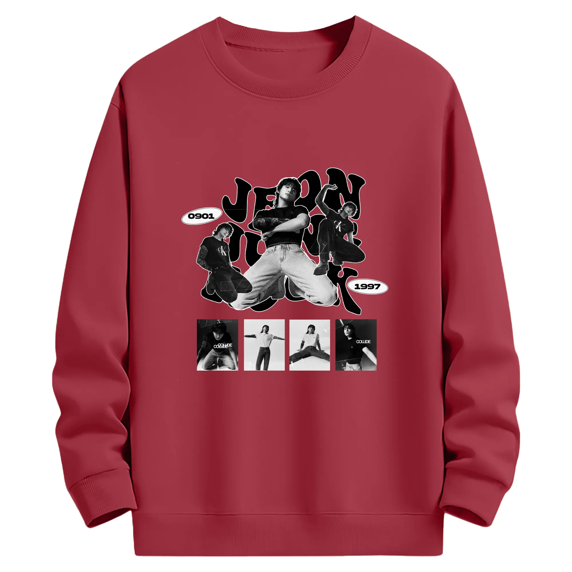 ジョングク アクションフォト 限定 韓流グッズ - 綿100% 半袖Tシャツ ・ フロントプリント ・ 快適 通気性 ・ 日常使い 散歩 スポーツ用