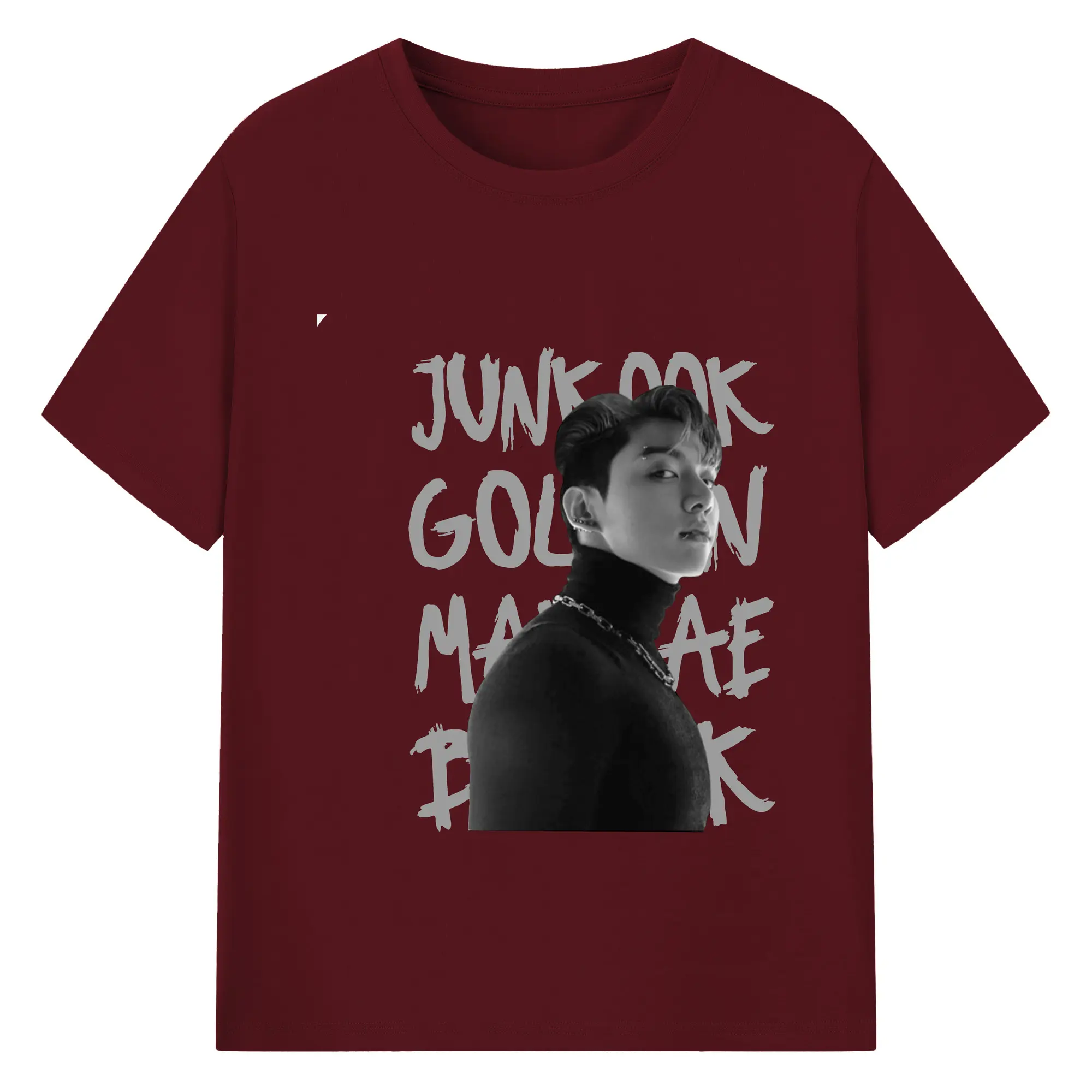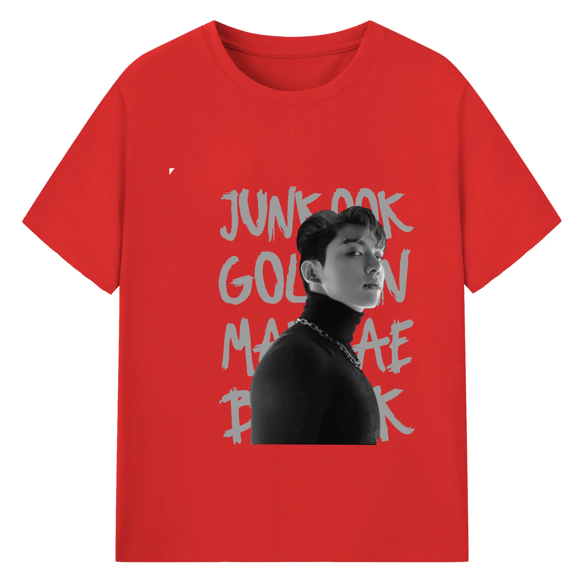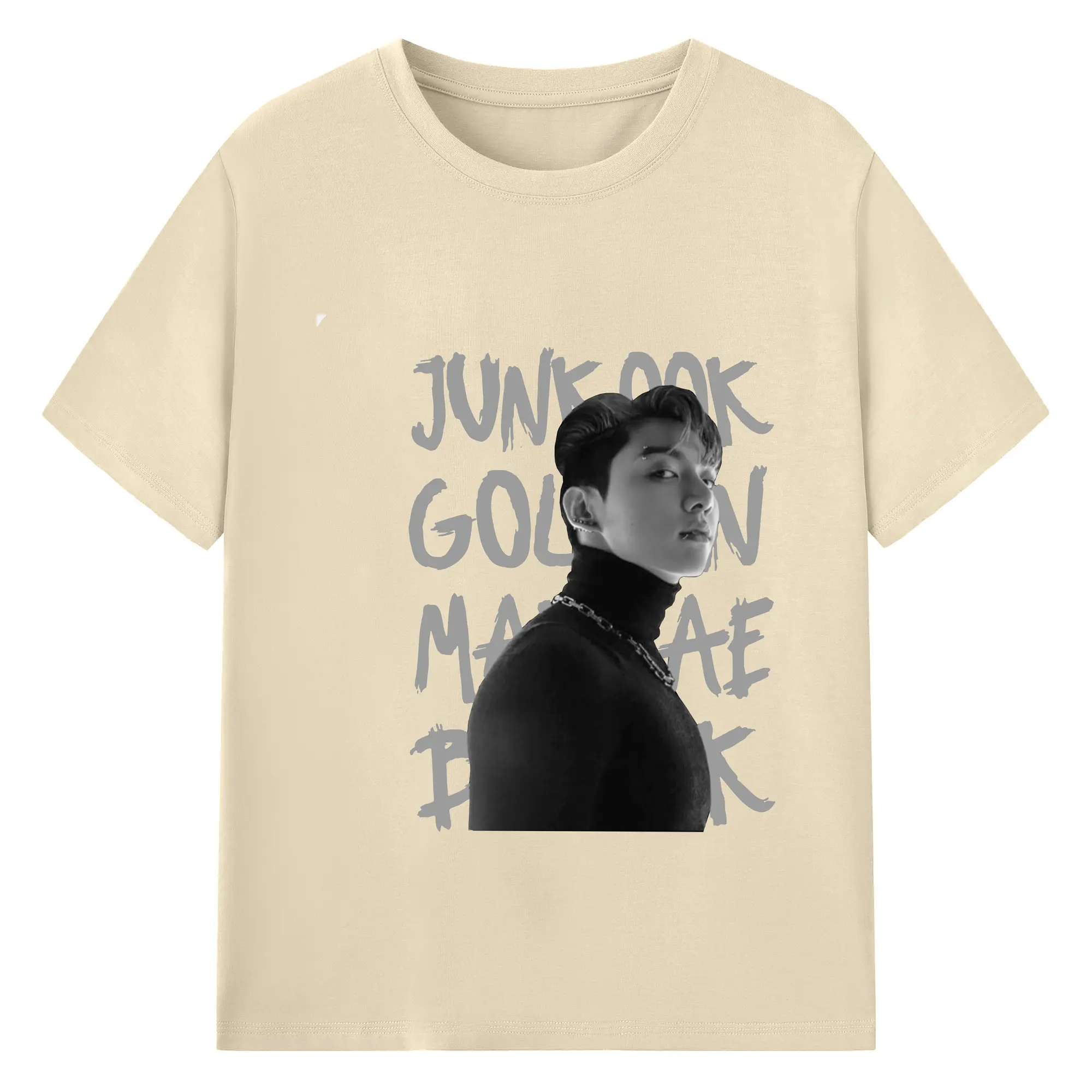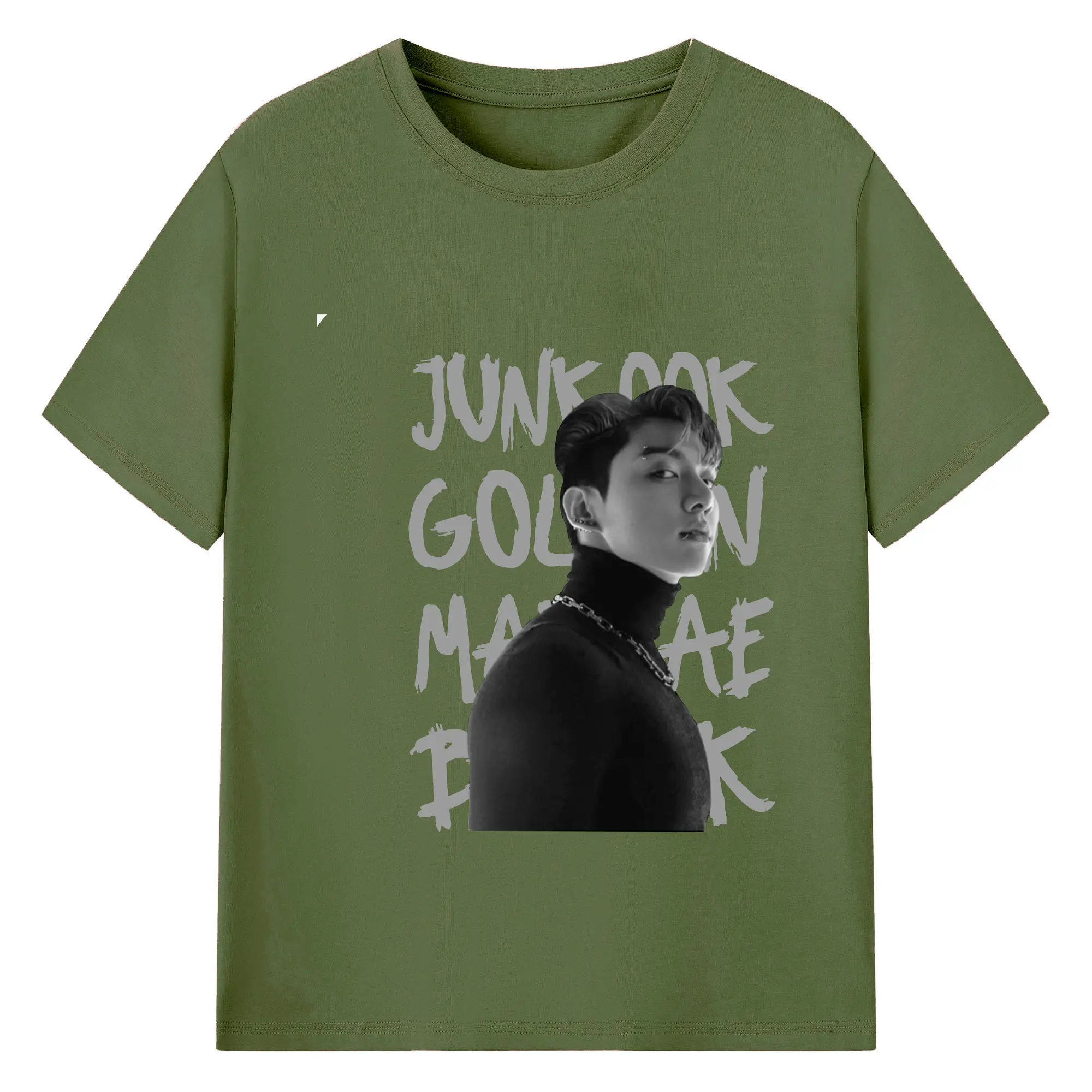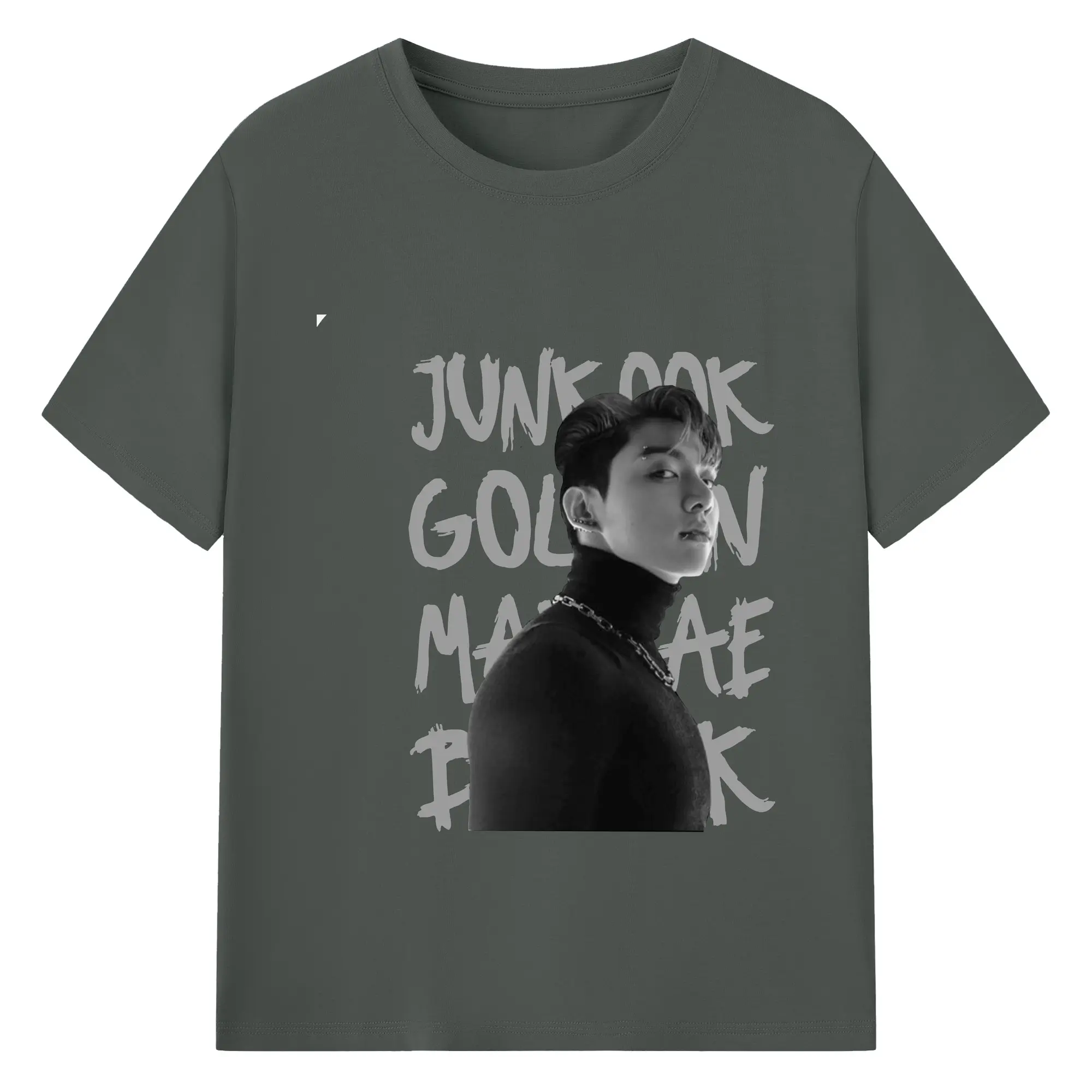 ジョングク フォトデザインファン喜ぶ特別デザイン - 綿100% ヴィンテージ風 半袖Tシャツ ・ フロントプリント ・ 柔らか肌触り ・ 通気性 快適 ・ スポーツ カジュアル 外出用