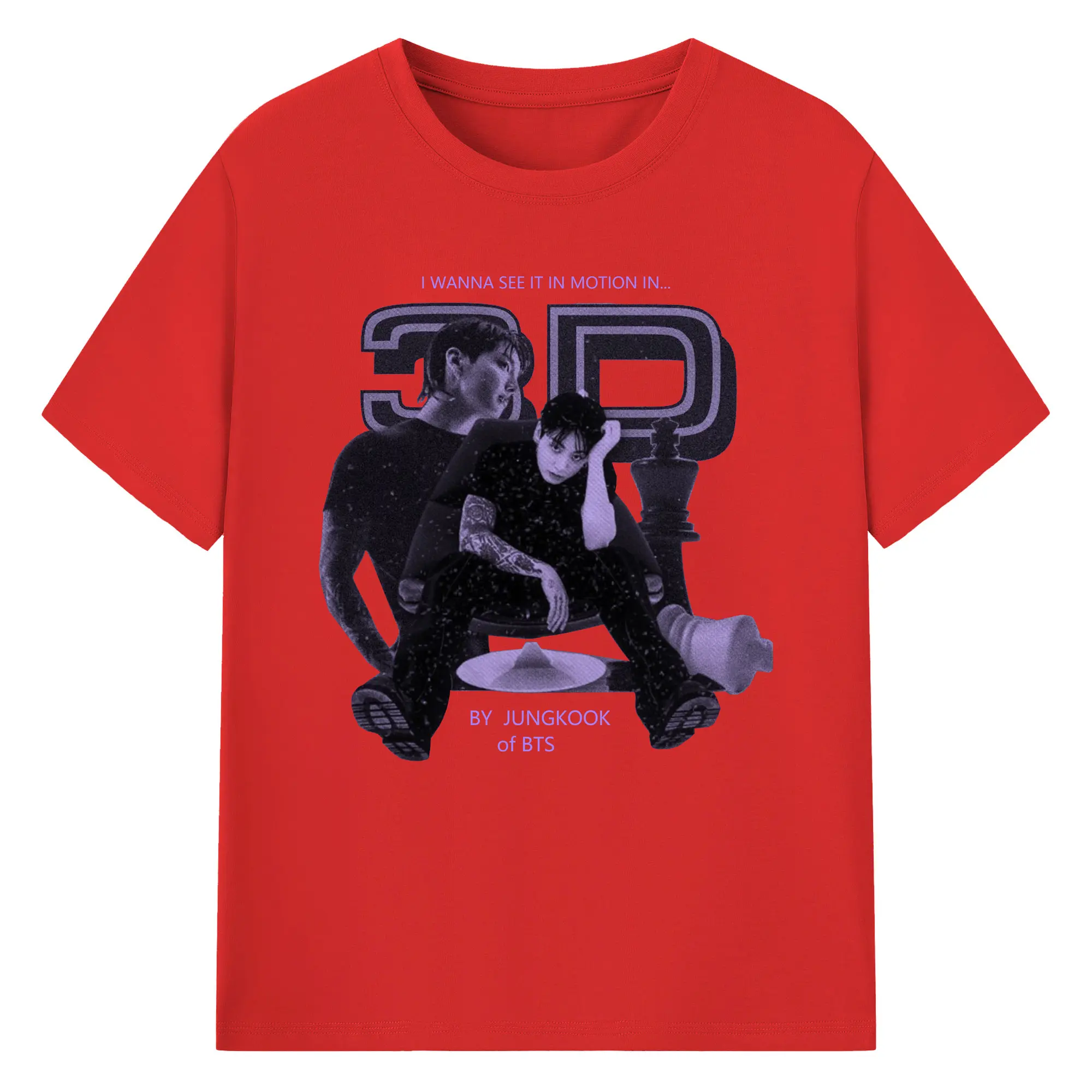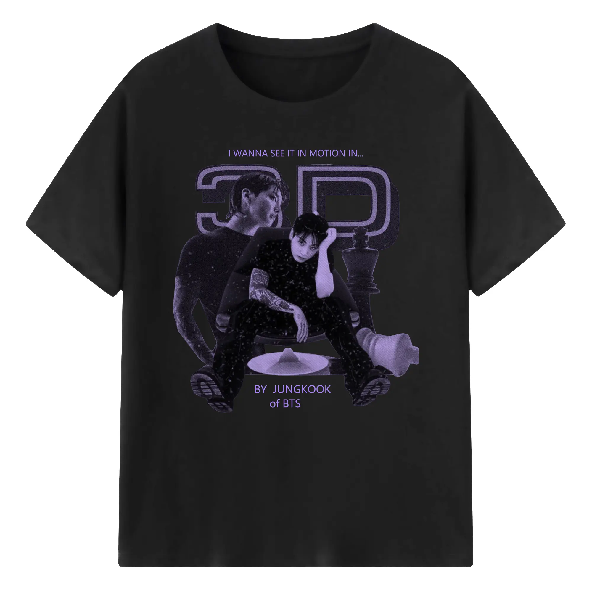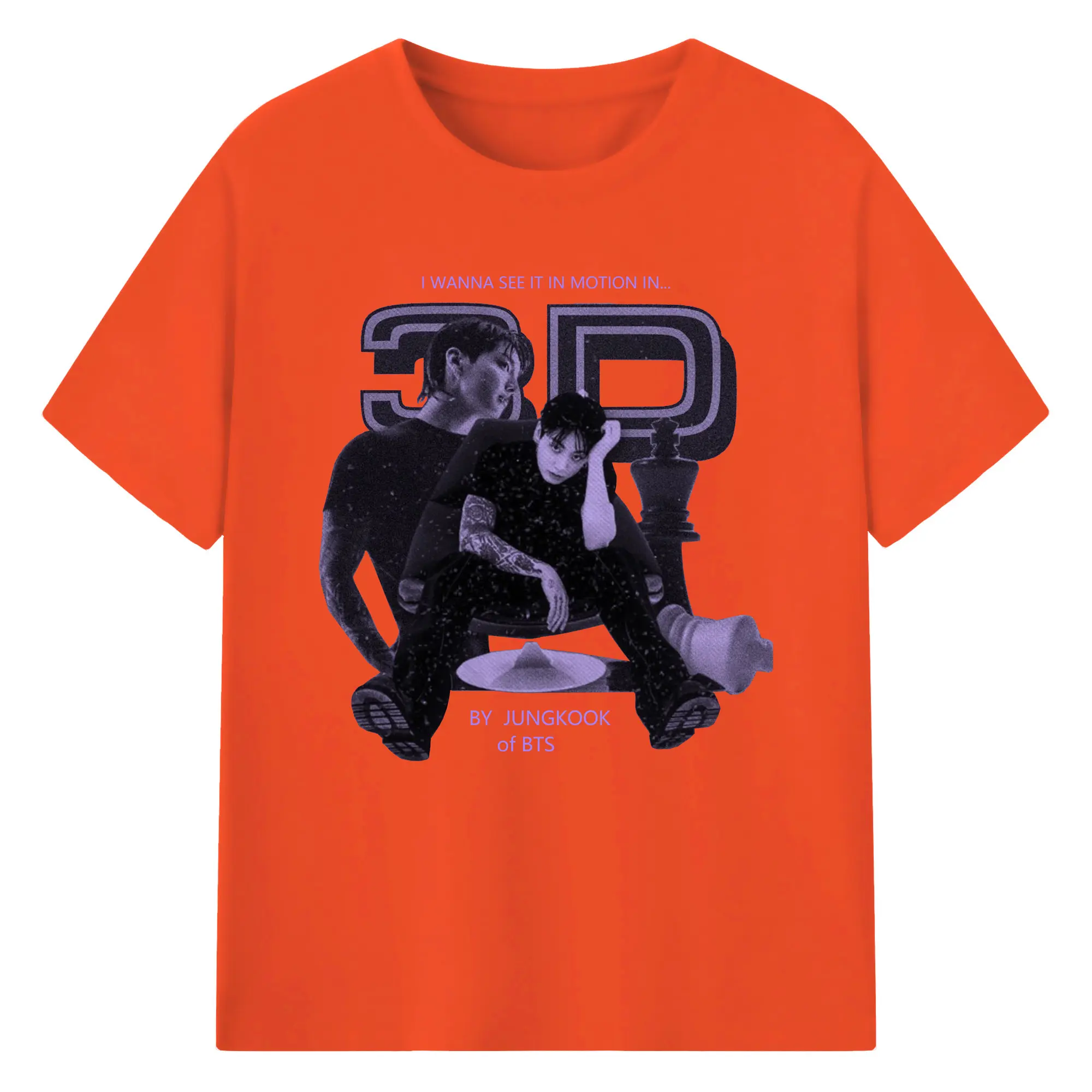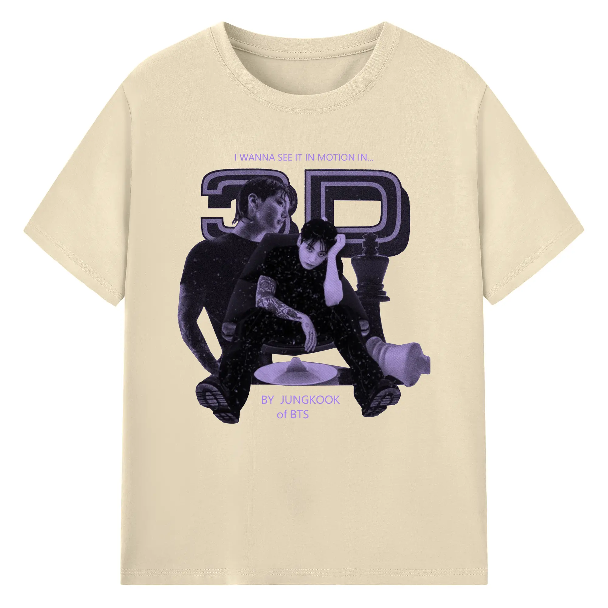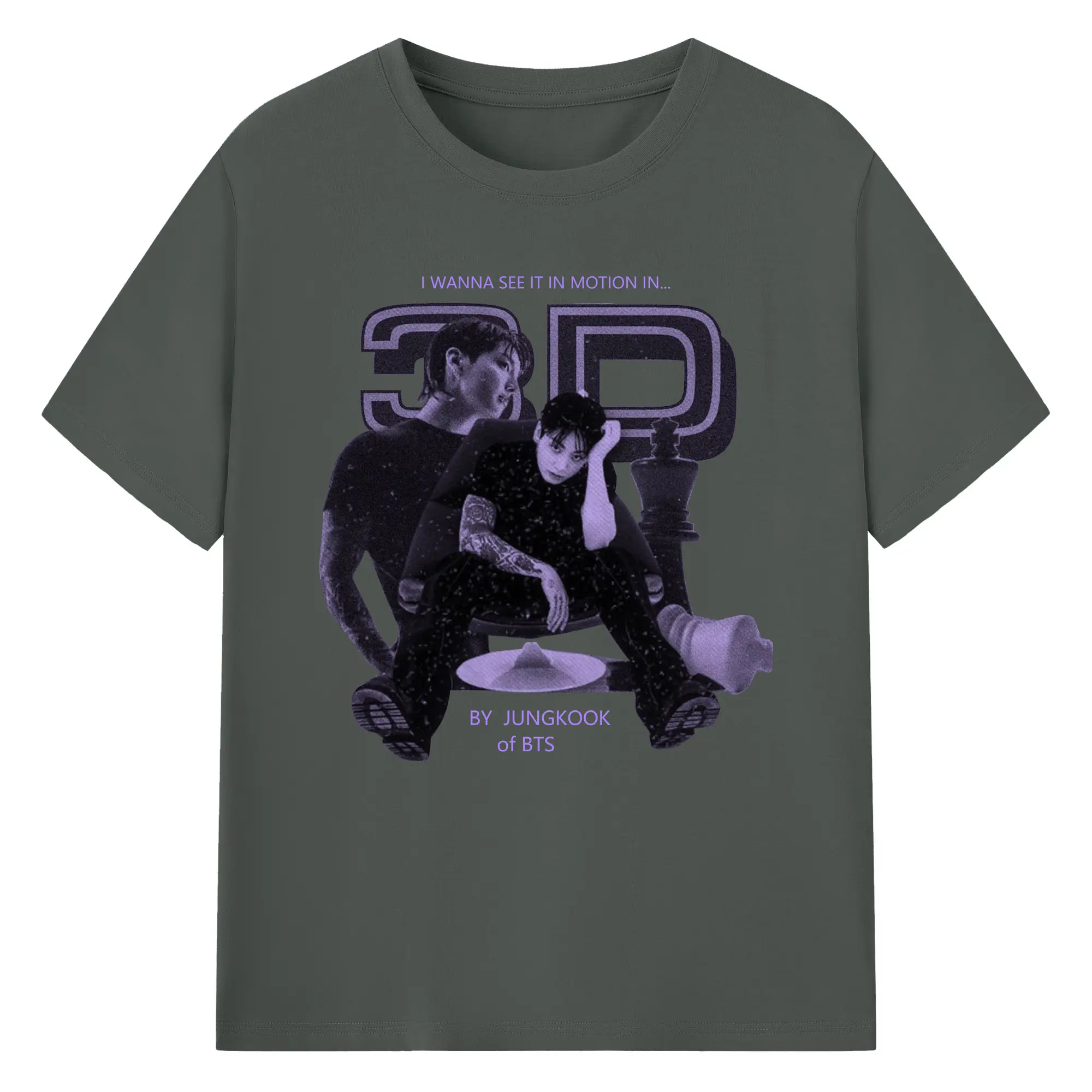 ジョングク “3D” モチーフ 韓流ファン注目トレンド - 綿100% ヴィンテージ風 半袖Tシャツ ・ フロントプリント ・ 柔らか肌触り ・ 通気性 快適 ・ スポーツ カジュアル 外出用