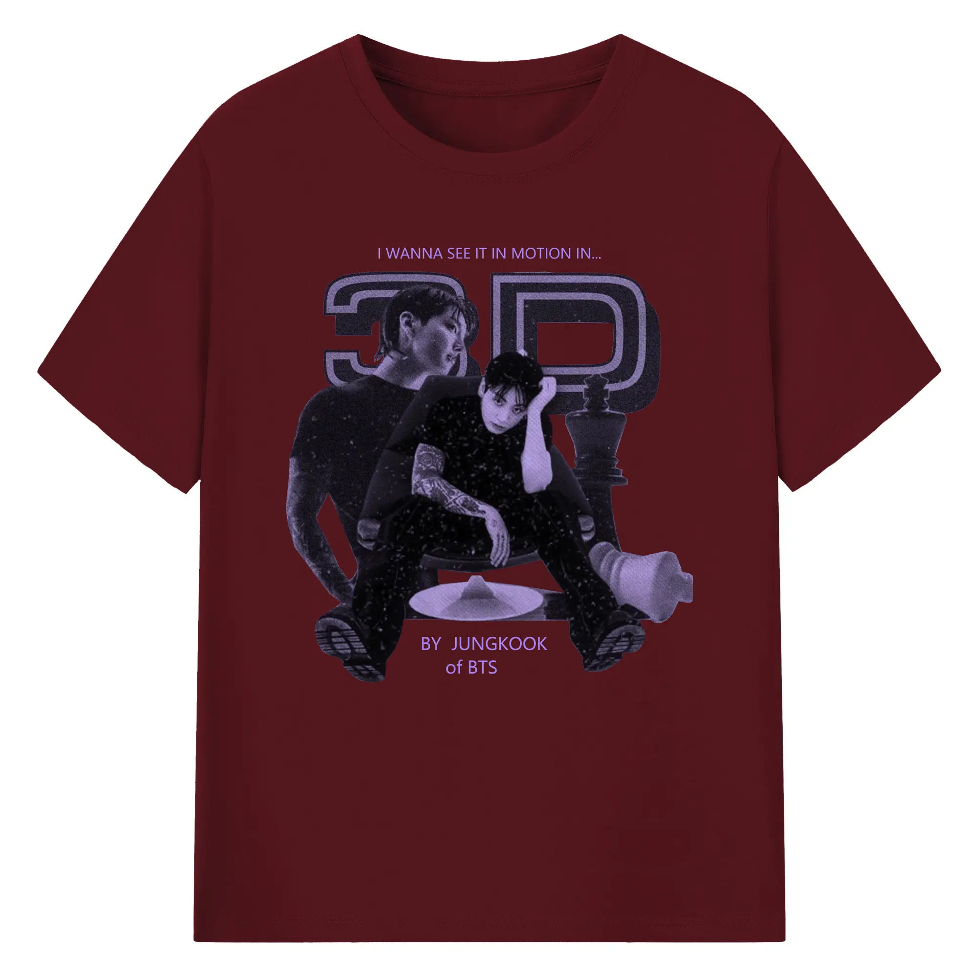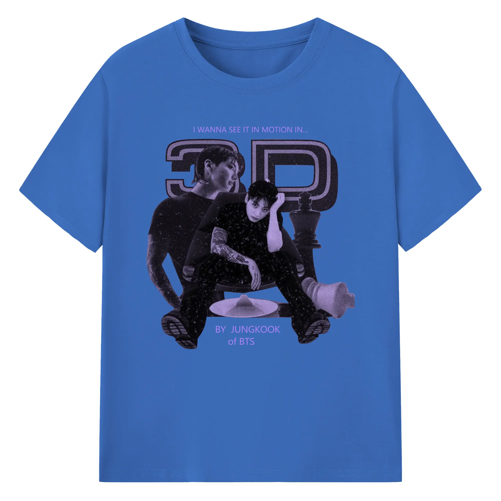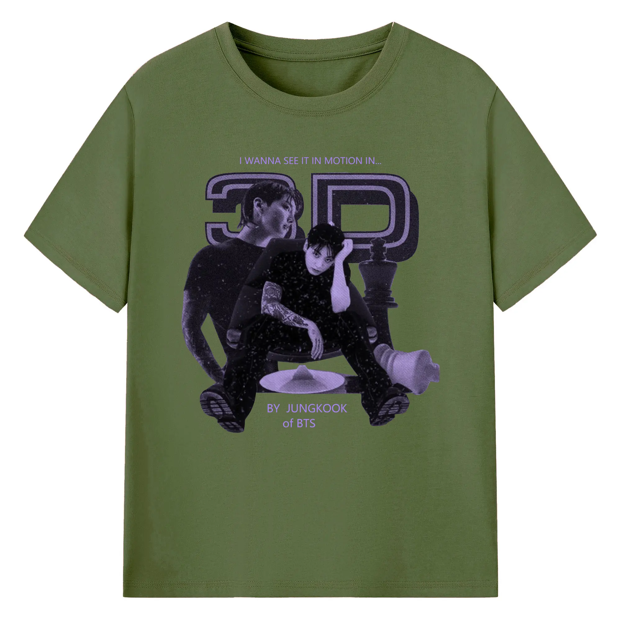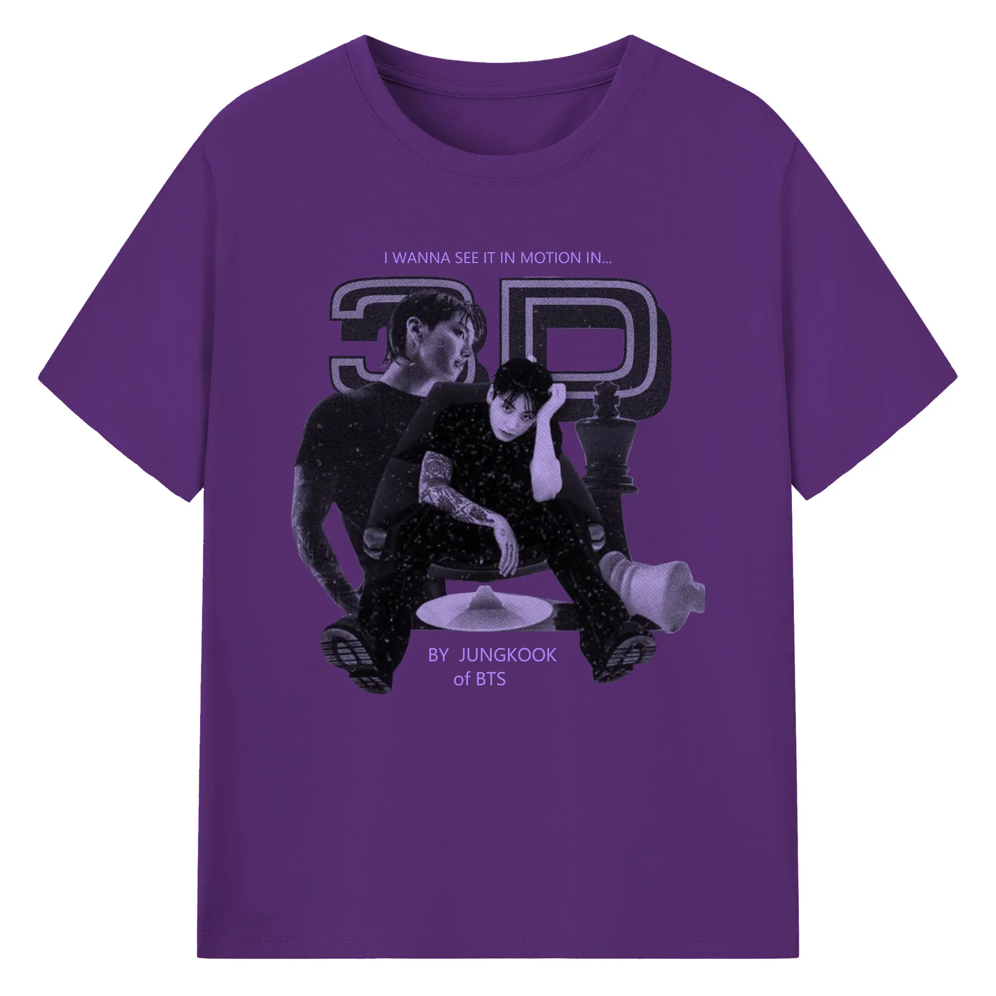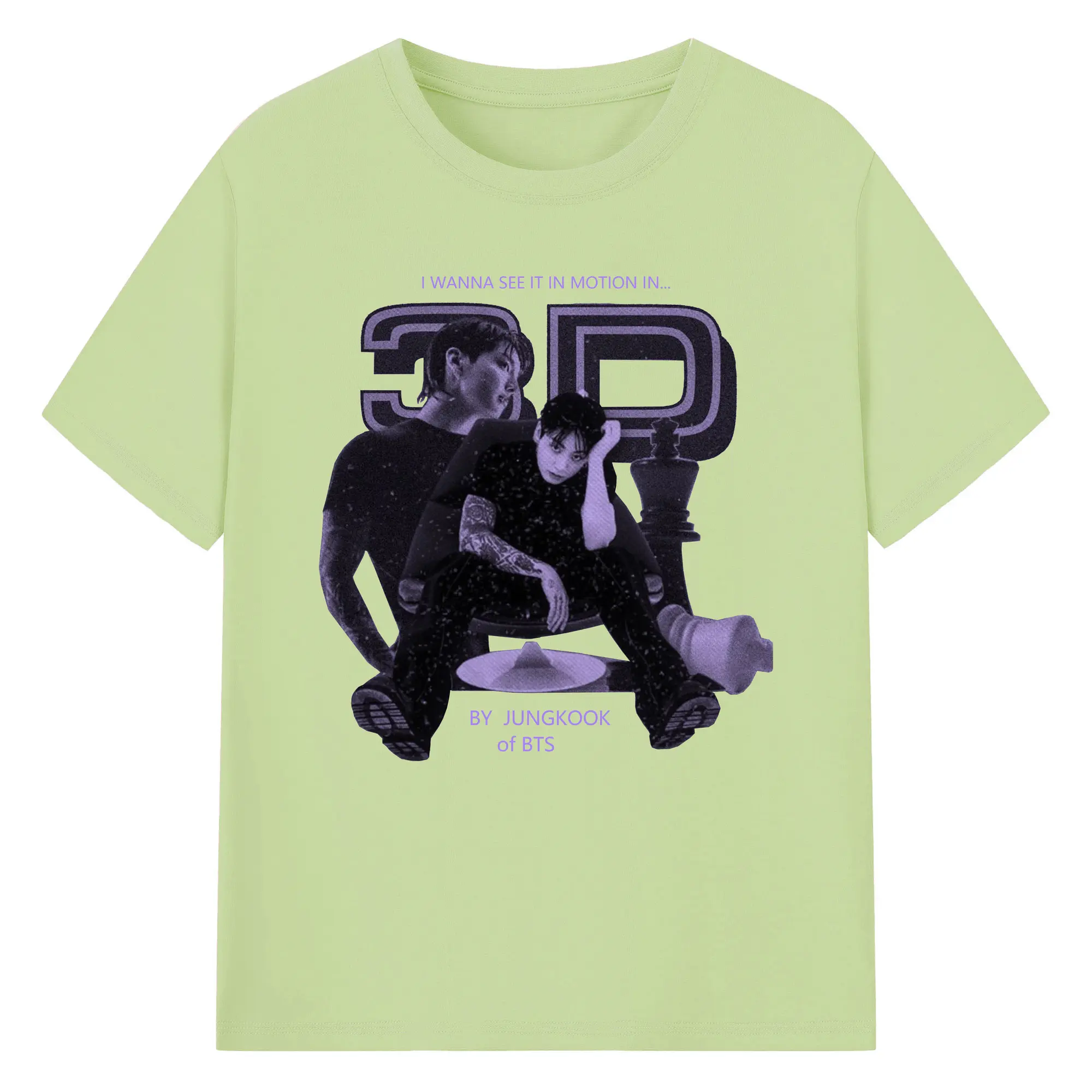 ジョングク “3D” モチーフ 韓流ファン注目トレンド - 綿100% ヴィンテージ風 半袖Tシャツ ・ フロントプリント ・ 柔らか肌触り ・ 通気性 快適 ・ スポーツ カジュアル 外出用