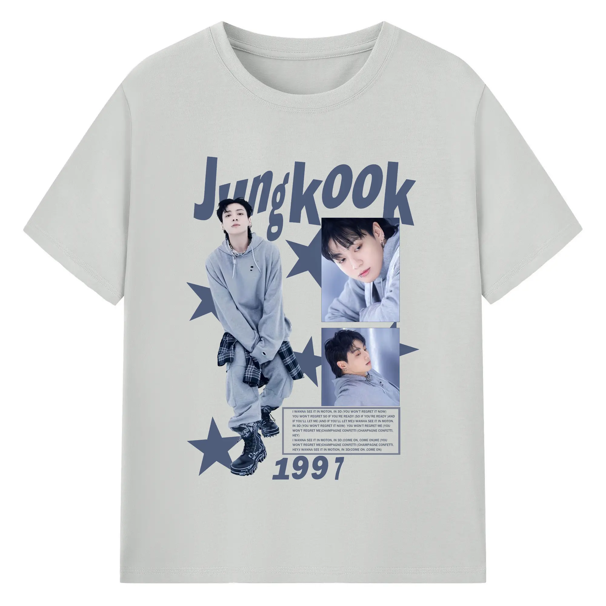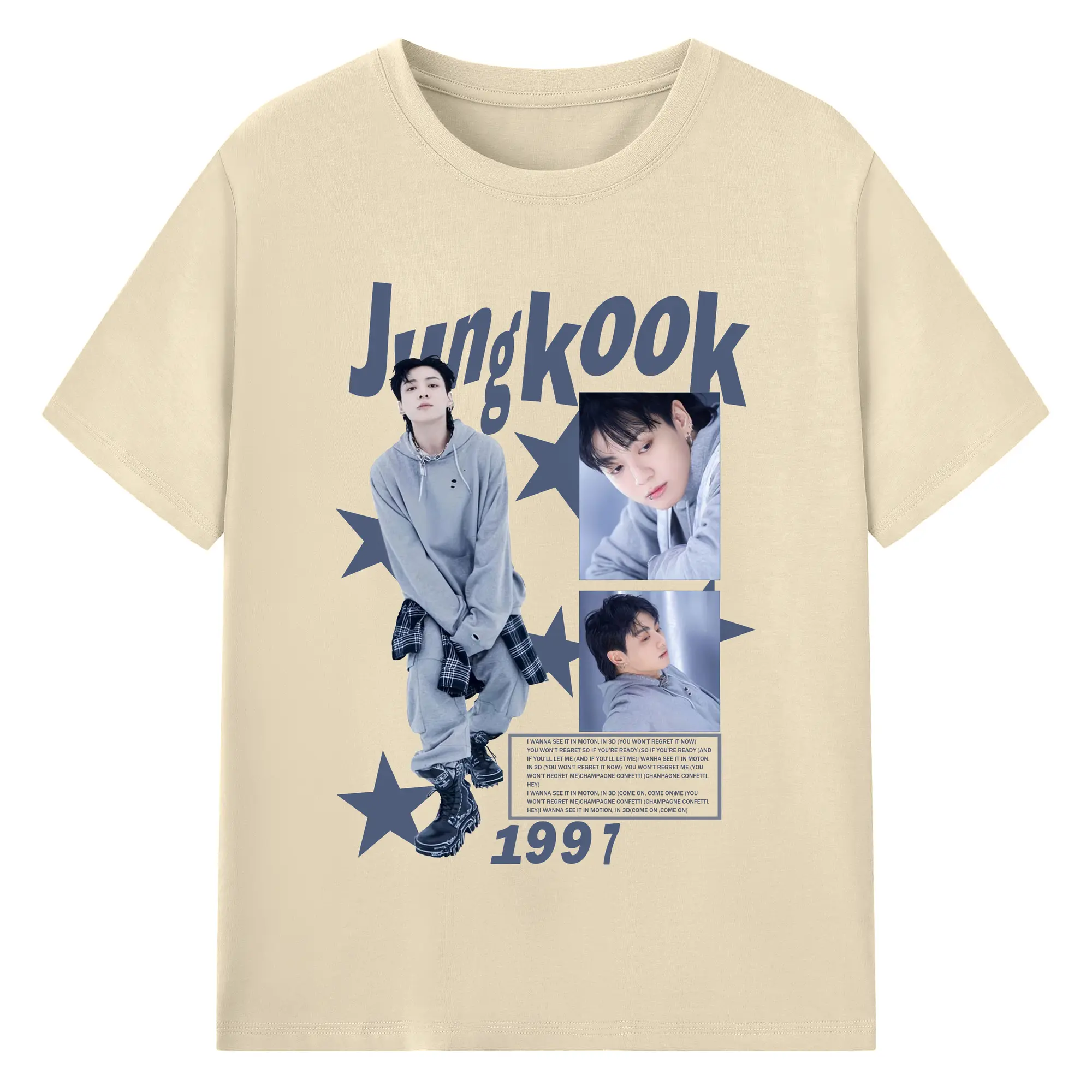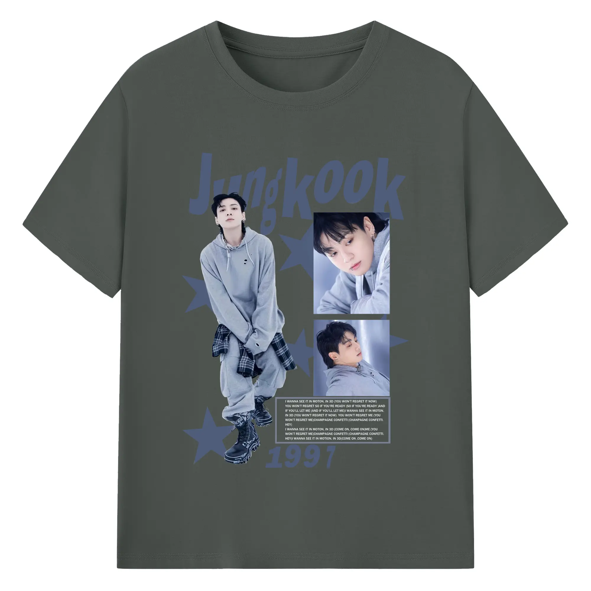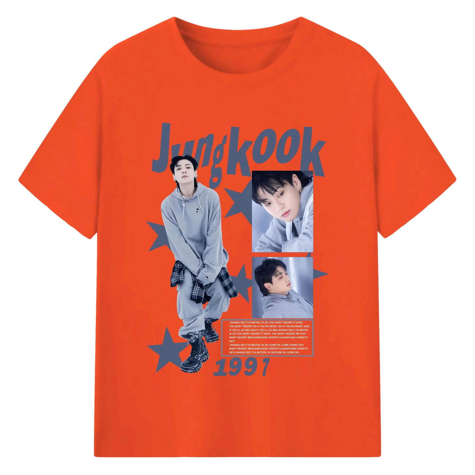 ジョングク “3D” モチーフTシャツ 韓流ファン注目トレンド - 綿100% ヴィンテージ風 半袖Tシャツ ・ フロントプリント ・ 柔らか肌触り ・ 通気性 快適 ・ スポーツ カジュアル 外出用