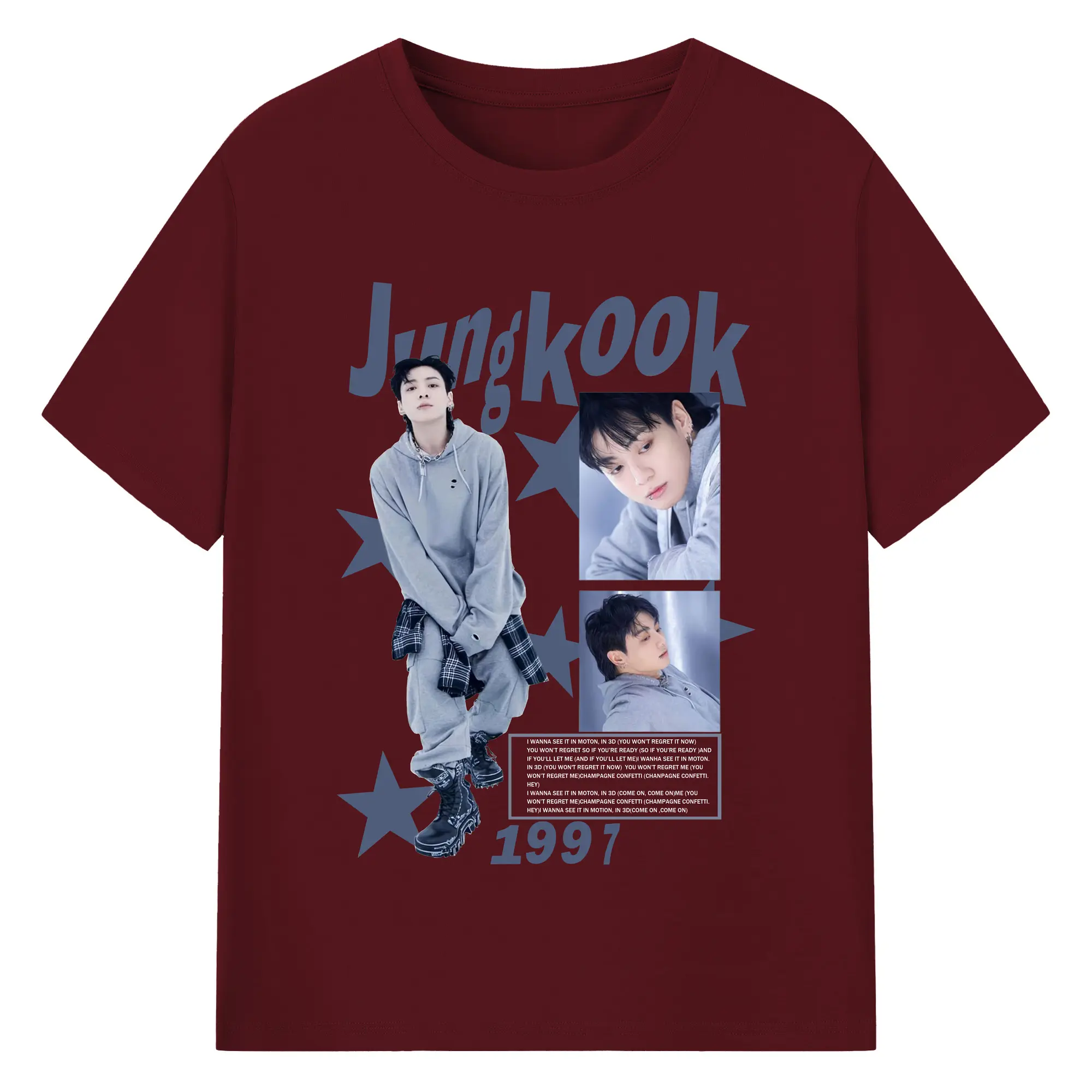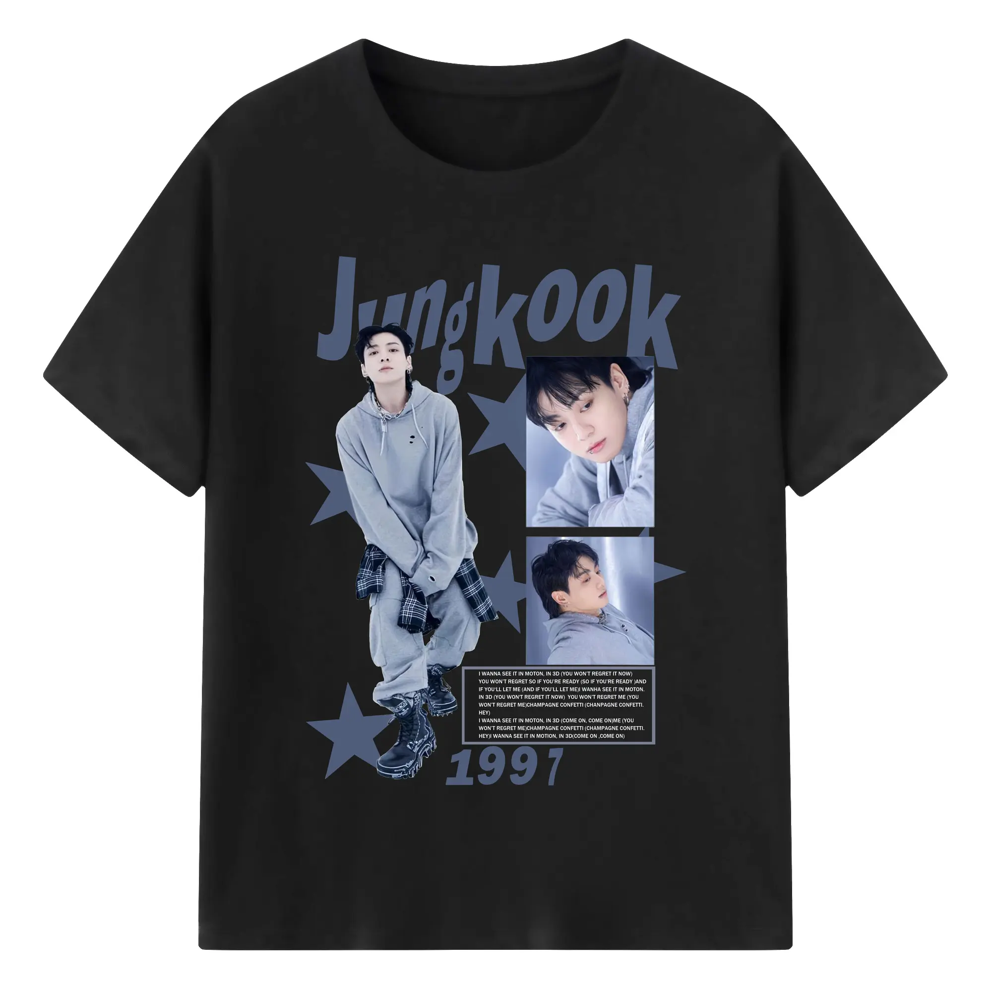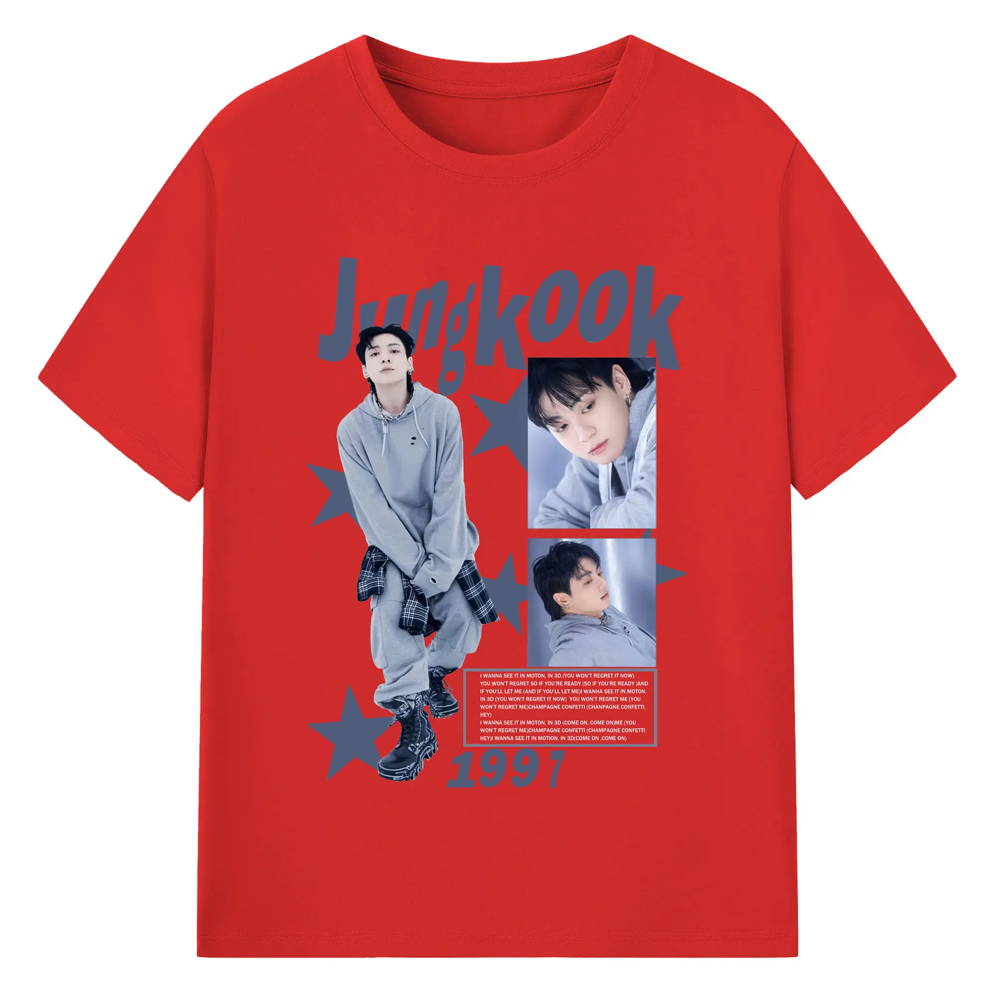 ジョングク “3D” モチーフTシャツ 韓流ファン注目トレンド - 綿100% ヴィンテージ風 半袖Tシャツ ・ フロントプリント ・ 柔らか肌触り ・ 通気性 快適 ・ スポーツ カジュアル 外出用